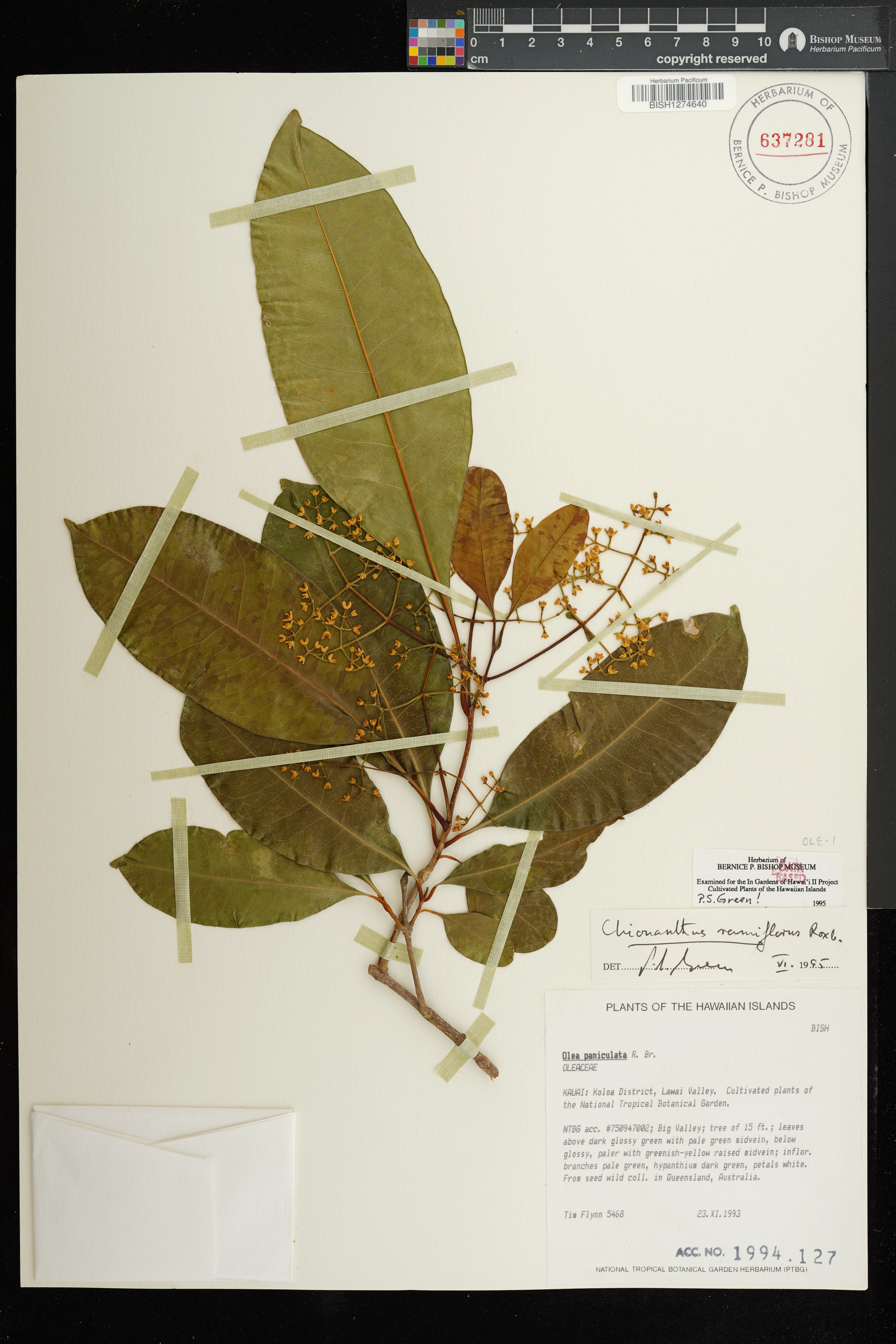 | 14 | Chionanthus ramiflorus | Roxb. | Lawai Valley. National Tropical Botanical Garden, Big Valley. | Cultivated. | PRESERVED_SPECIMEN | Tim Flynn | 5468 | Kauai | PTBG | 11/23/1993 |