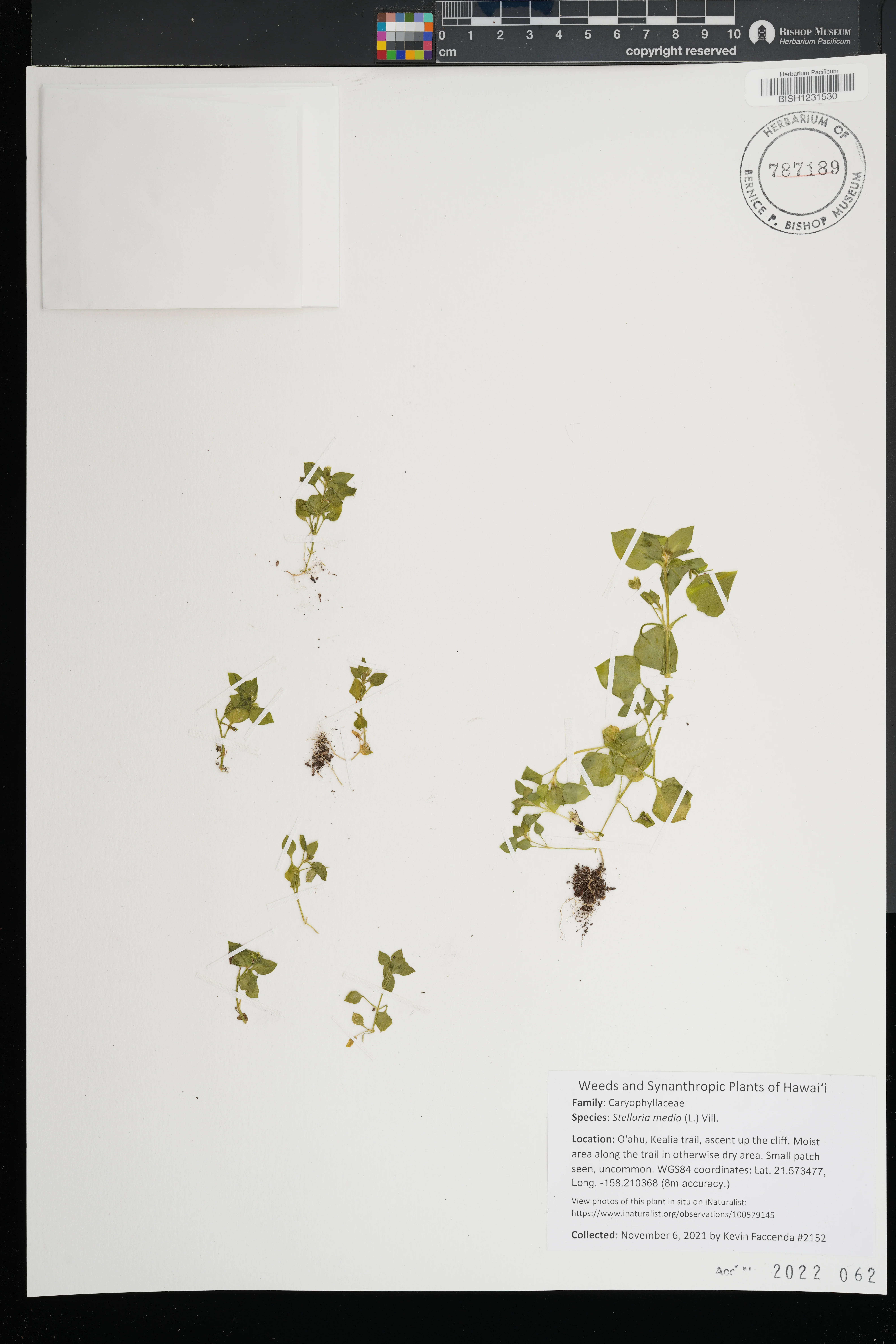 In disturbed Metrosideros/Dicranopteris forest, in shady intermittent stream bed, among rocks. |