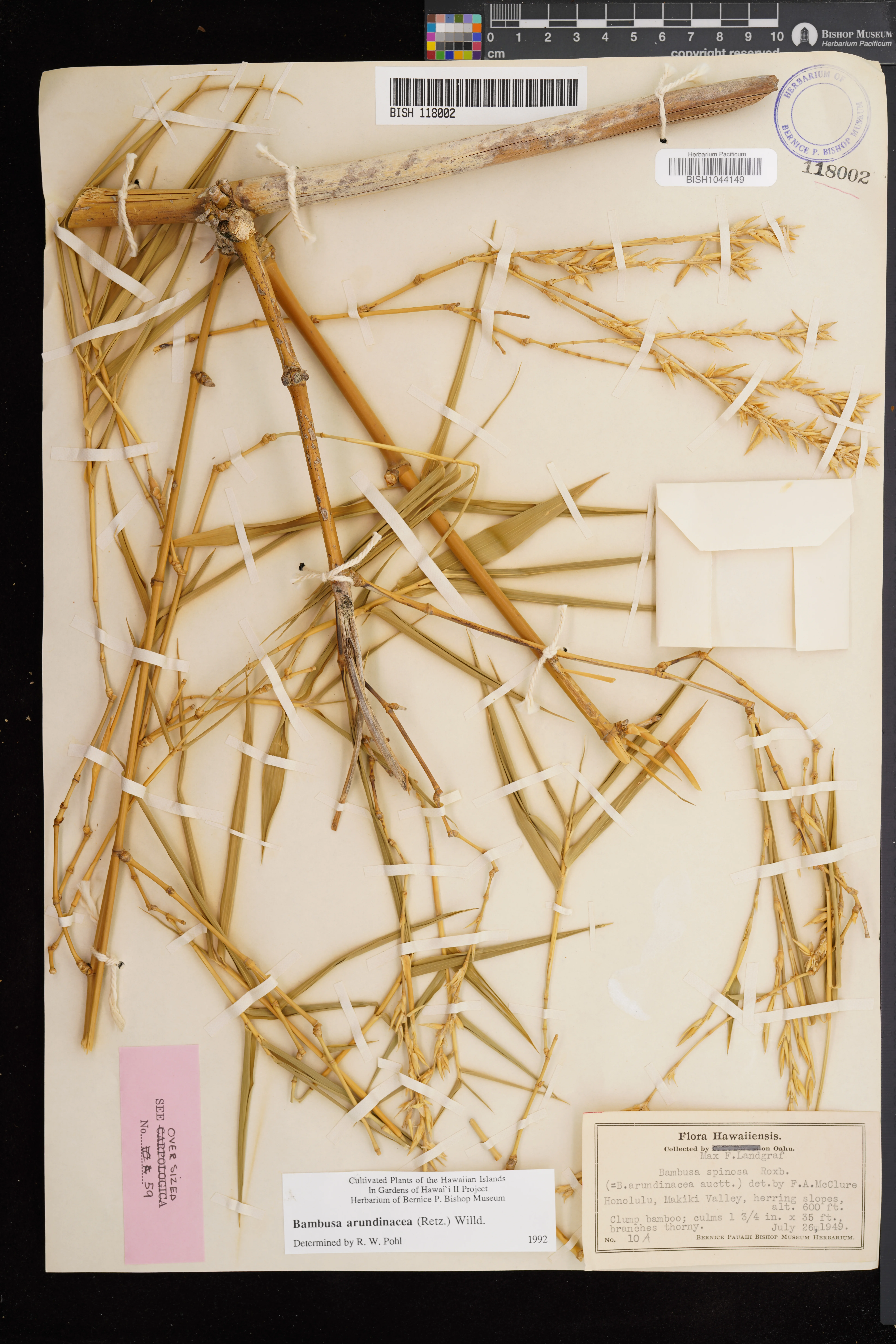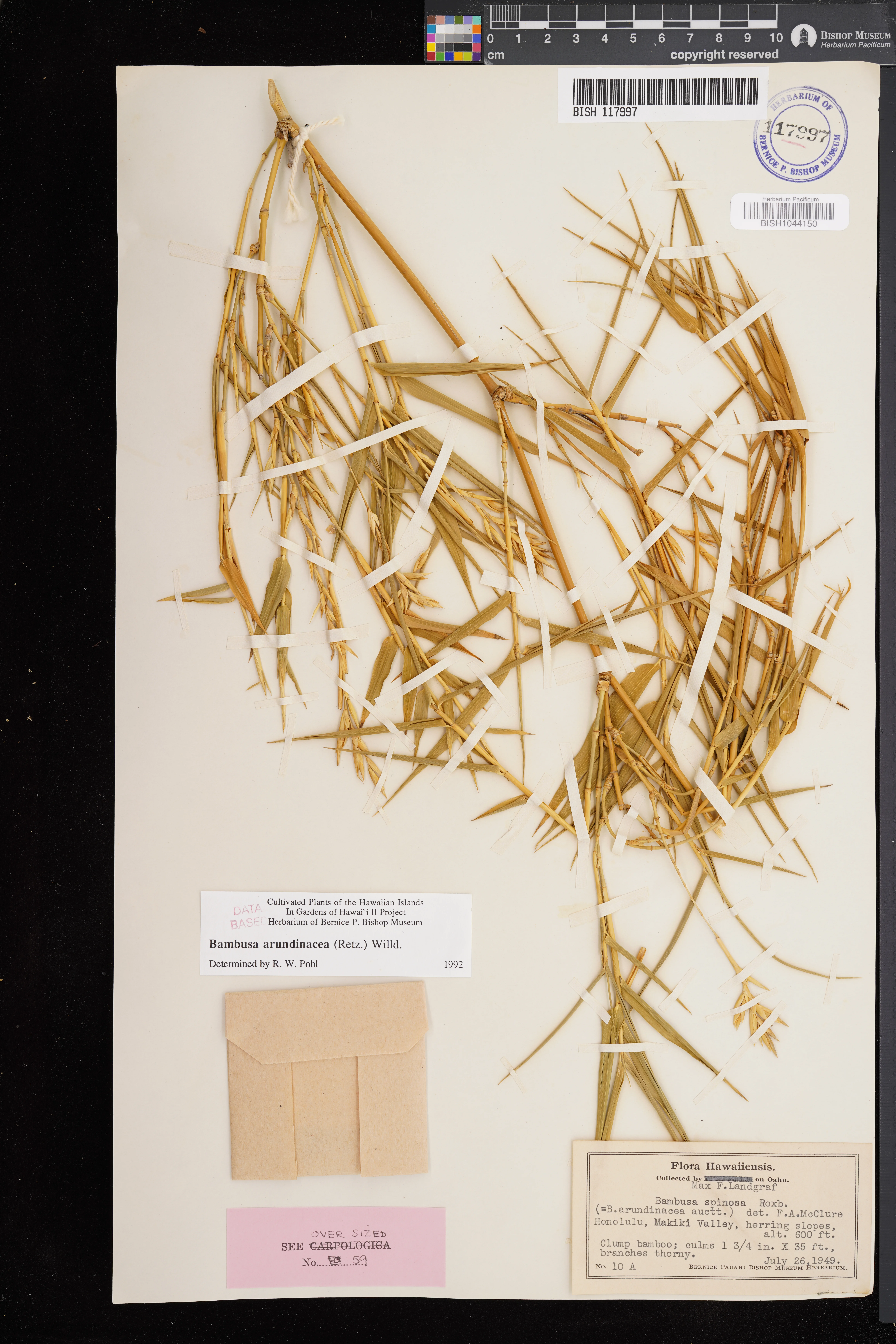 | 3 | Bambusa bambos | (L.) Voss | Makiki; herring slopes | PRESERVED_SPECIMEN | Landgraf, M.F. | 10A | Oahu | BISH | 7/26/1949 | |