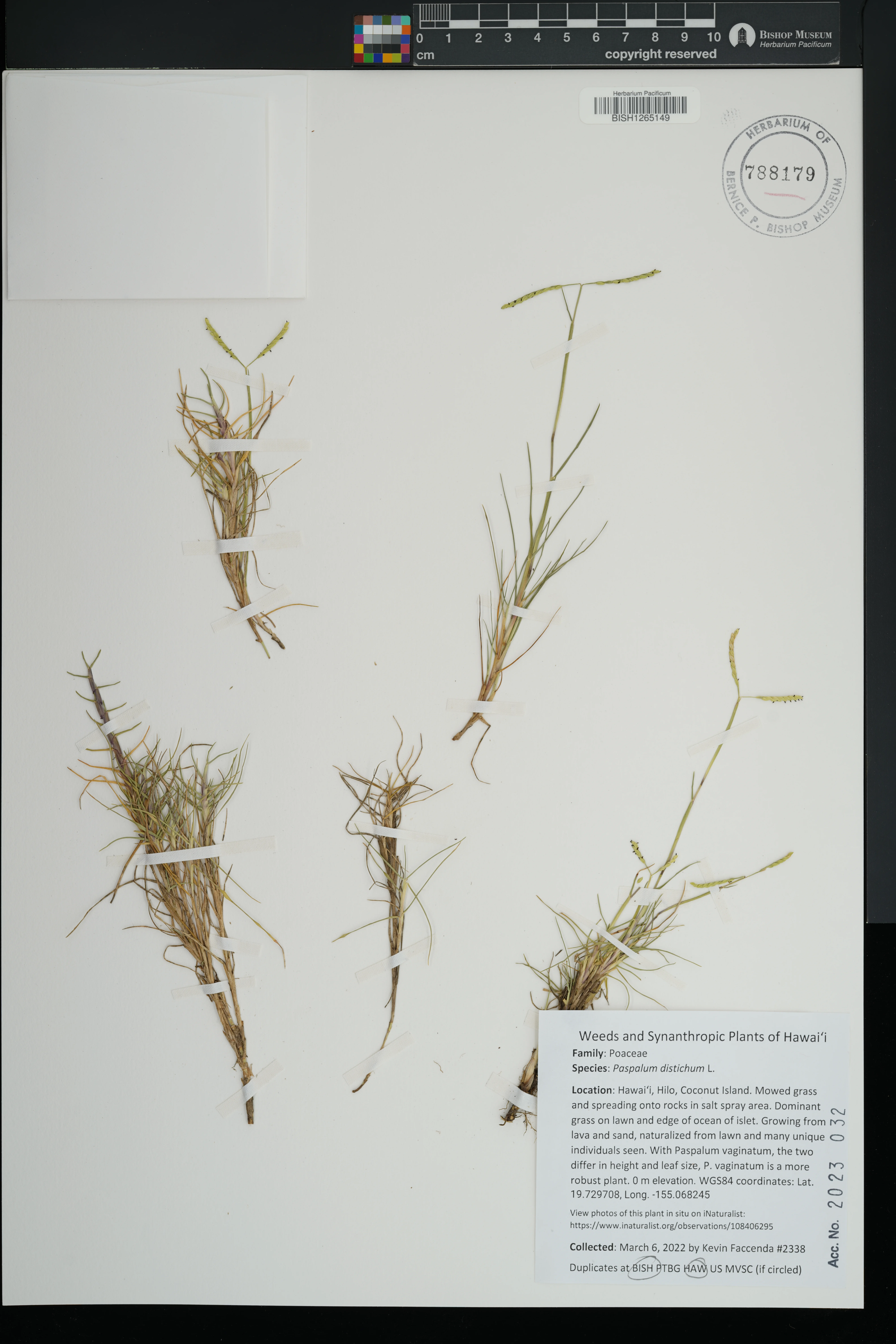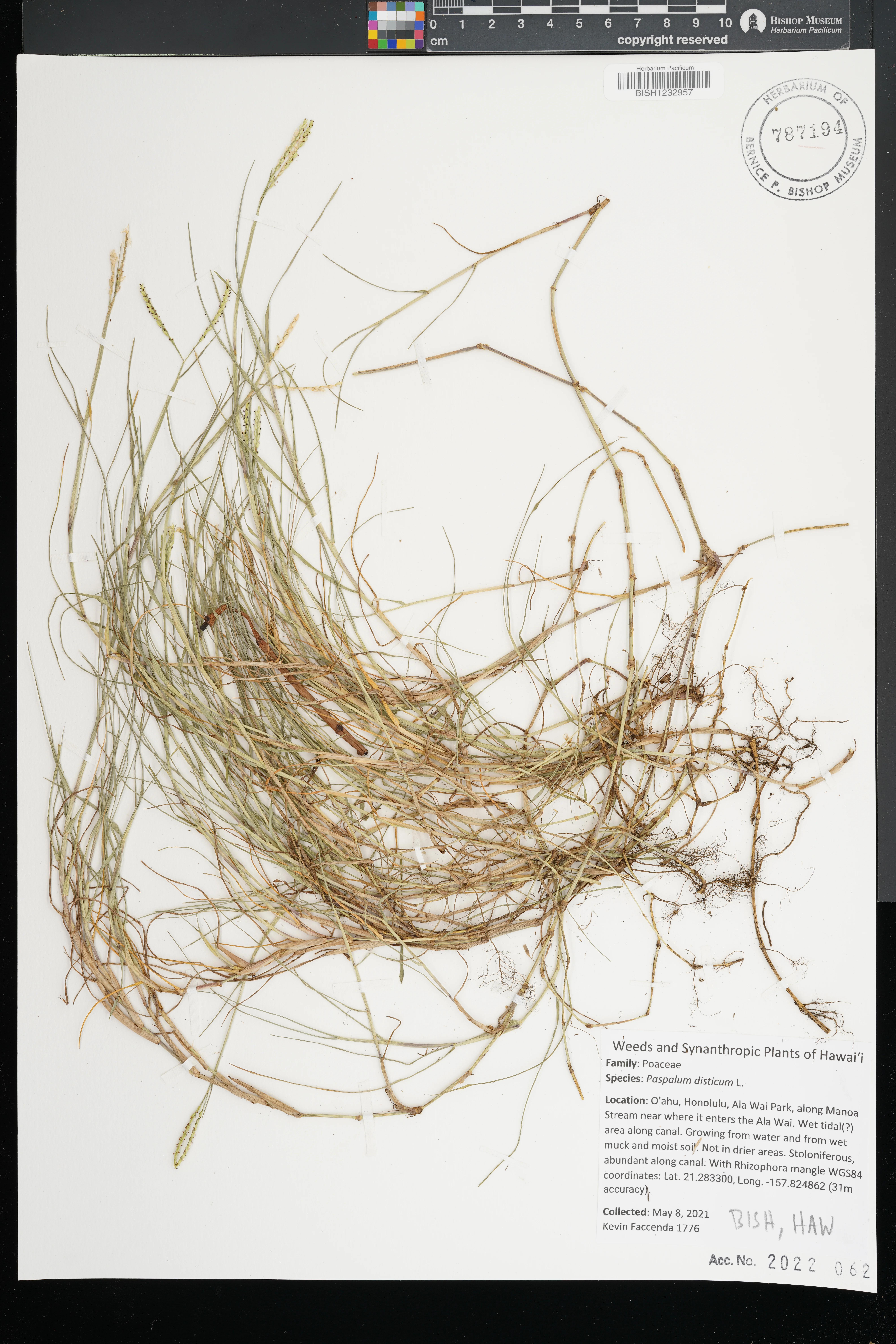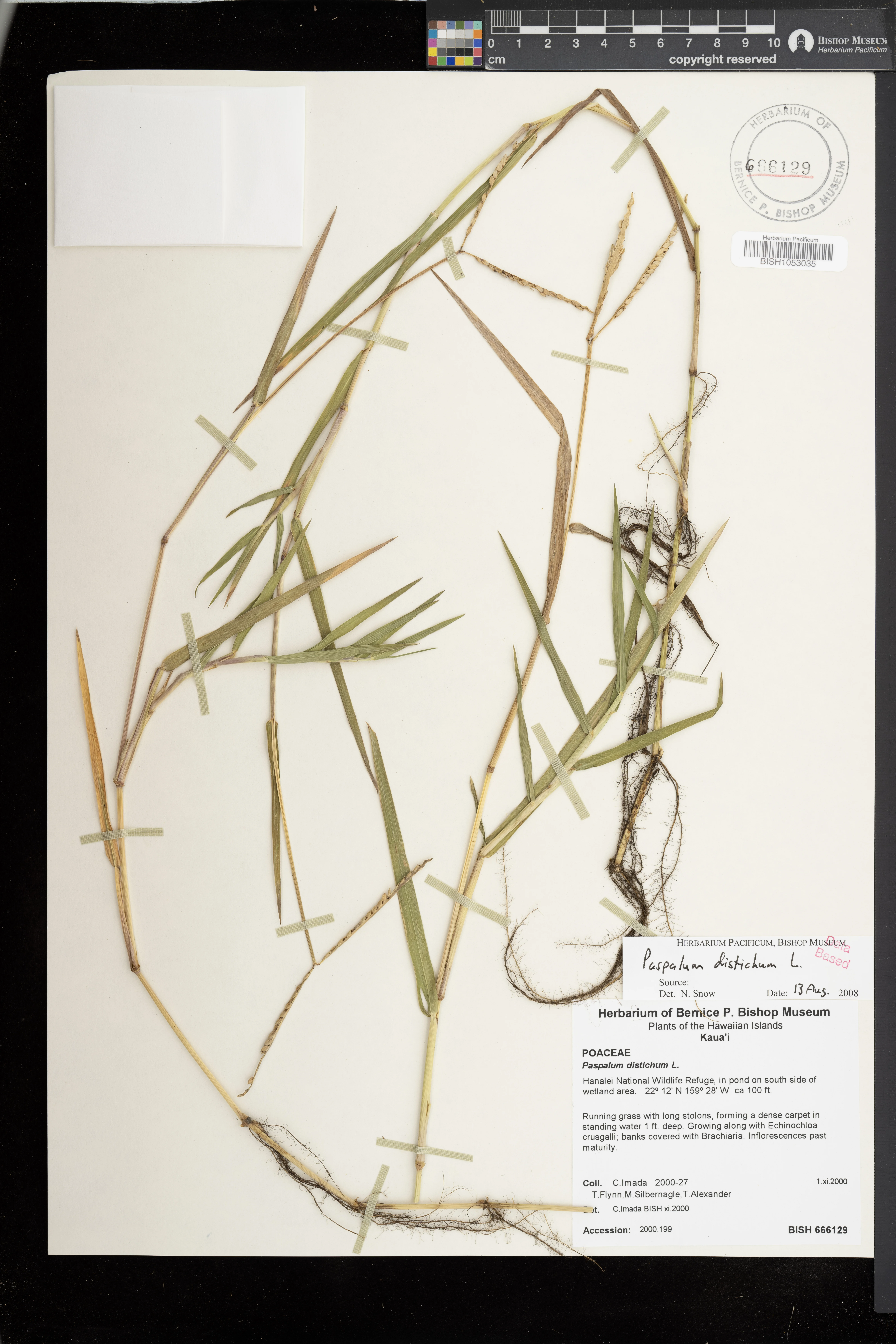 Running grass with long stolons, forming a dense carpet in standing water 1 ft. deep. Growing along with Echinochloa crusgalli; banks covered with Brachiaria. |