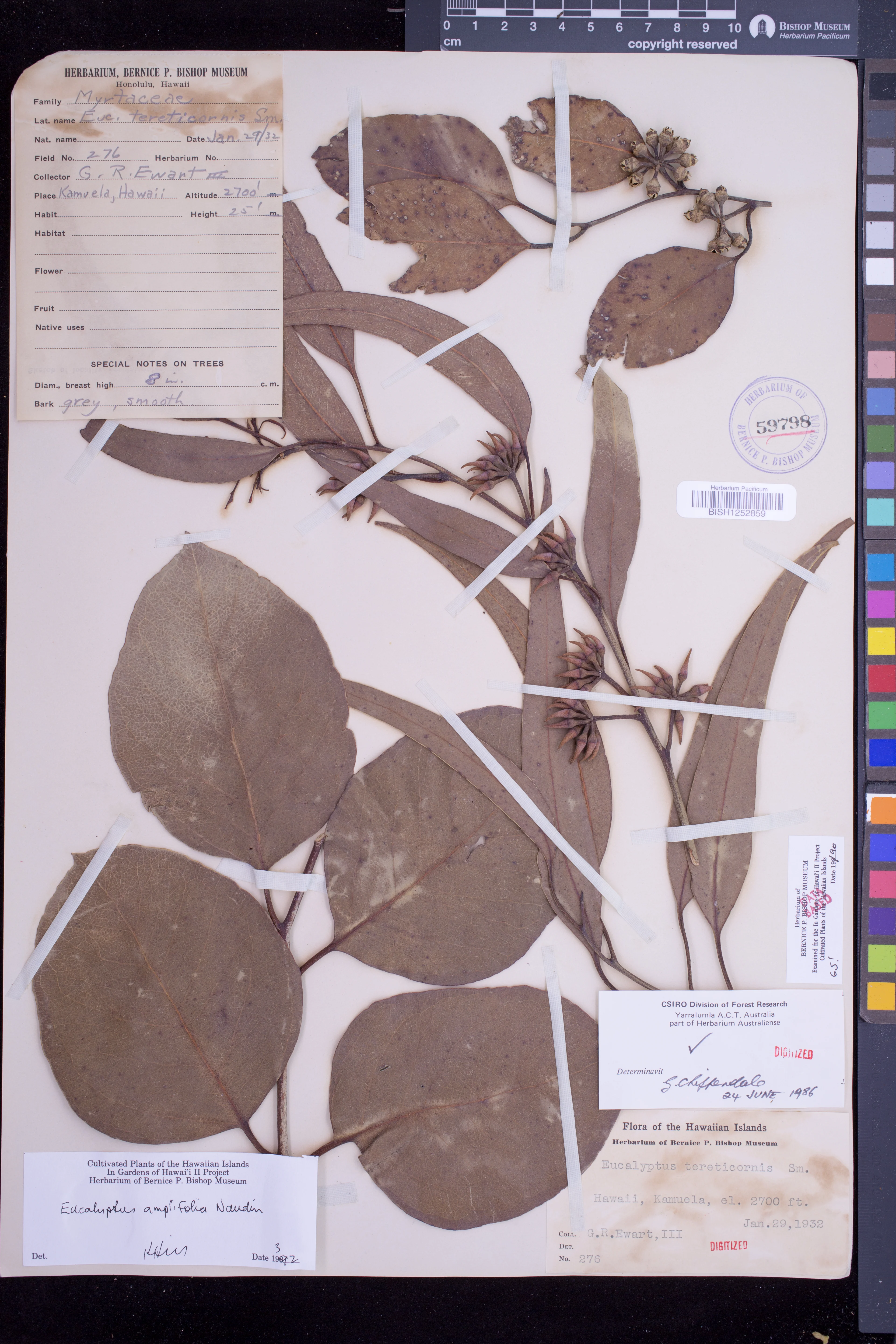 2 Eucalyptus amplifolia Naudin Kamuela PRESERVED_SPECIMEN Ewart III, G.R. 276 Hawaii BISH 1/29/1932
