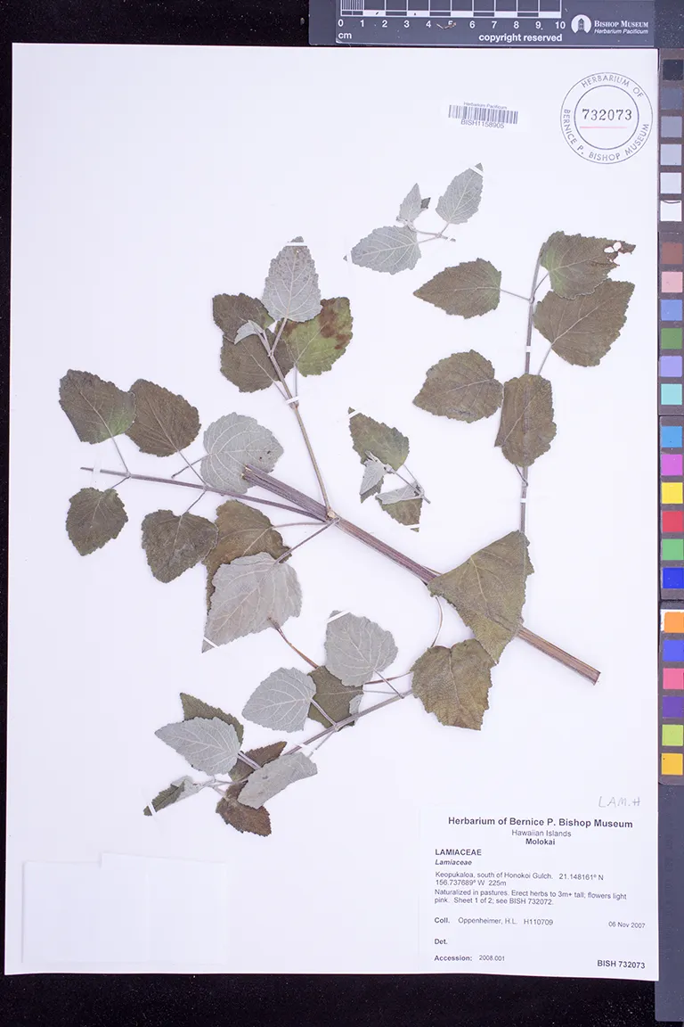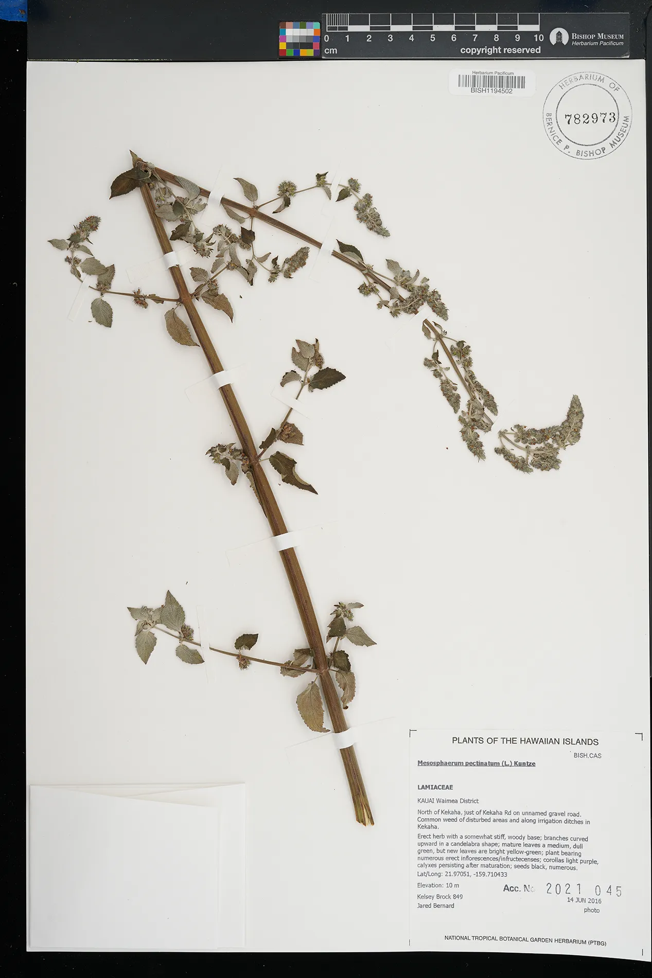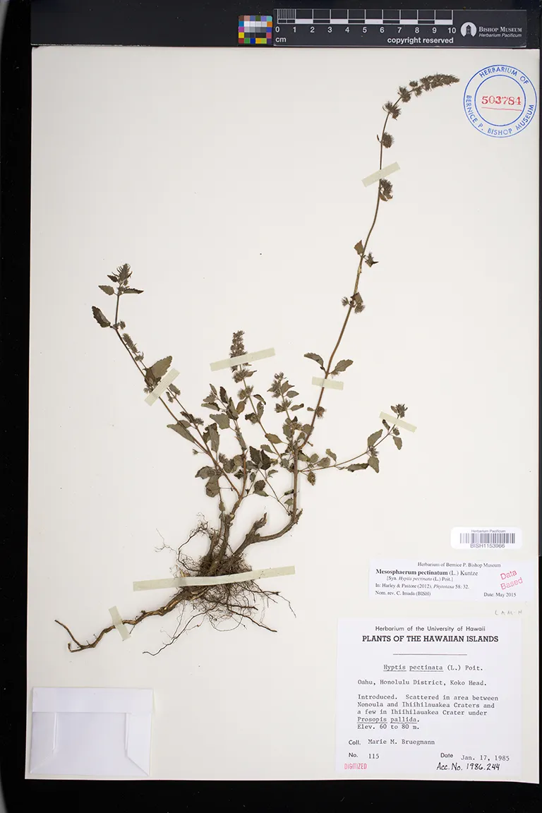 Introduced. Scattered in area between Nonoula and Ihiihilauakea Craters and a few in Ihiihilauakea Crater under Prosopis pallida. |