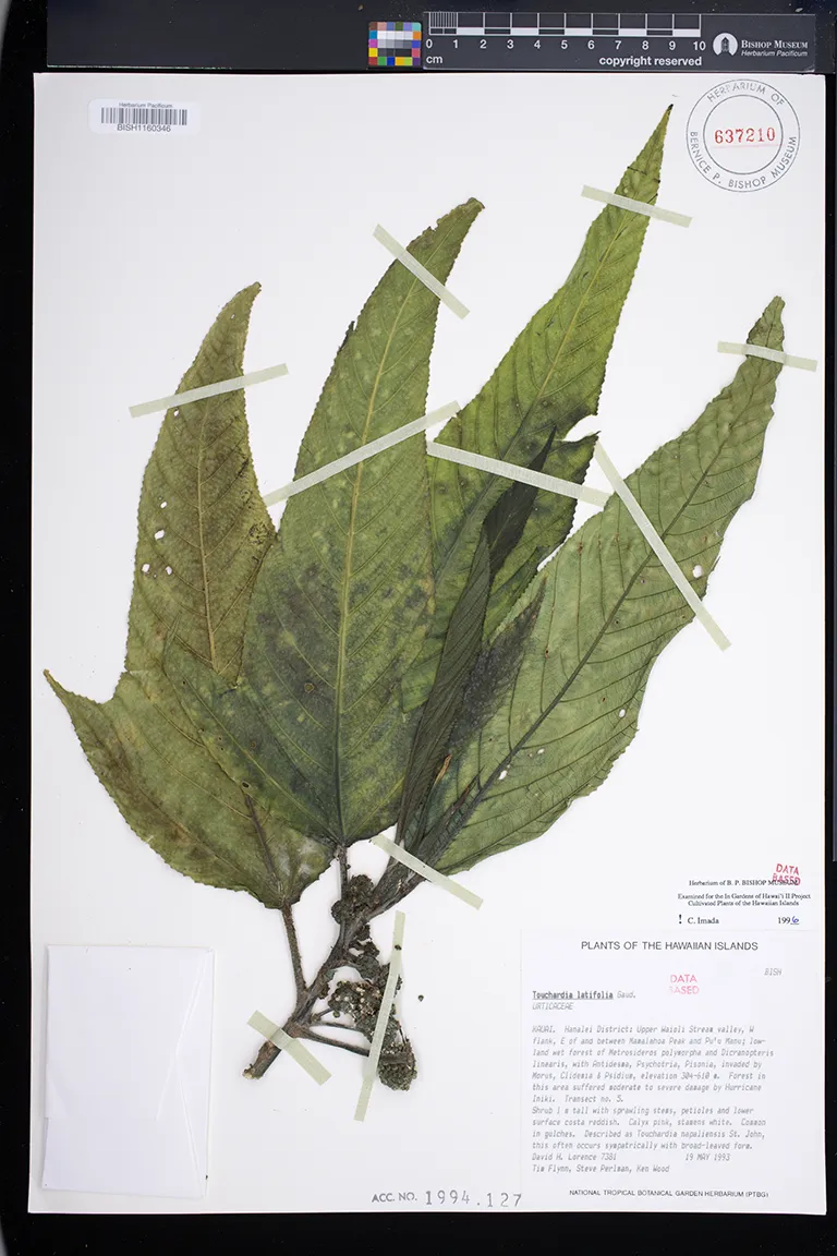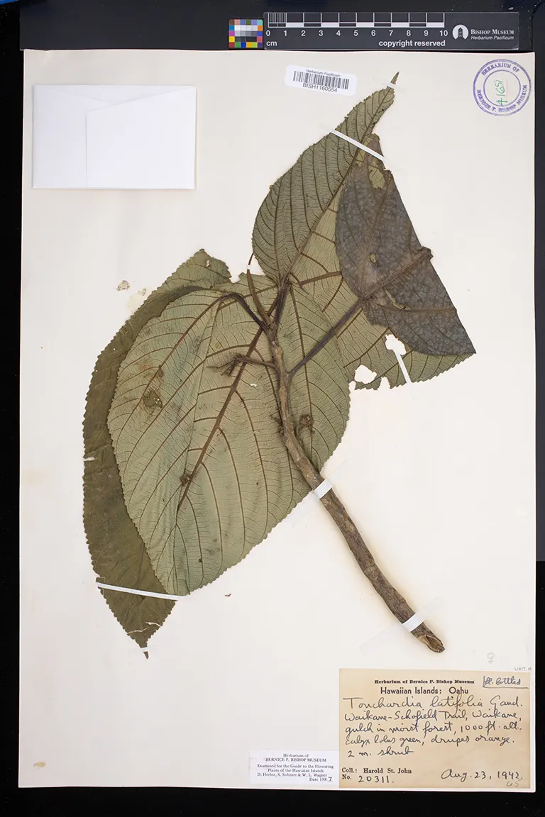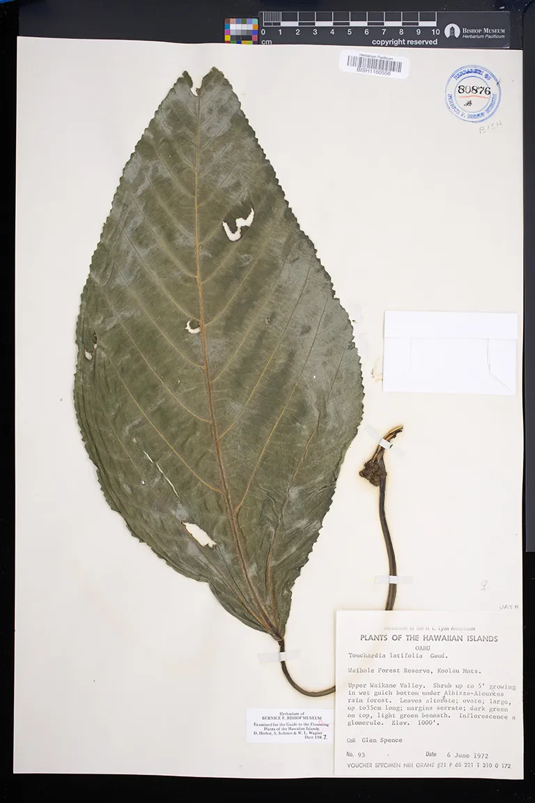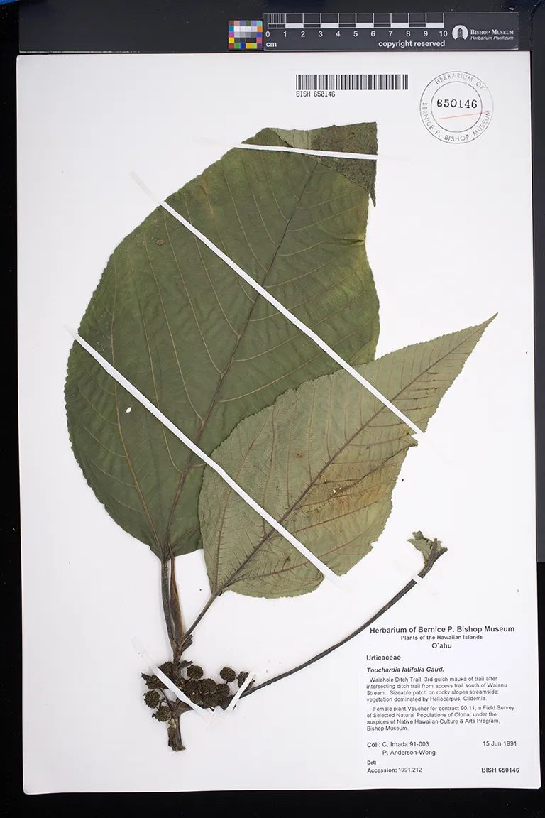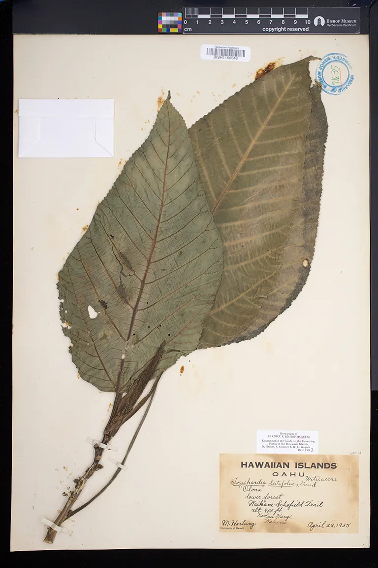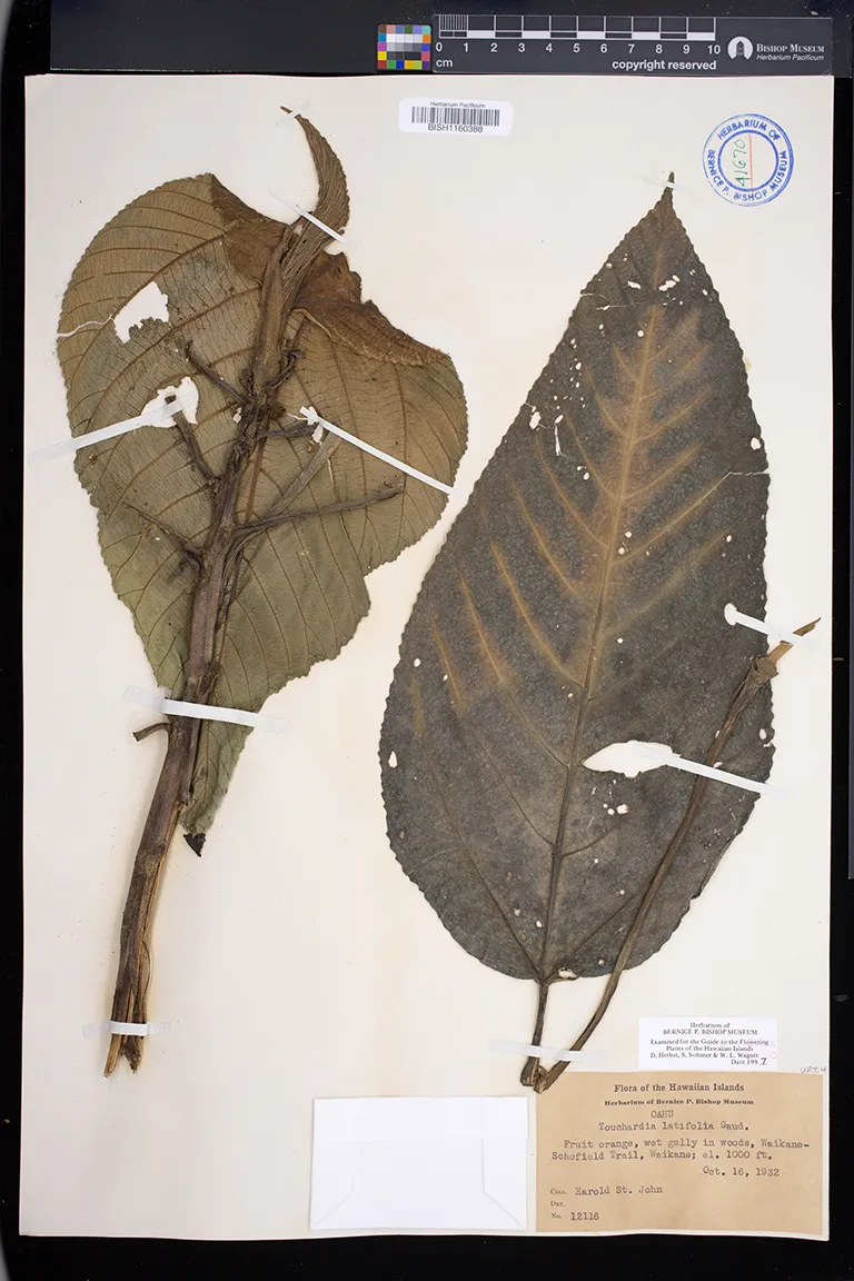 Streamside along bank with Aleurites overstory, Pisonia, Charpentiera, Pipturus, Clidemia, Cordyline & Zingiber. |