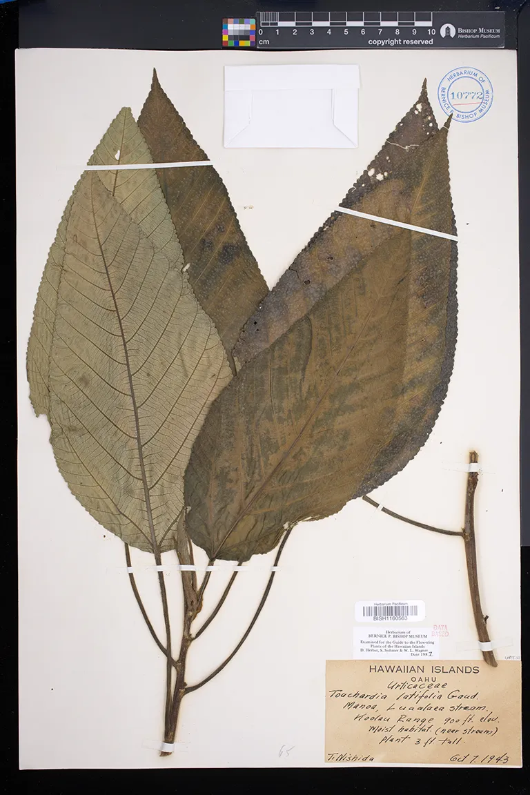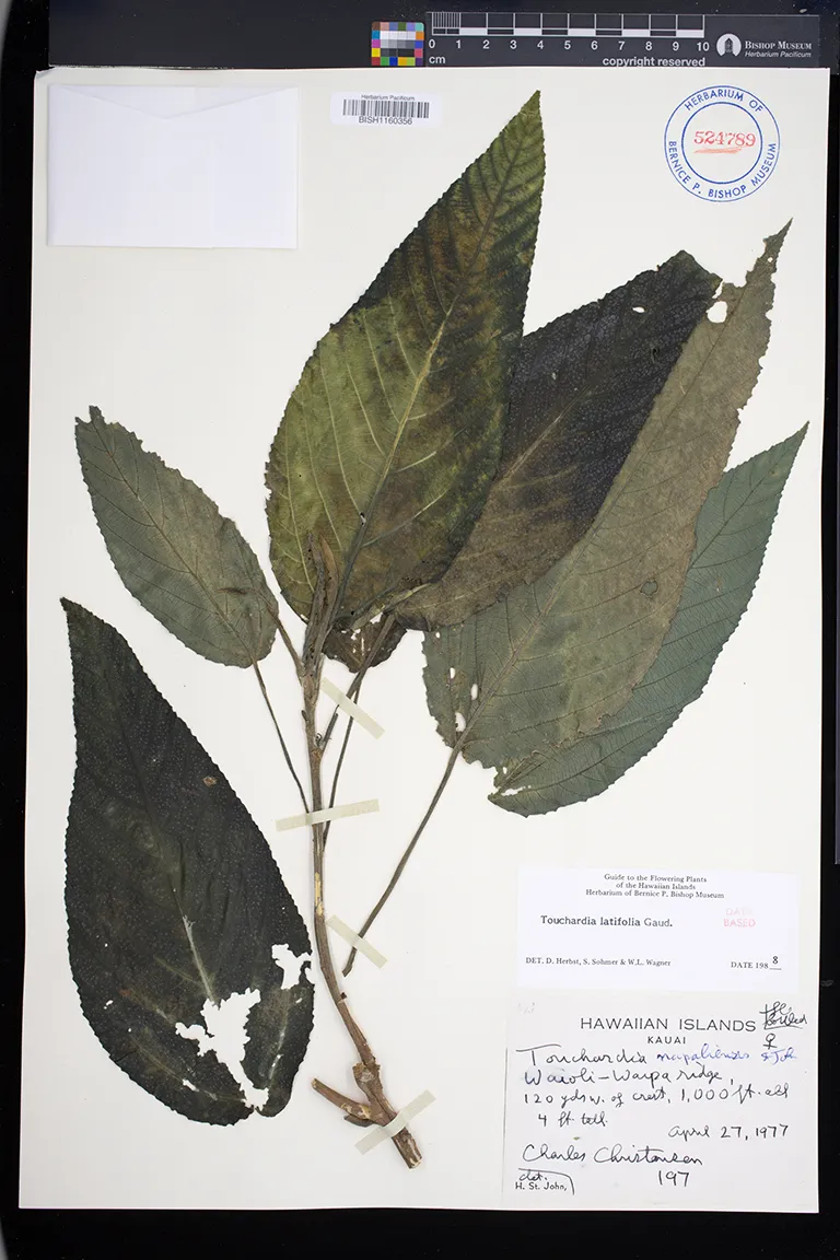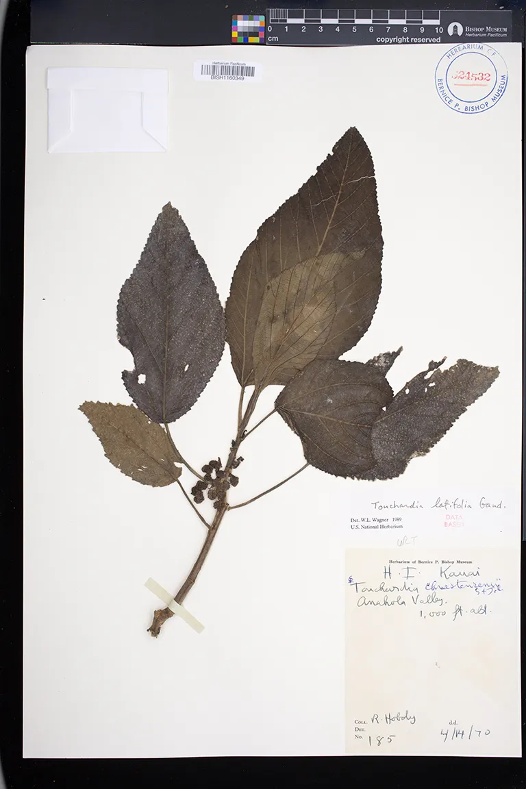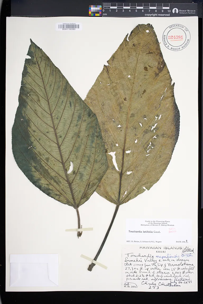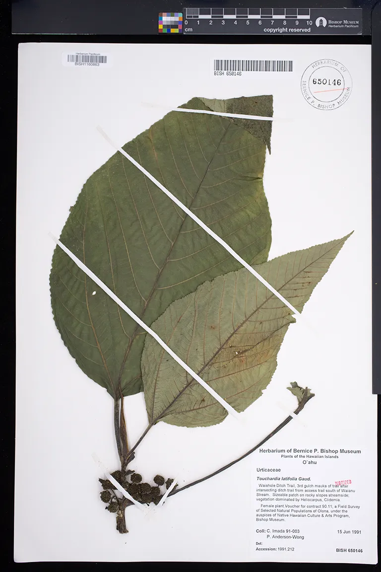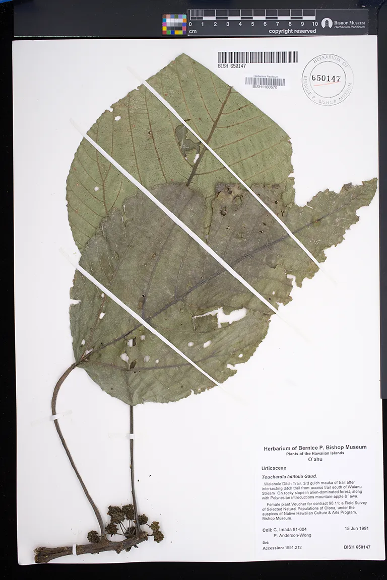 Streamside along bank with Aleurites overstory, Pisonia, Charpentiera, Pipturus, Clidemia, Cordyline & Zingiber. |