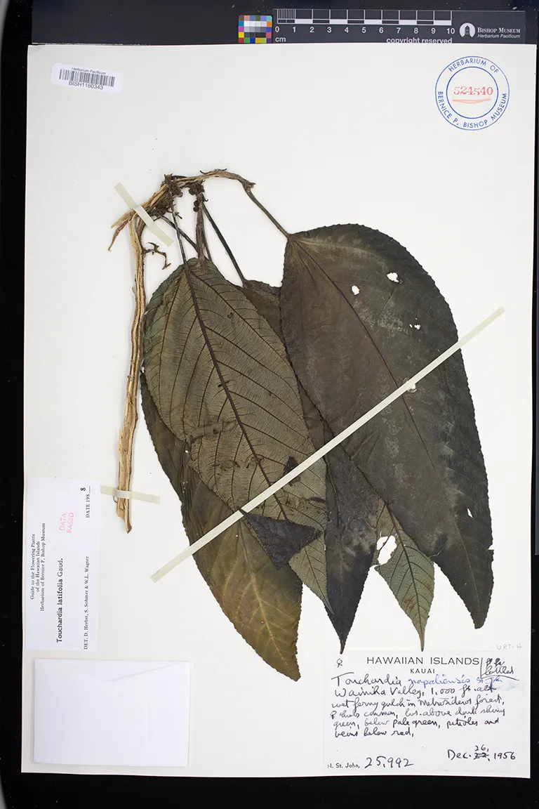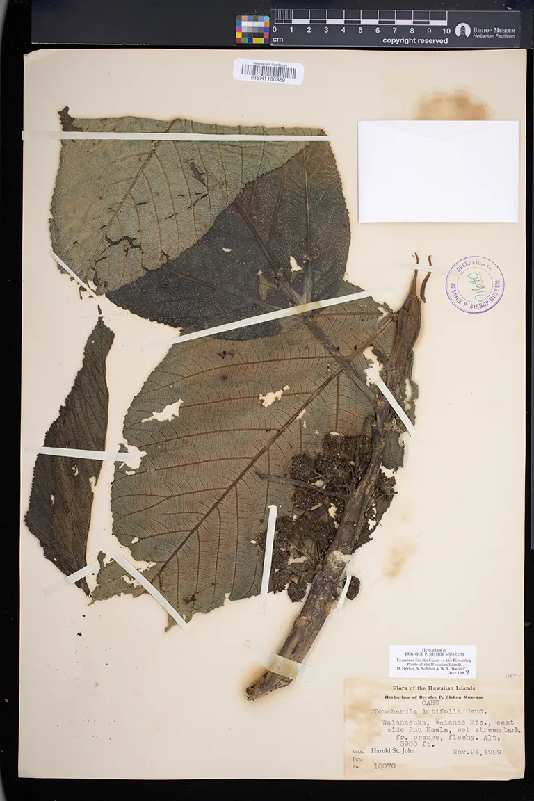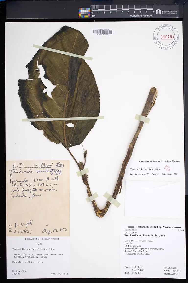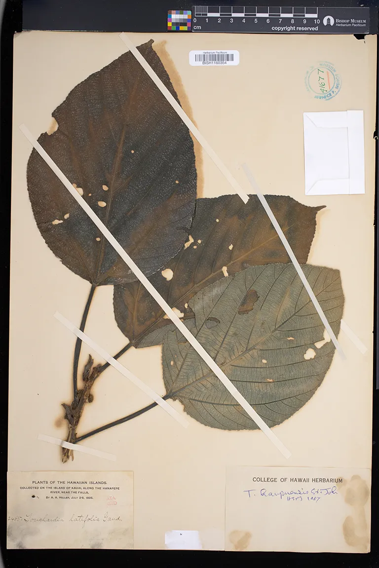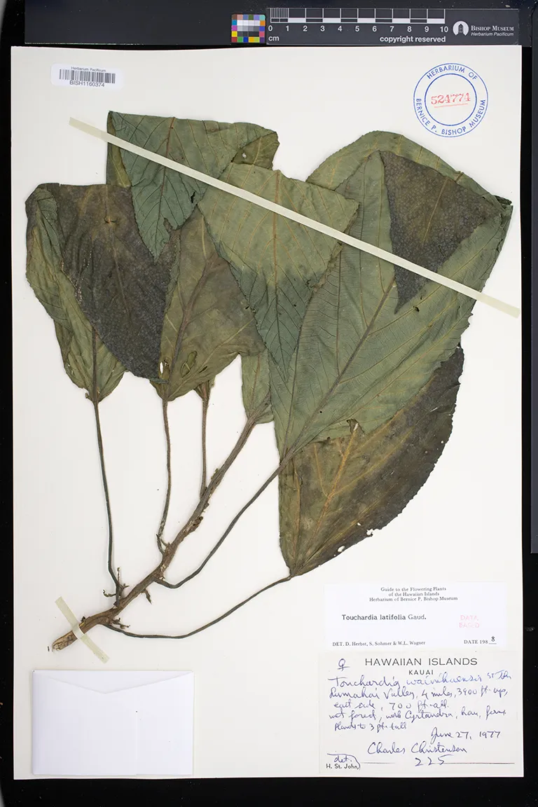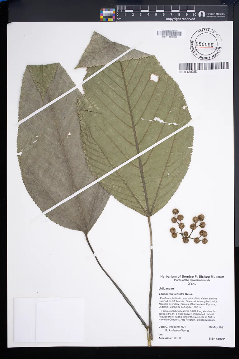 Streamside along bank with Aleurites overstory, Pisonia, Charpentiera, Pipturus, Clidemia, Cordyline & Zingiber. |