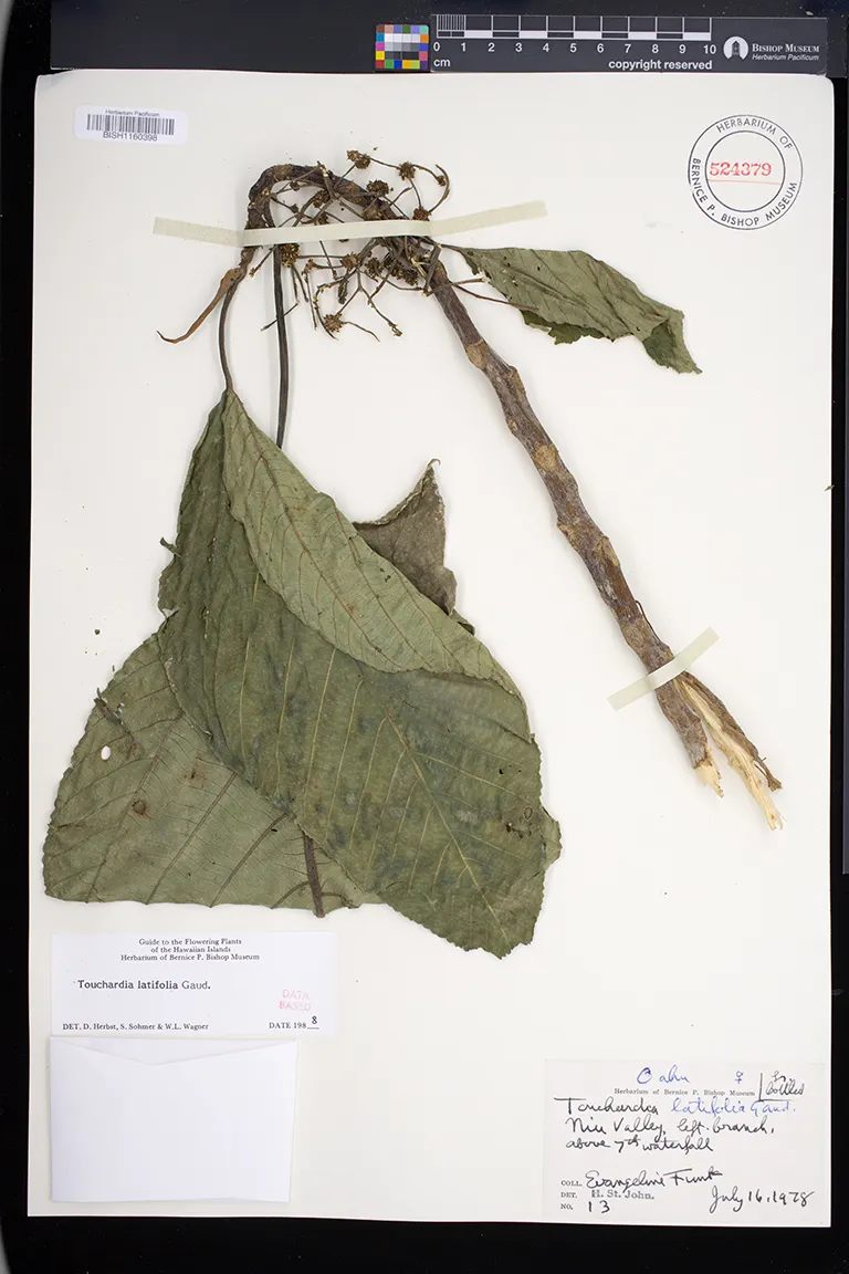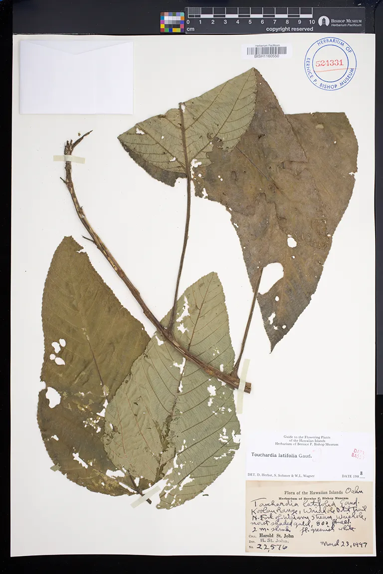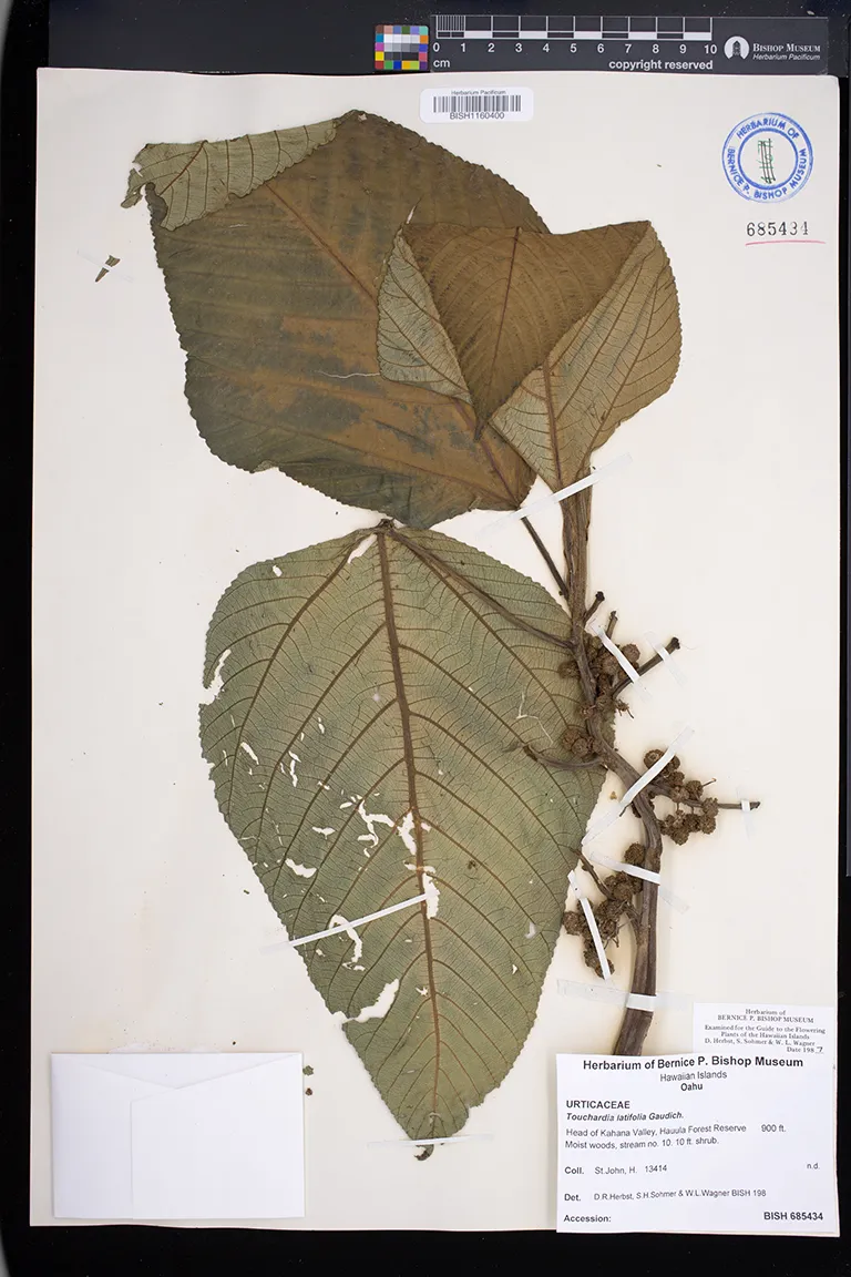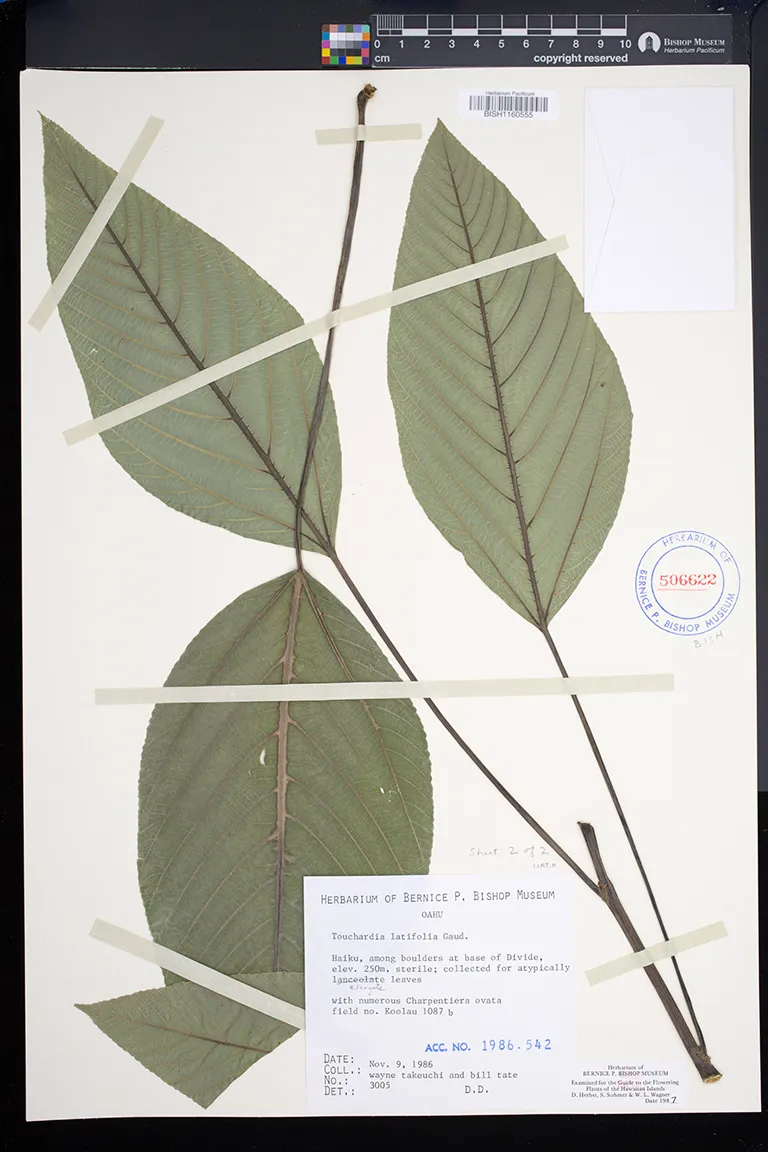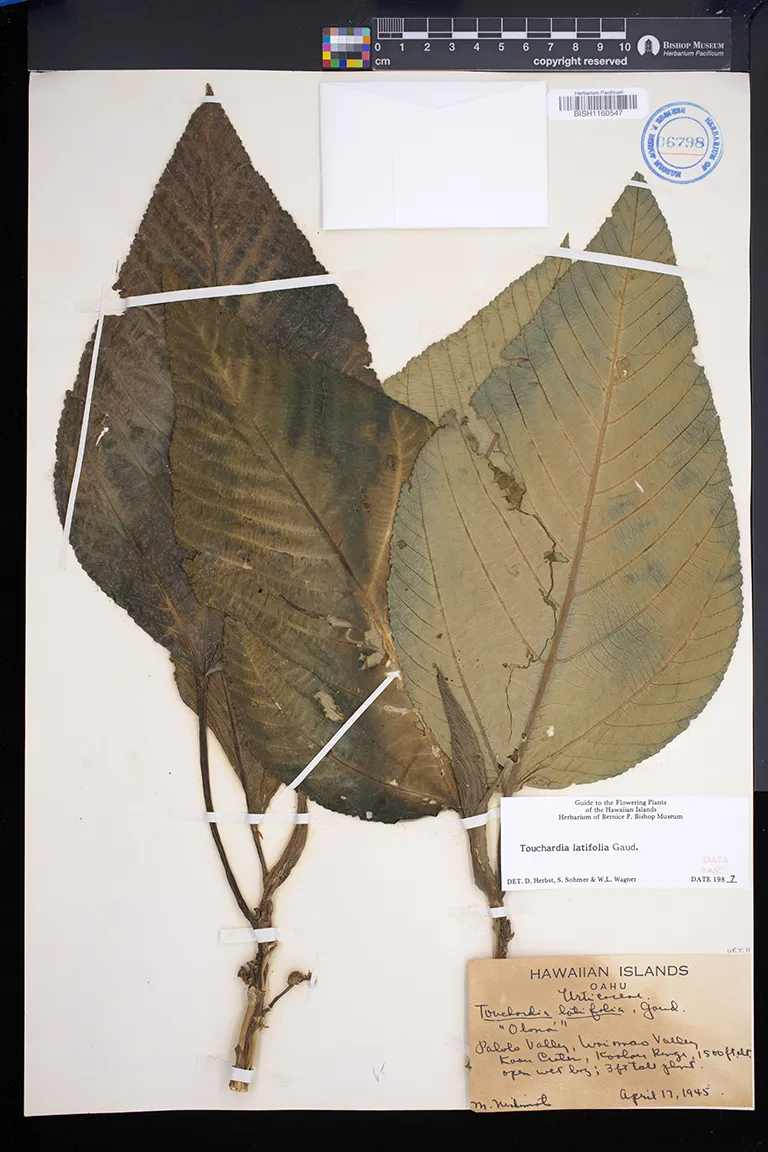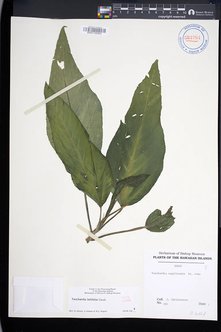Streamside along bank with Aleurites overstory, Pisonia, Charpentiera, Pipturus, Clidemia, Cordyline & Zingiber. |