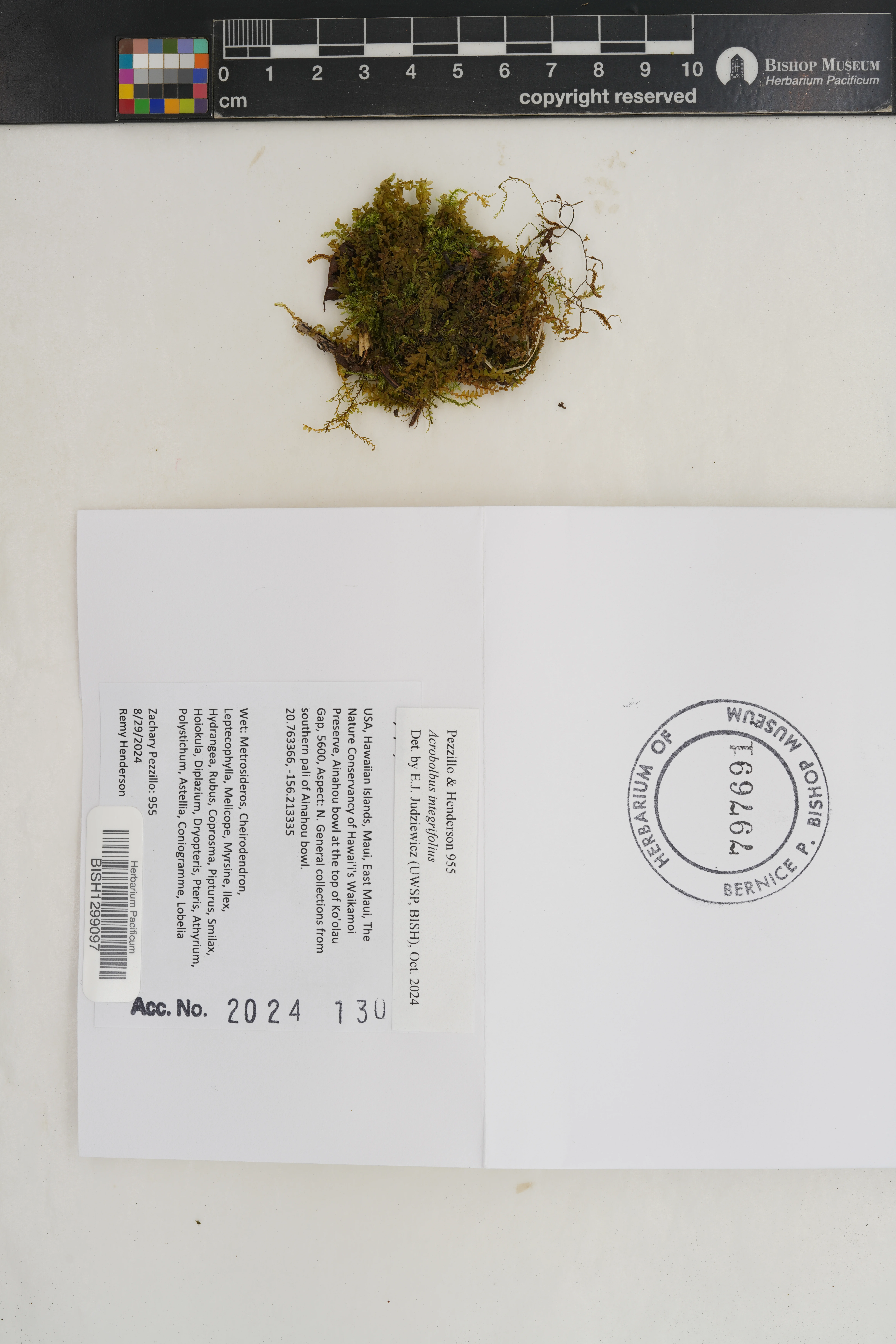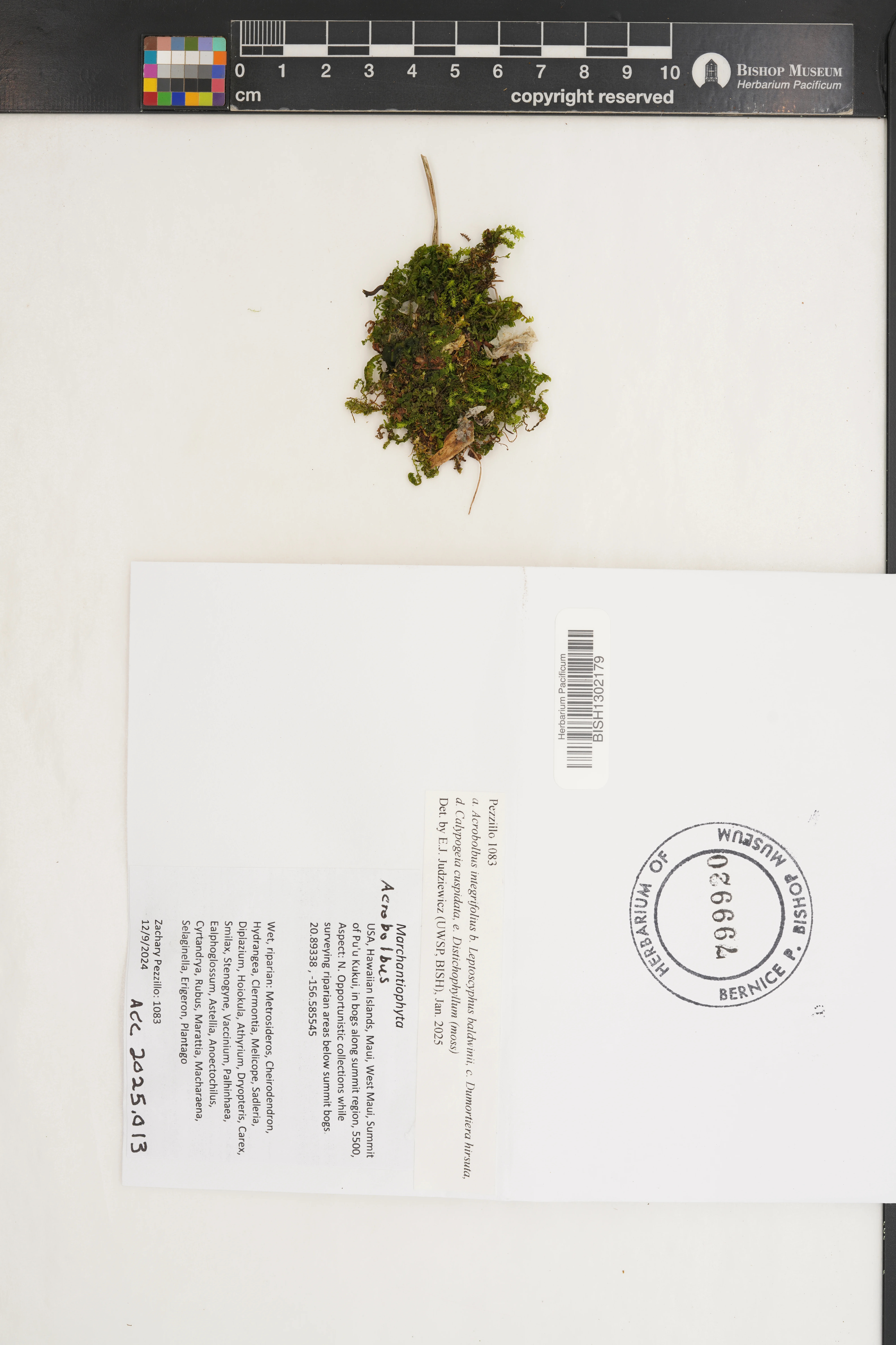 Kingdom: Viridiplantae Phylum: Marchantiophyta Class/Clade: Jungermanniopsida Order: Jungermanniales Family: Acrobolbaceae Genus: Acrobolbus