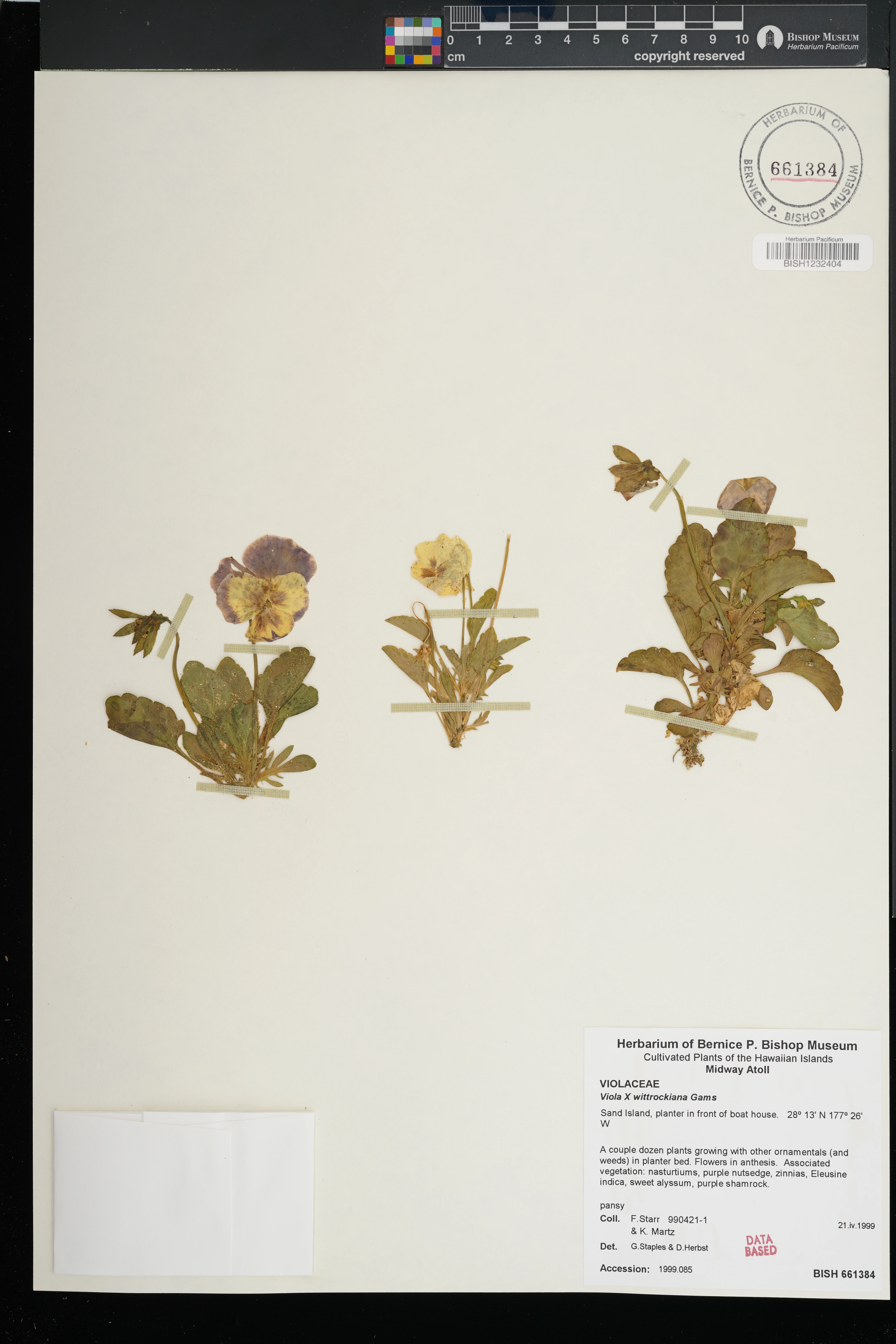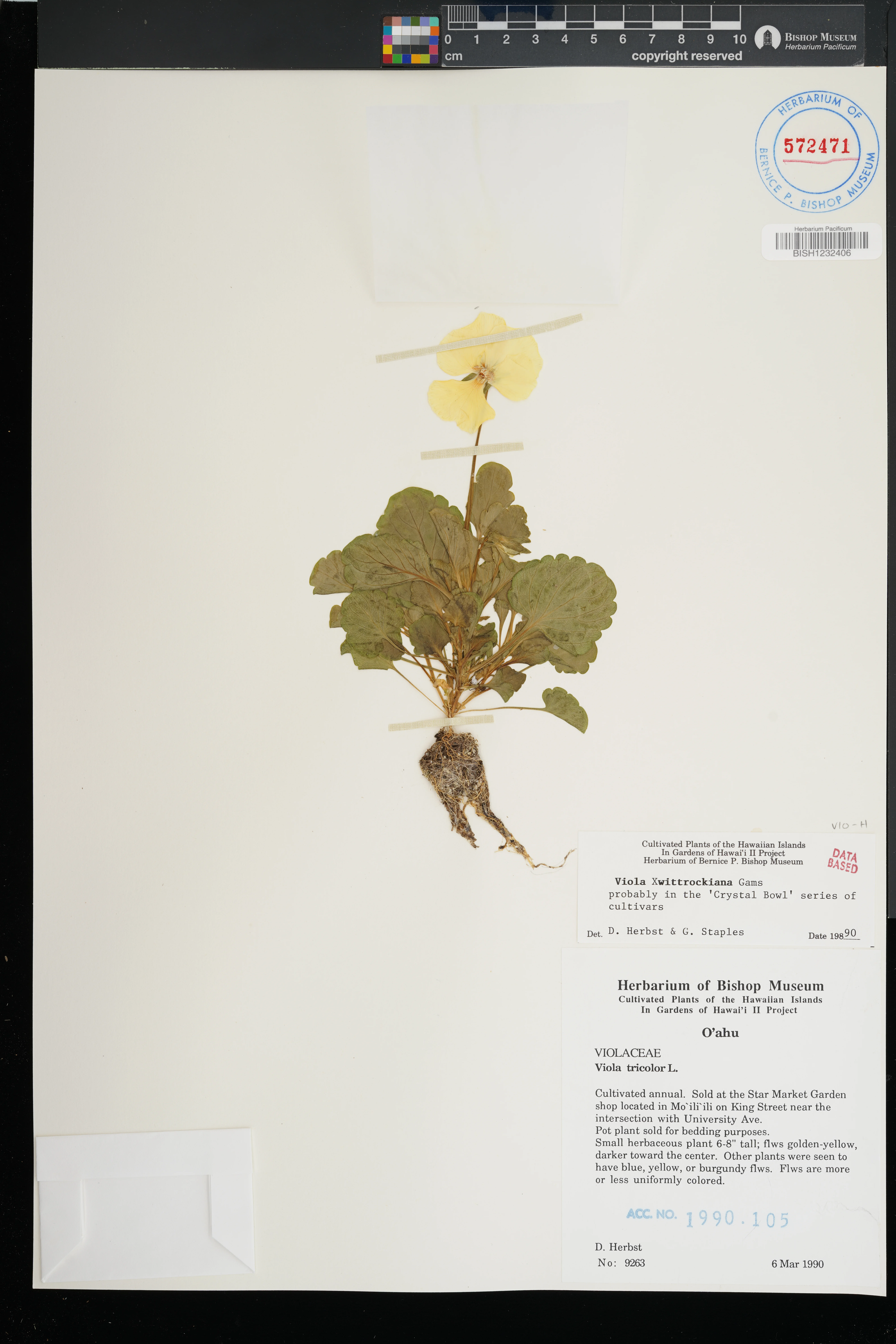 | 3 | Viola × wittrockiana | Gams | Honolulu; Sold at Star Market Garden Shop, King St | PRESERVED_SPECIMEN | Herbst, D.R. | 9263 | Oahu | BISH | 3/6/1990 |