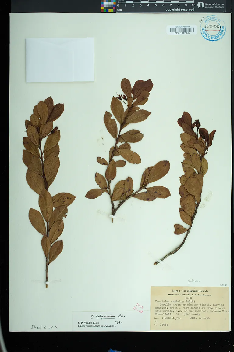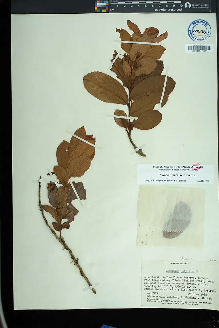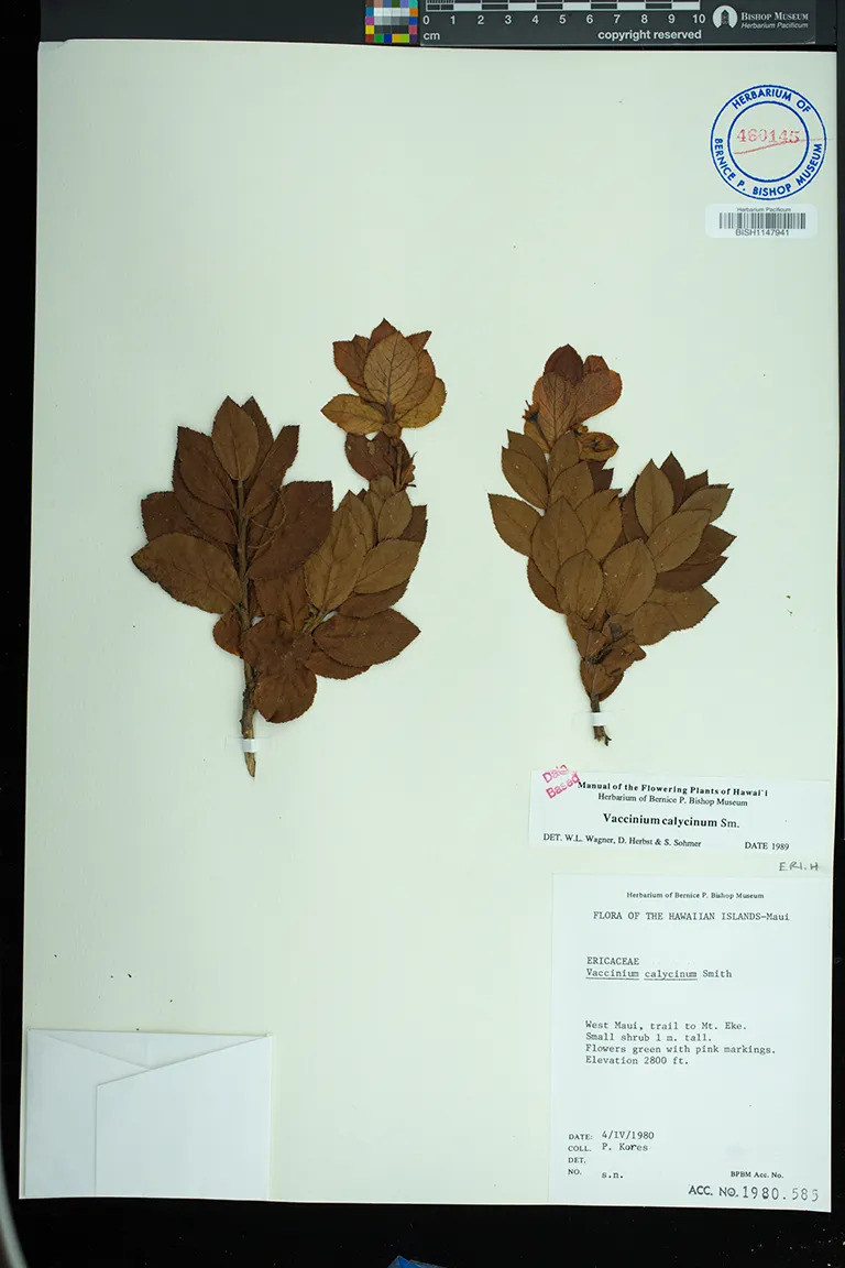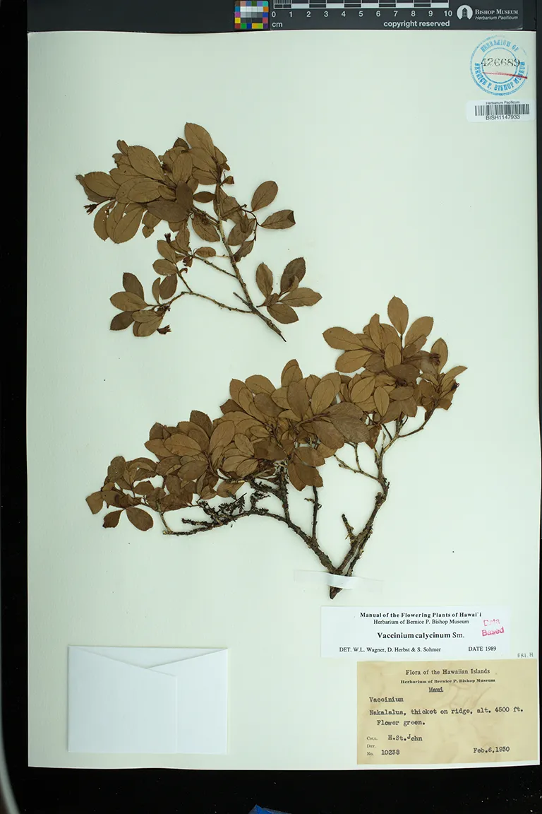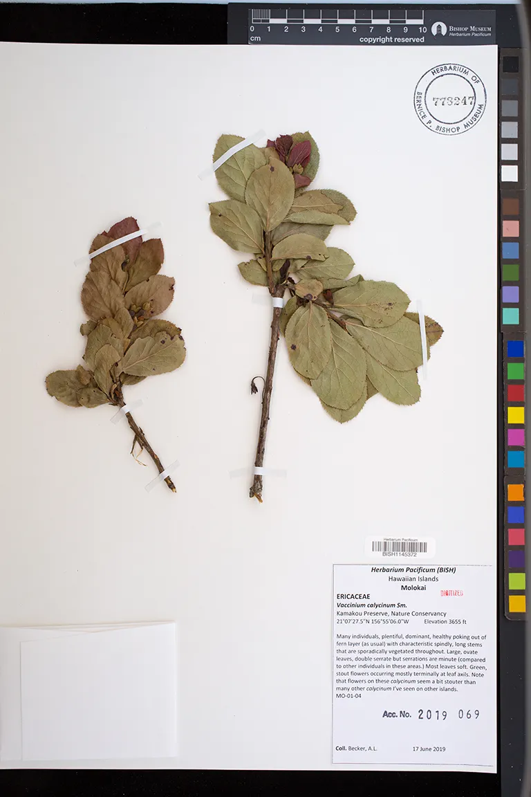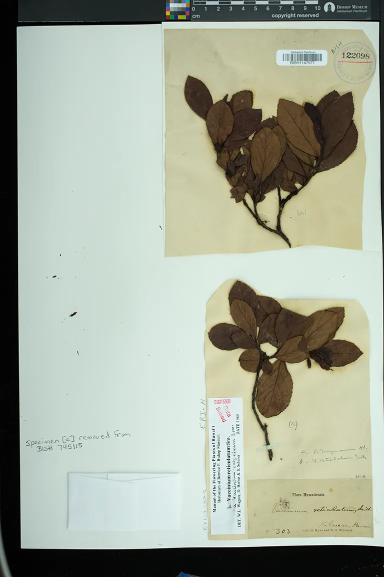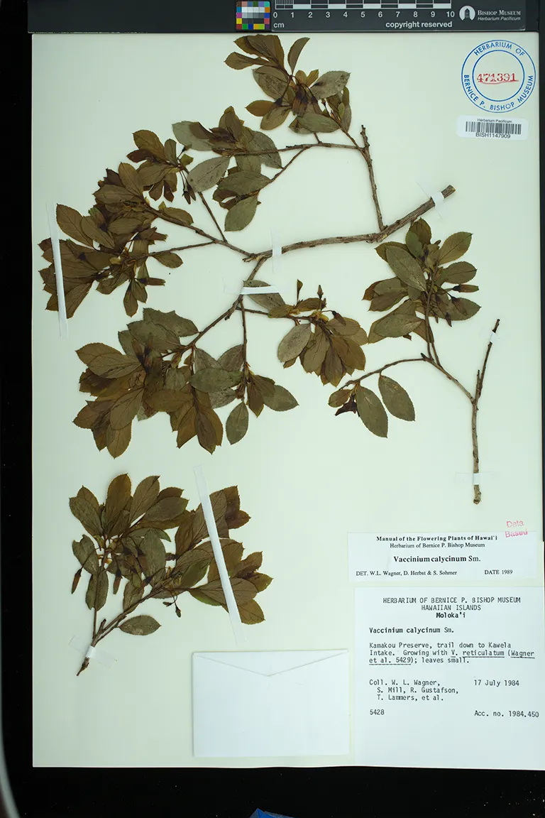 On a windswept ridgetop. Specimen was situated on open ground in 1-2 meter Ohia Montane Wet Shrubland. Associated vegetation: Metrosideros polymorpha, Cheirodendron trigynum, Eragrostis grandis, Styphelia tameiameiae, Palhinhaea cernua, Isachne distichophylla, Machaerina angustifolia, Plantago pachyphylla, Tibouchina herbacea. |