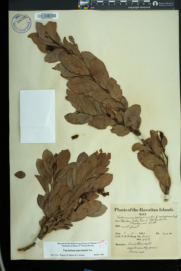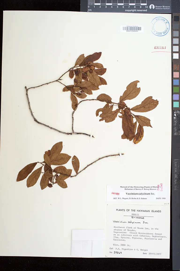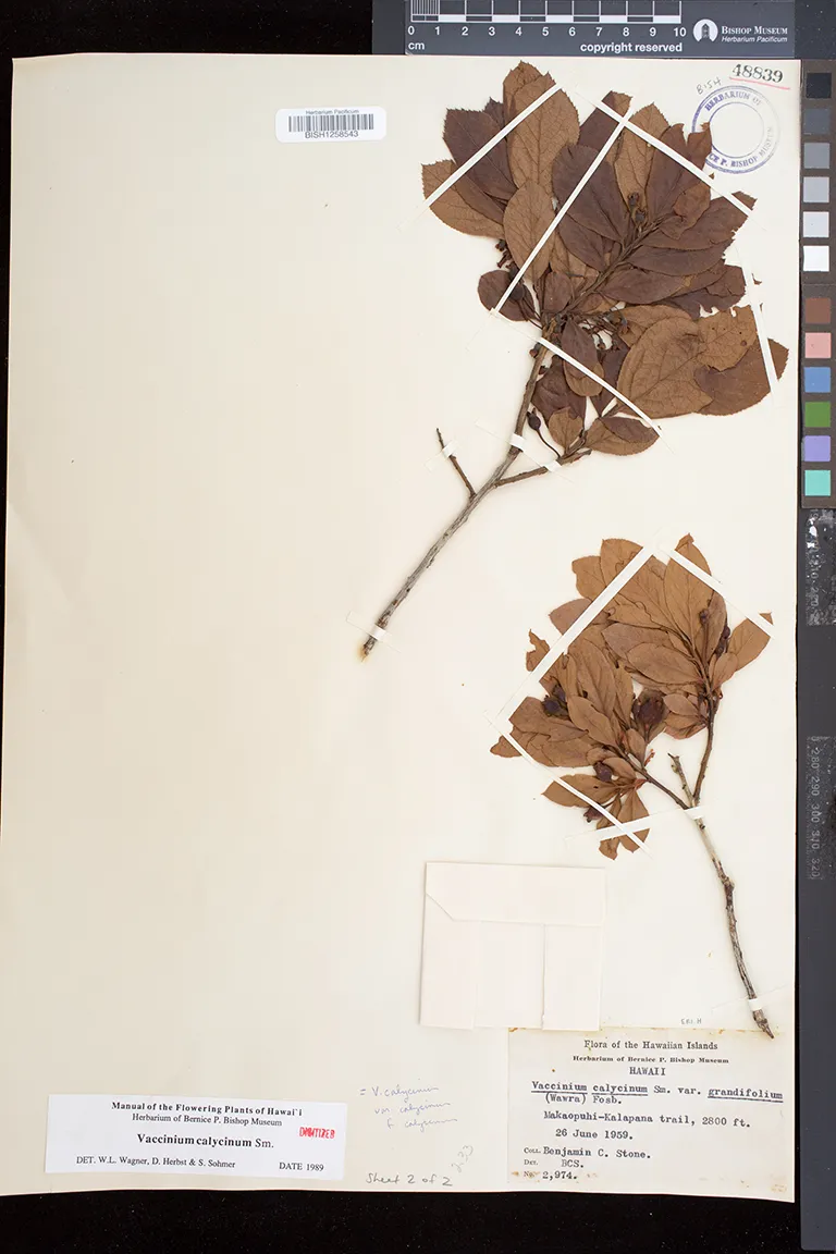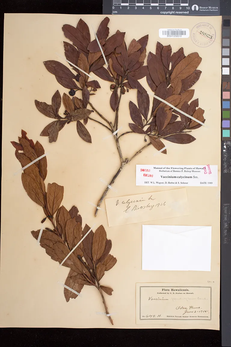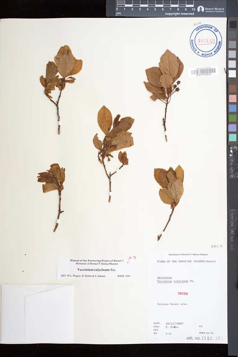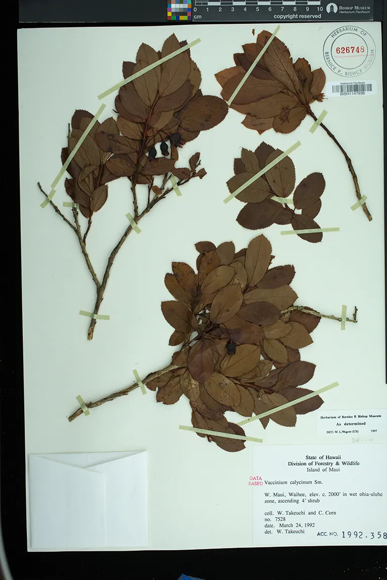 On a windswept ridgetop. Specimen was situated on open ground in 1-2 meter Ohia Montane Wet Shrubland. Associated vegetation: Metrosideros polymorpha, Cheirodendron trigynum, Eragrostis grandis, Styphelia tameiameiae, Palhinhaea cernua, Isachne distichophylla, Machaerina angustifolia, Plantago pachyphylla, Tibouchina herbacea. |