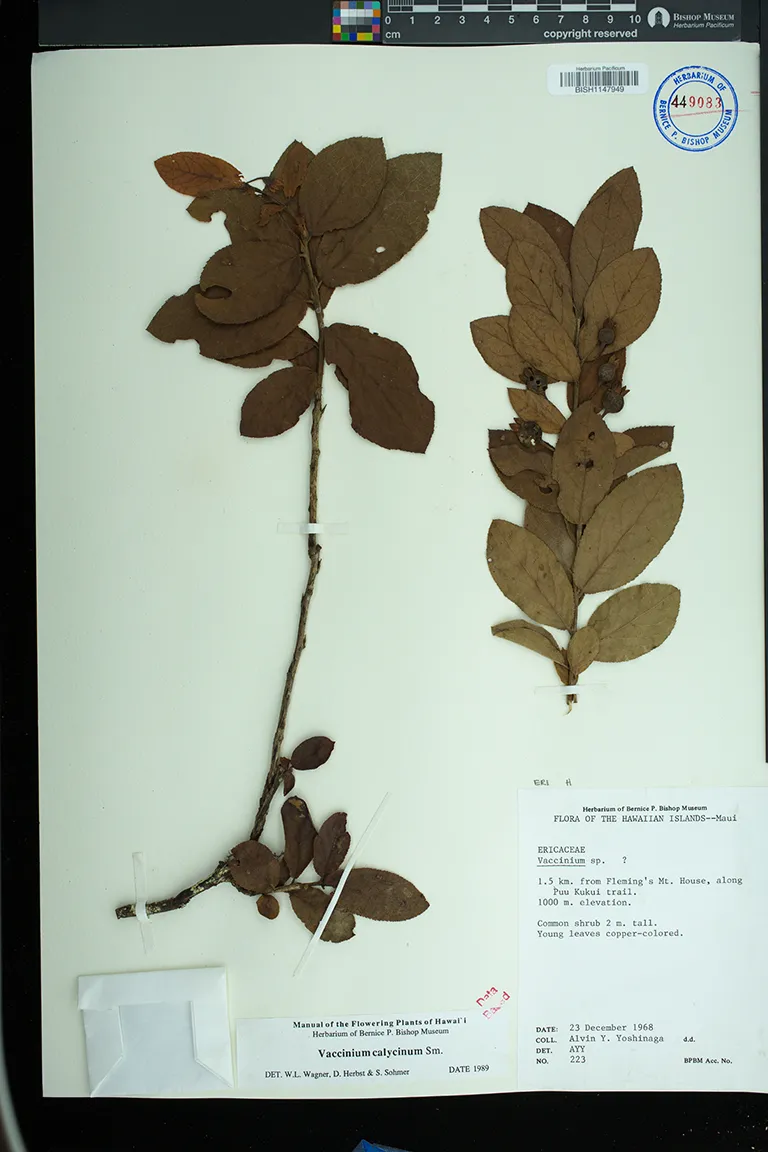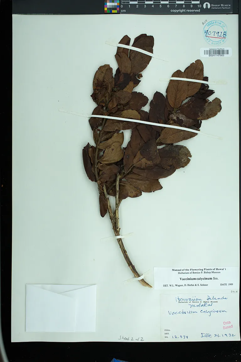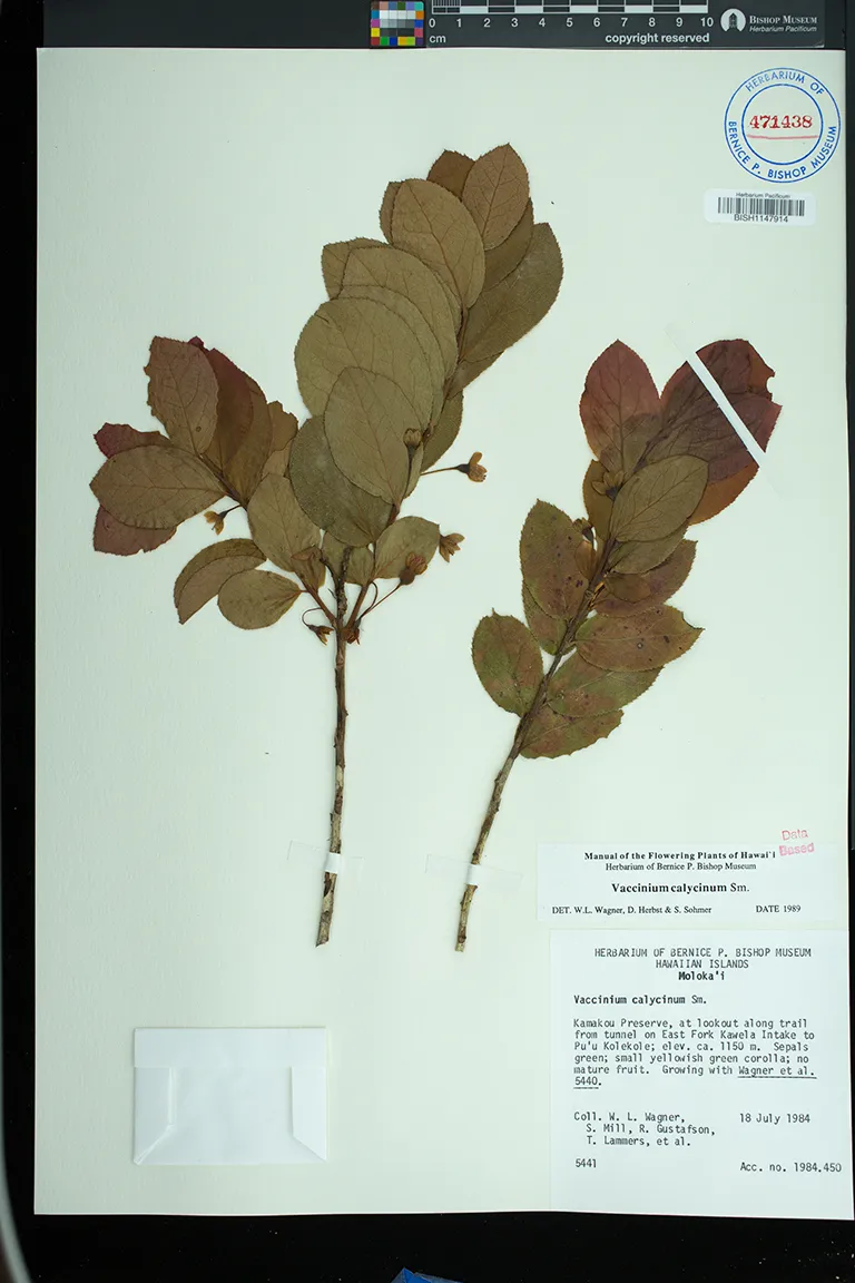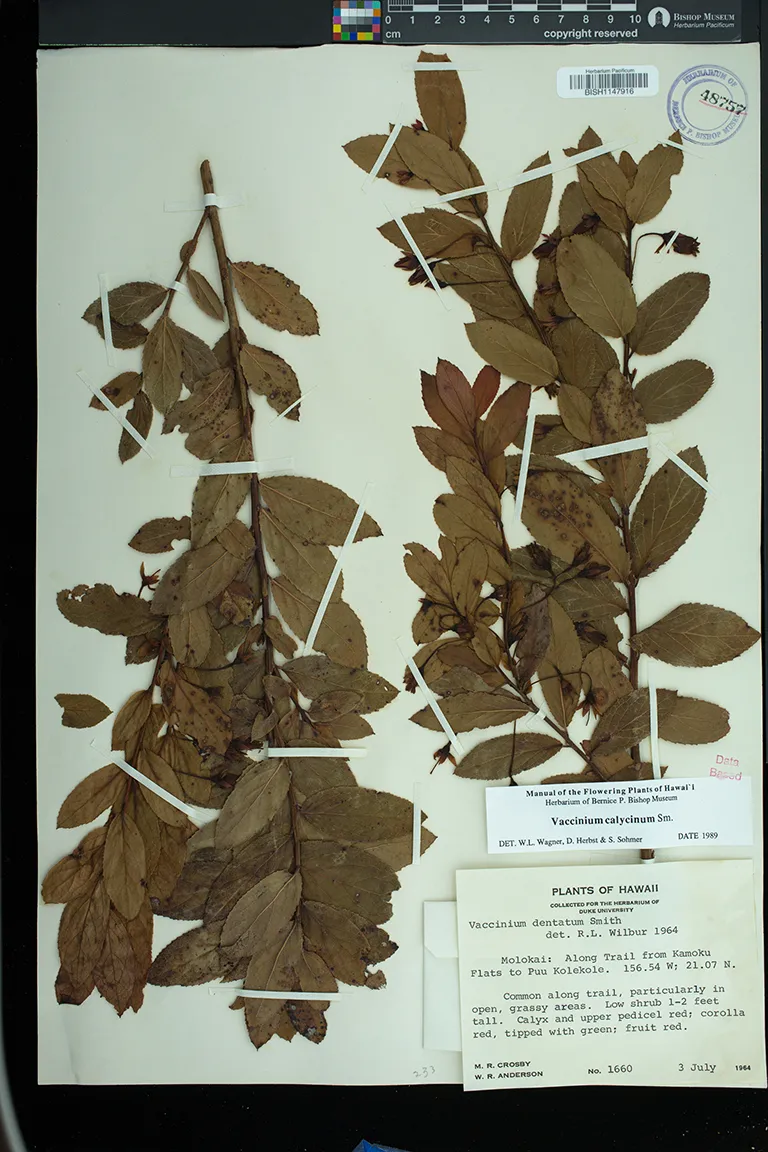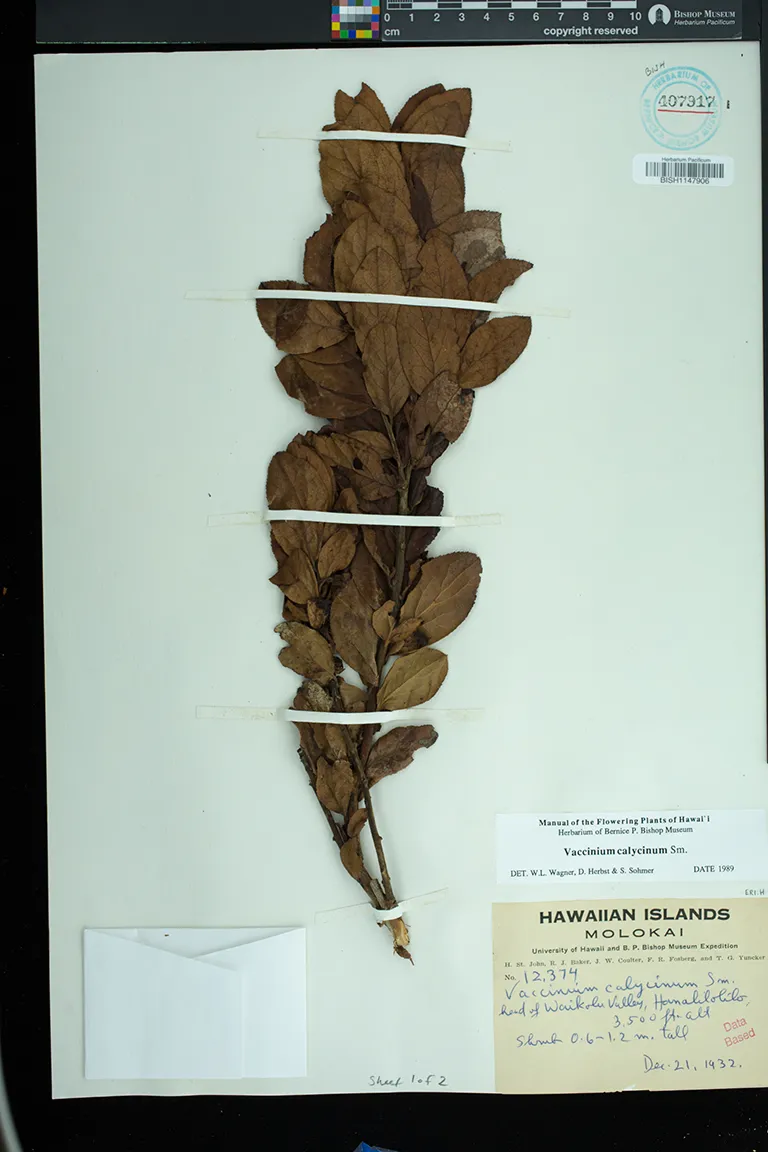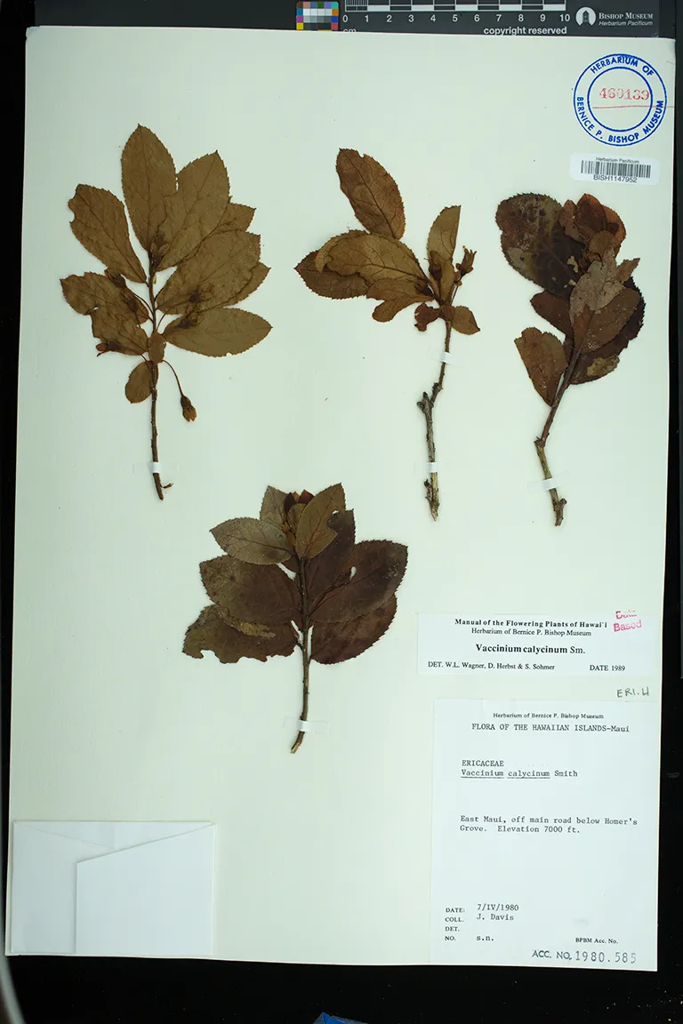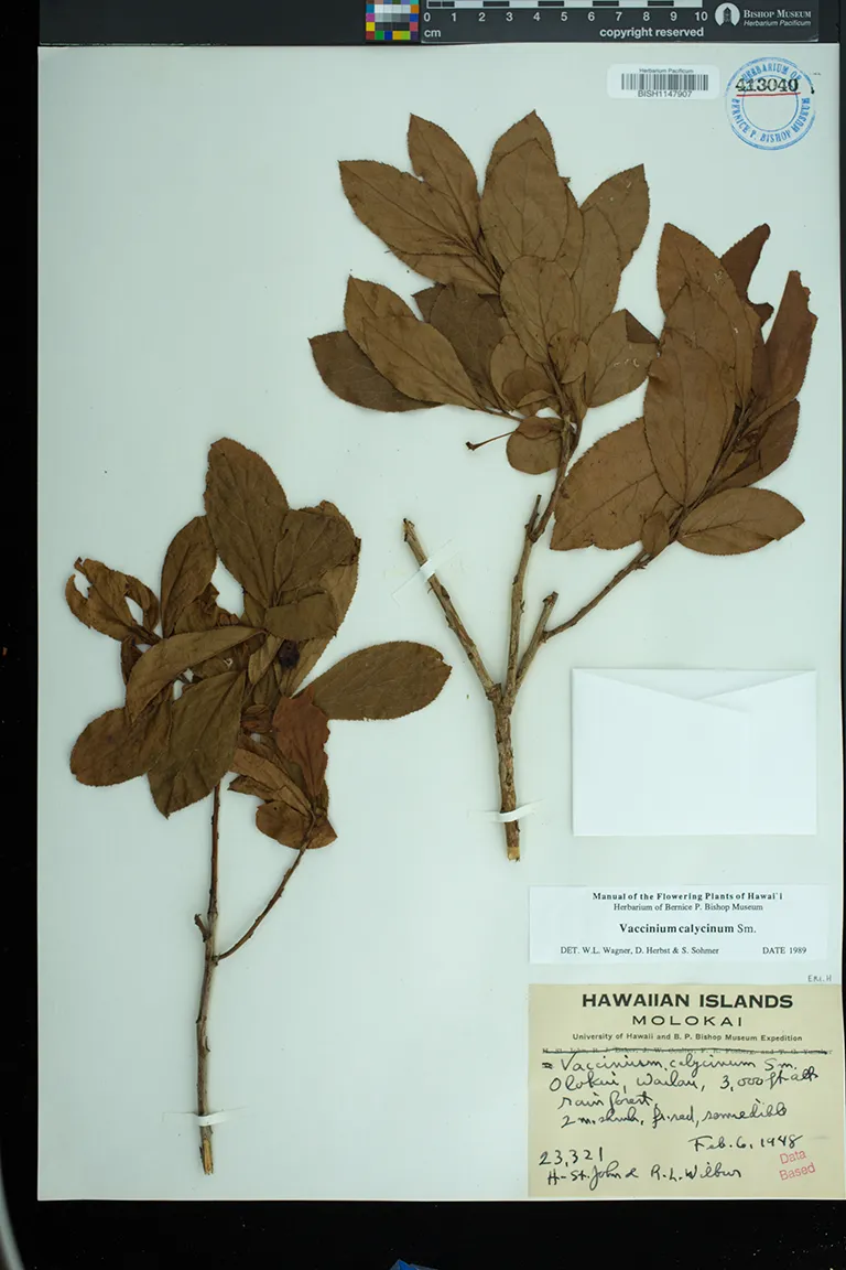 On a windswept ridgetop. Specimen was situated on open ground in 1-2 meter Ohia Montane Wet Shrubland. Associated vegetation: Metrosideros polymorpha, Cheirodendron trigynum, Eragrostis grandis, Styphelia tameiameiae, Palhinhaea cernua, Isachne distichophylla, Machaerina angustifolia, Plantago pachyphylla, Tibouchina herbacea. |