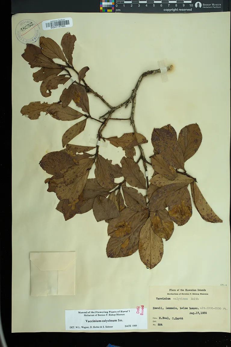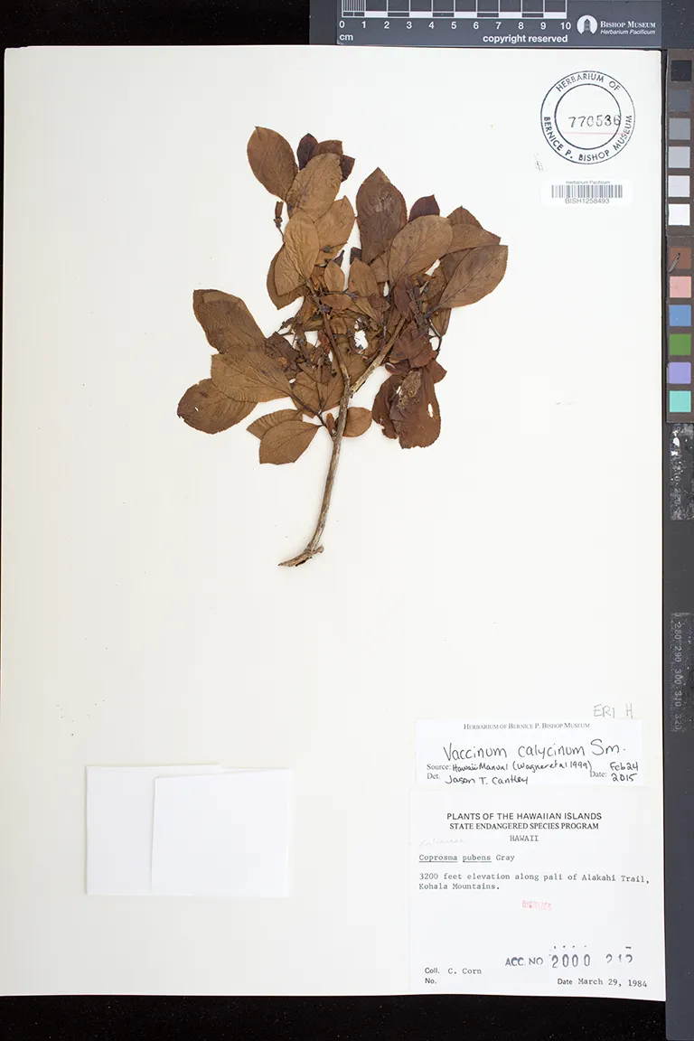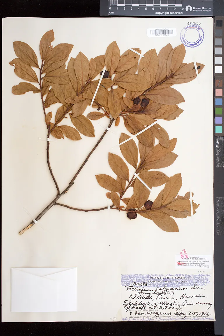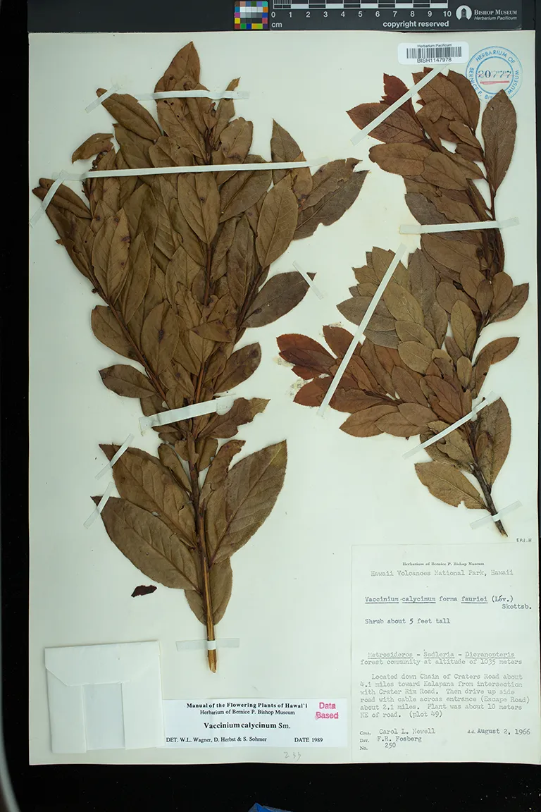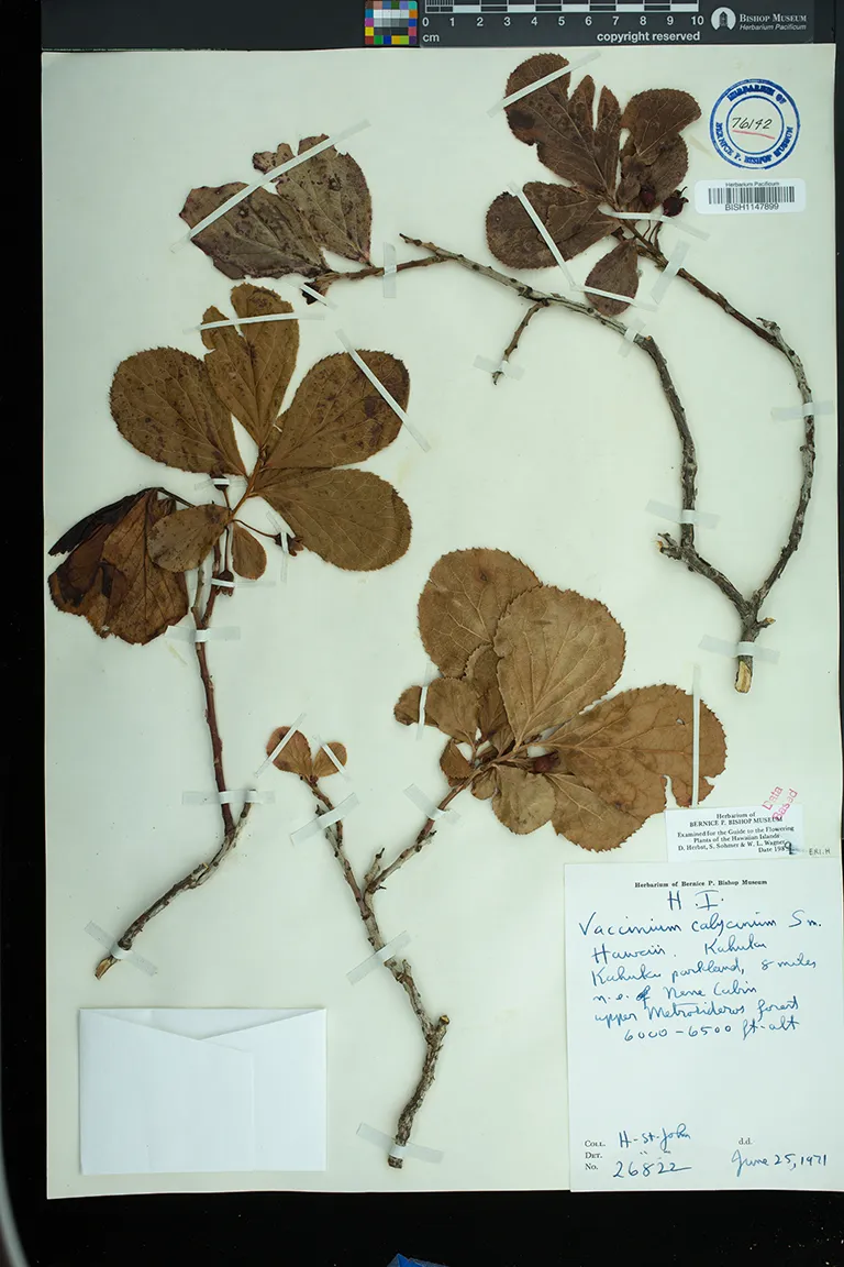 bog; uncommon at border of bog and rainforest; with shrubby Metrosideros polymorpha and Coprosma elliptica |