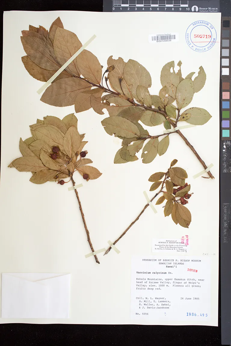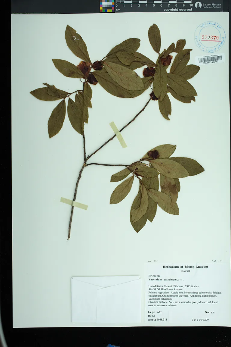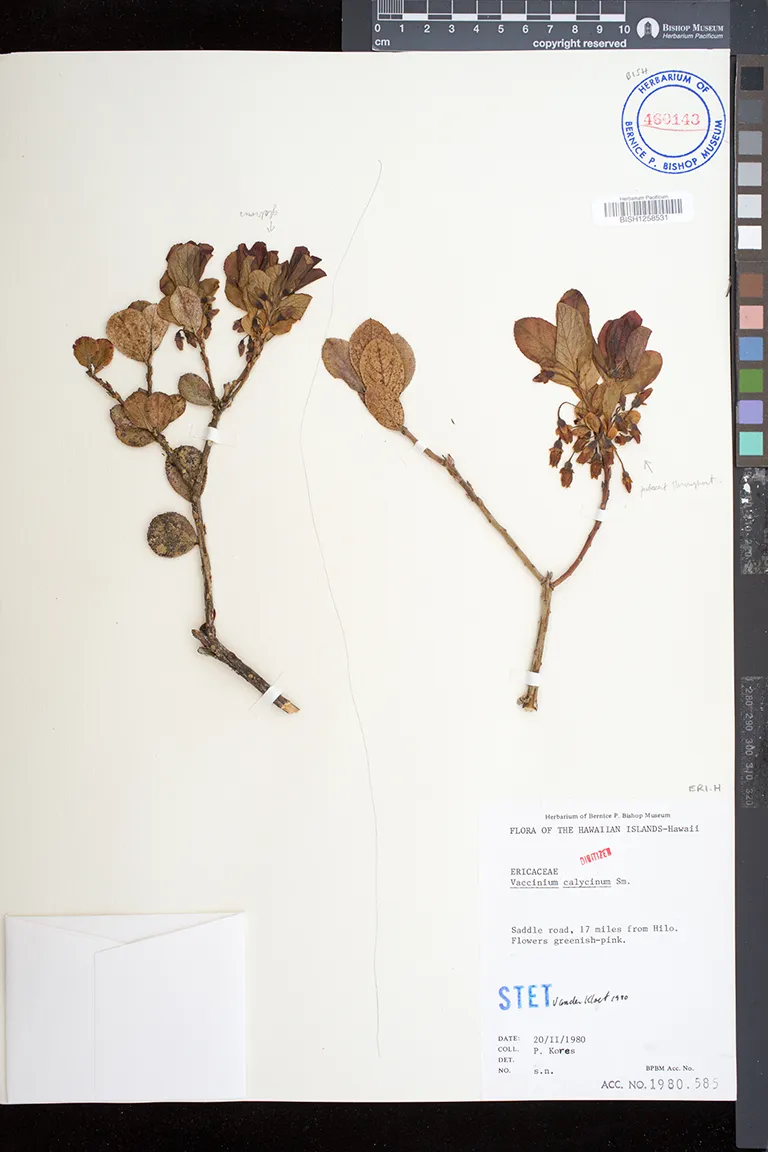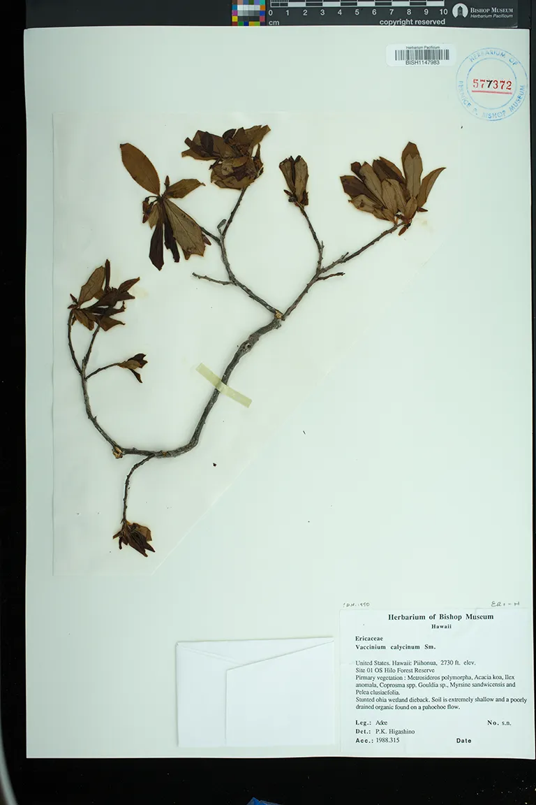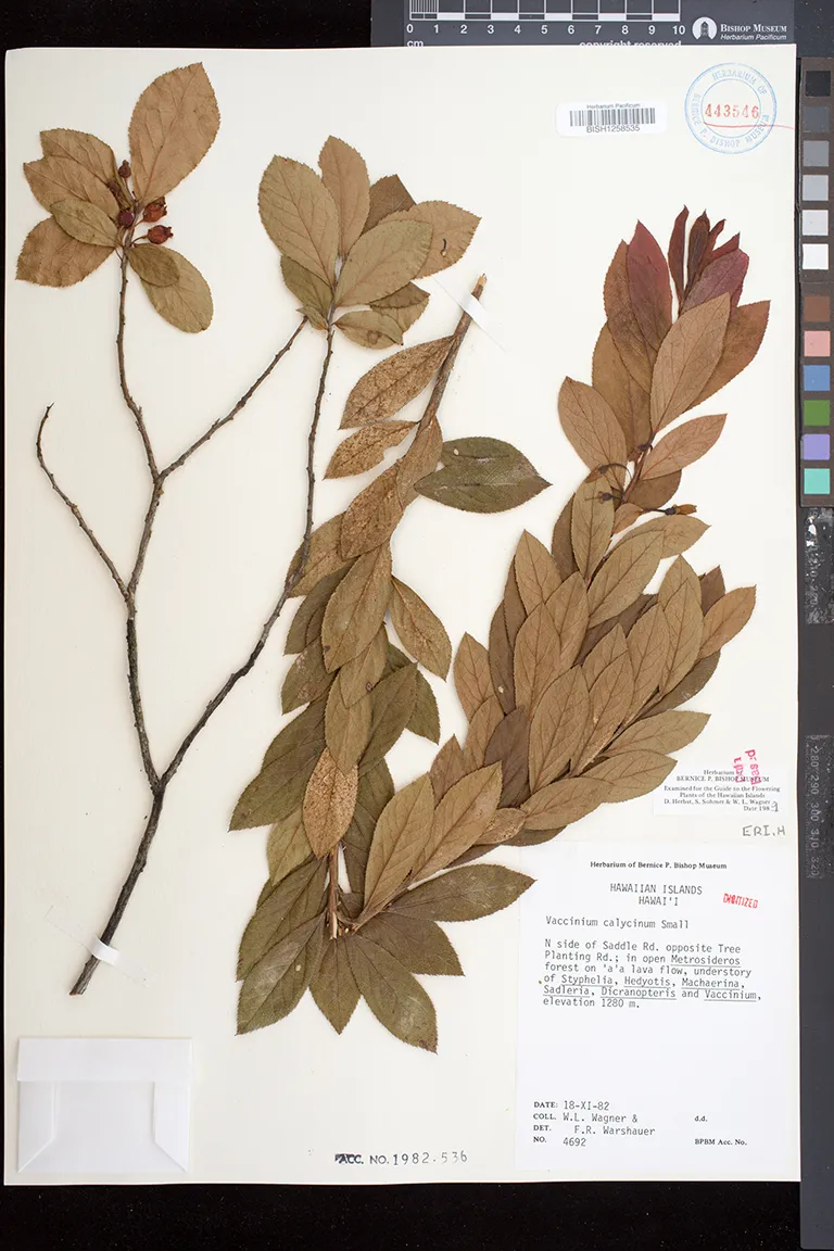 bog; uncommon at border of bog and rainforest; with shrubby Metrosideros polymorpha and Coprosma elliptica |
