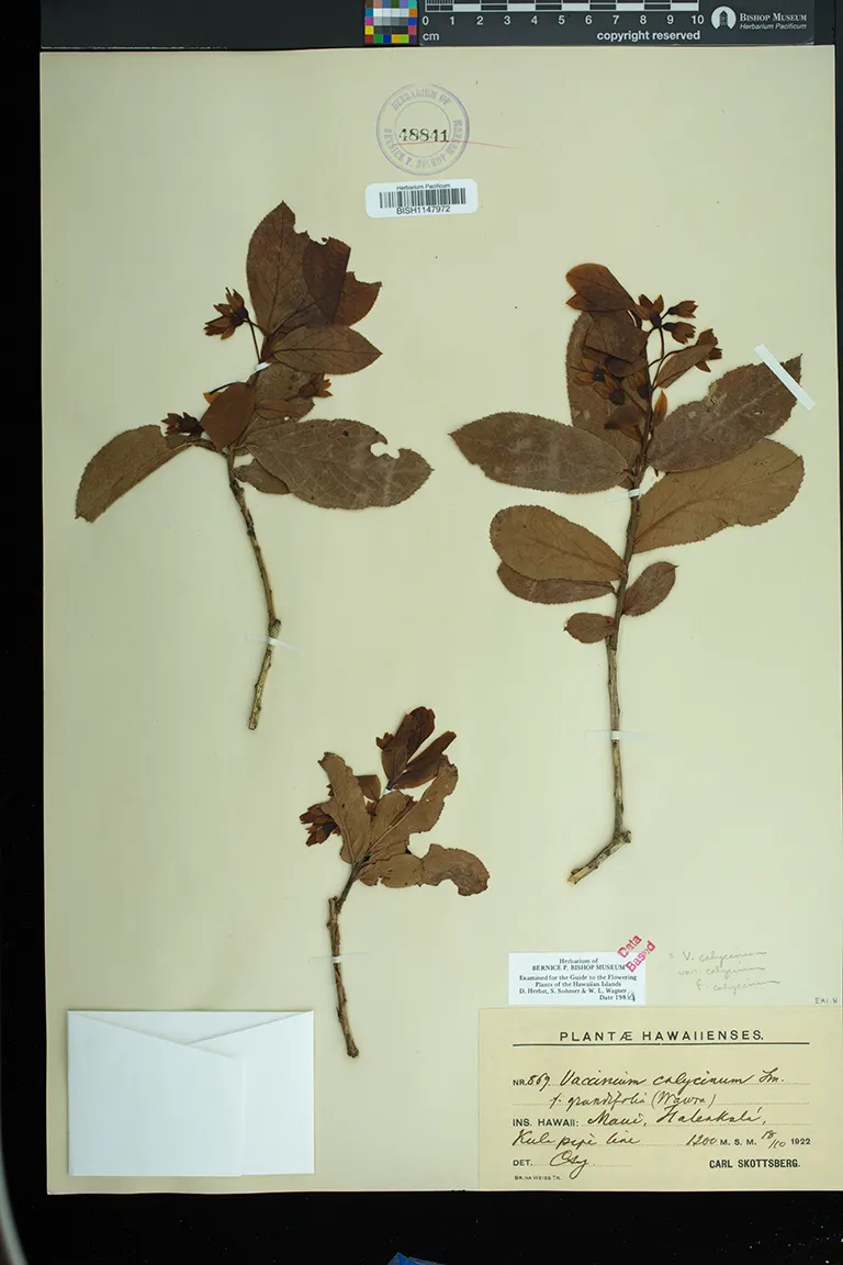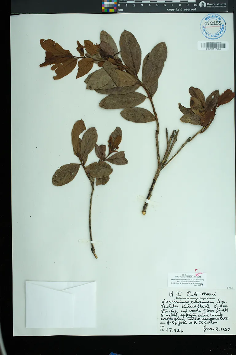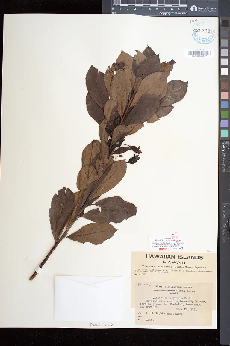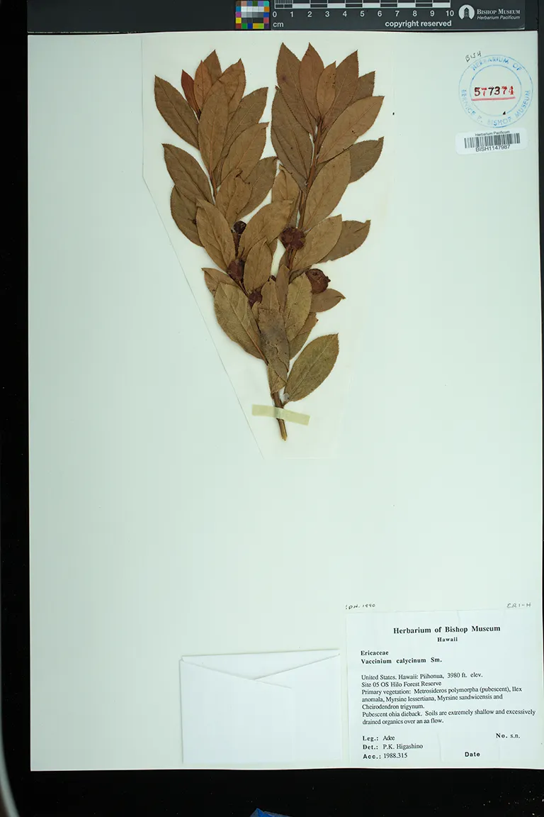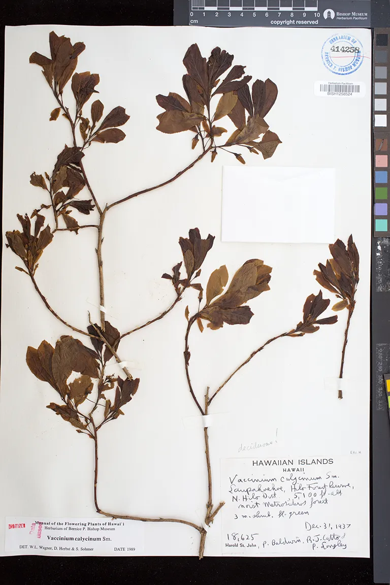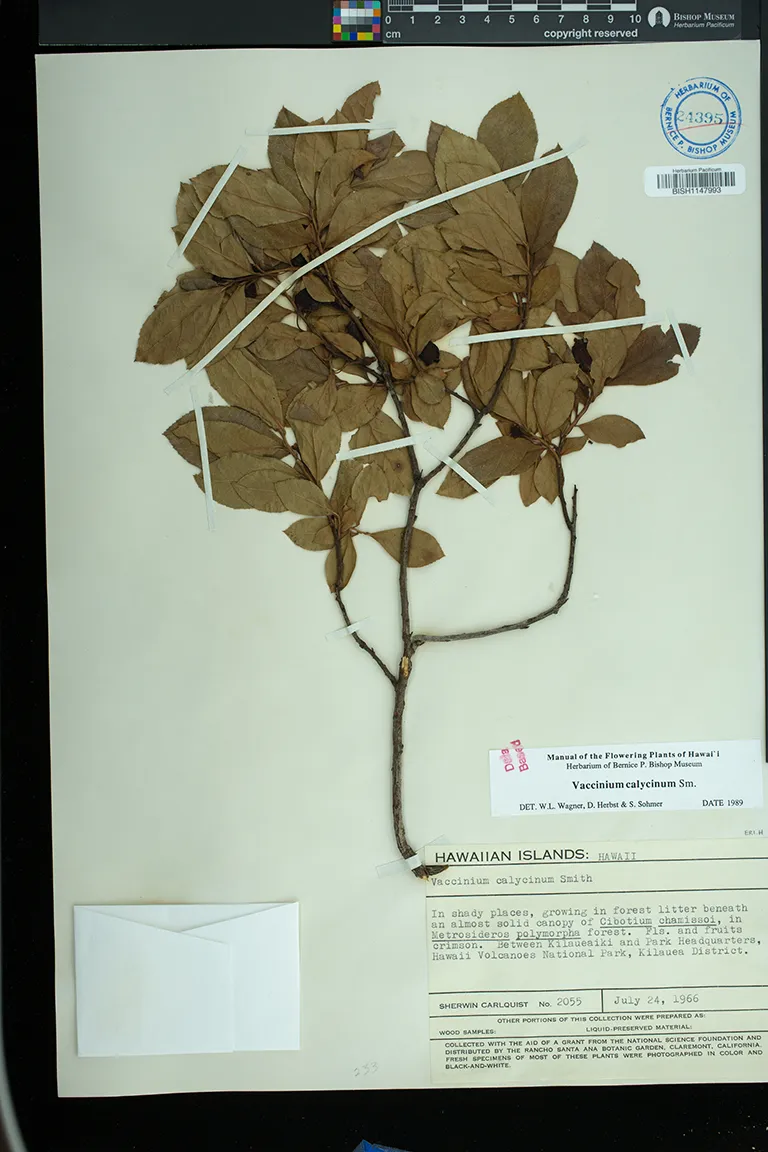 bog; uncommon at border of bog and rainforest; with shrubby Metrosideros polymorpha and Coprosma elliptica |