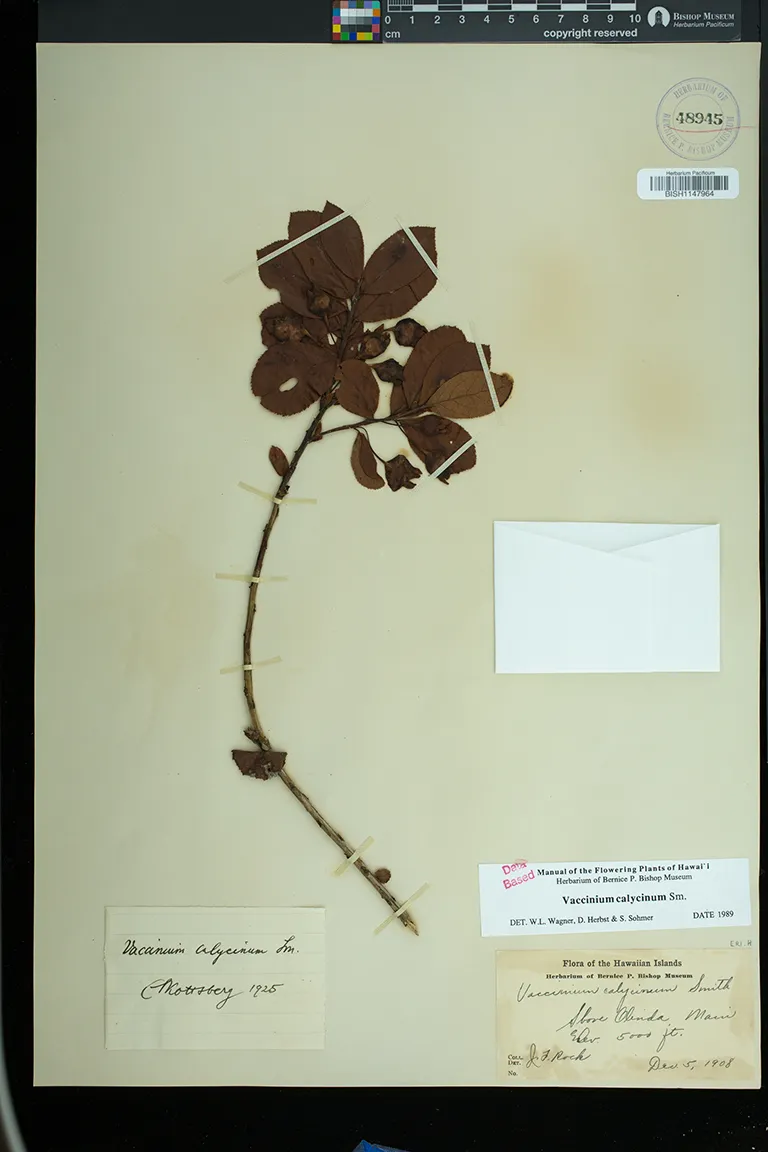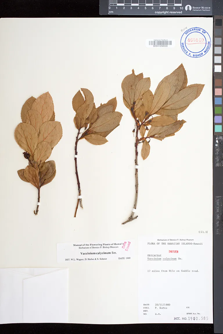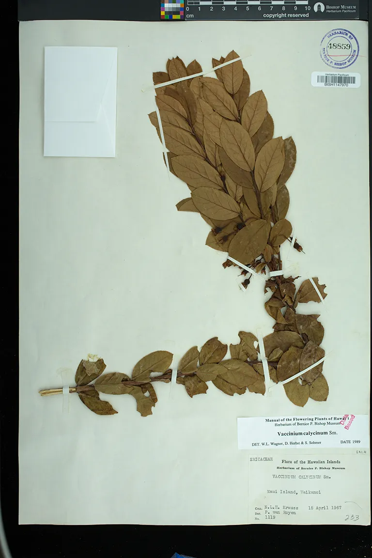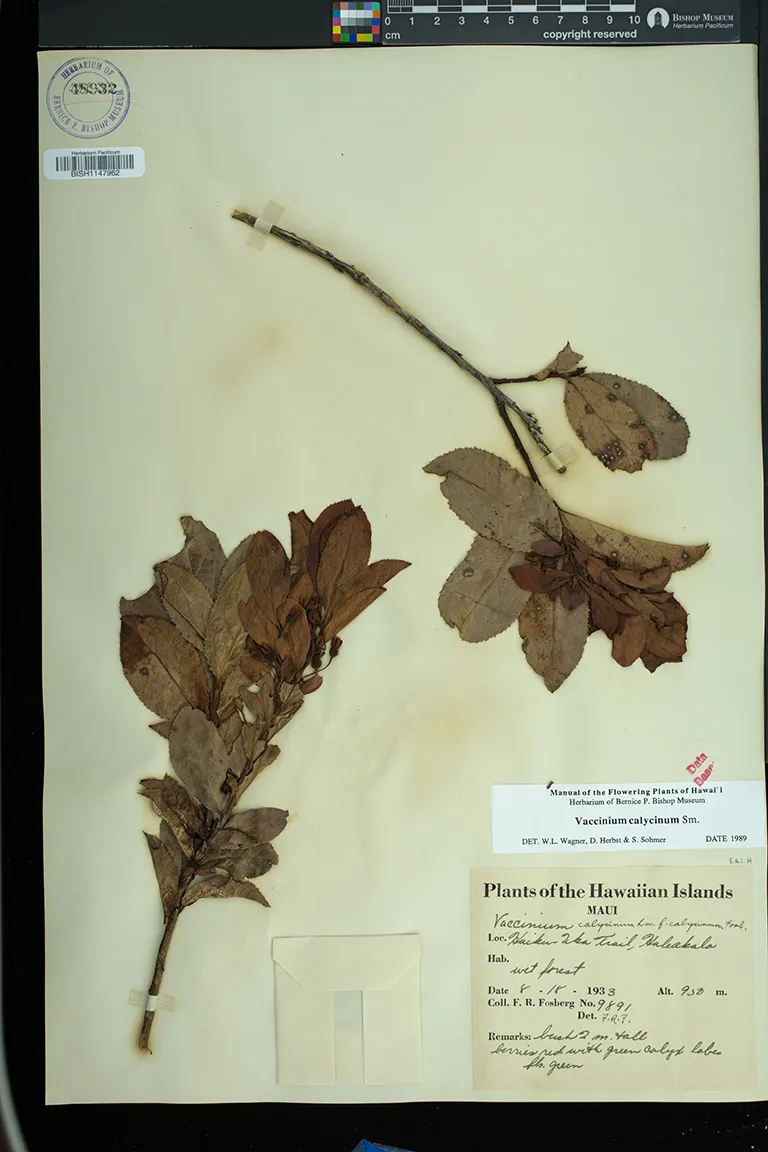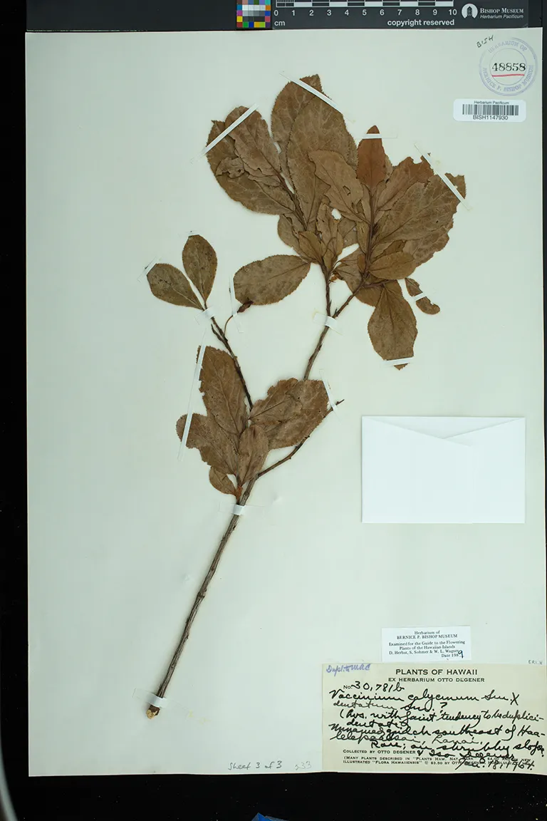 bog; uncommon at border of bog and rainforest; with shrubby Metrosideros polymorpha and Coprosma elliptica |
