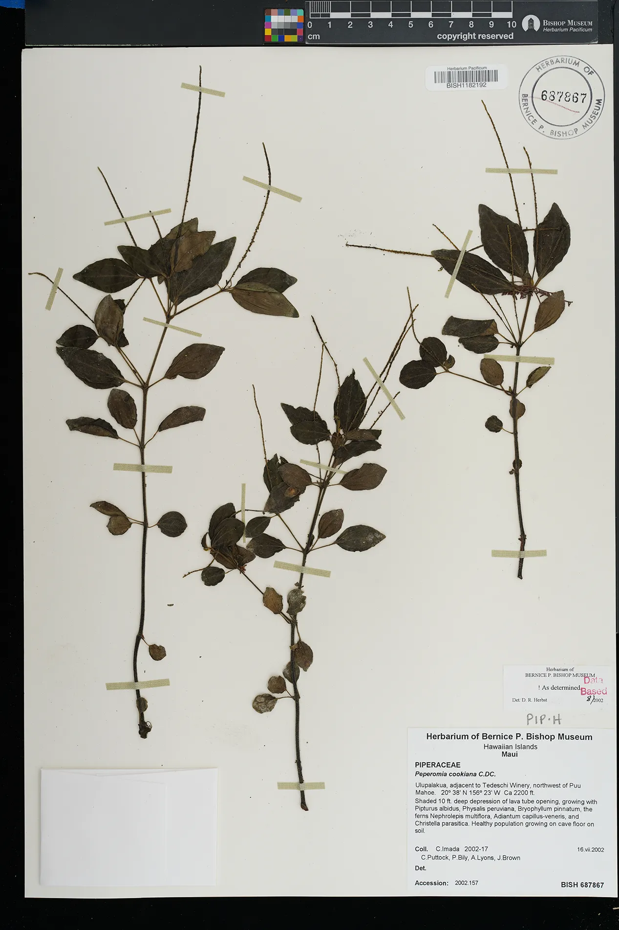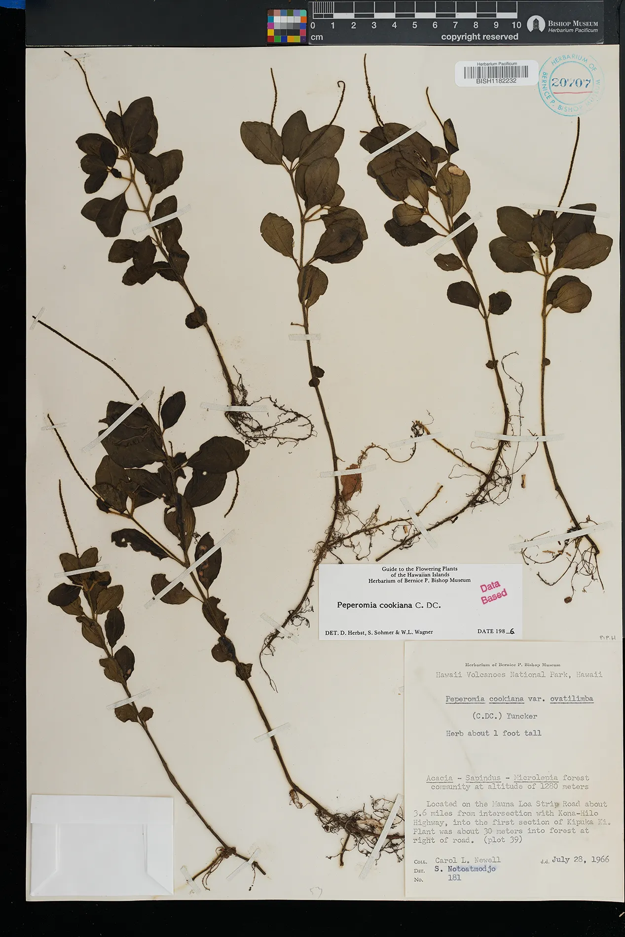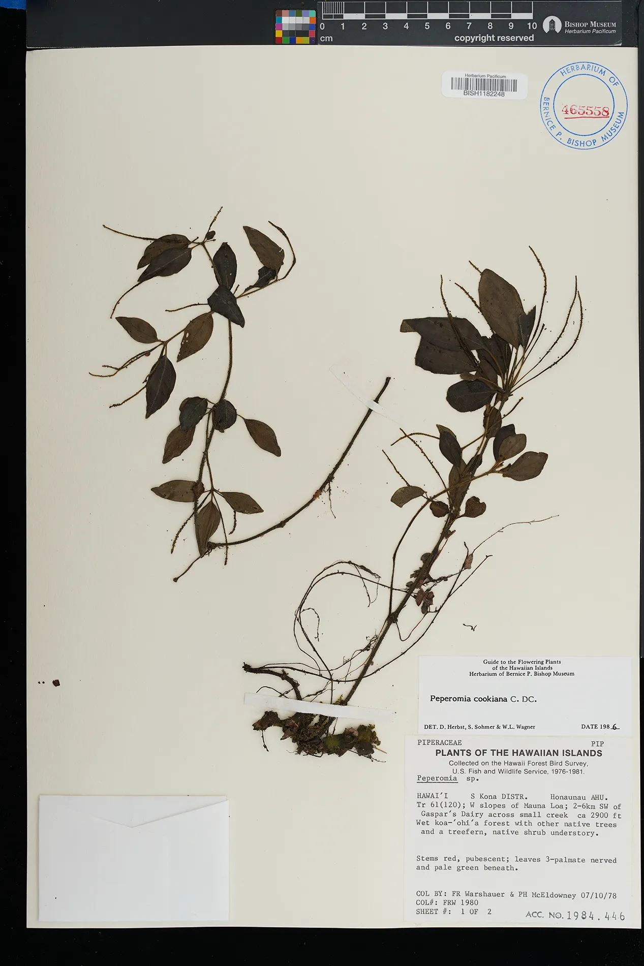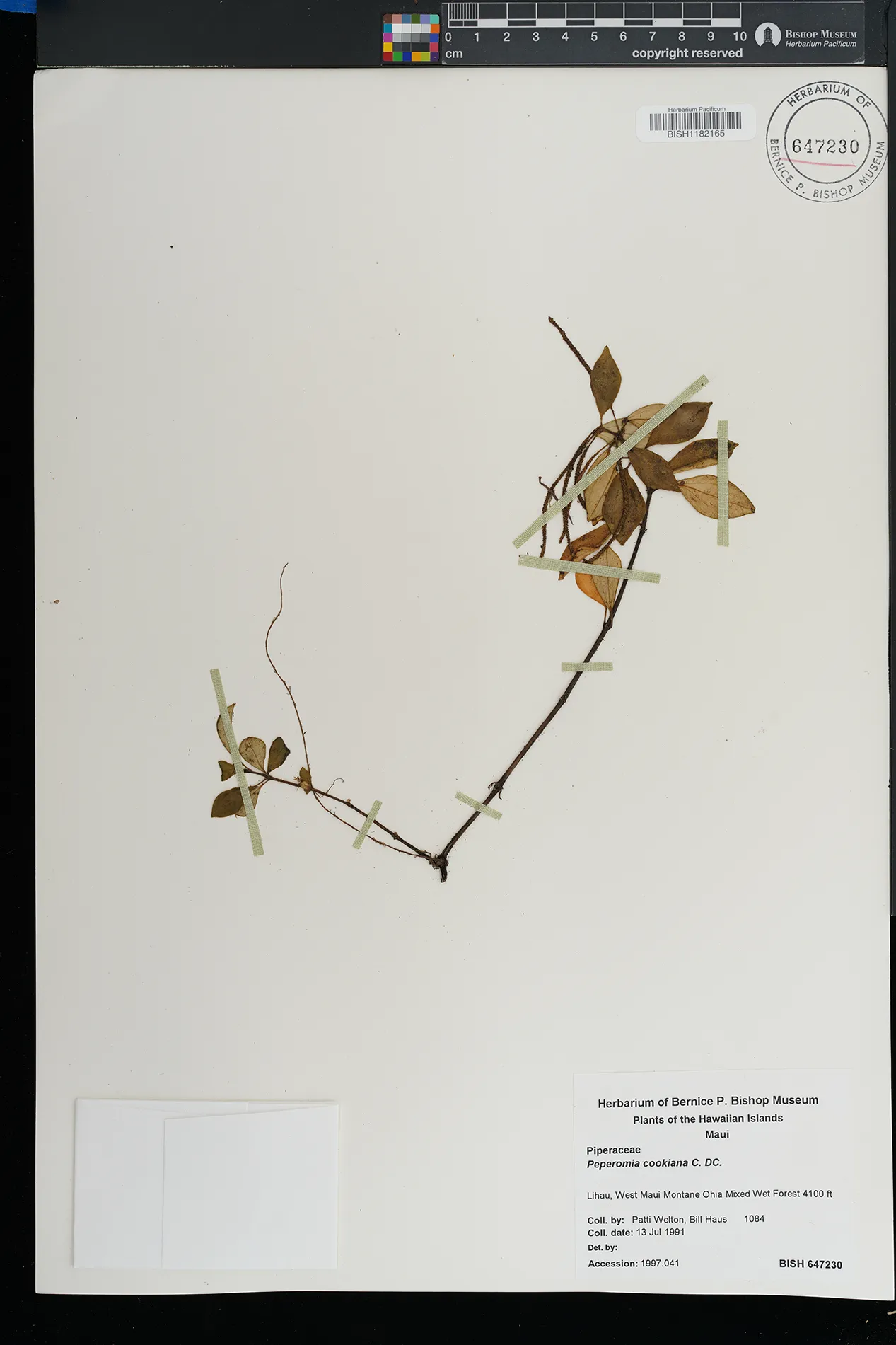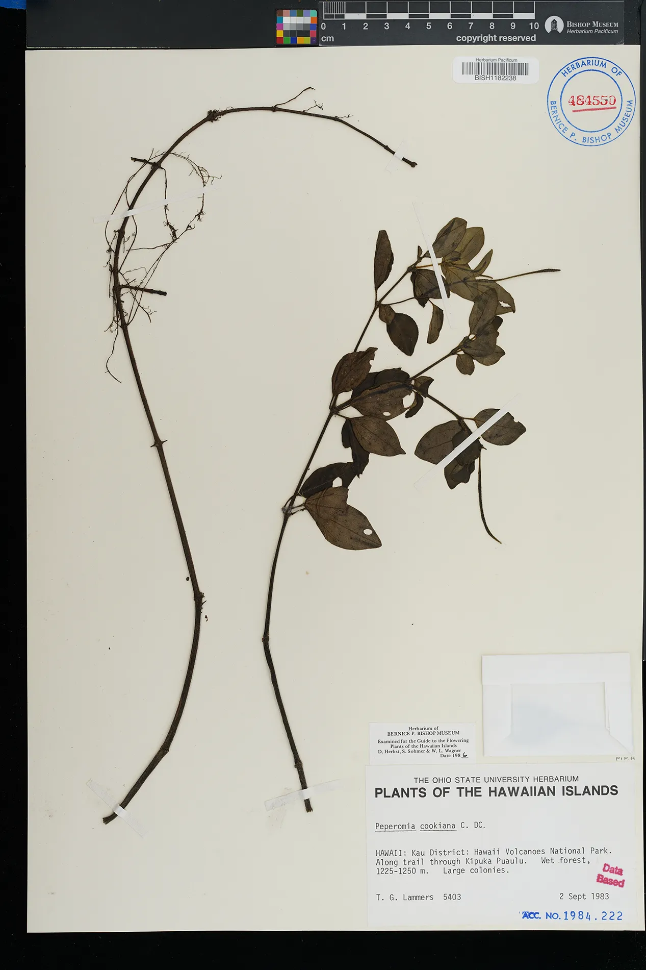 Ohia Mixed Mesic Forest a small herb covering the ground at 3800 ft on a ridge with Metrosideros, Cheirodendron, Myrsine, Dubautia, Hedyotis, Stenogyne and Liparis |