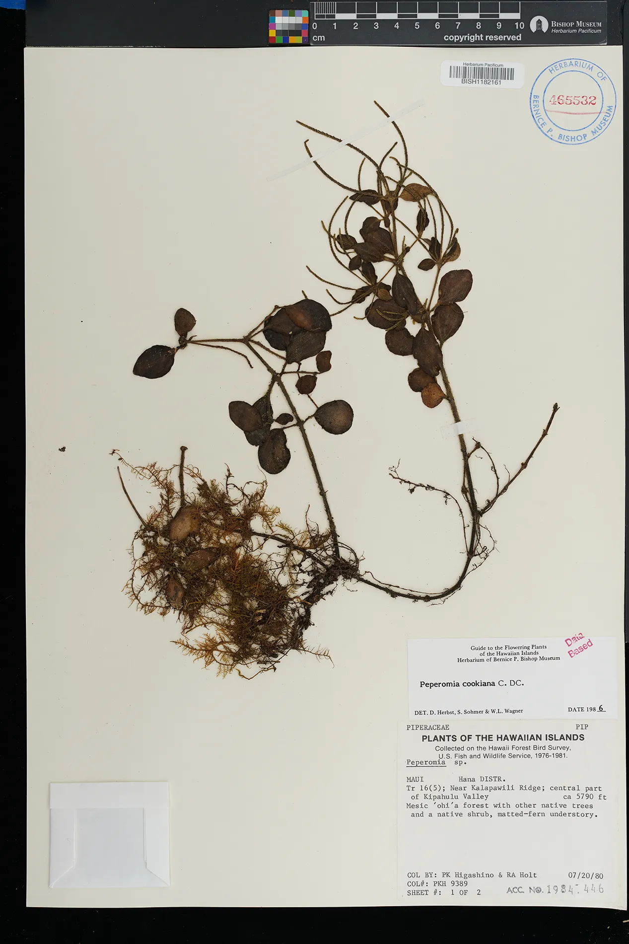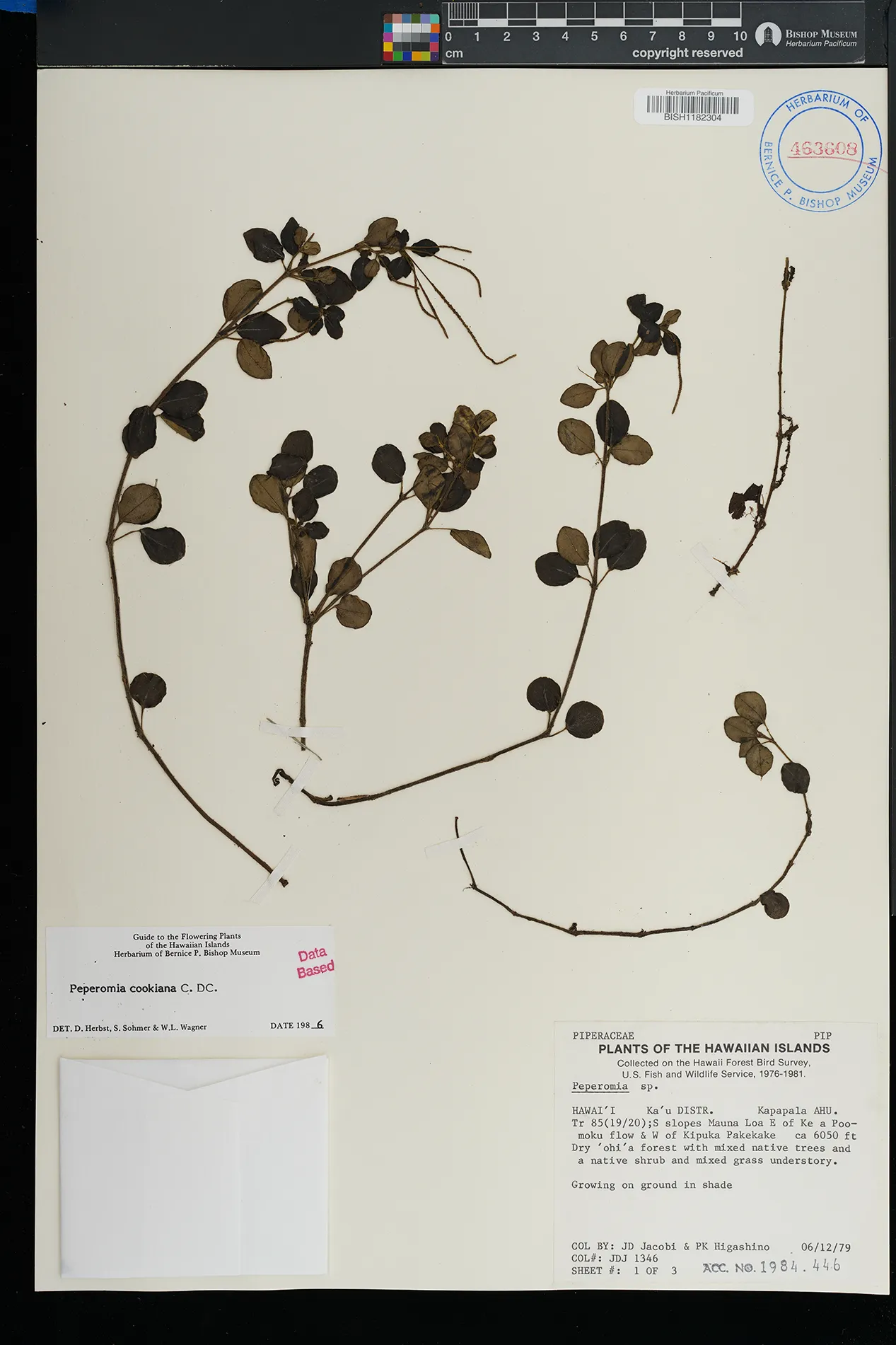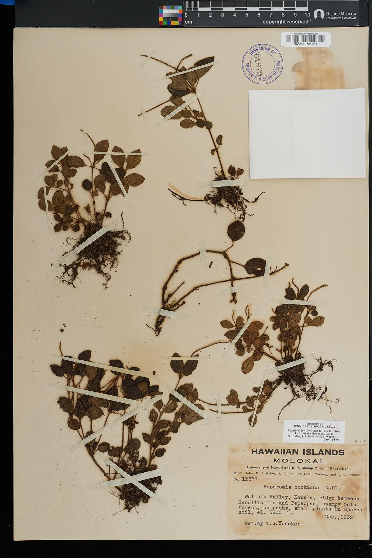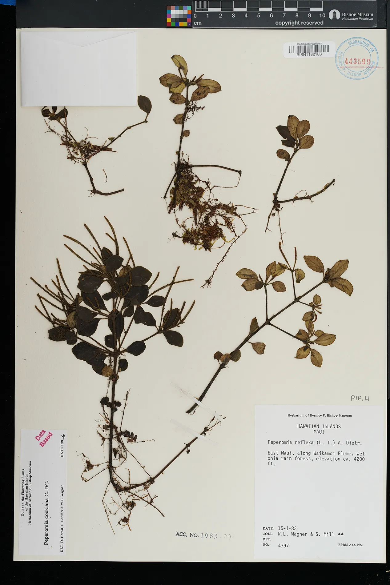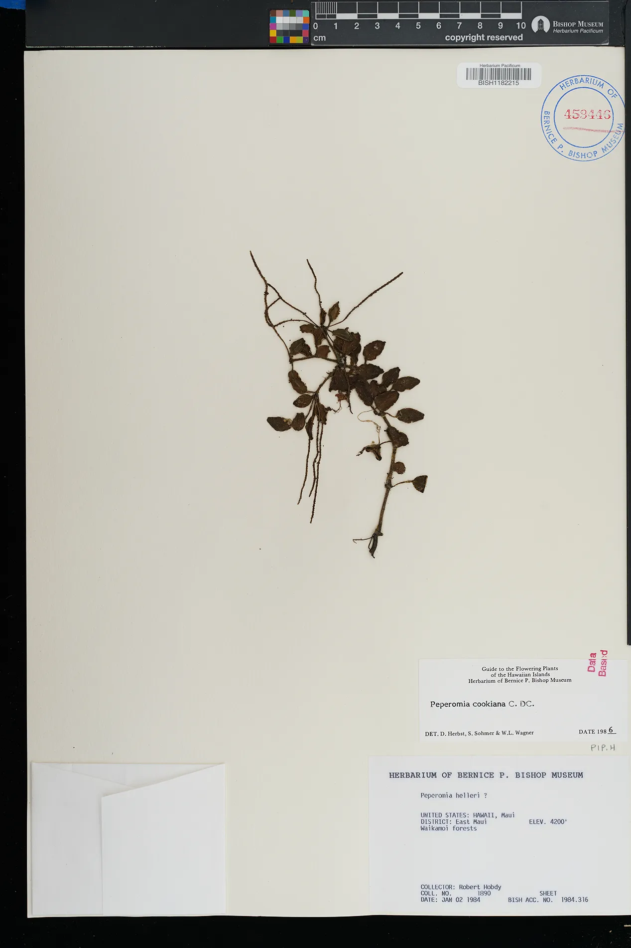 Ohia Mixed Mesic Forest a small herb covering the ground at 3800 ft on a ridge with Metrosideros, Cheirodendron, Myrsine, Dubautia, Hedyotis, Stenogyne and Liparis |