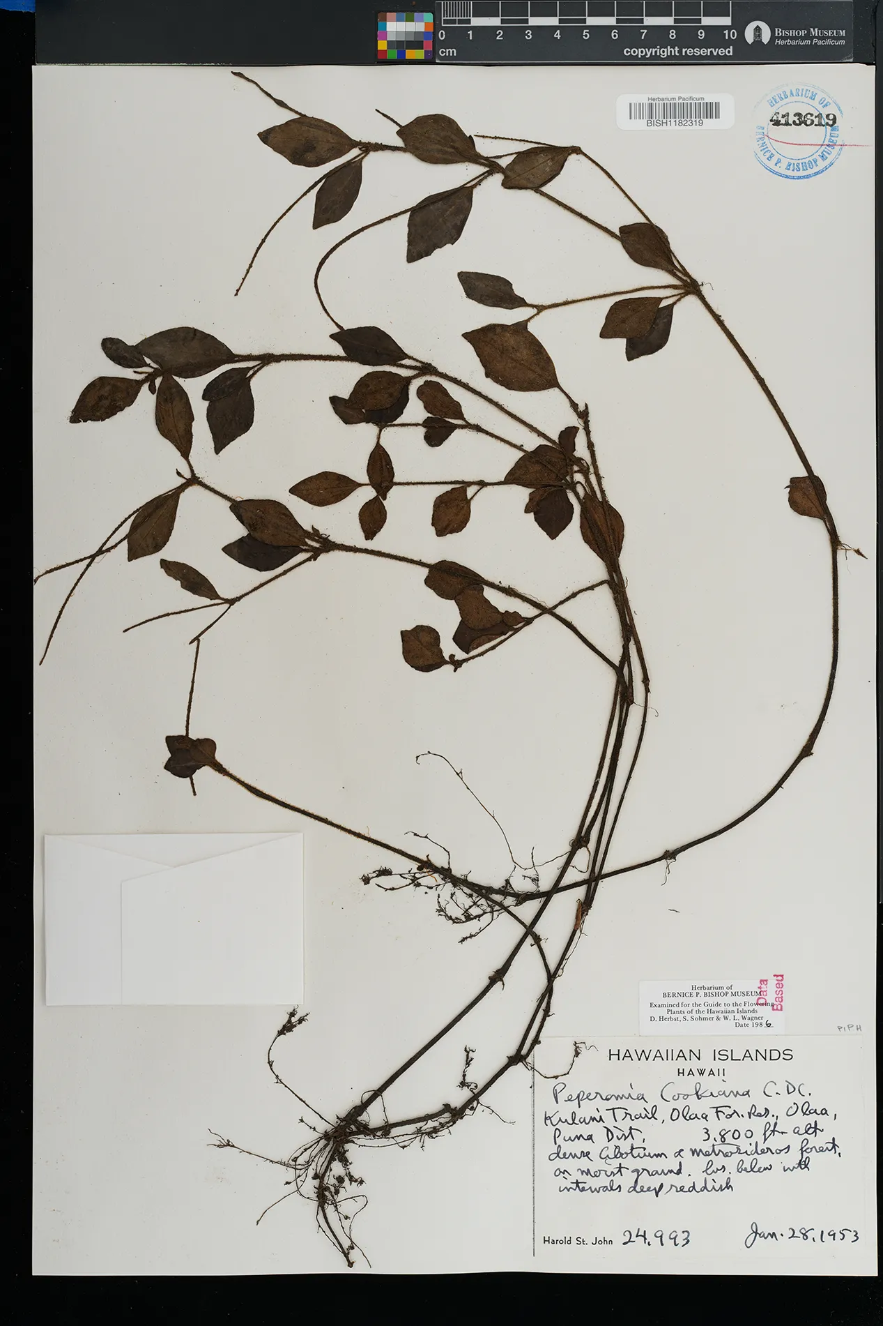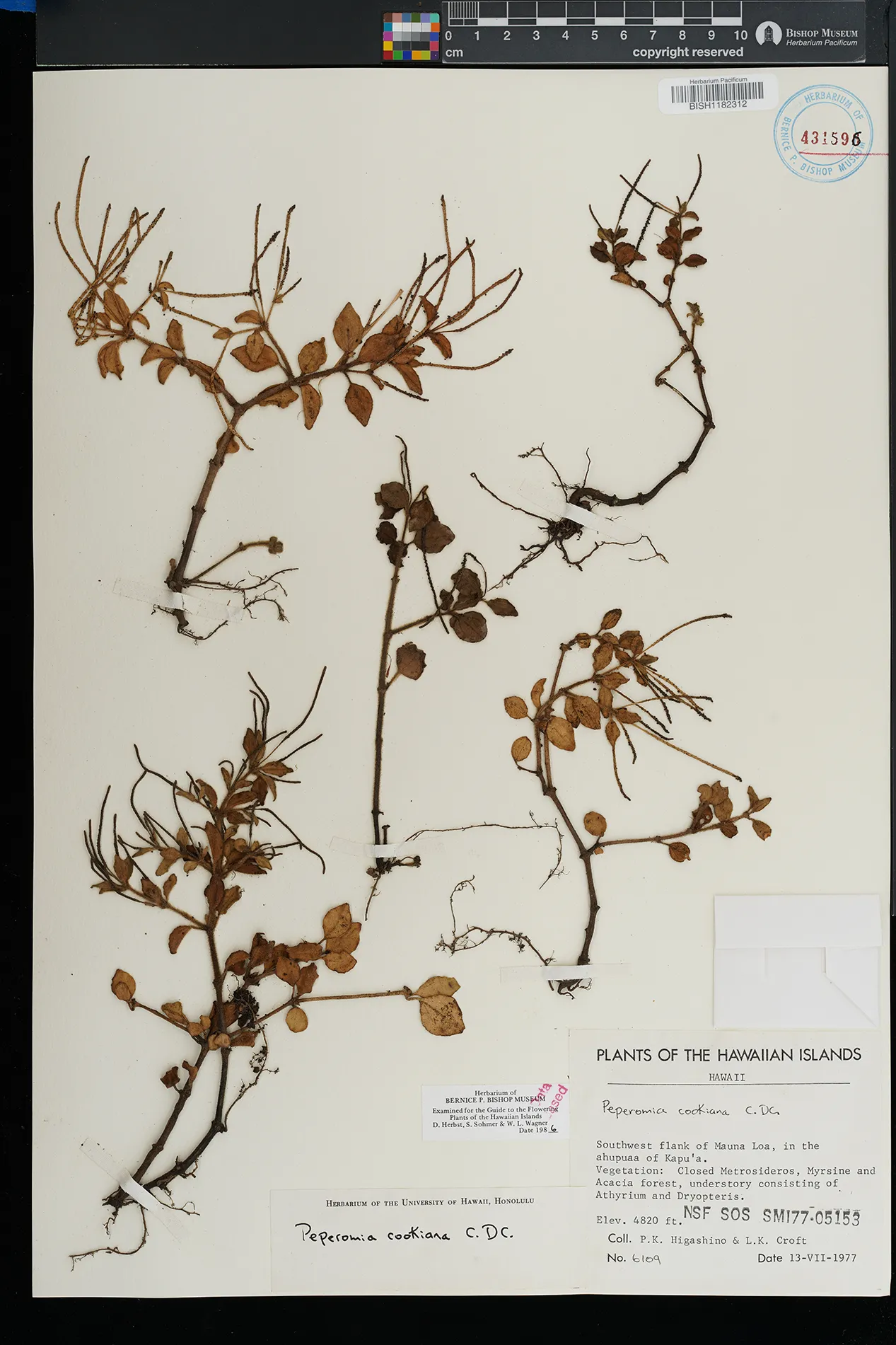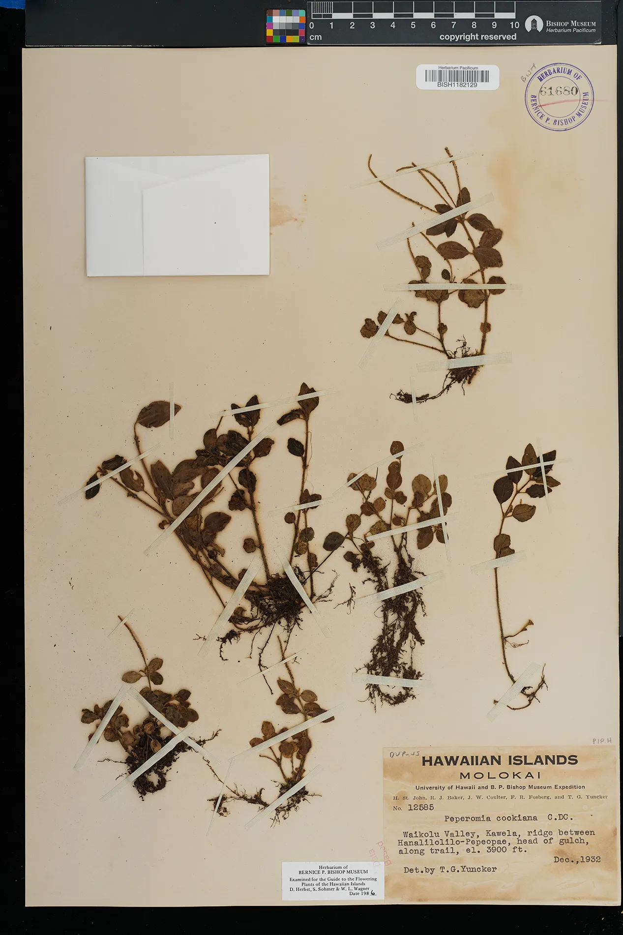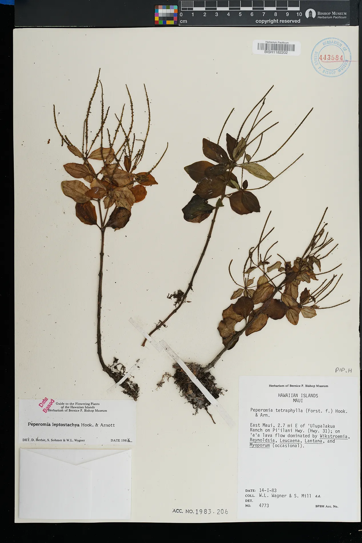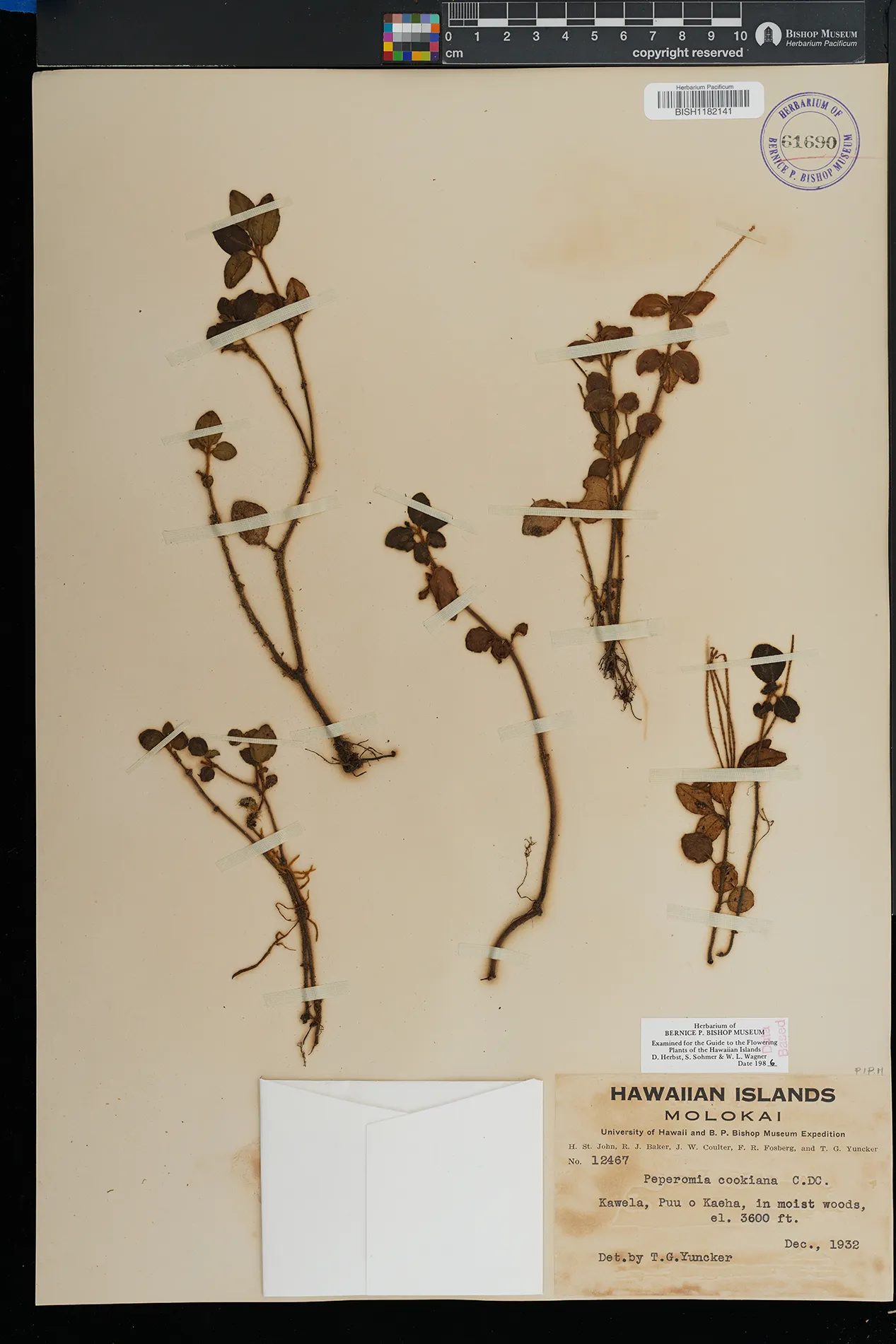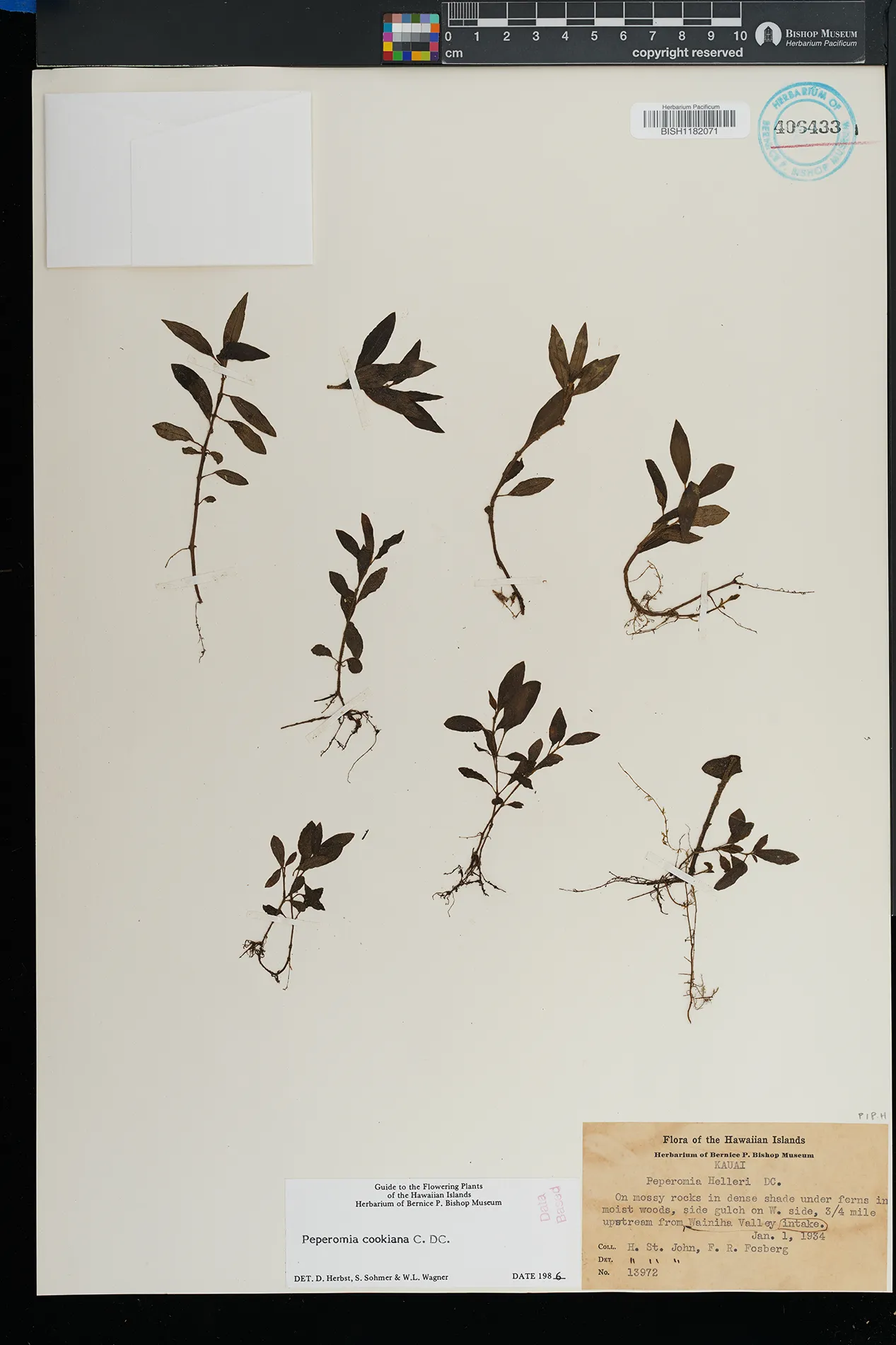 Ohia Mixed Mesic Forest a small herb covering the ground at 3800 ft on a ridge with Metrosideros, Cheirodendron, Myrsine, Dubautia, Hedyotis, Stenogyne and Liparis |