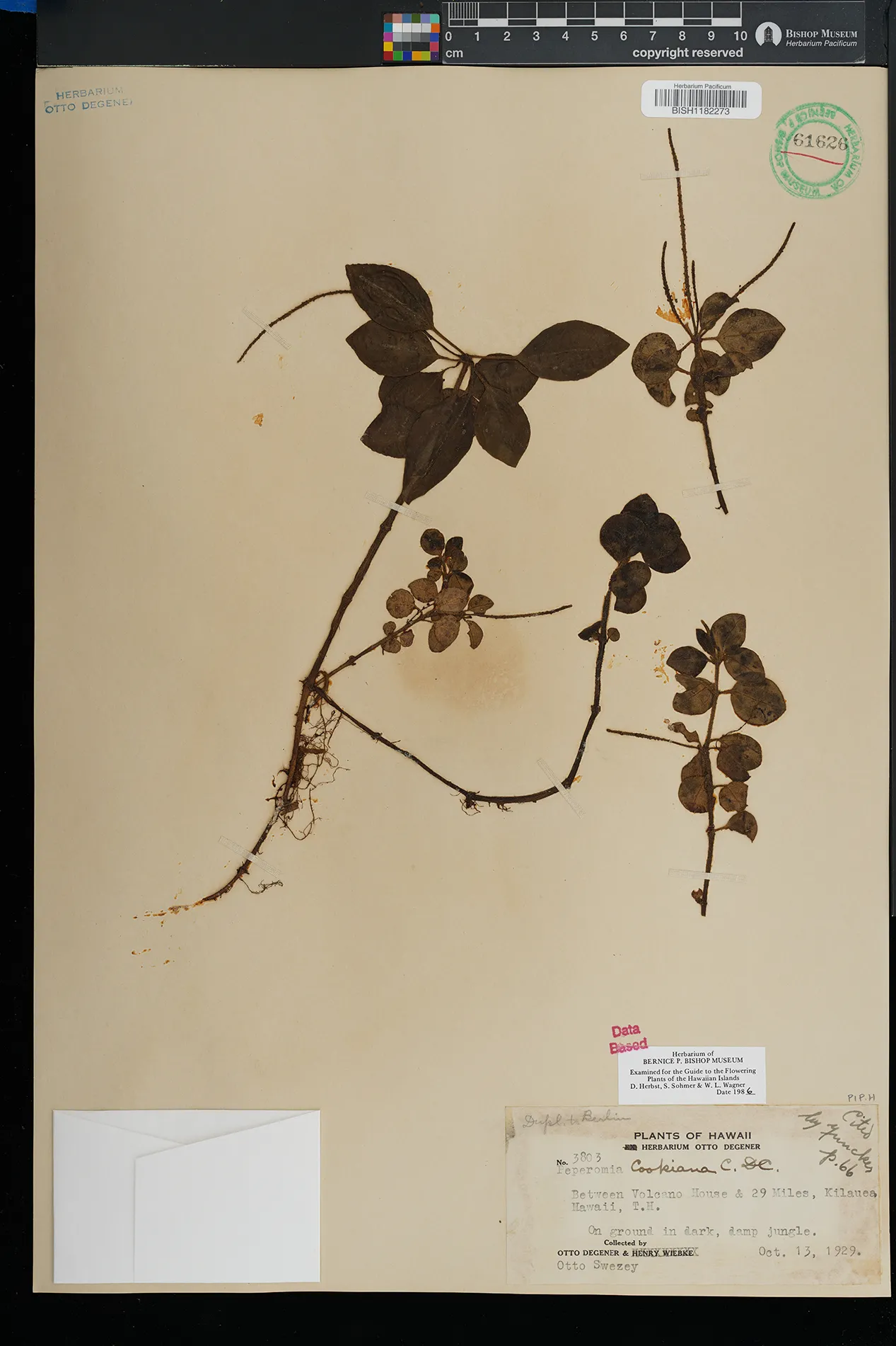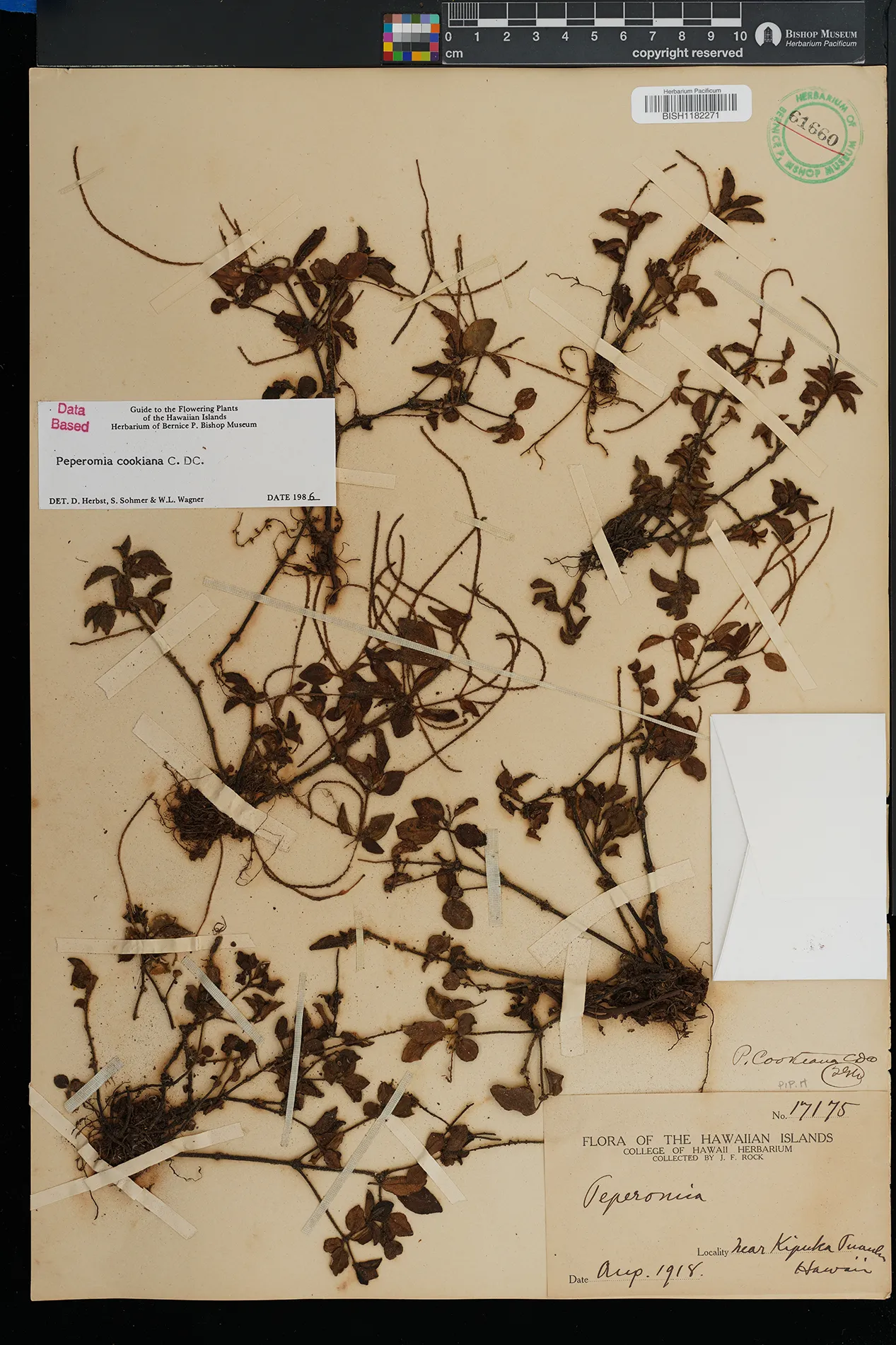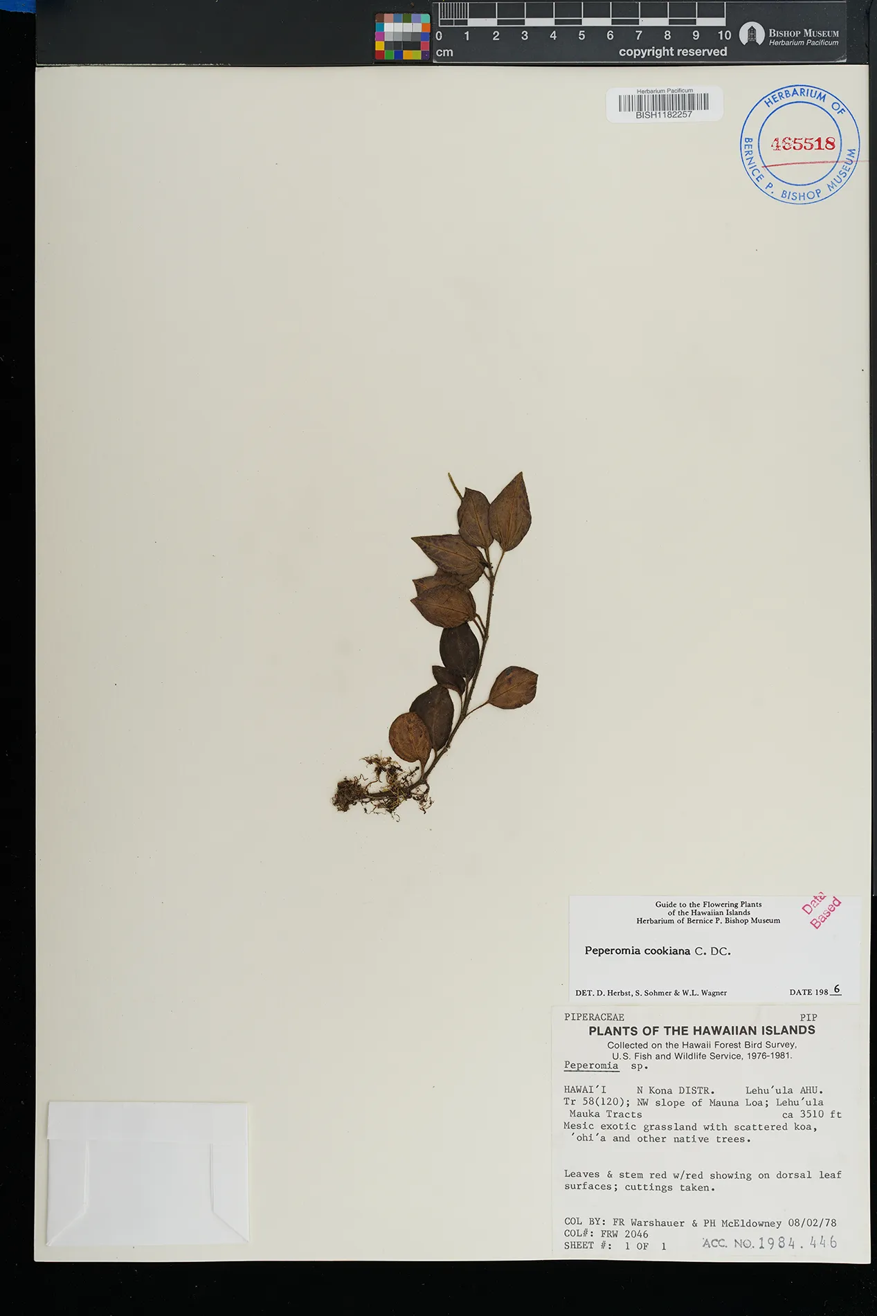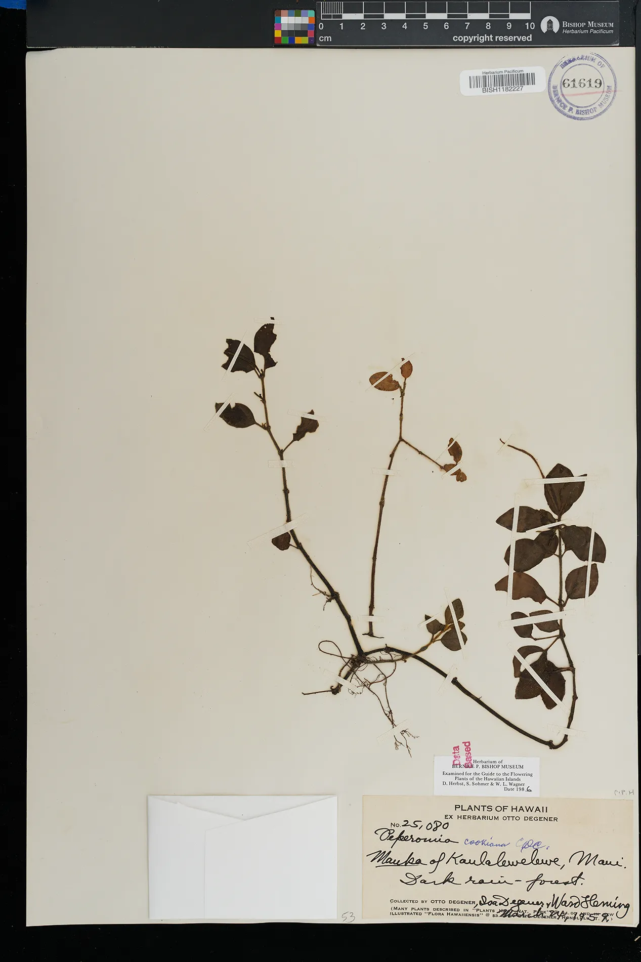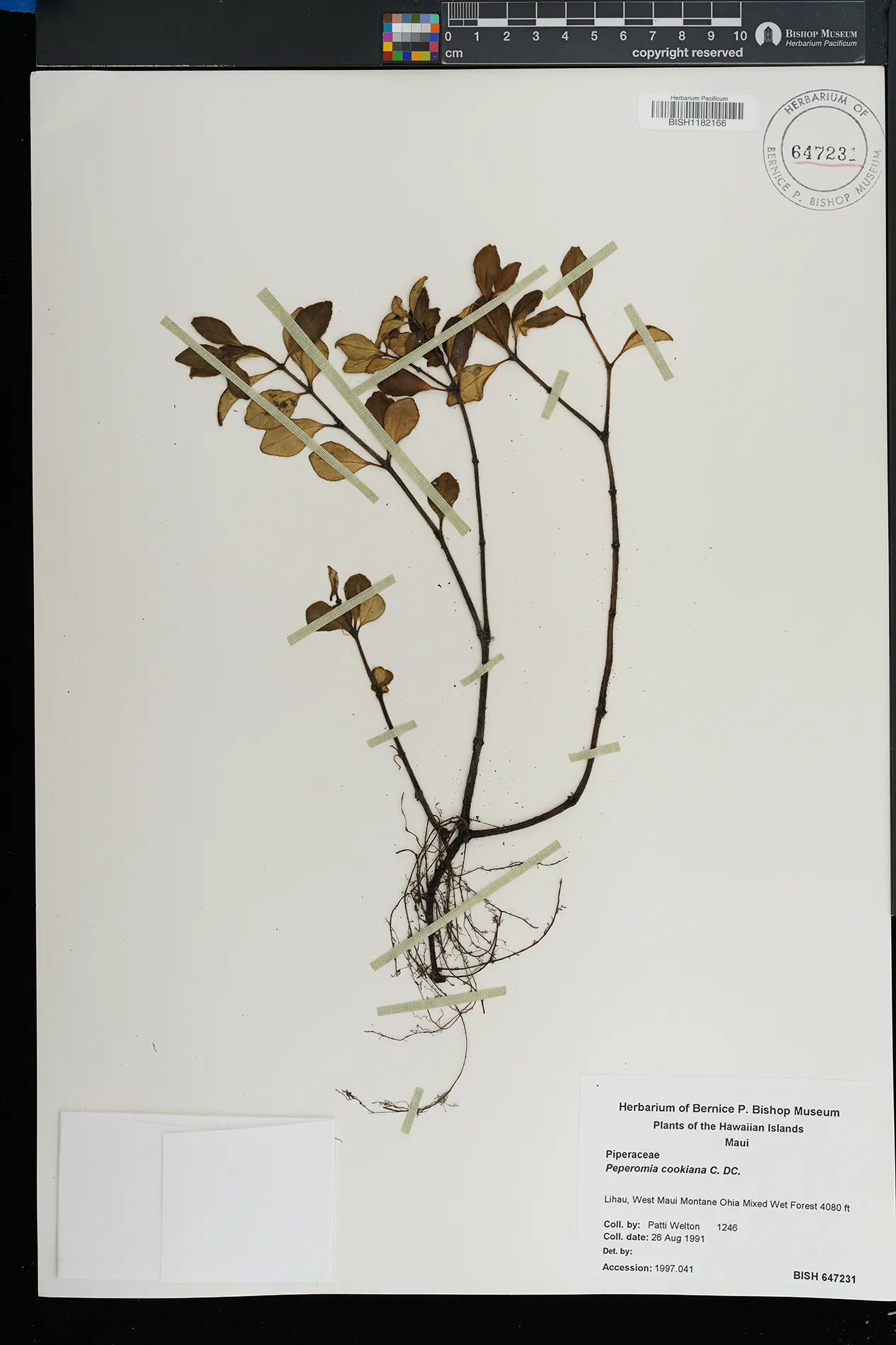 Ohia Mixed Mesic Forest a small herb covering the ground at 3800 ft on a ridge with Metrosideros, Cheirodendron, Myrsine, Dubautia, Hedyotis, Stenogyne and Liparis |