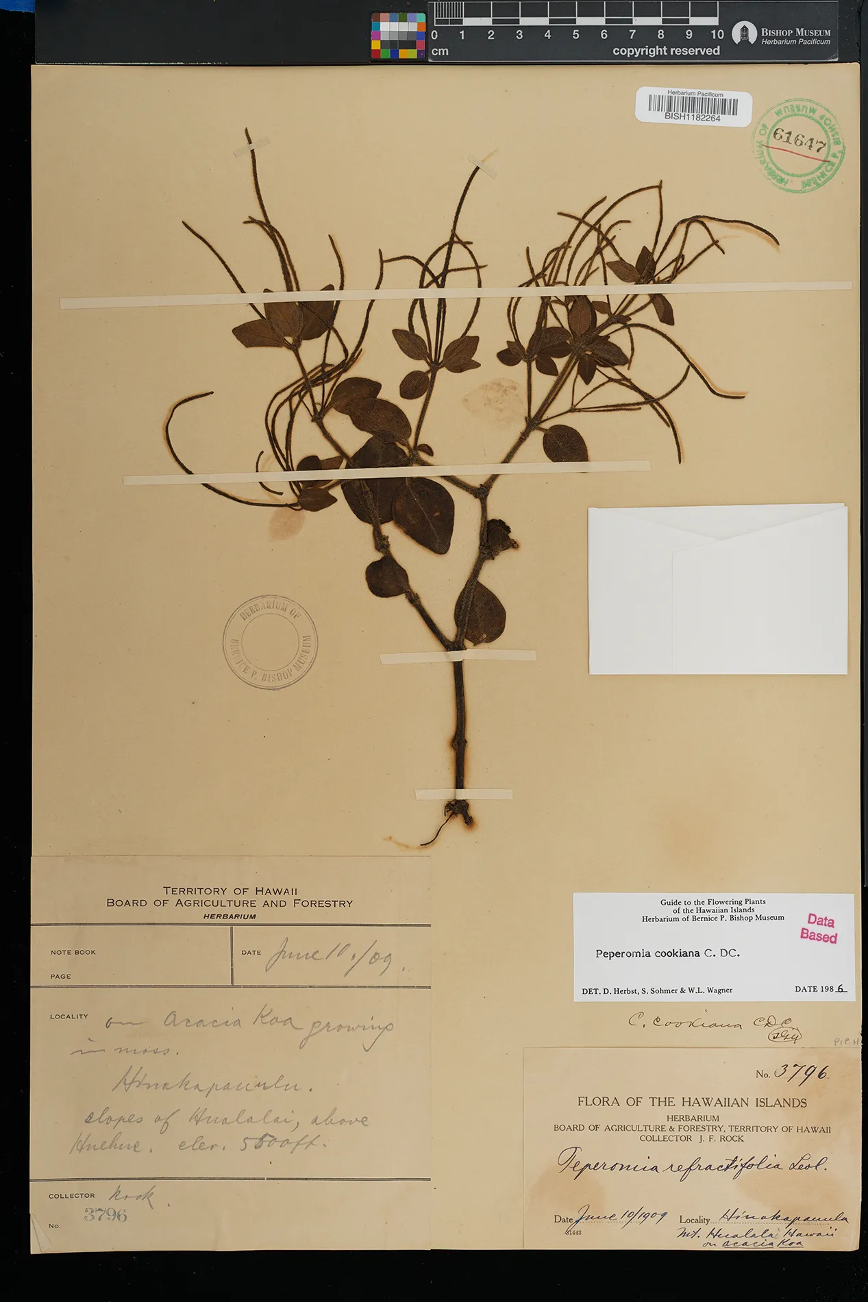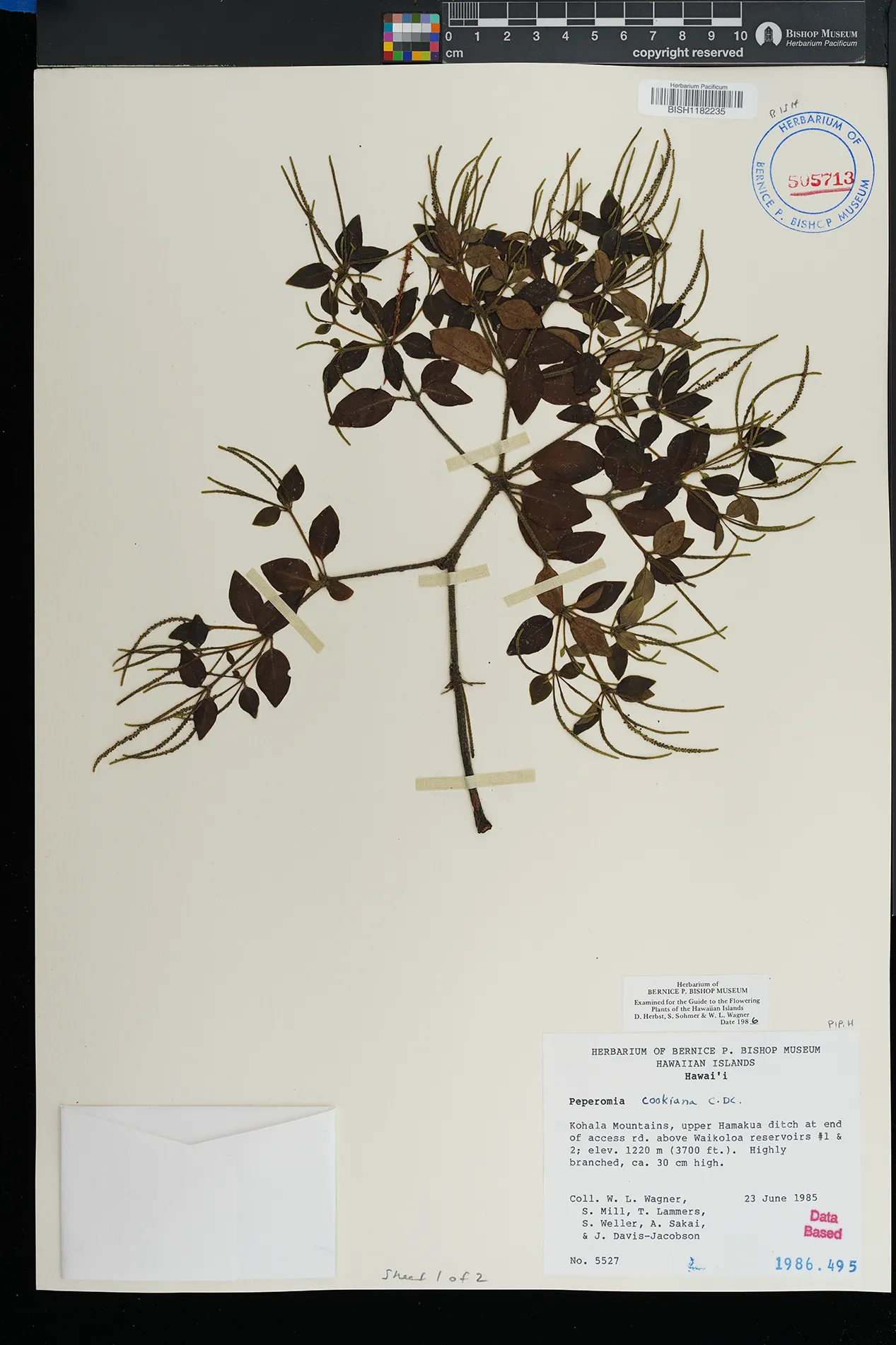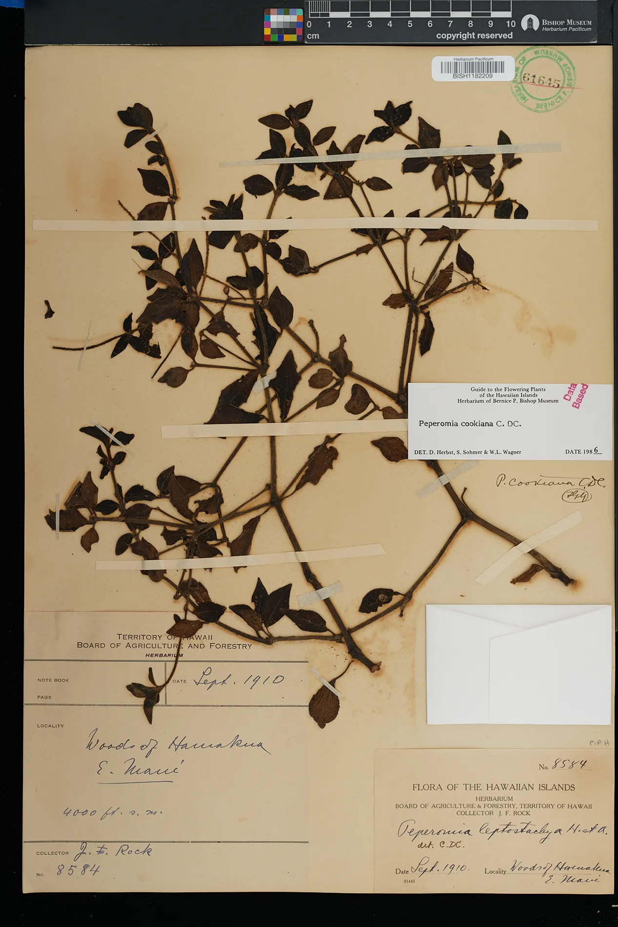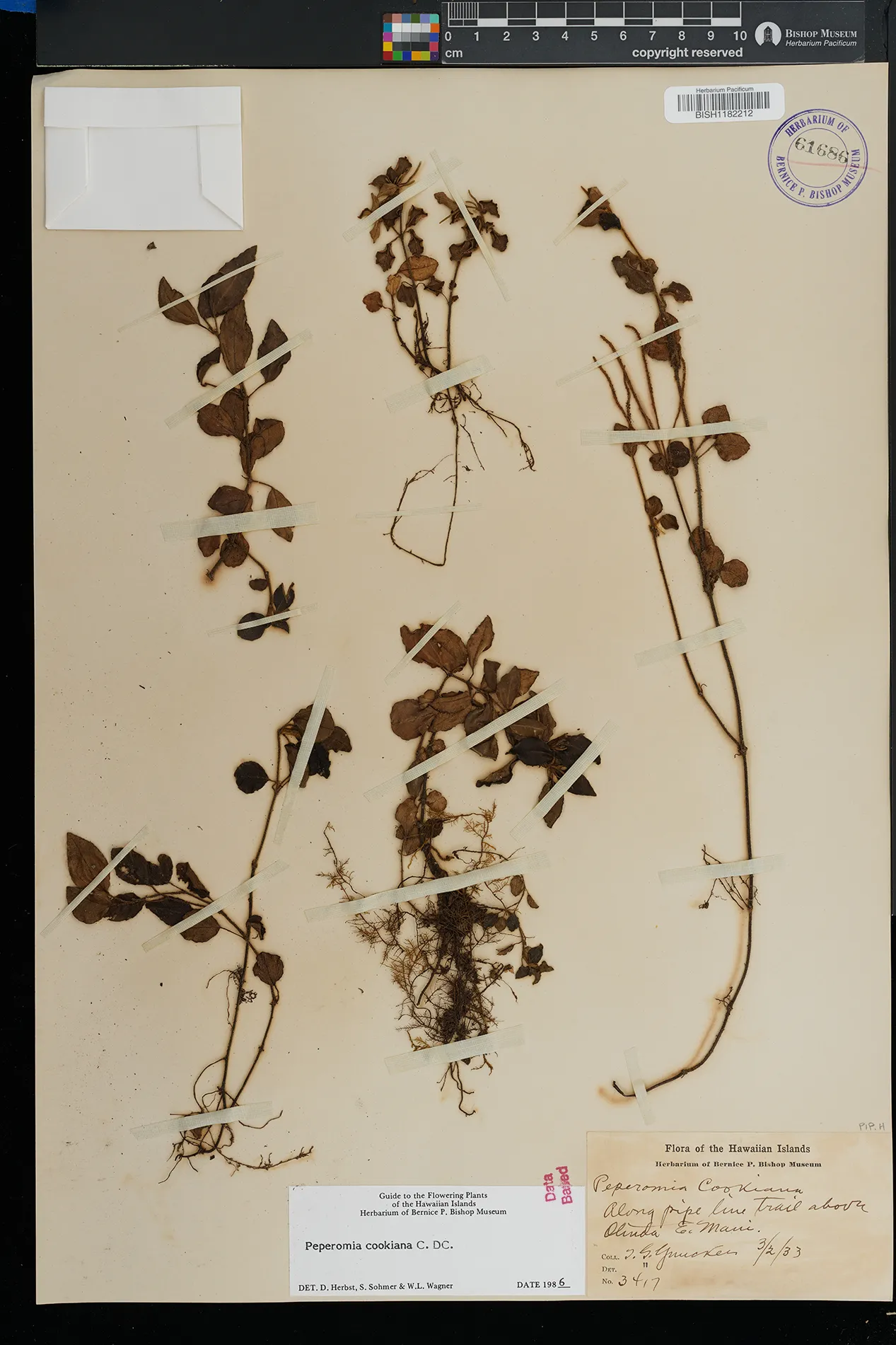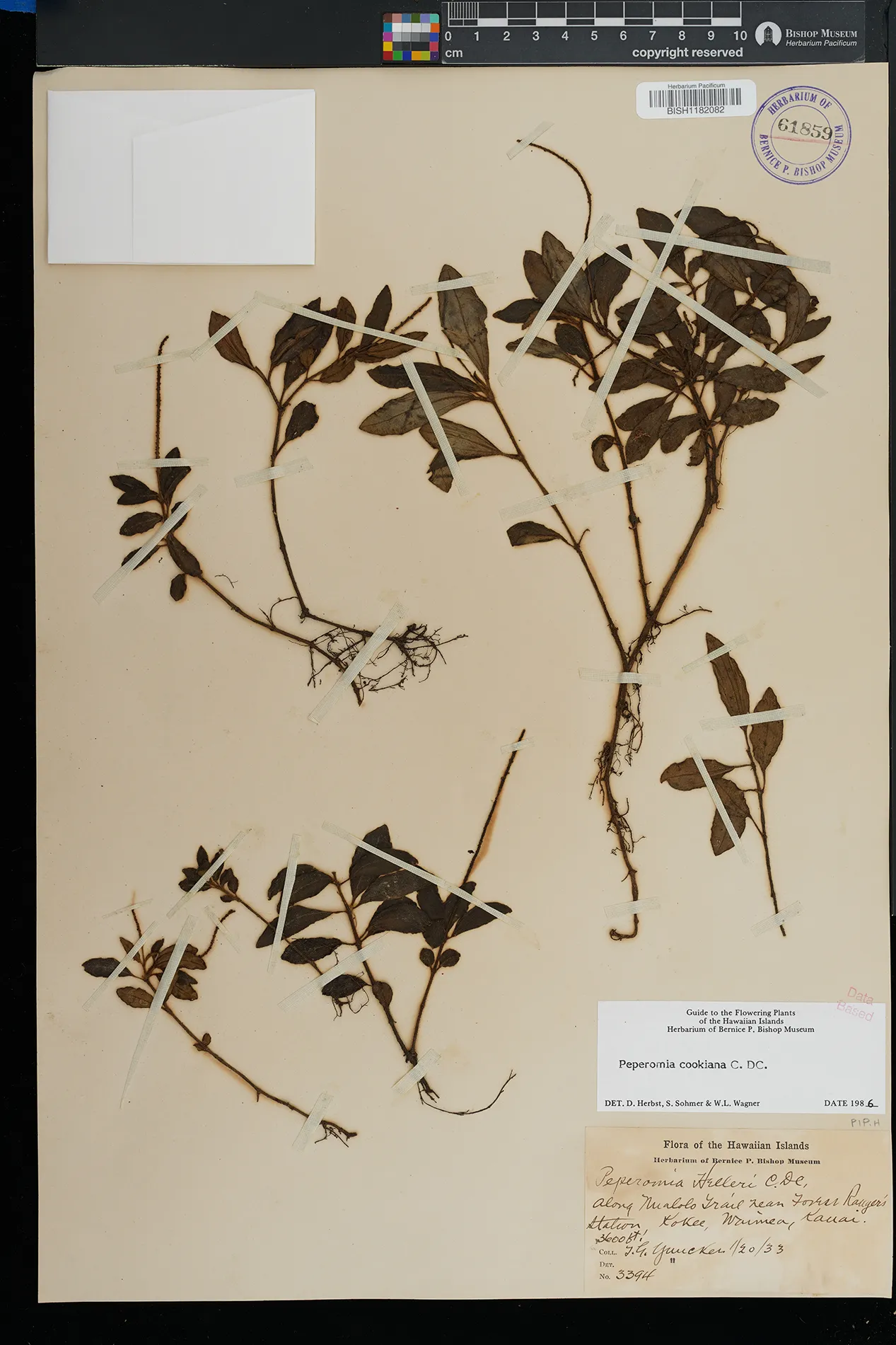 Ohia Mixed Mesic Forest a small herb covering the ground at 3800 ft on a ridge with Metrosideros, Cheirodendron, Myrsine, Dubautia, Hedyotis, Stenogyne and Liparis |