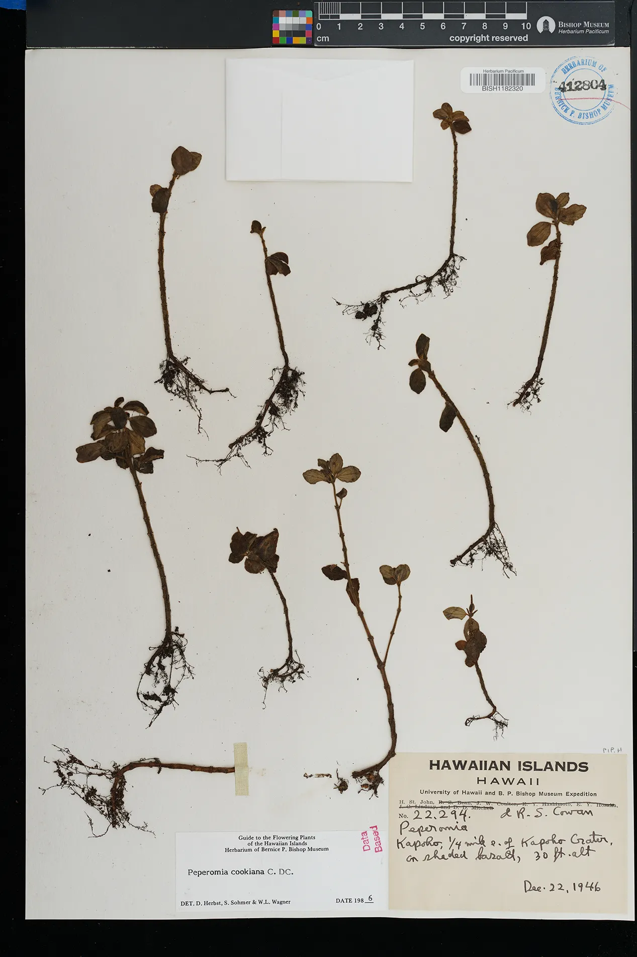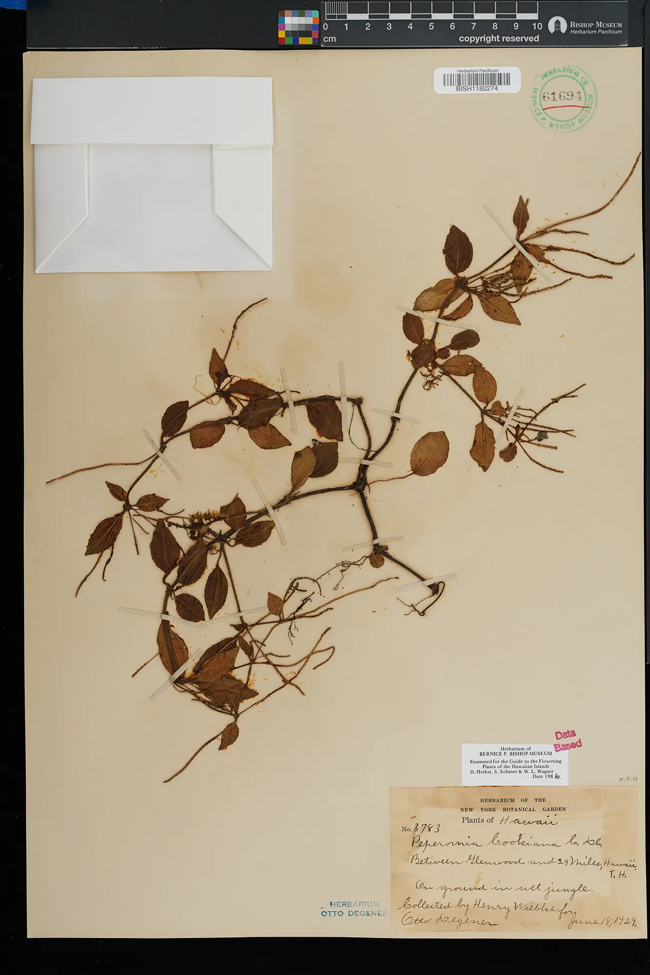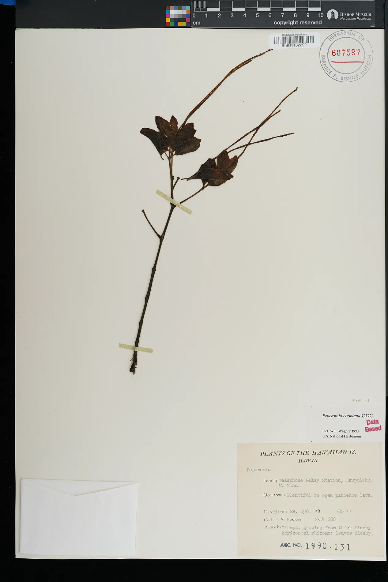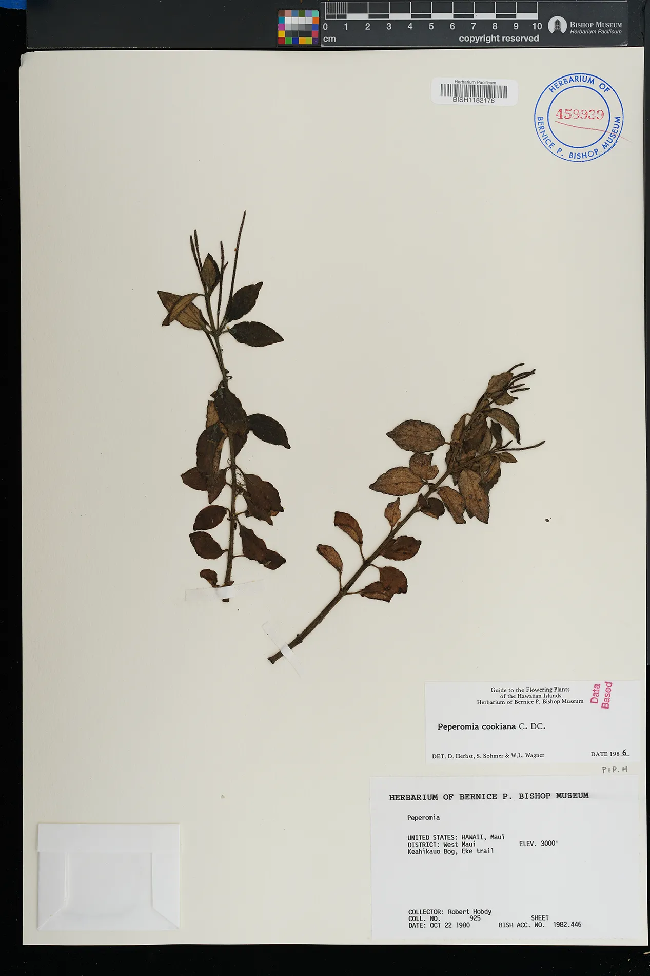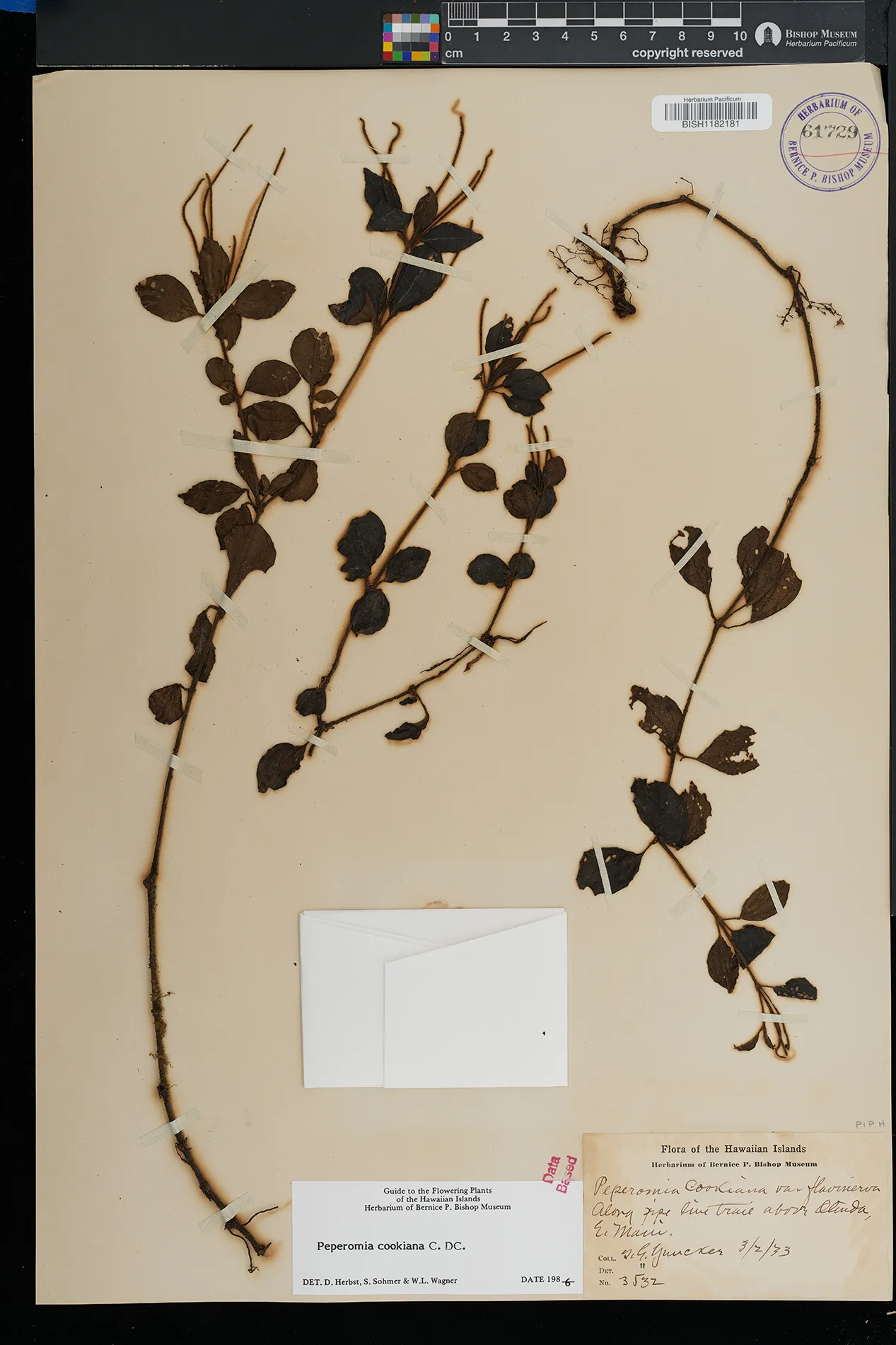 Ohia Mixed Mesic Forest a small herb covering the ground at 3800 ft on a ridge with Metrosideros, Cheirodendron, Myrsine, Dubautia, Hedyotis, Stenogyne and Liparis |