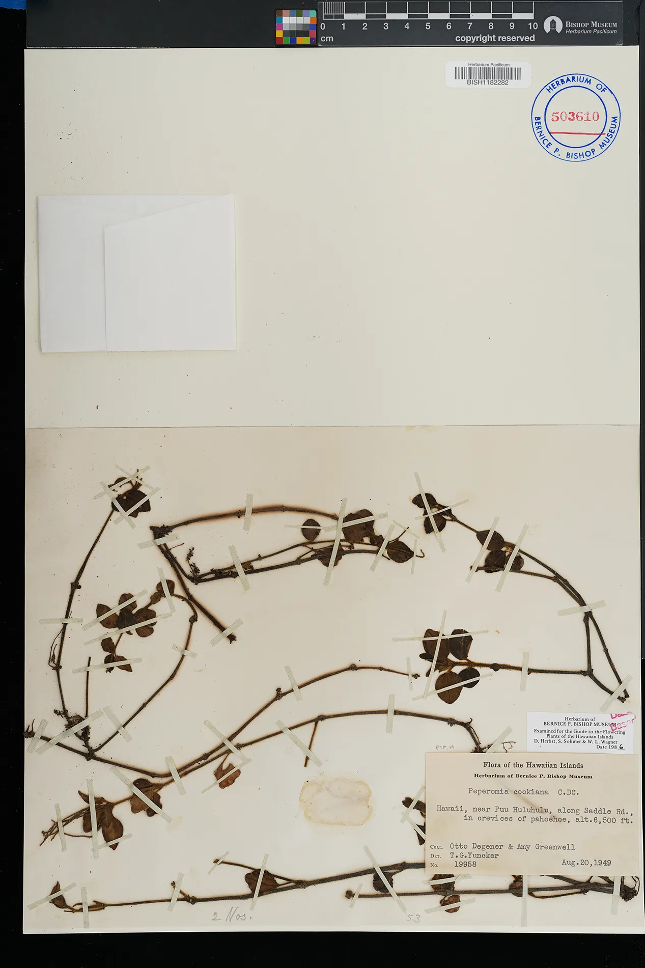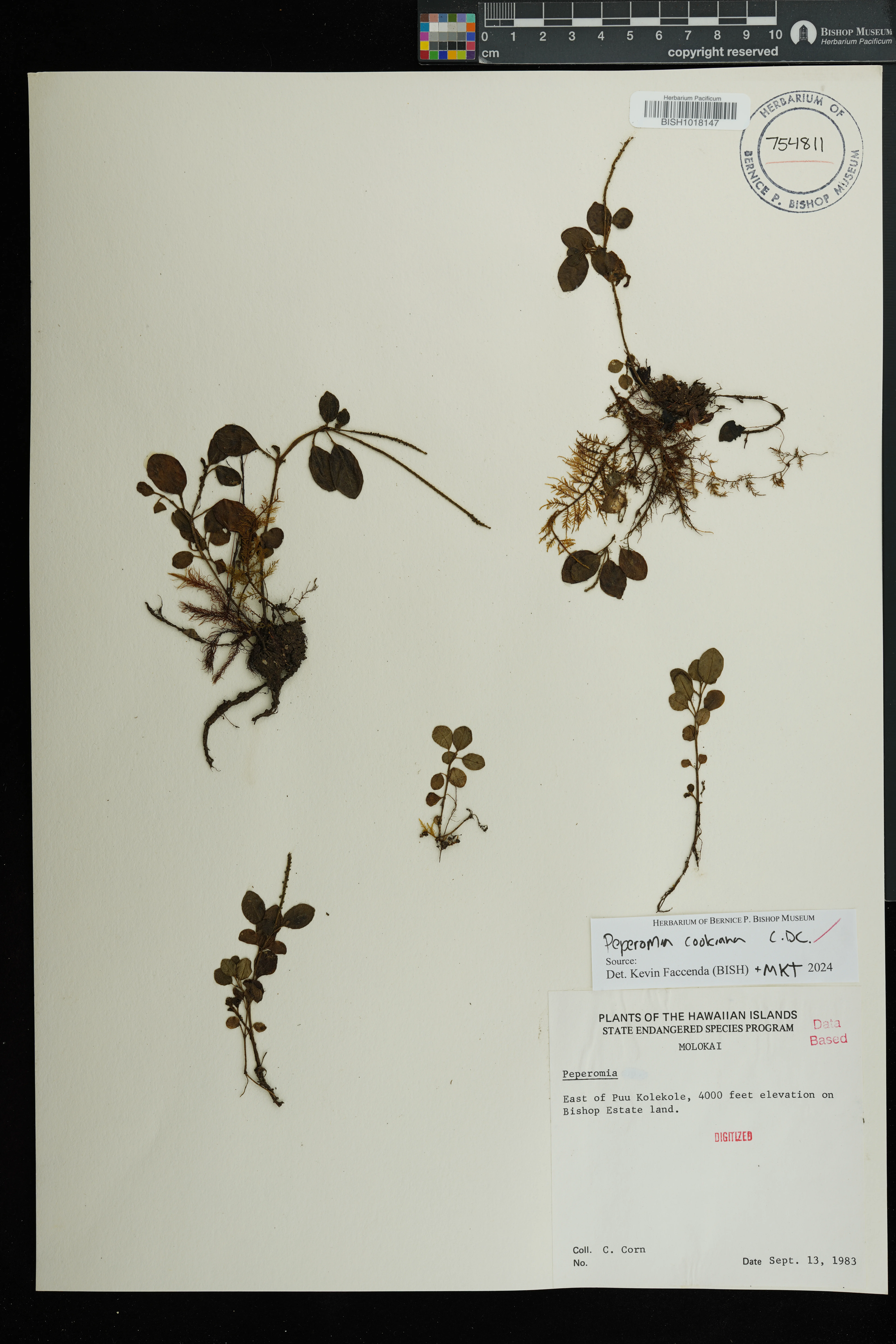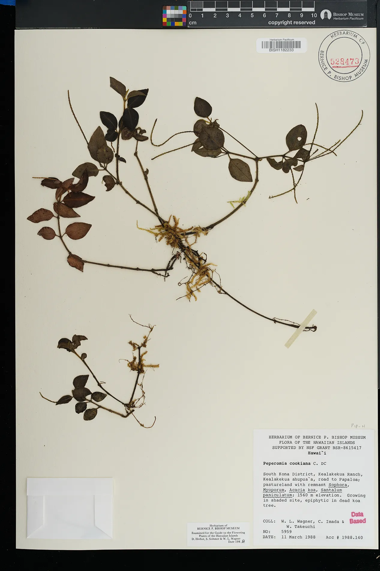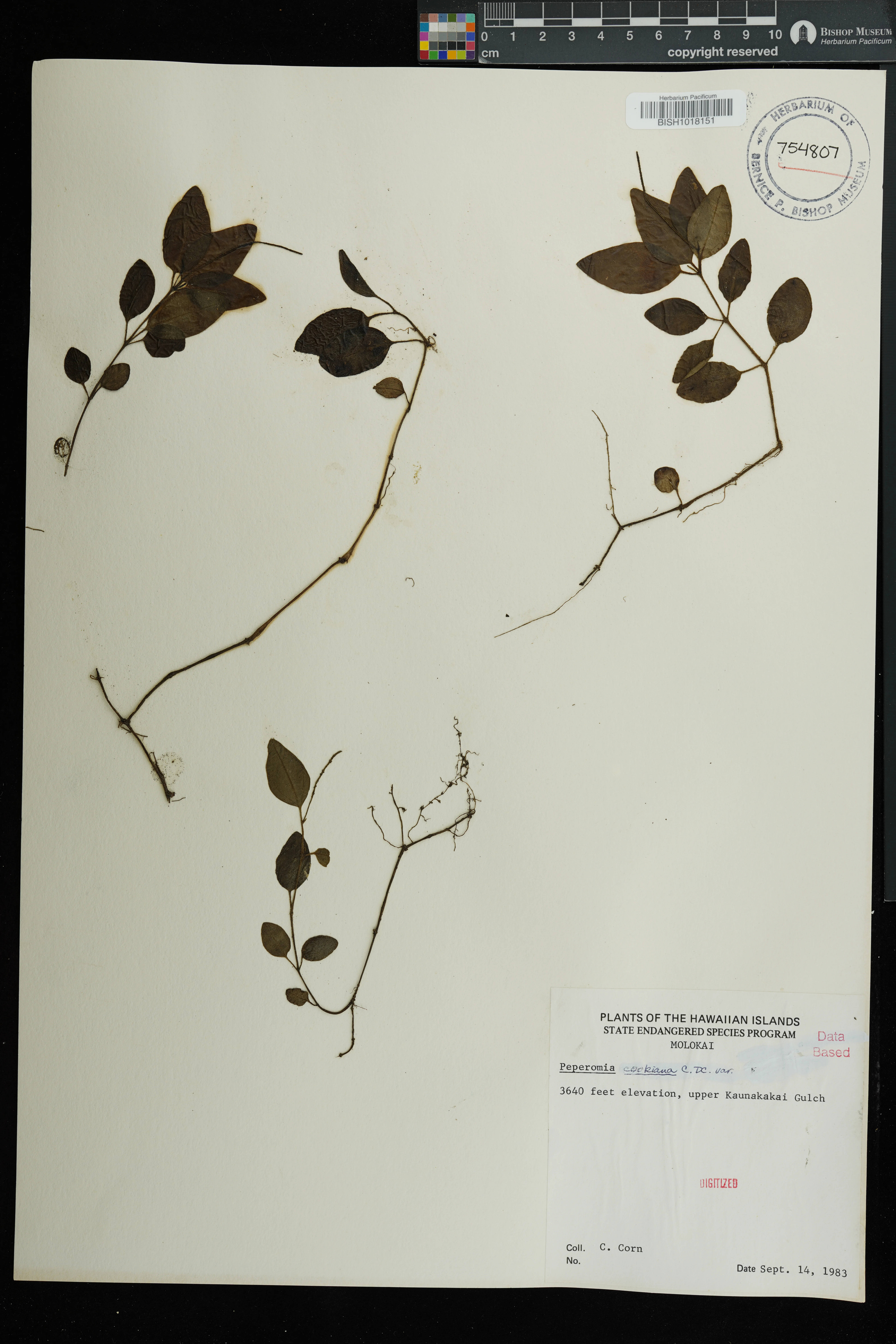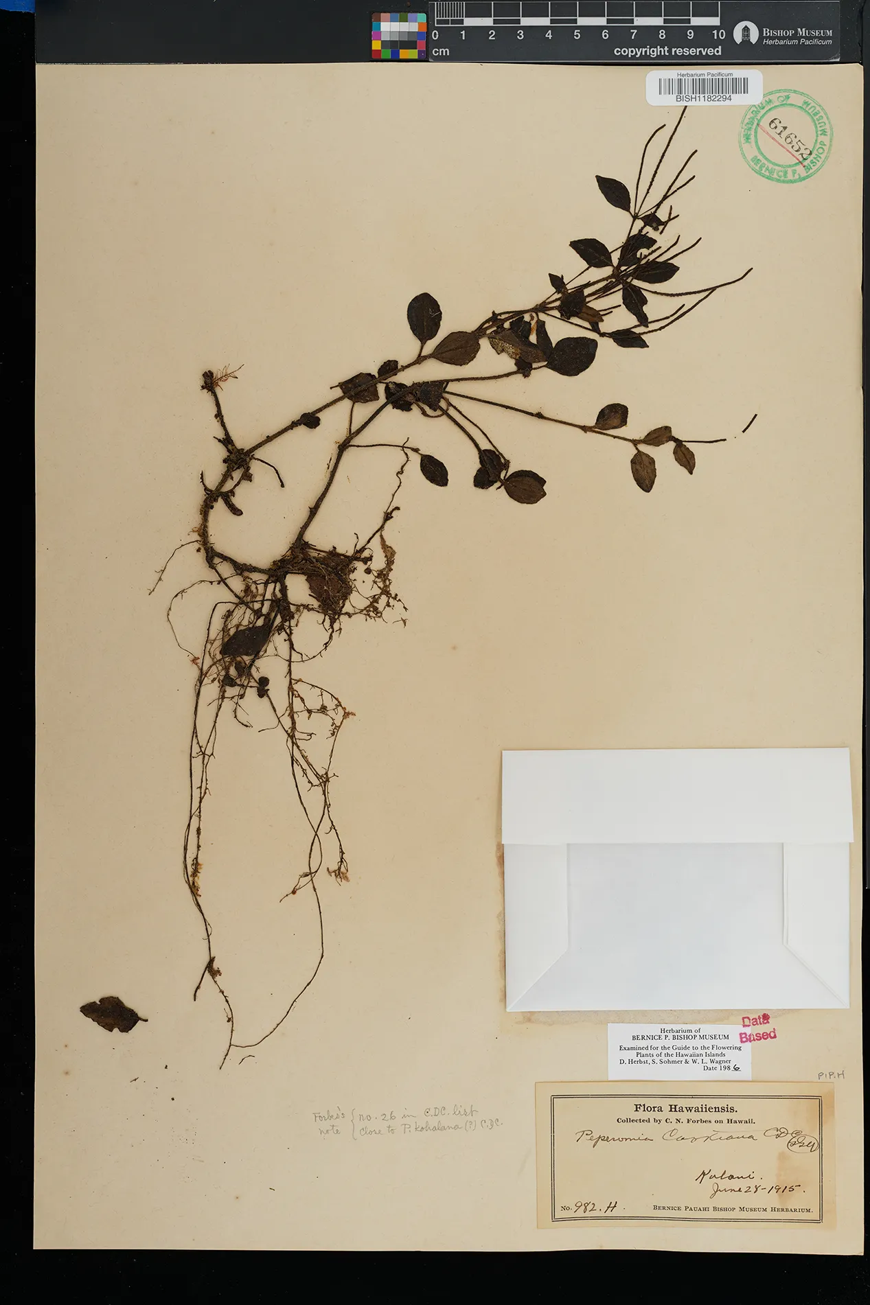 Ohia Mixed Mesic Forest a small herb covering the ground at 3800 ft on a ridge with Metrosideros, Cheirodendron, Myrsine, Dubautia, Hedyotis, Stenogyne and Liparis |