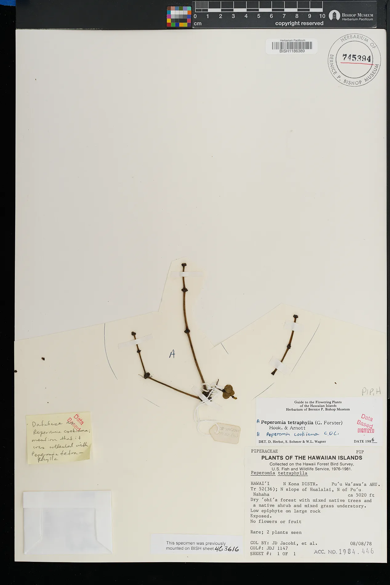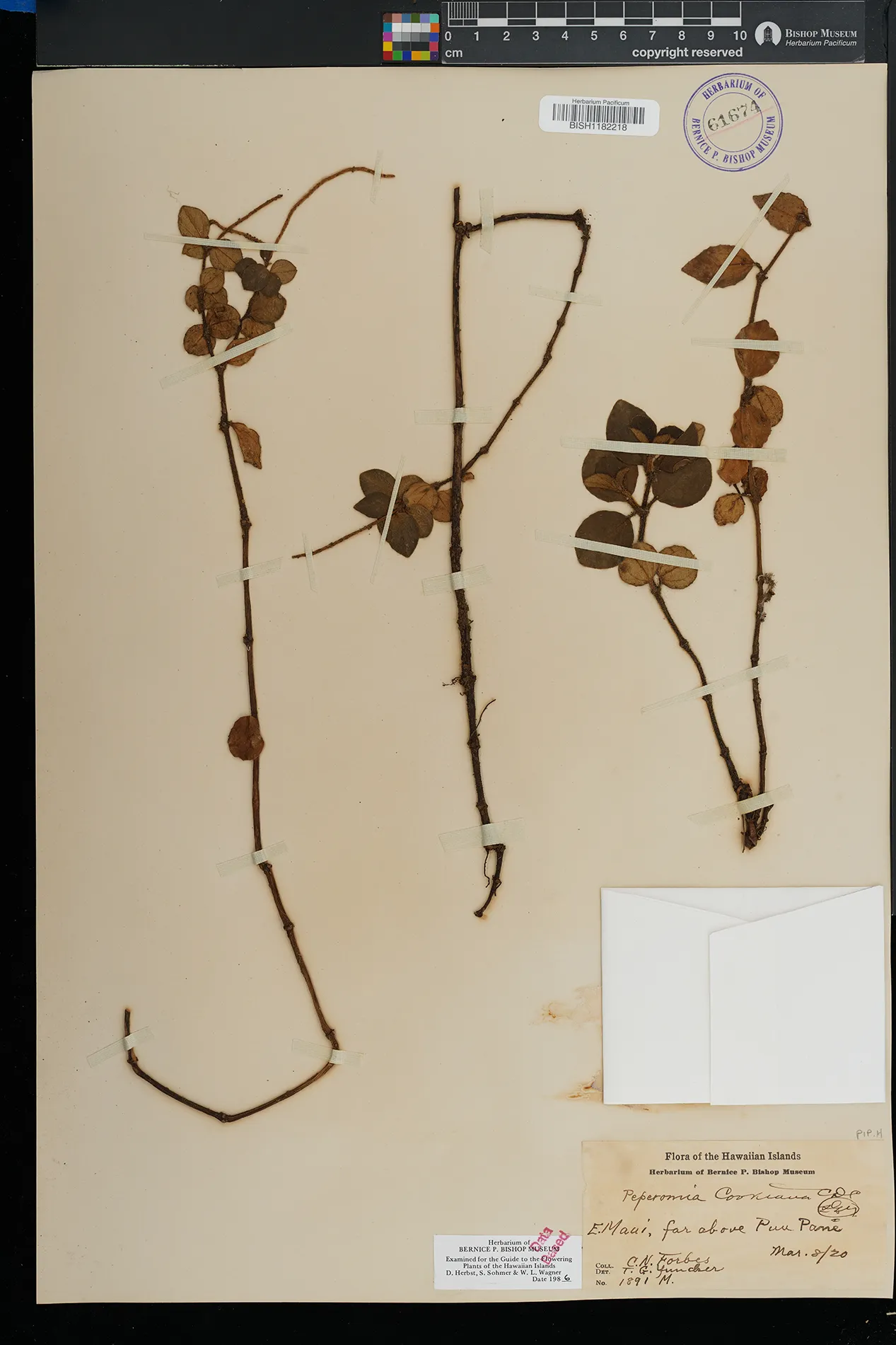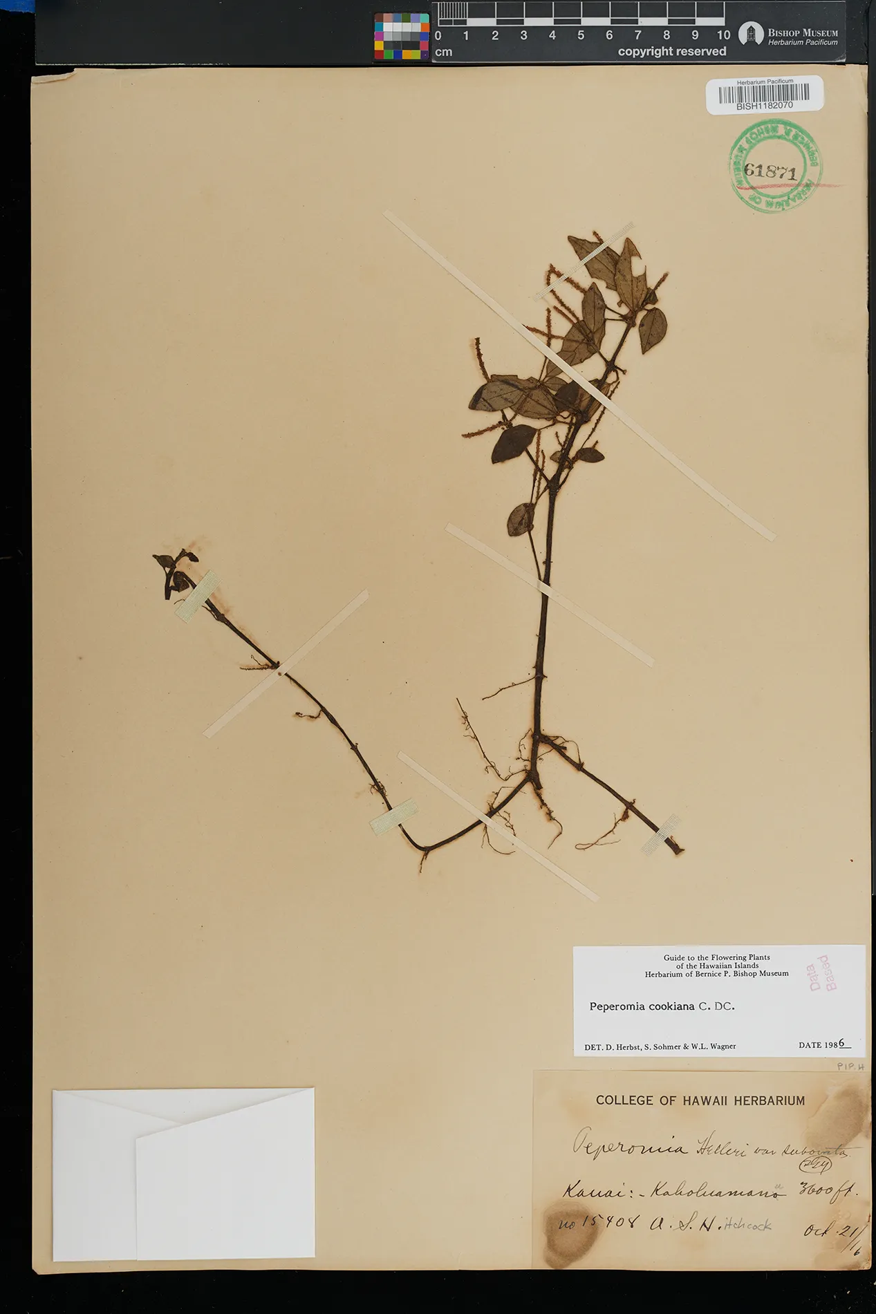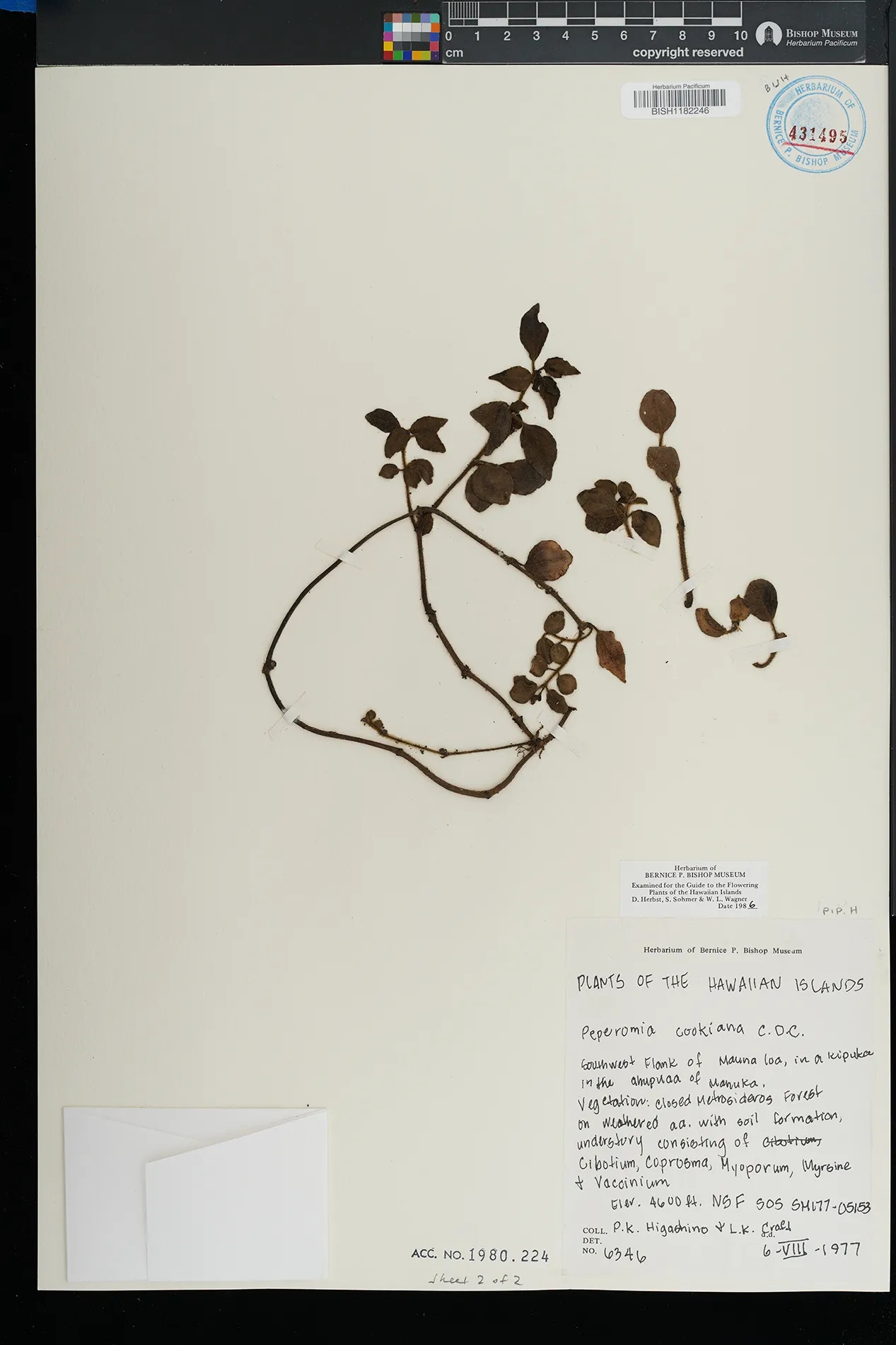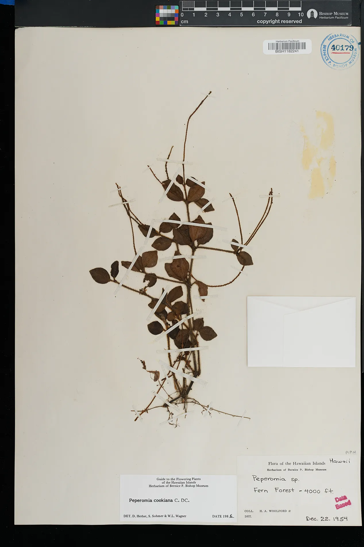 Ohia Mixed Mesic Forest a small herb covering the ground at 3800 ft on a ridge with Metrosideros, Cheirodendron, Myrsine, Dubautia, Hedyotis, Stenogyne and Liparis |