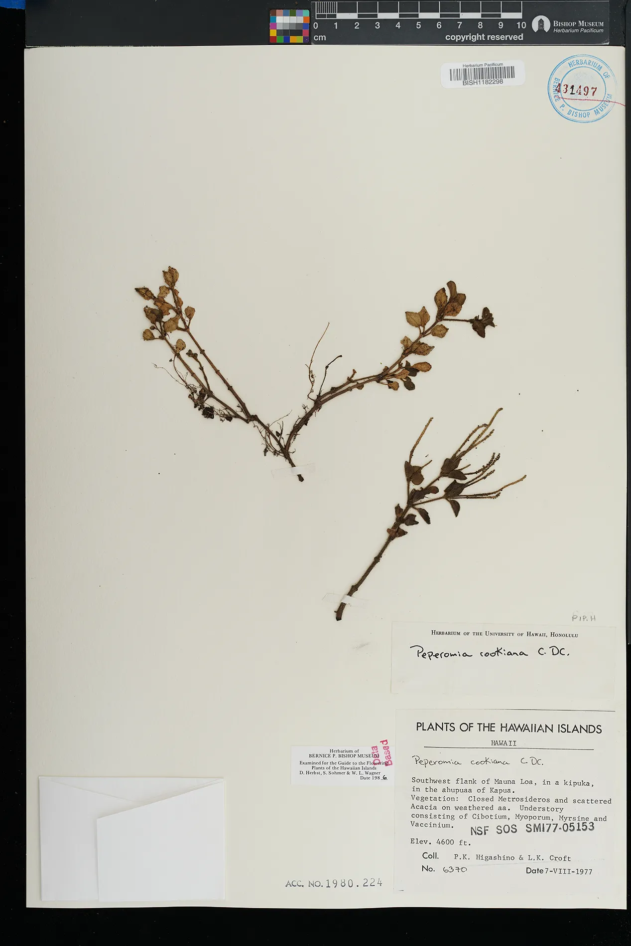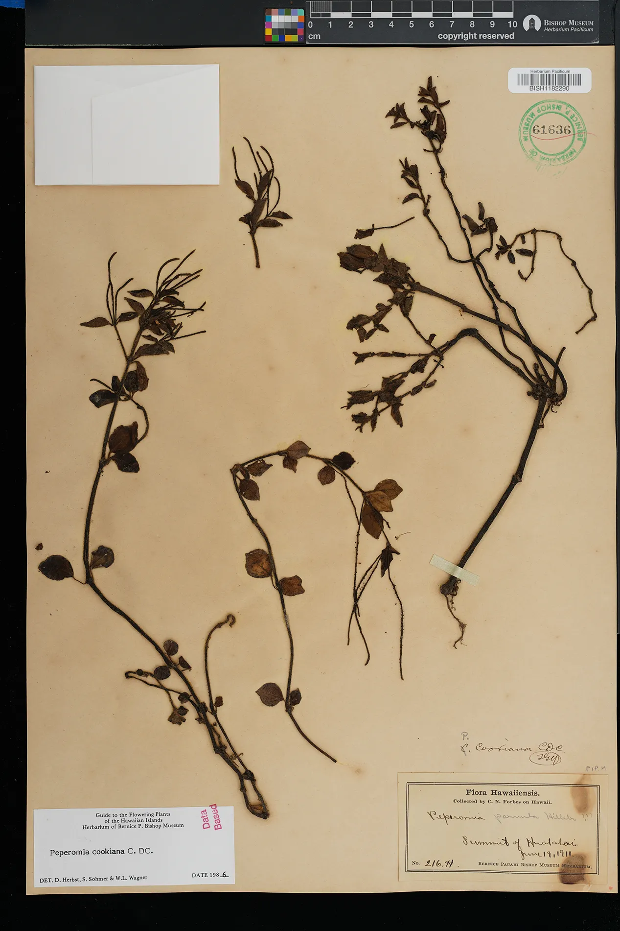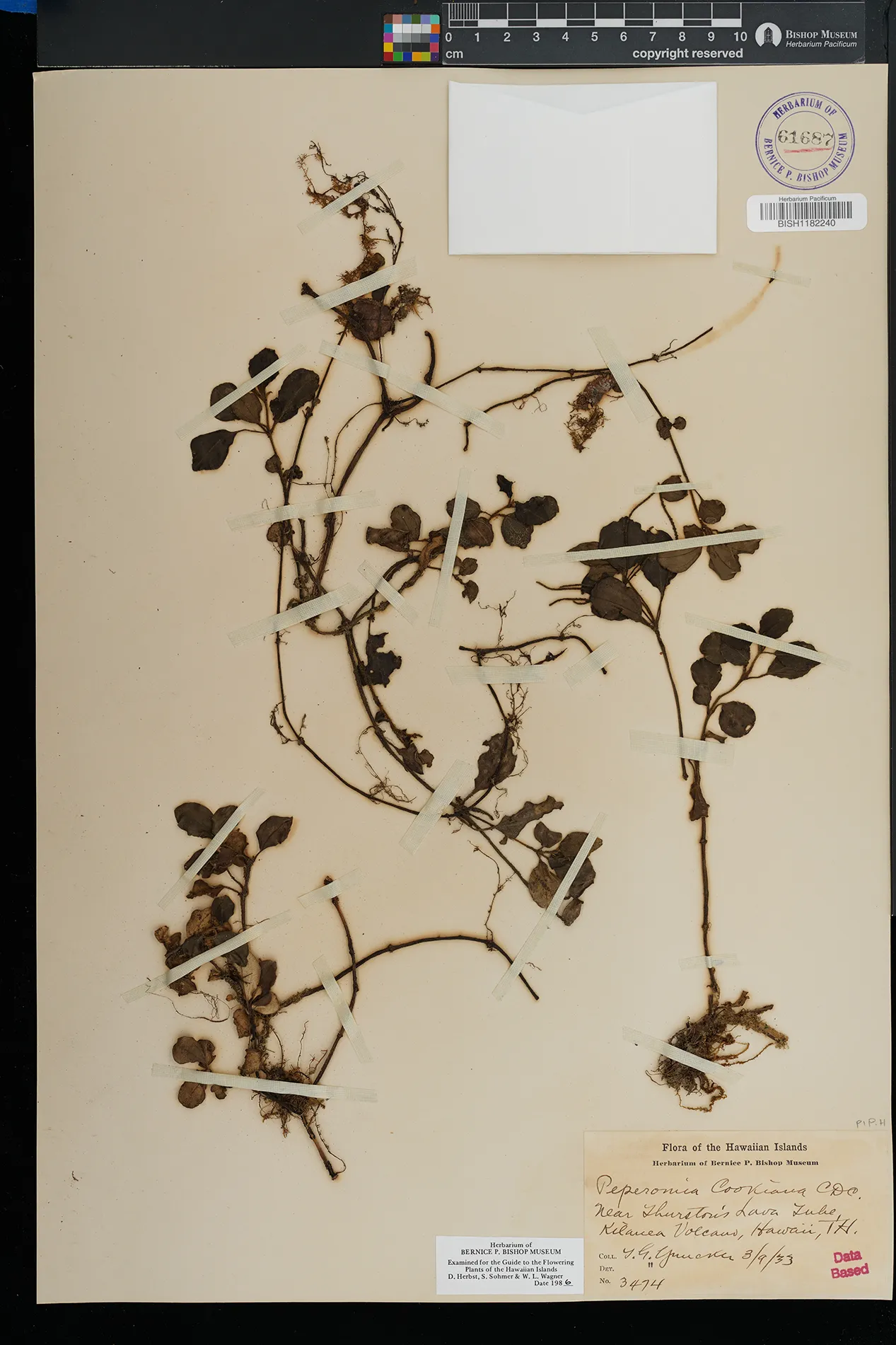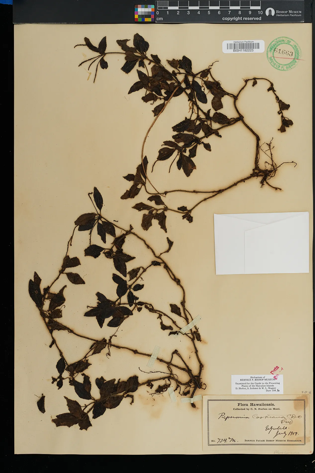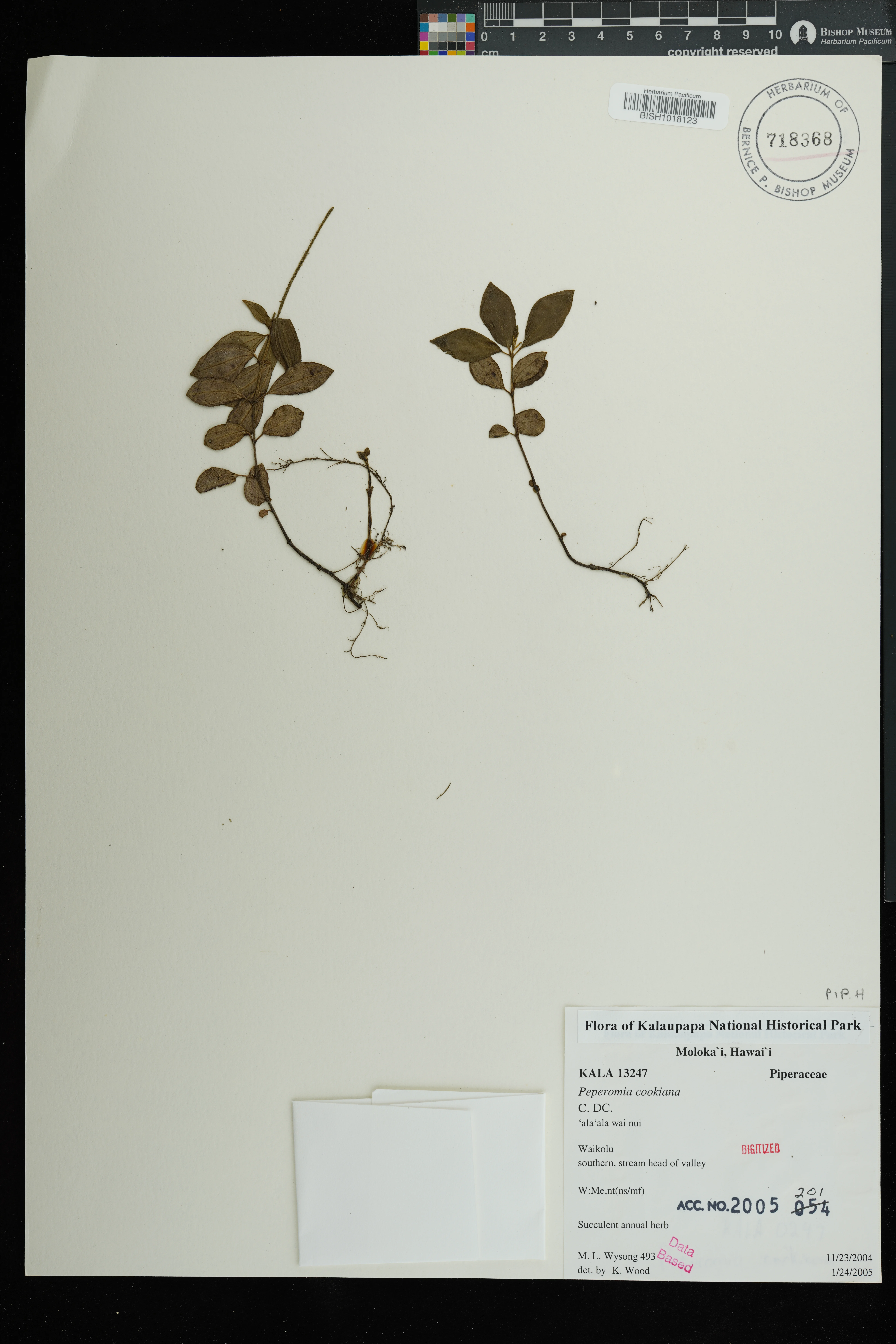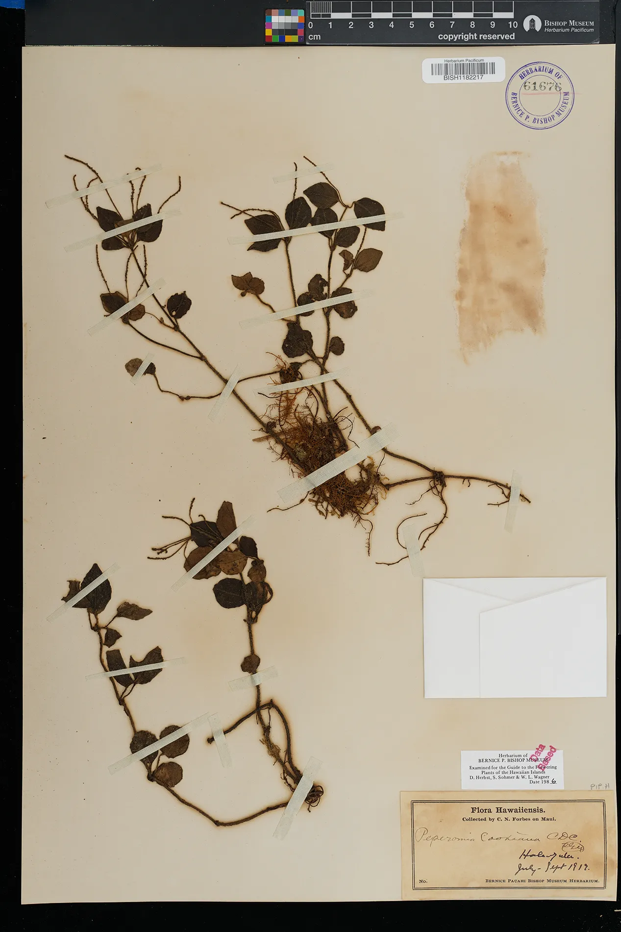 Ohia Mixed Mesic Forest a small herb covering the ground at 3800 ft on a ridge with Metrosideros, Cheirodendron, Myrsine, Dubautia, Hedyotis, Stenogyne and Liparis |