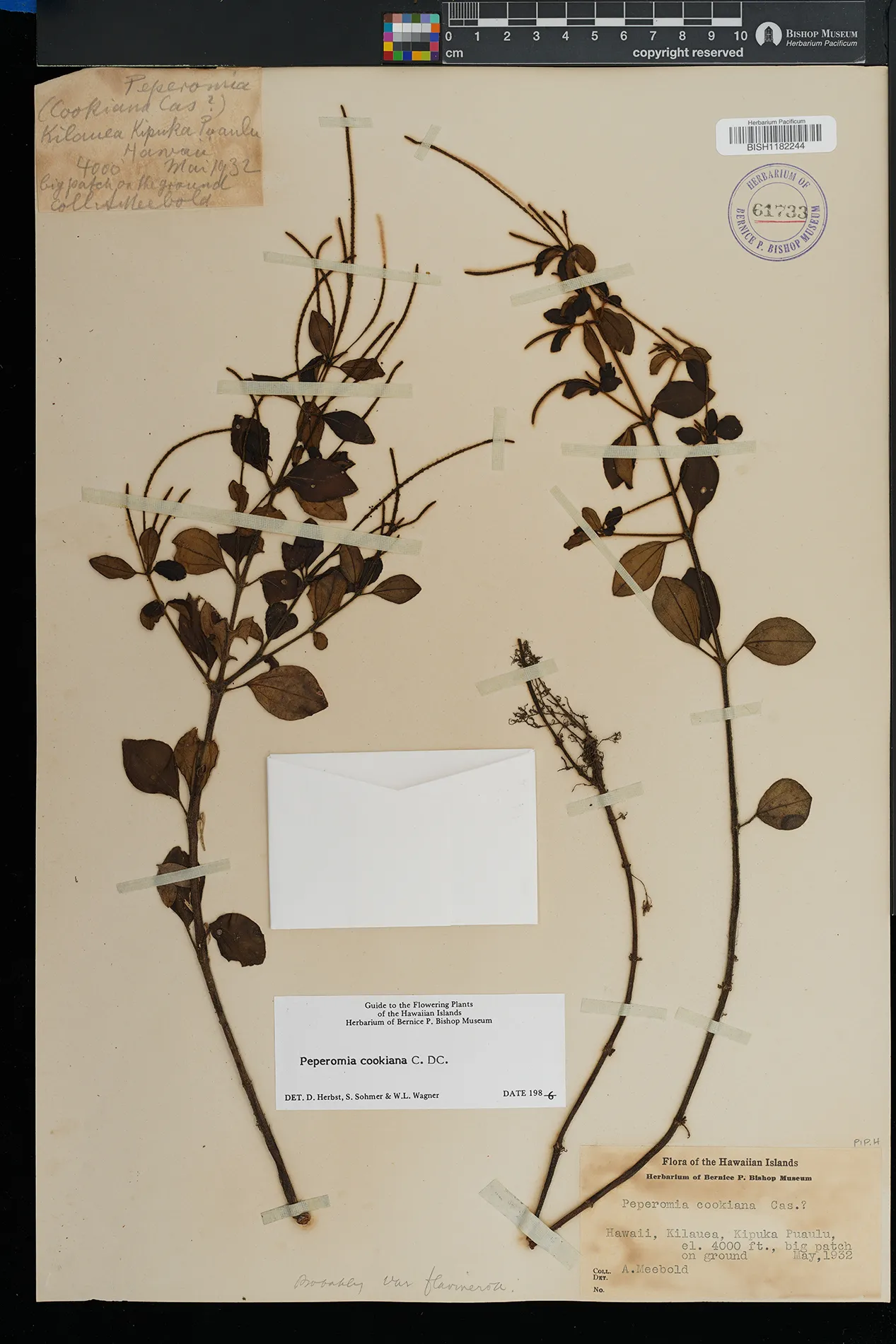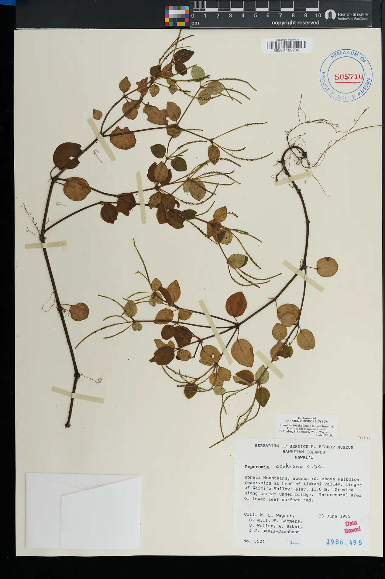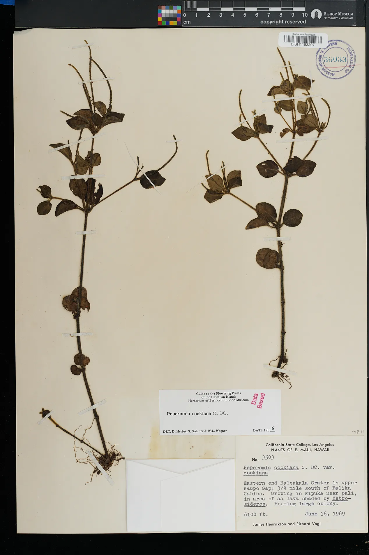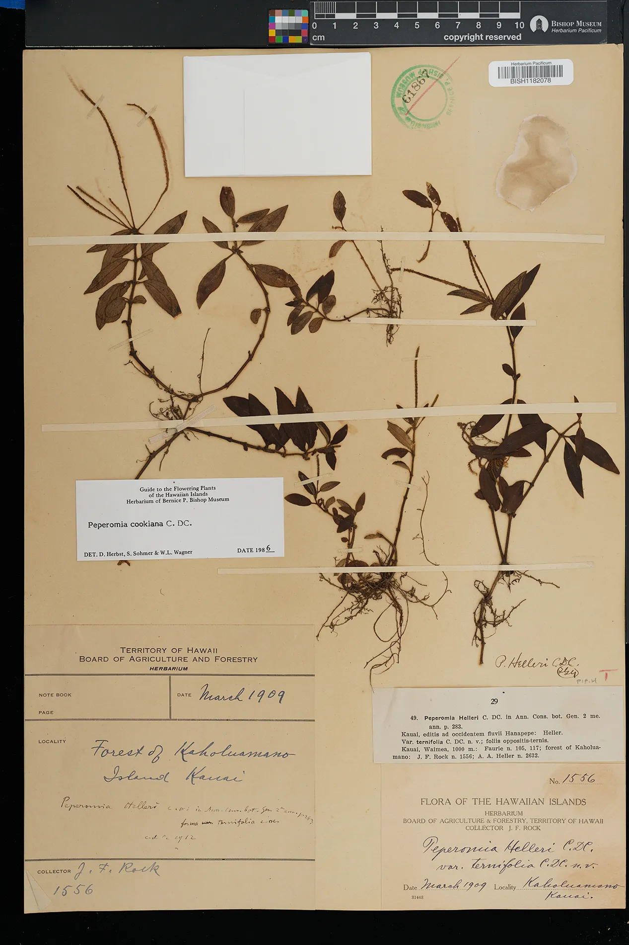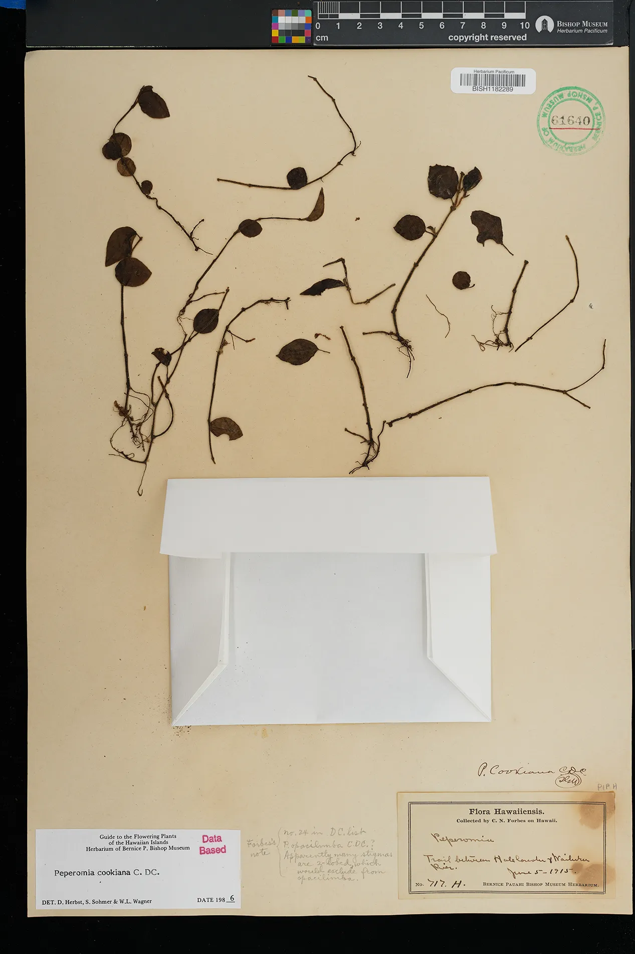 Ohia Mixed Mesic Forest a small herb covering the ground at 3800 ft on a ridge with Metrosideros, Cheirodendron, Myrsine, Dubautia, Hedyotis, Stenogyne and Liparis |