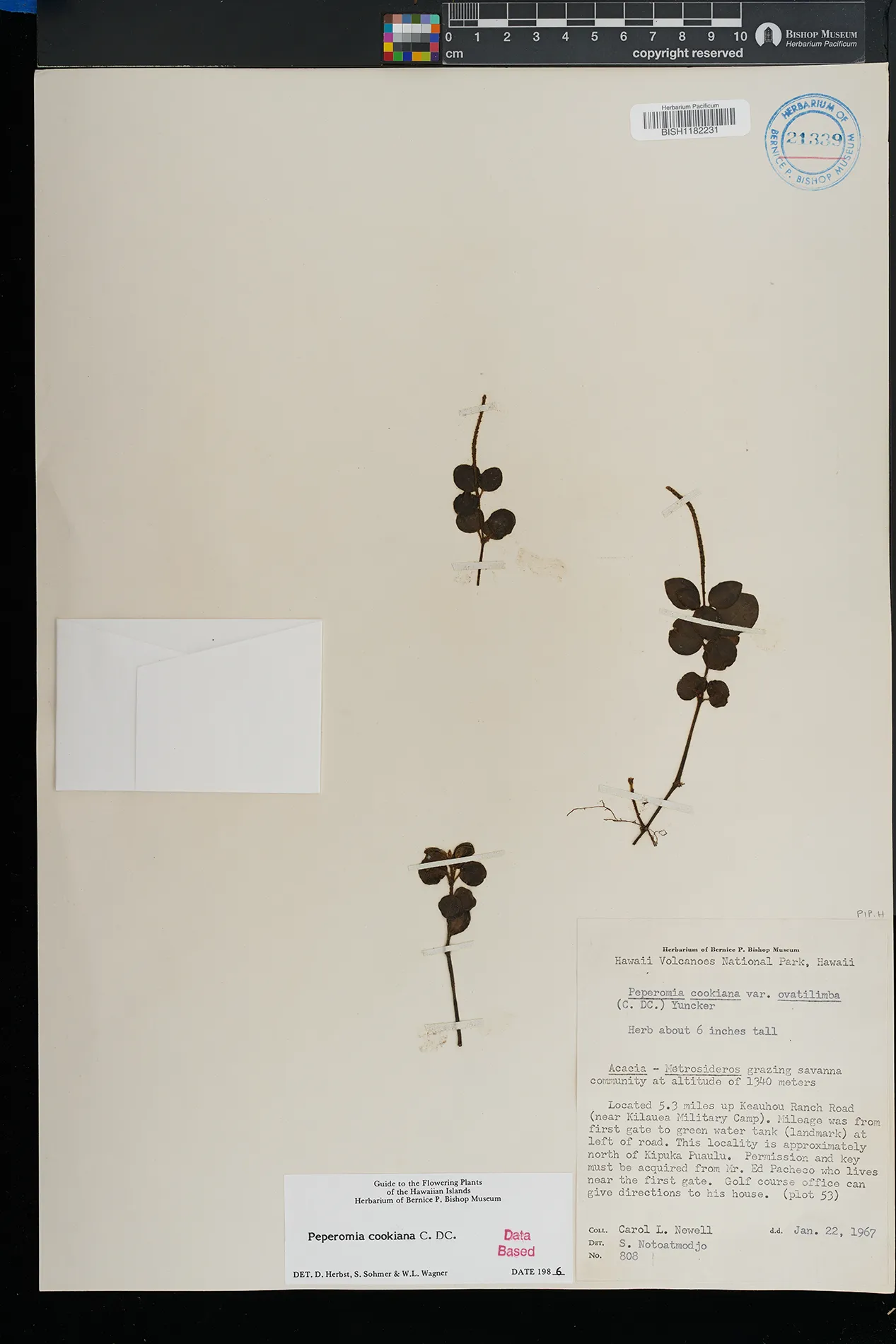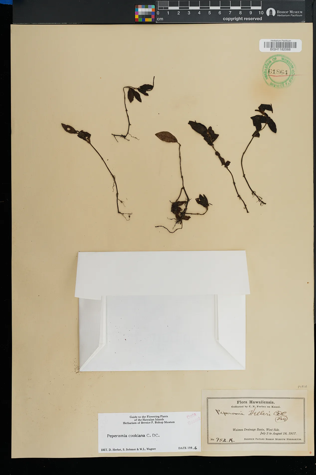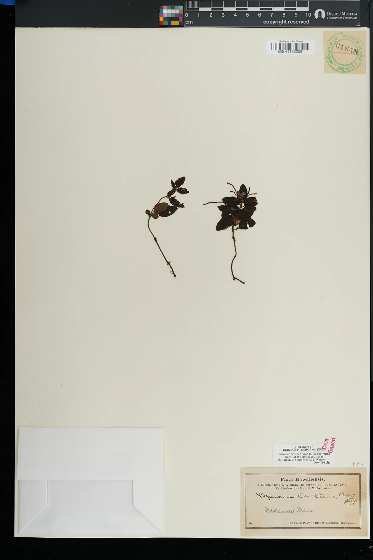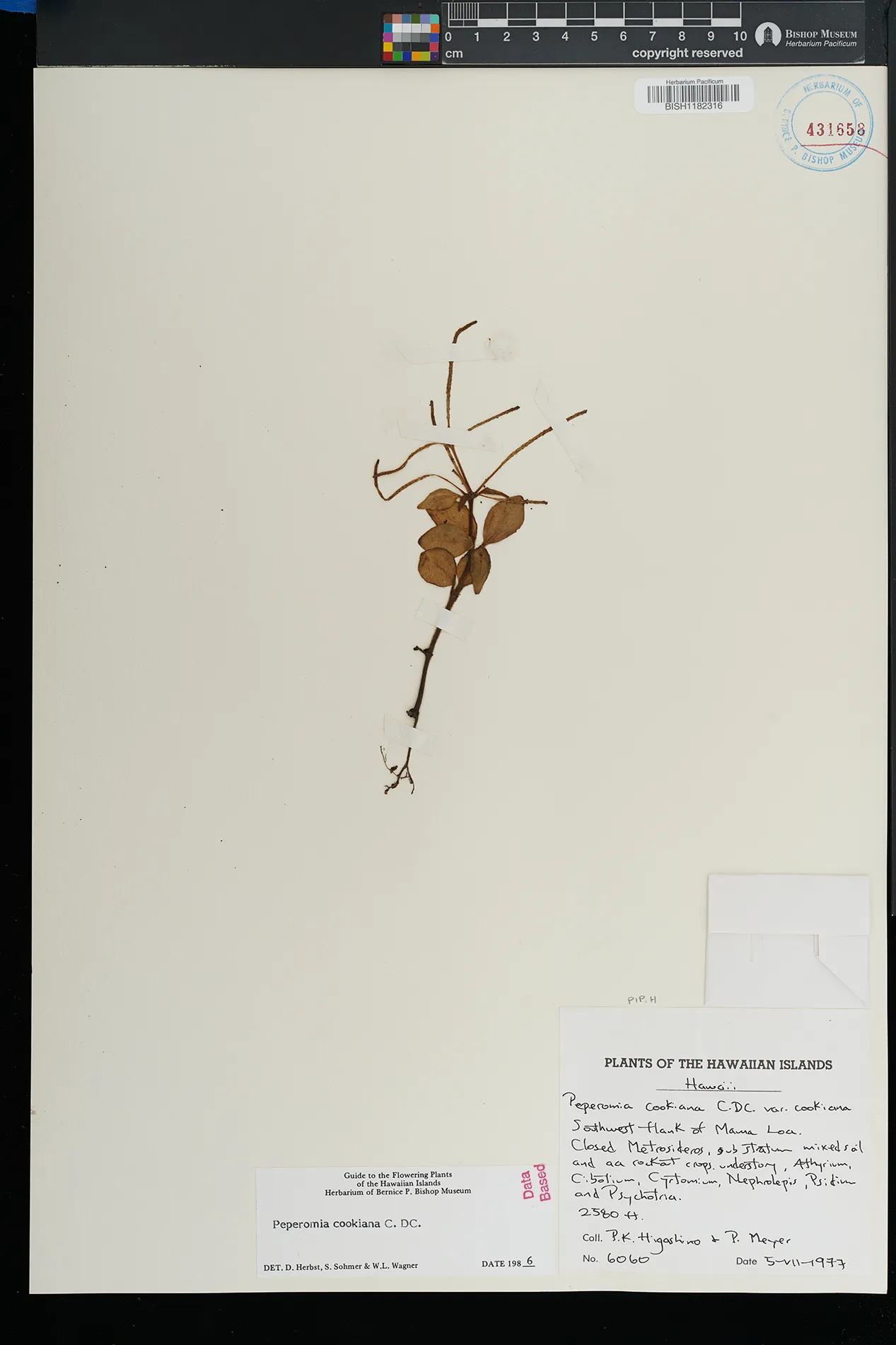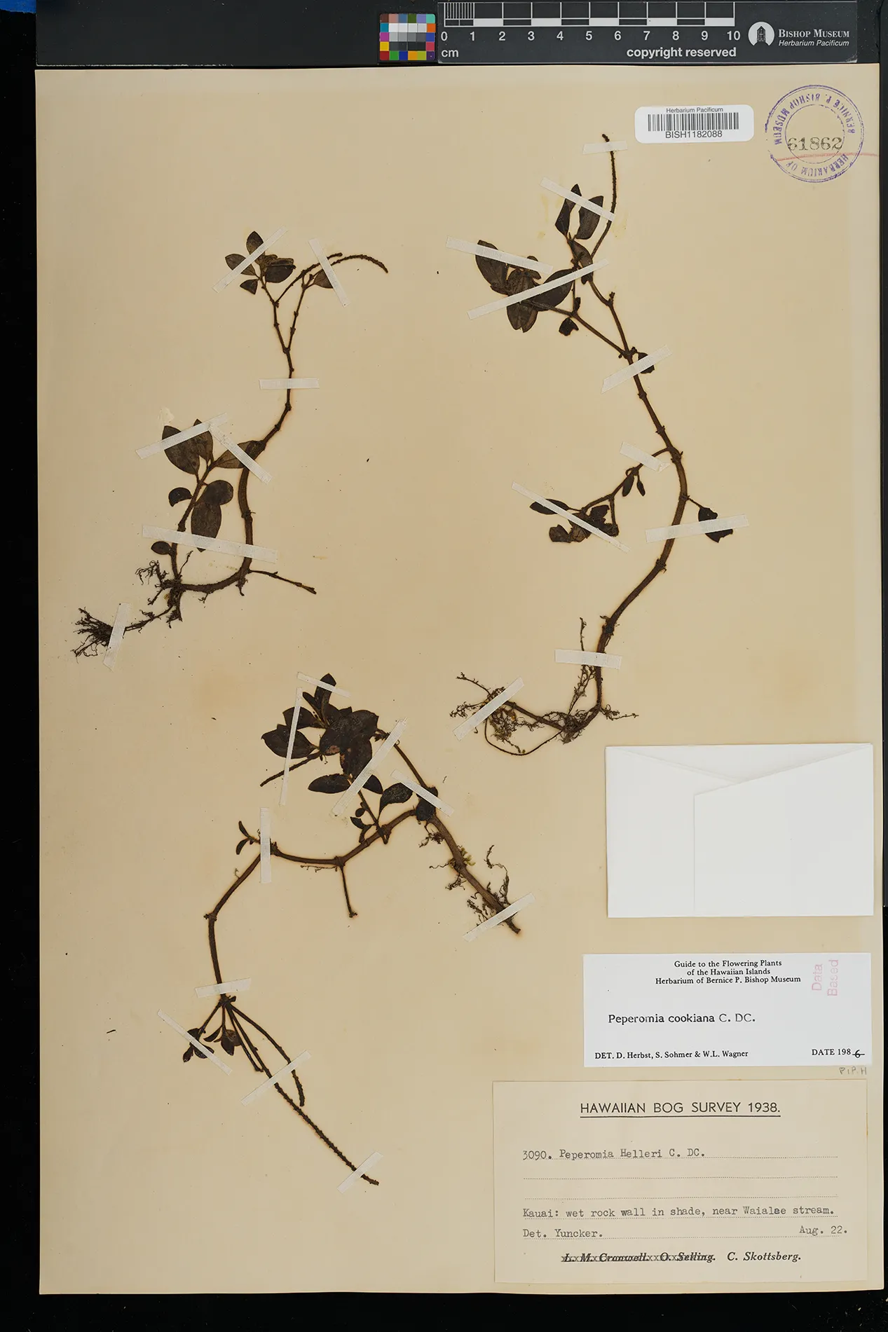 Ohia Mixed Mesic Forest a small herb covering the ground at 3800 ft on a ridge with Metrosideros, Cheirodendron, Myrsine, Dubautia, Hedyotis, Stenogyne and Liparis |