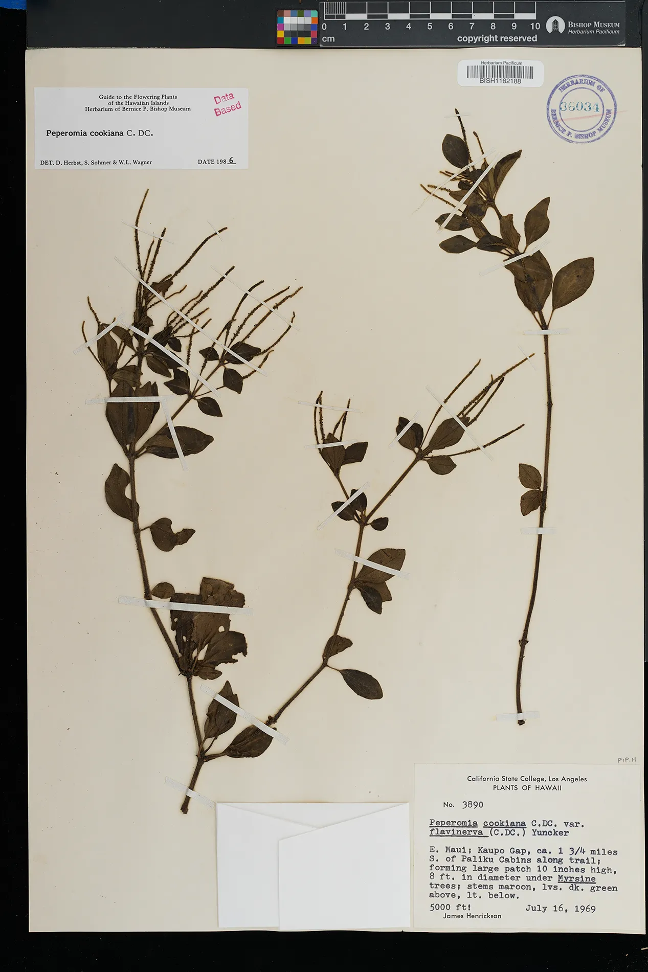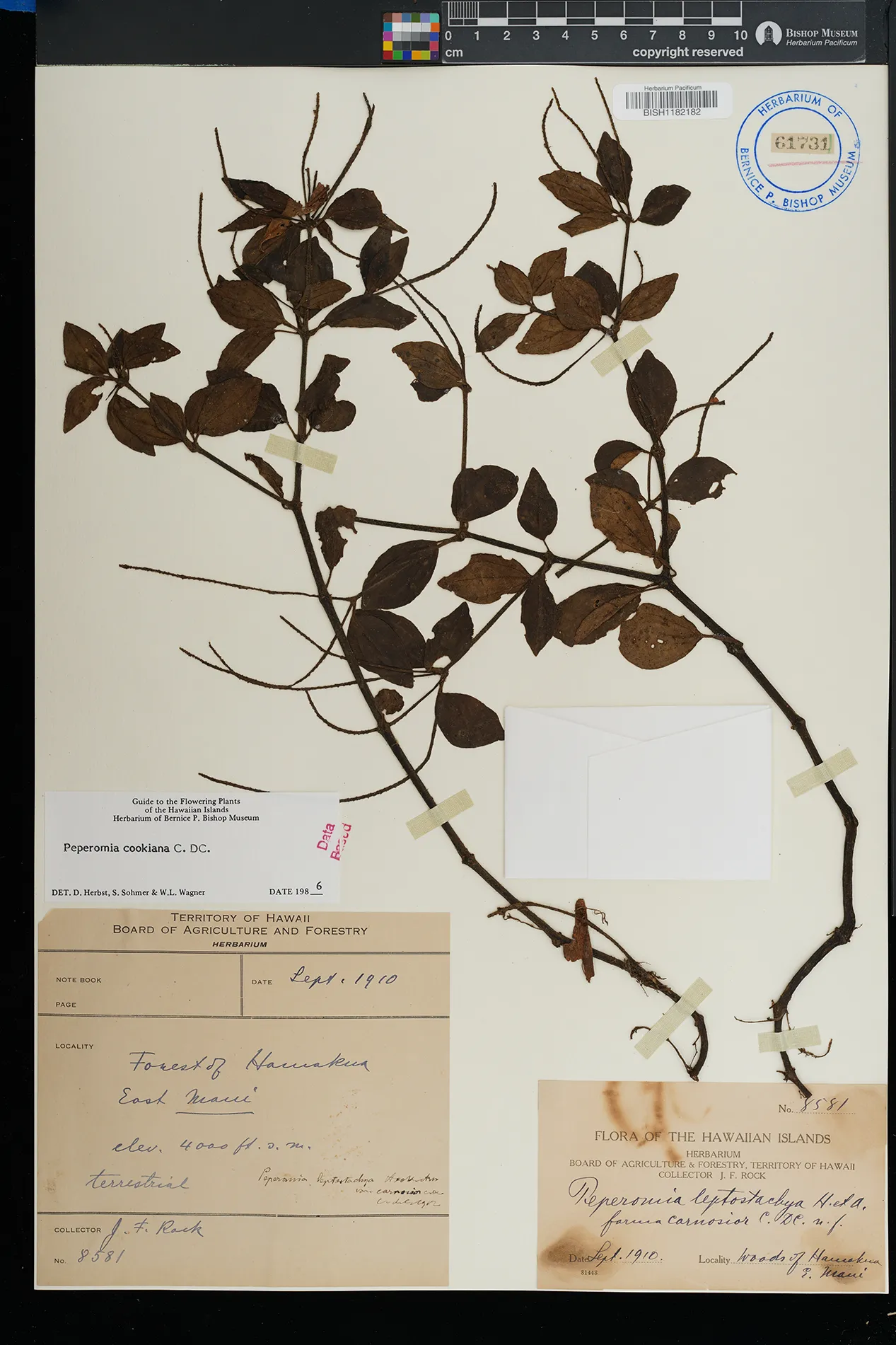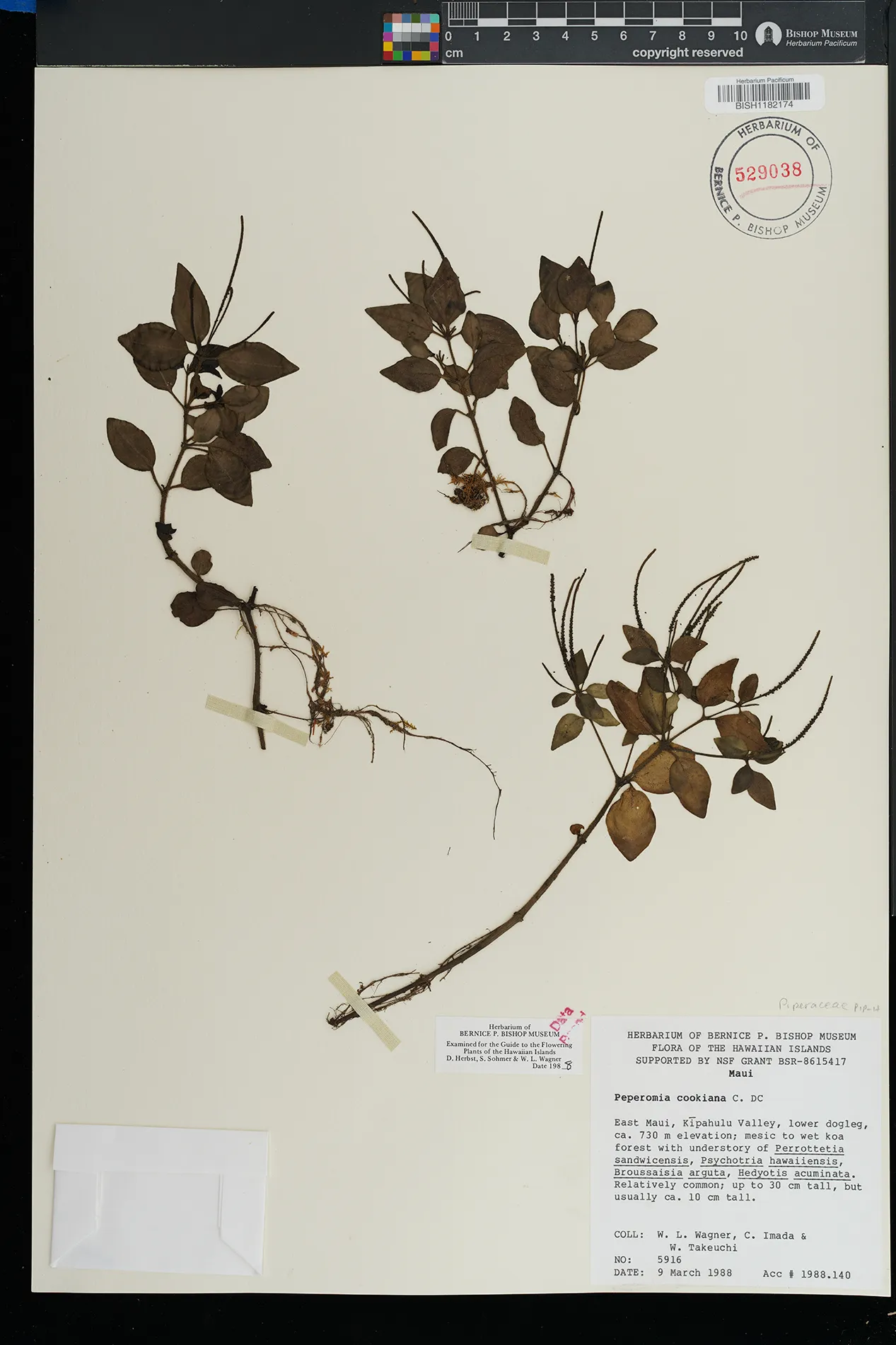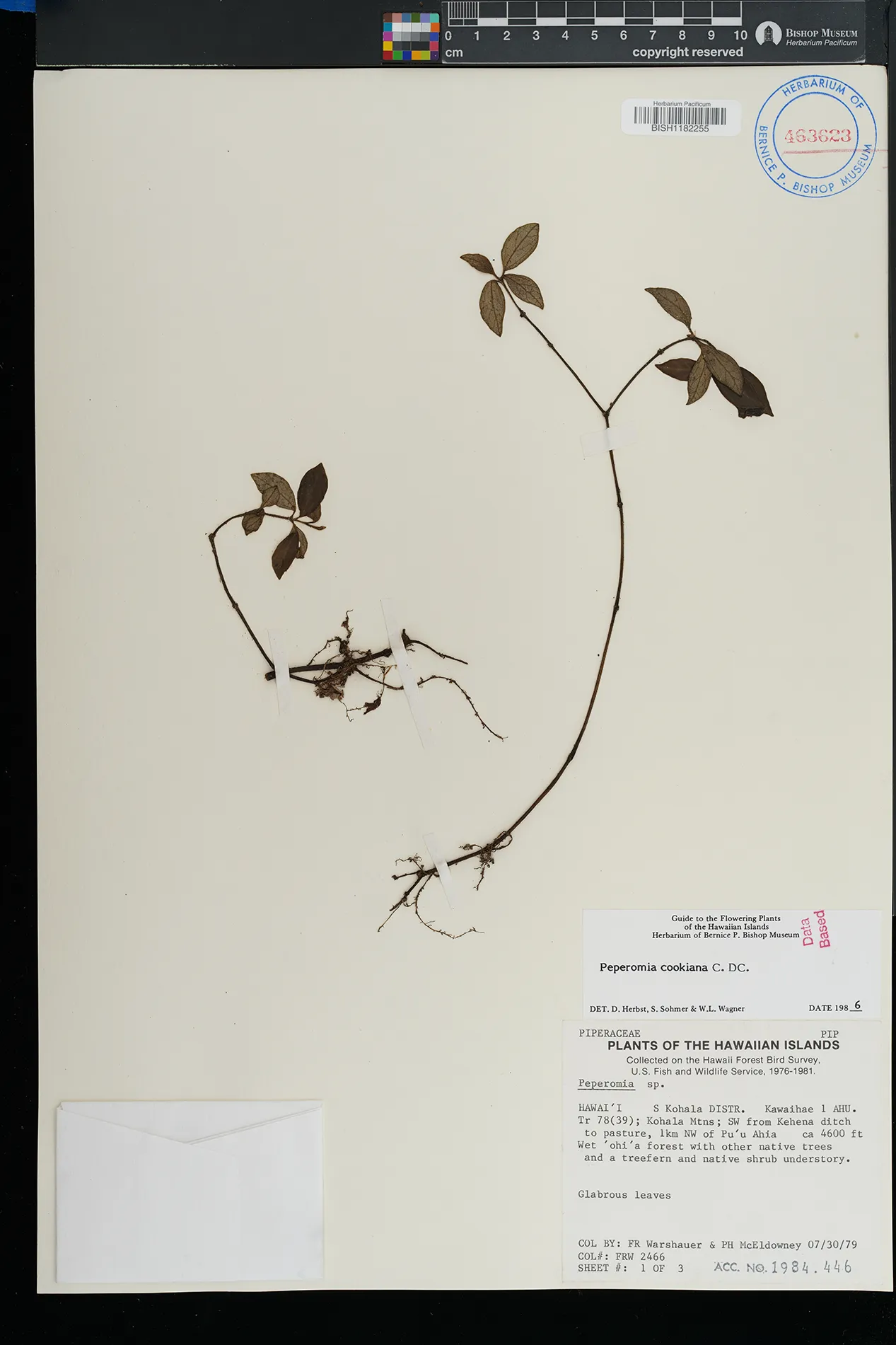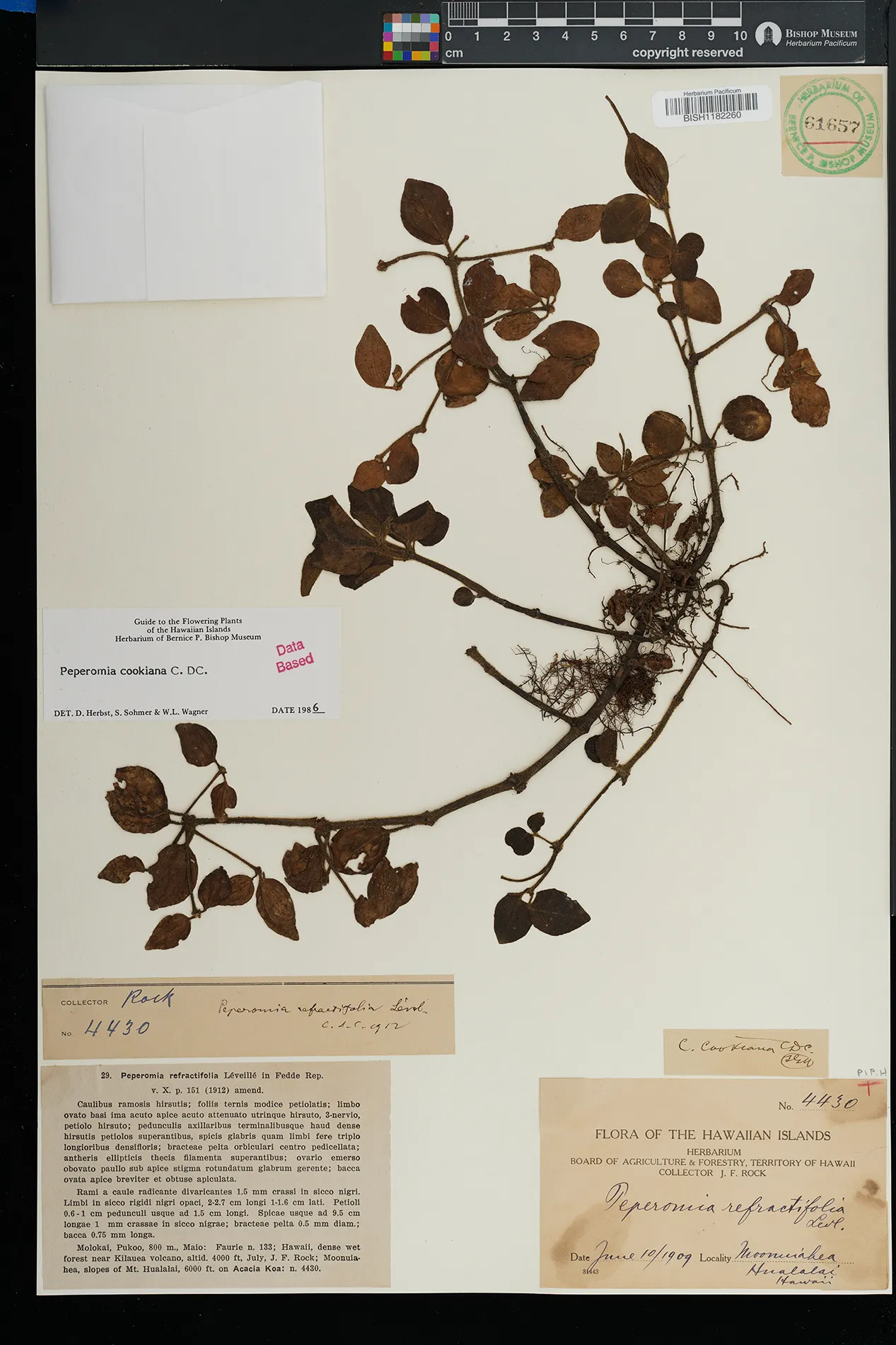 Ohia Mixed Mesic Forest a small herb covering the ground at 3800 ft on a ridge with Metrosideros, Cheirodendron, Myrsine, Dubautia, Hedyotis, Stenogyne and Liparis |