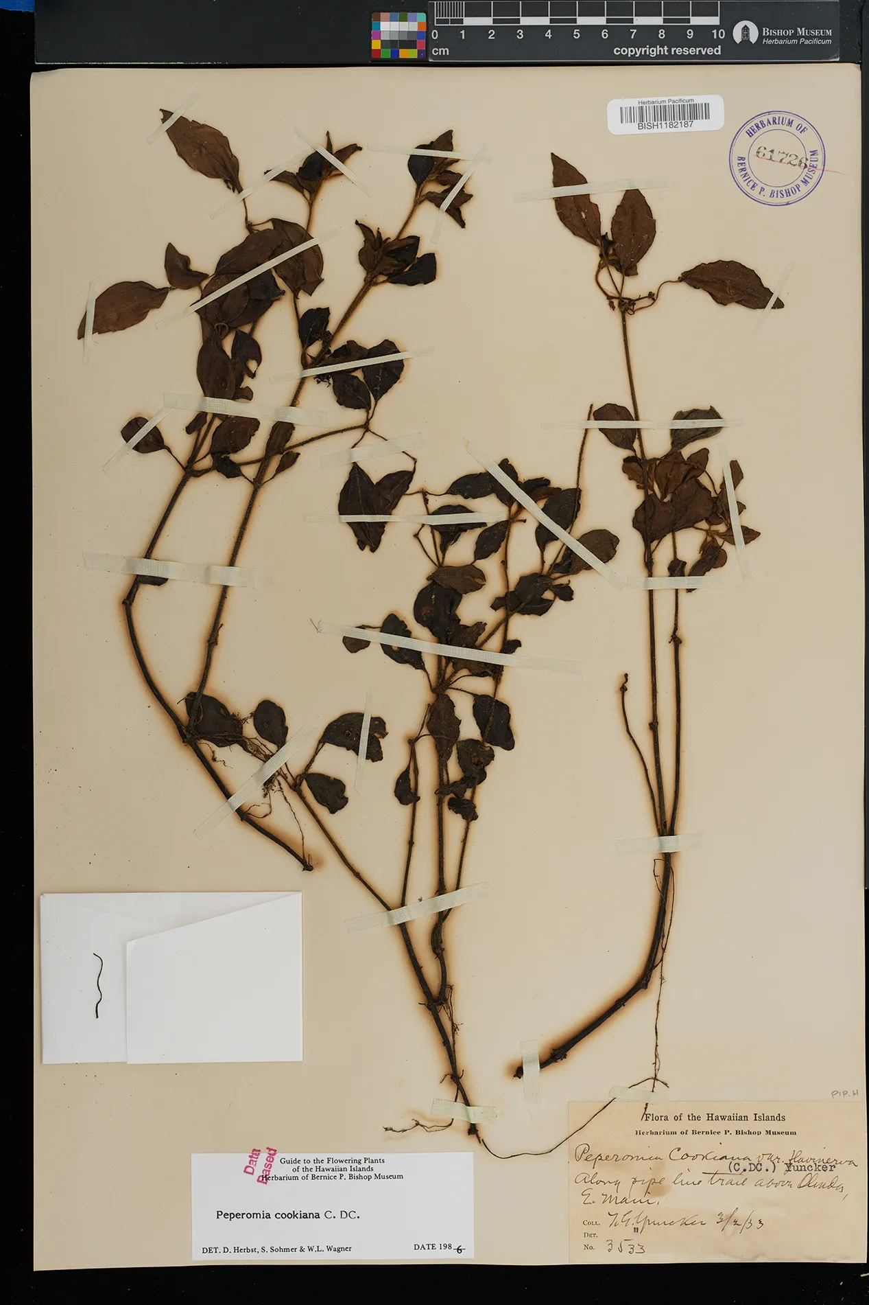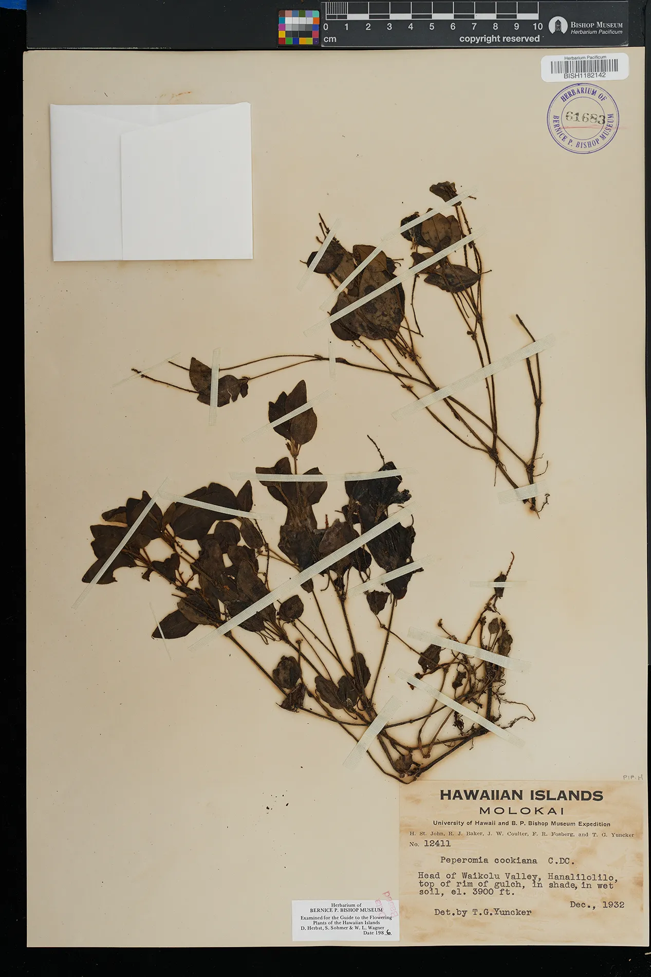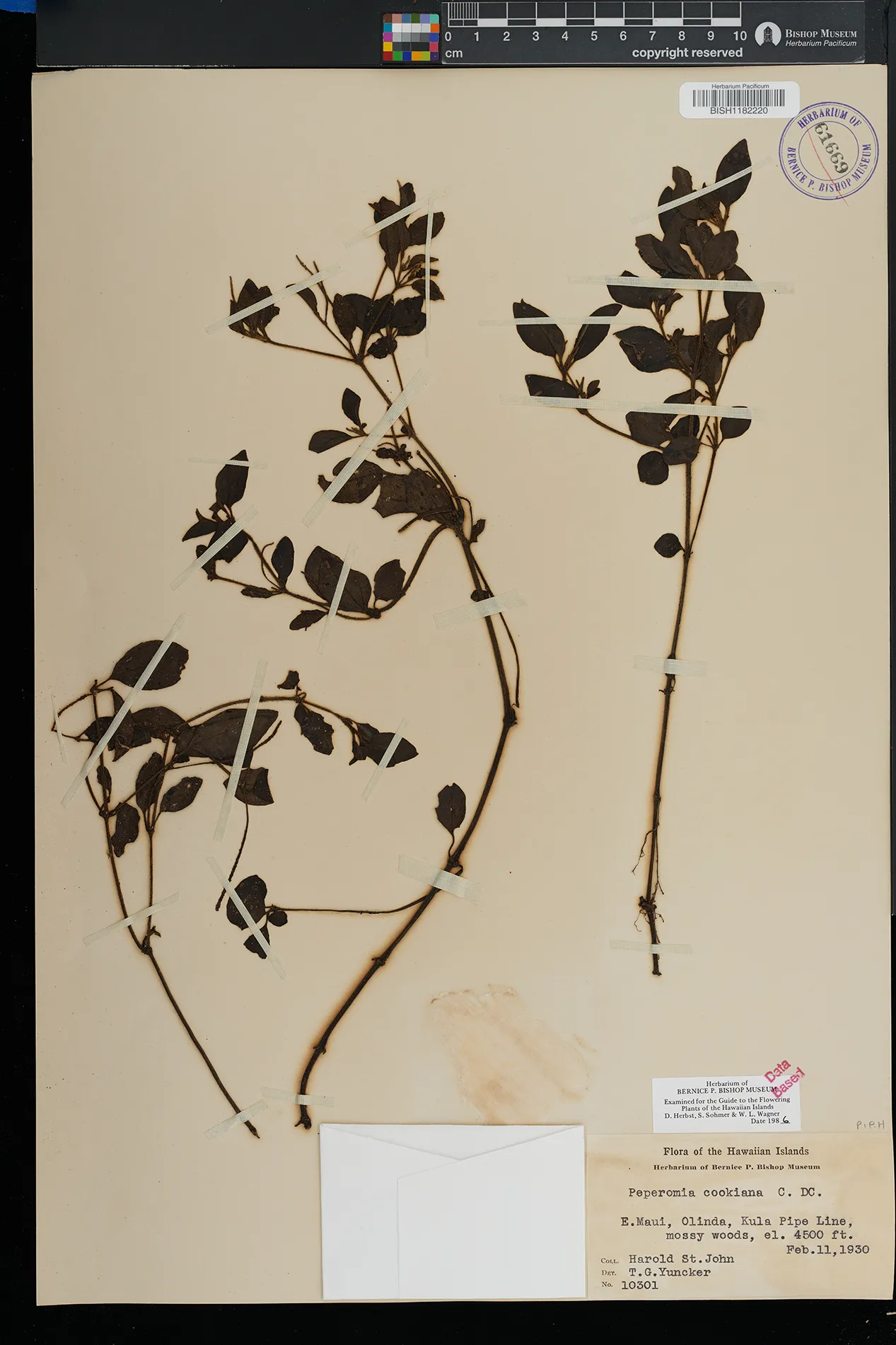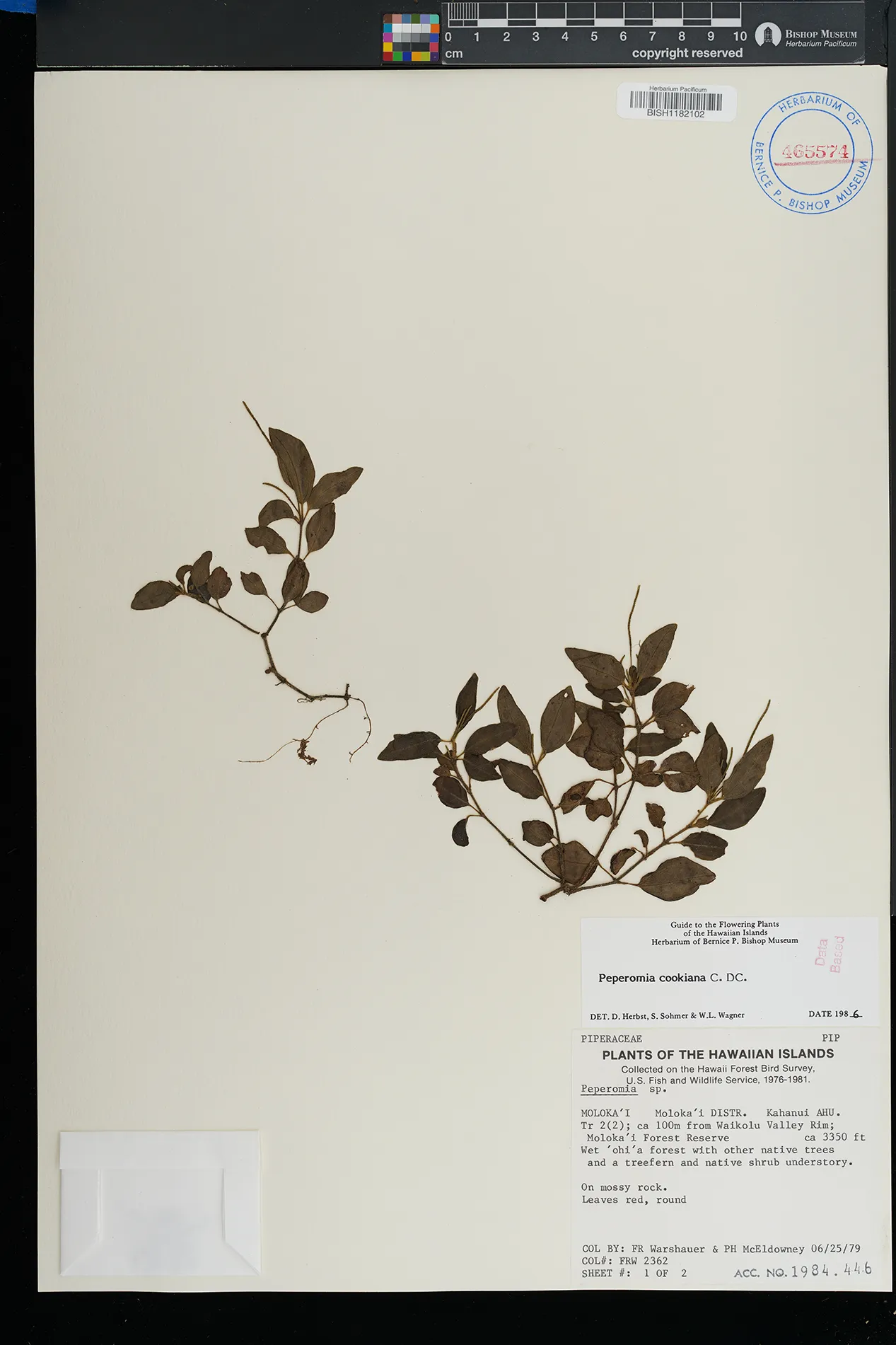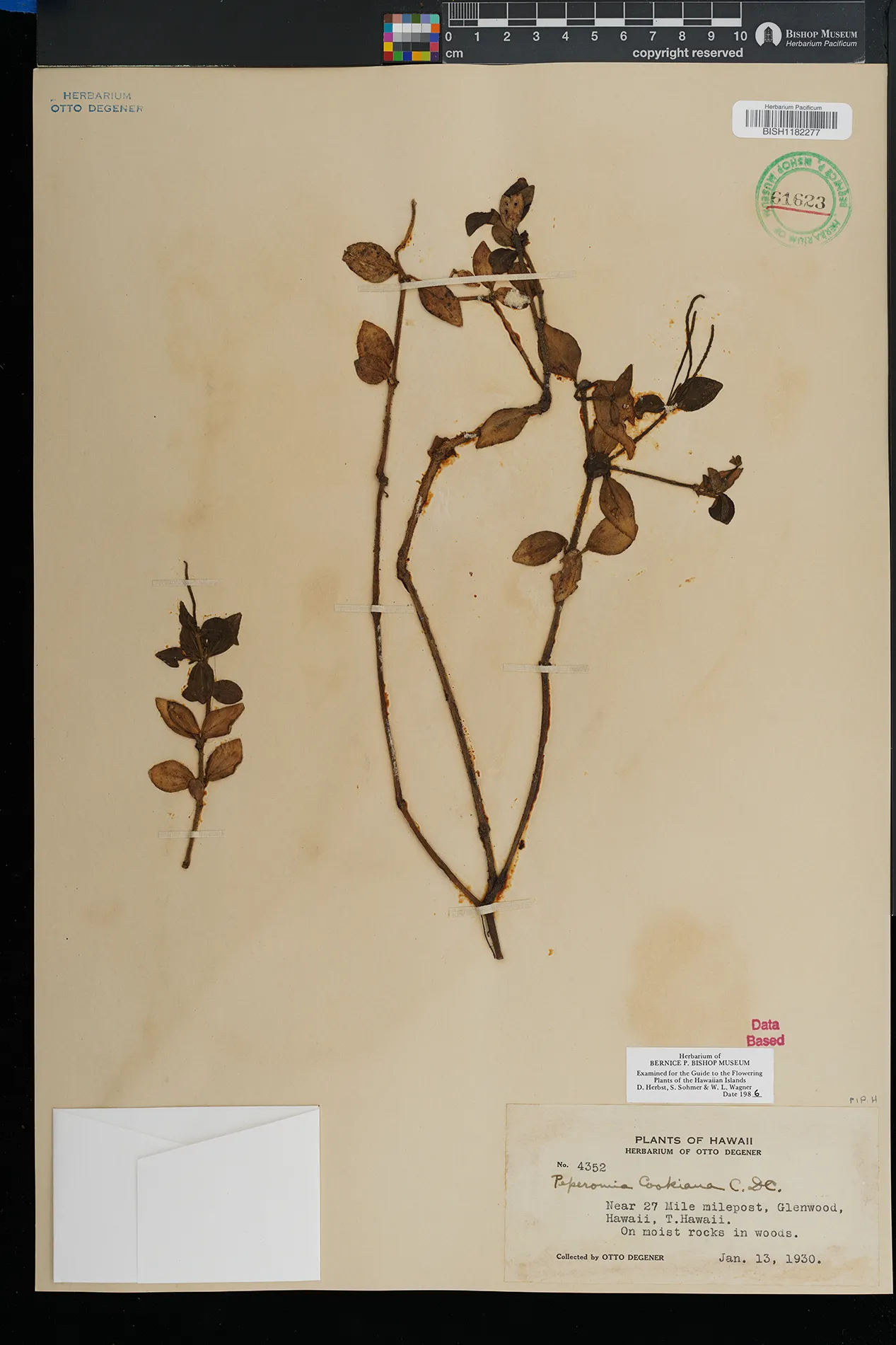Ohia Mixed Mesic Forest a small herb covering the ground at 3800 ft on a ridge with Metrosideros, Cheirodendron, Myrsine, Dubautia, Hedyotis, Stenogyne and Liparis |