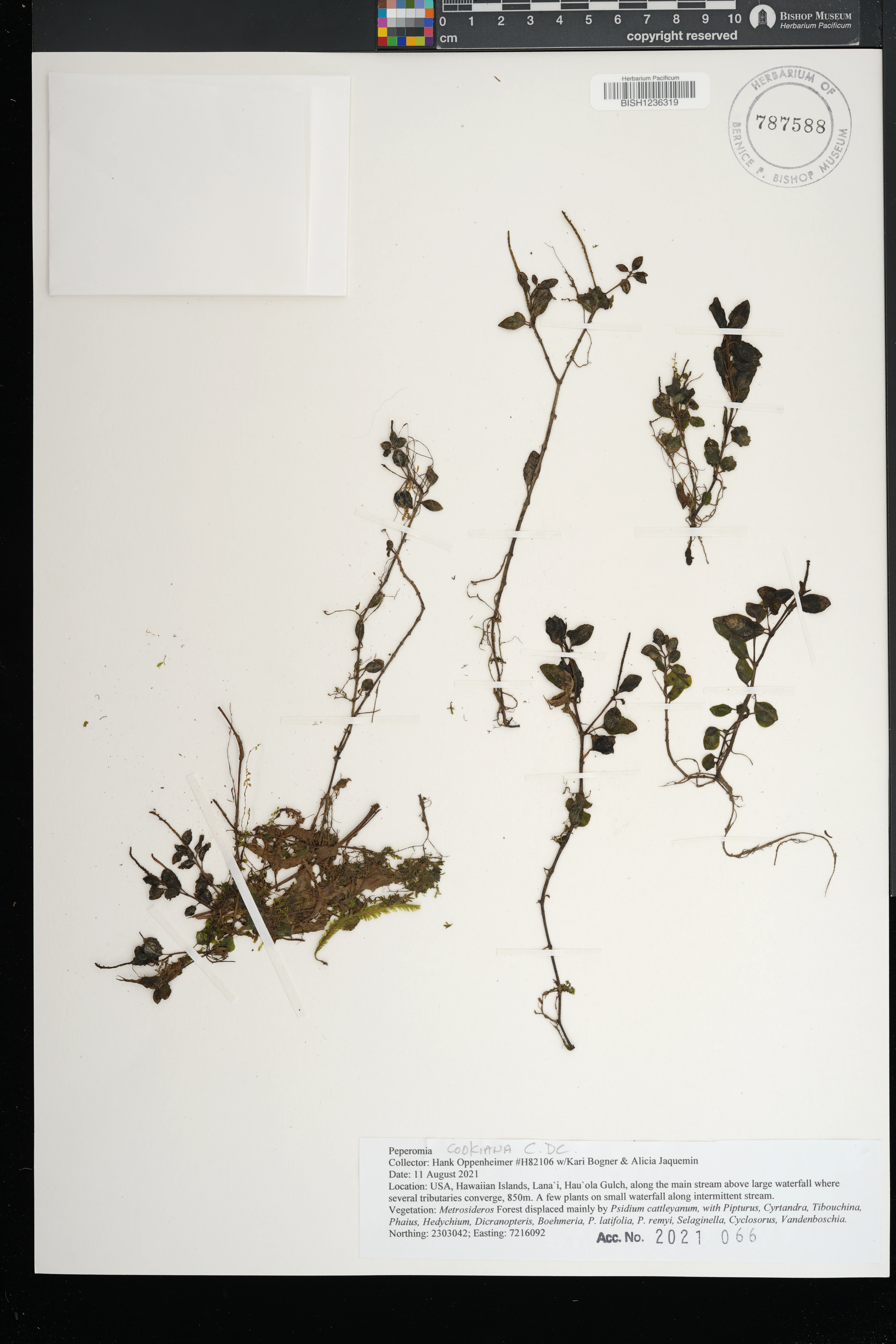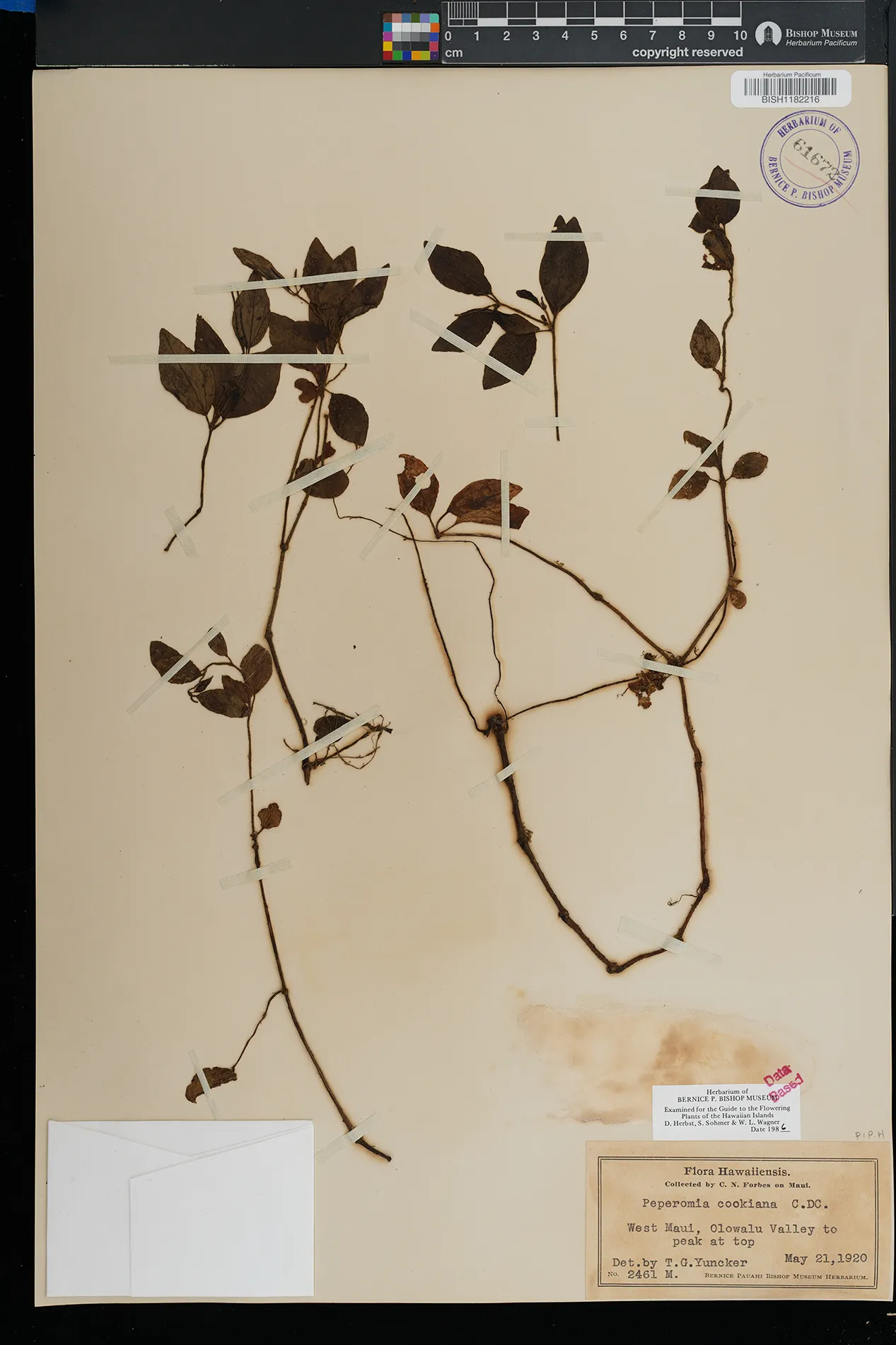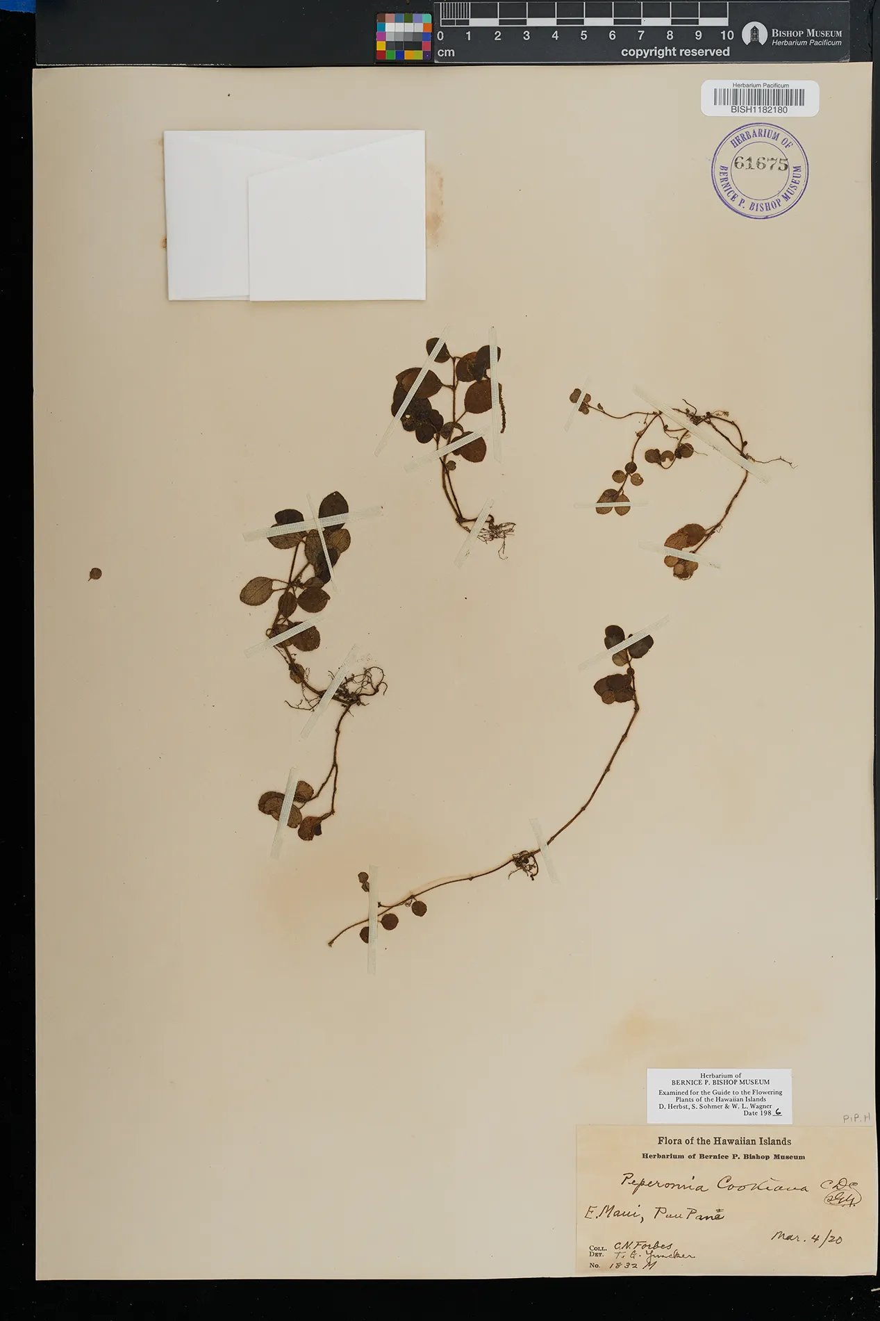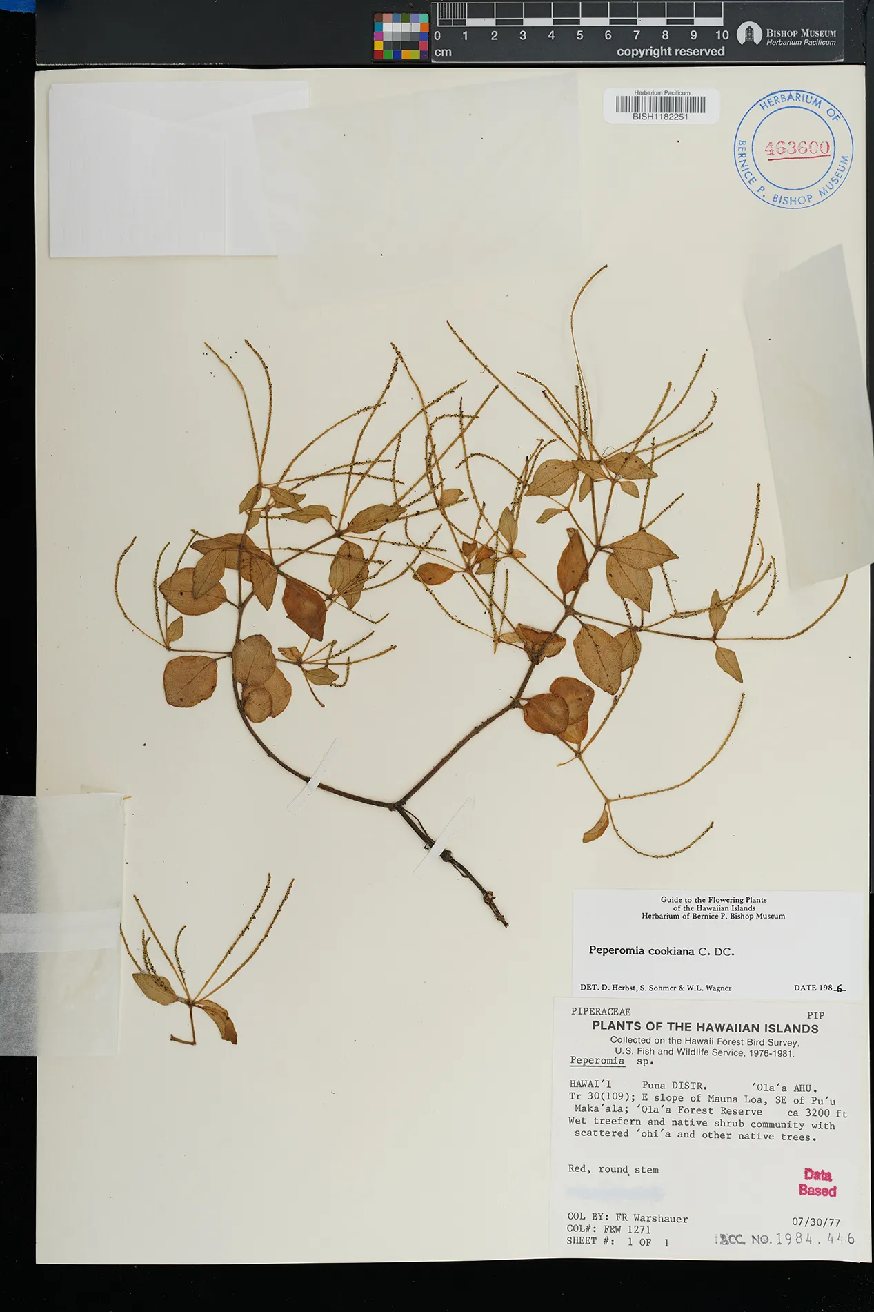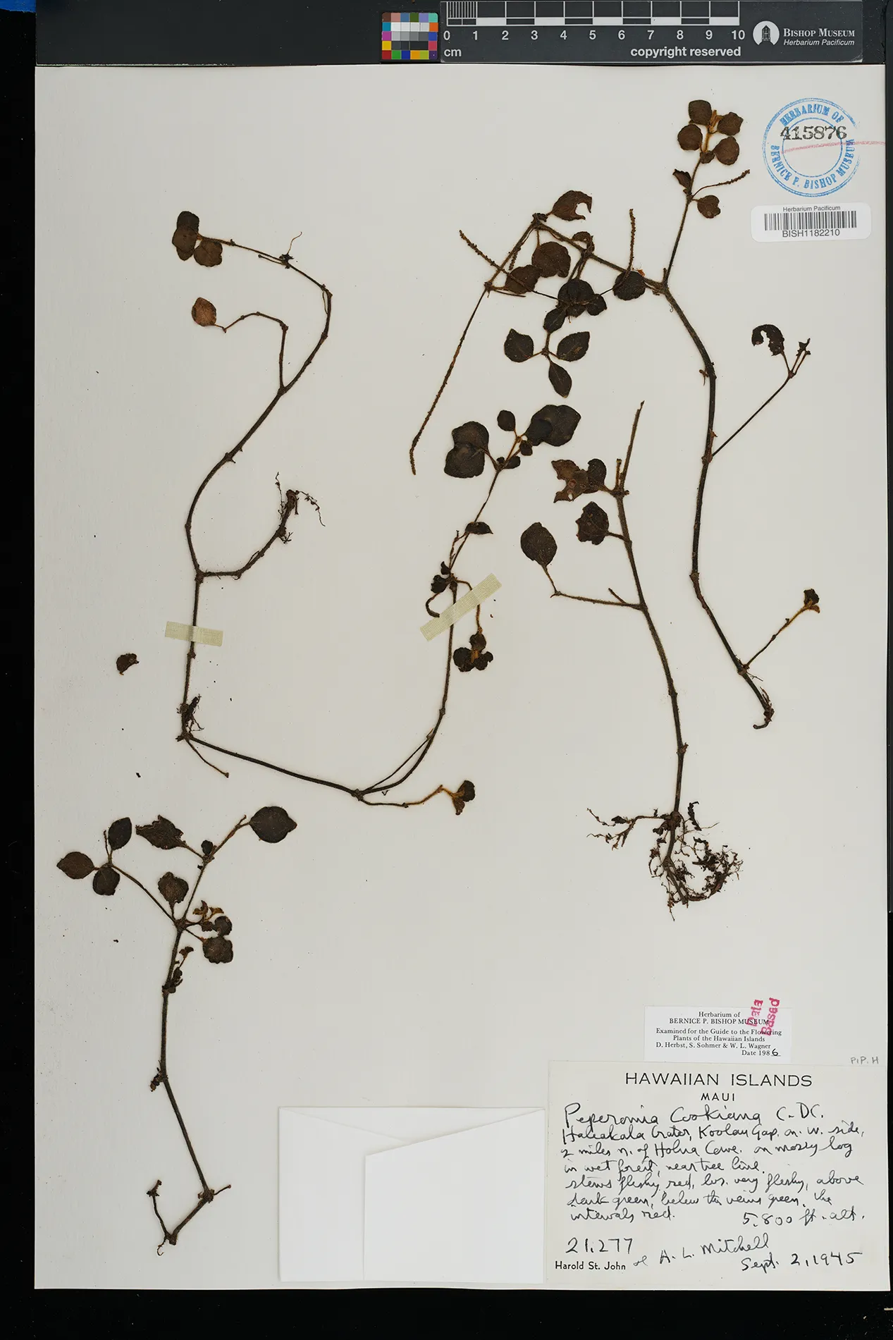 Ohia Mixed Mesic Forest a small herb covering the ground at 3800 ft on a ridge with Metrosideros, Cheirodendron, Myrsine, Dubautia, Hedyotis, Stenogyne and Liparis |