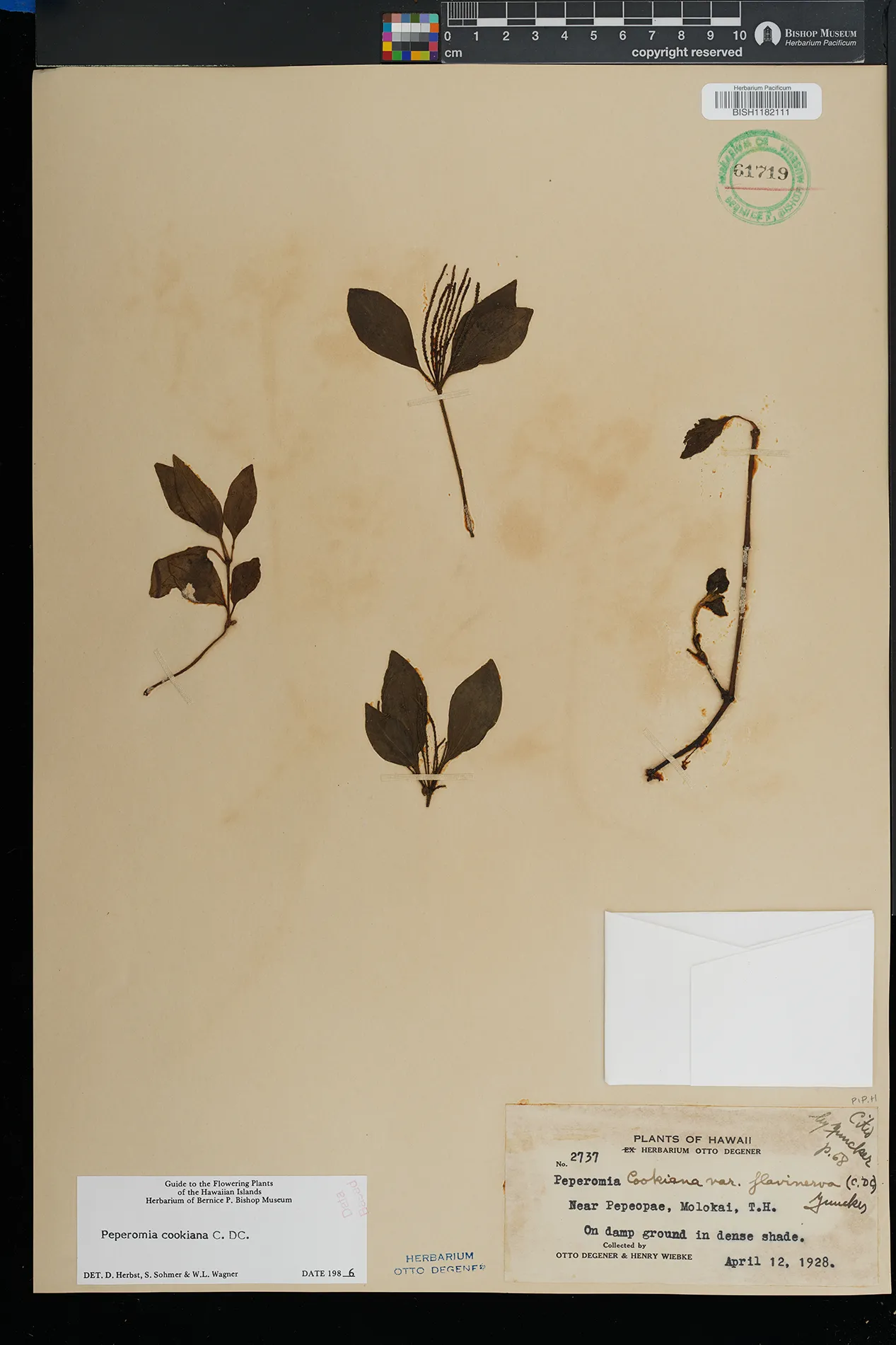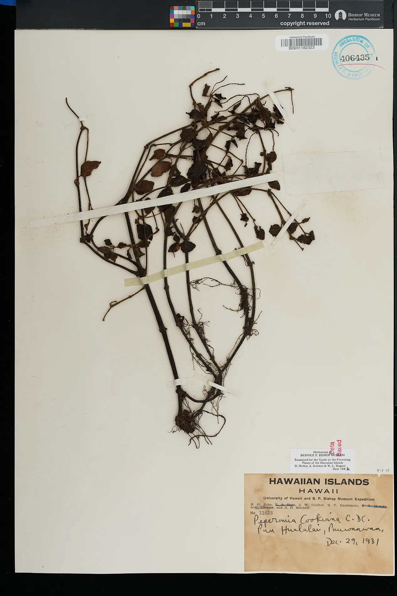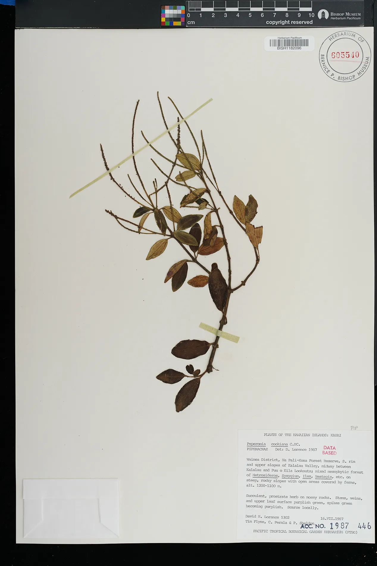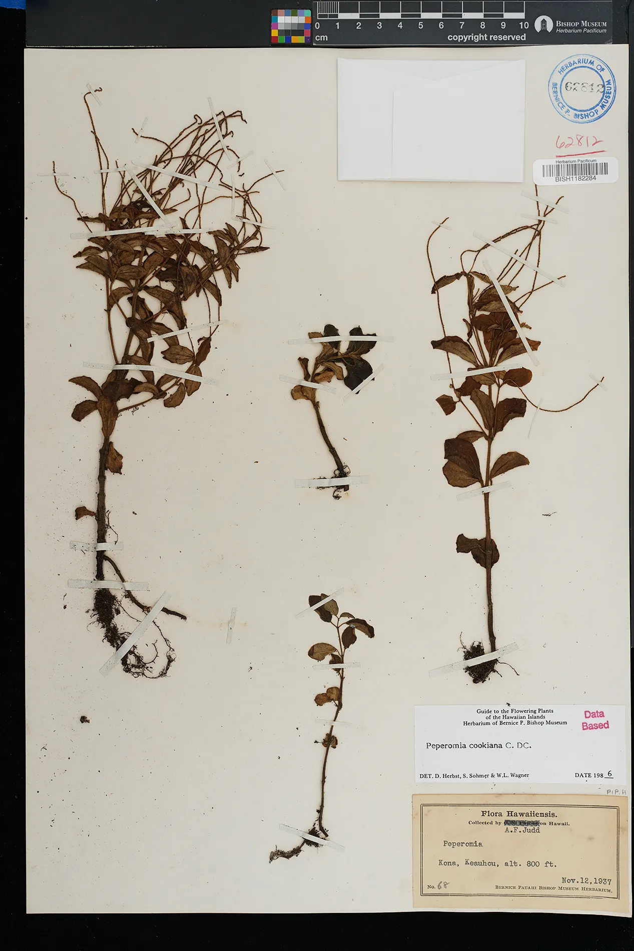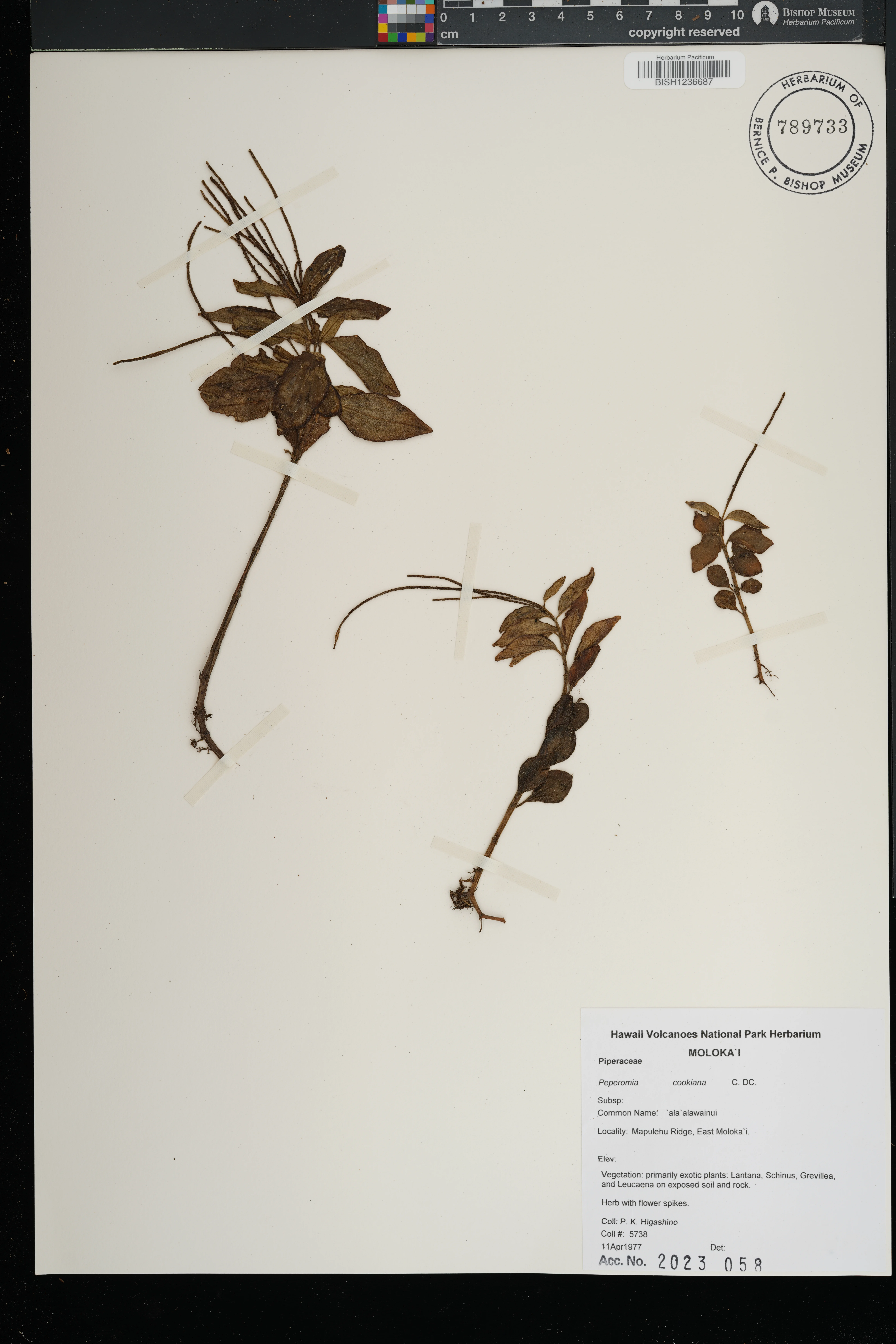 Ohia Mixed Mesic Forest a small herb covering the ground at 3800 ft on a ridge with Metrosideros, Cheirodendron, Myrsine, Dubautia, Hedyotis, Stenogyne and Liparis |