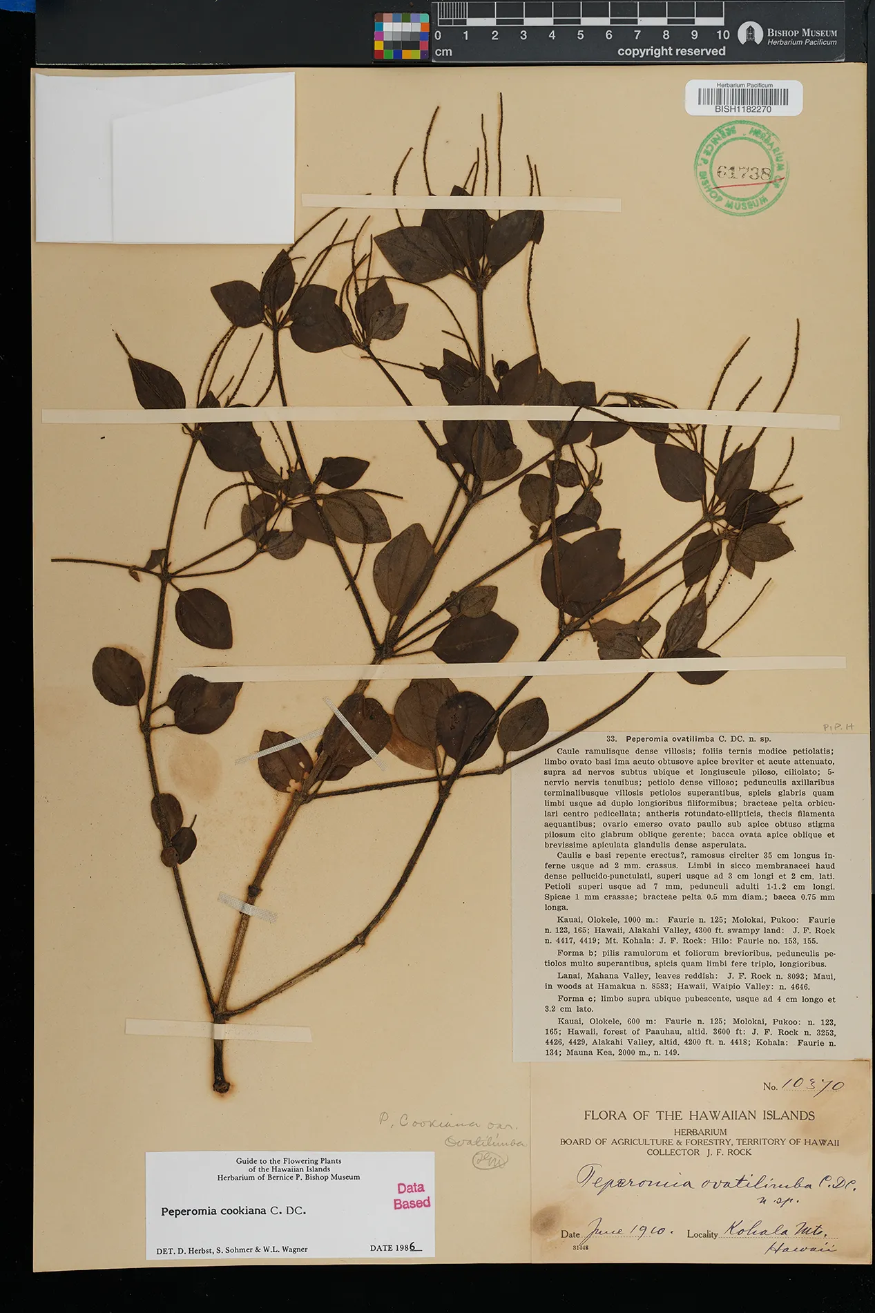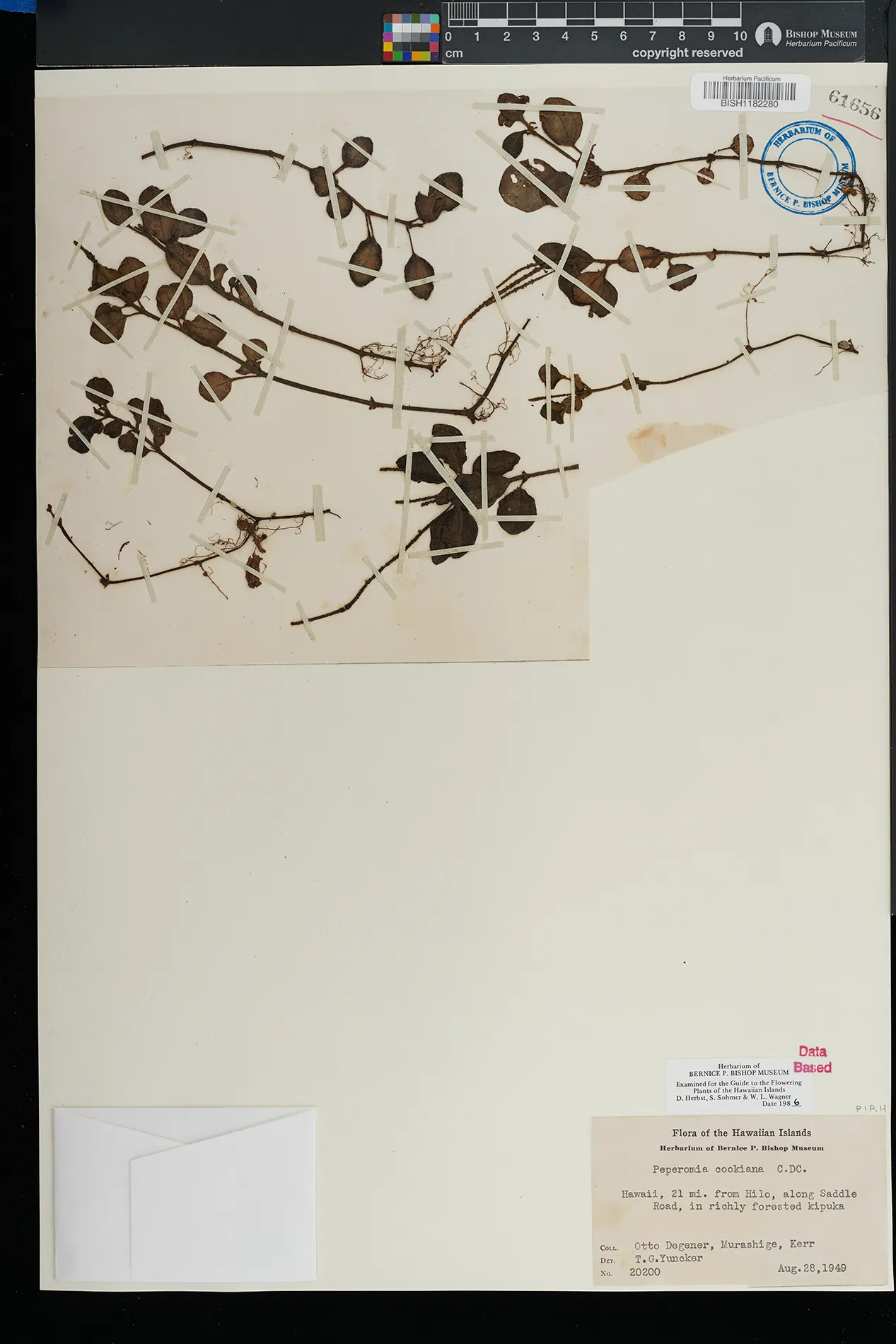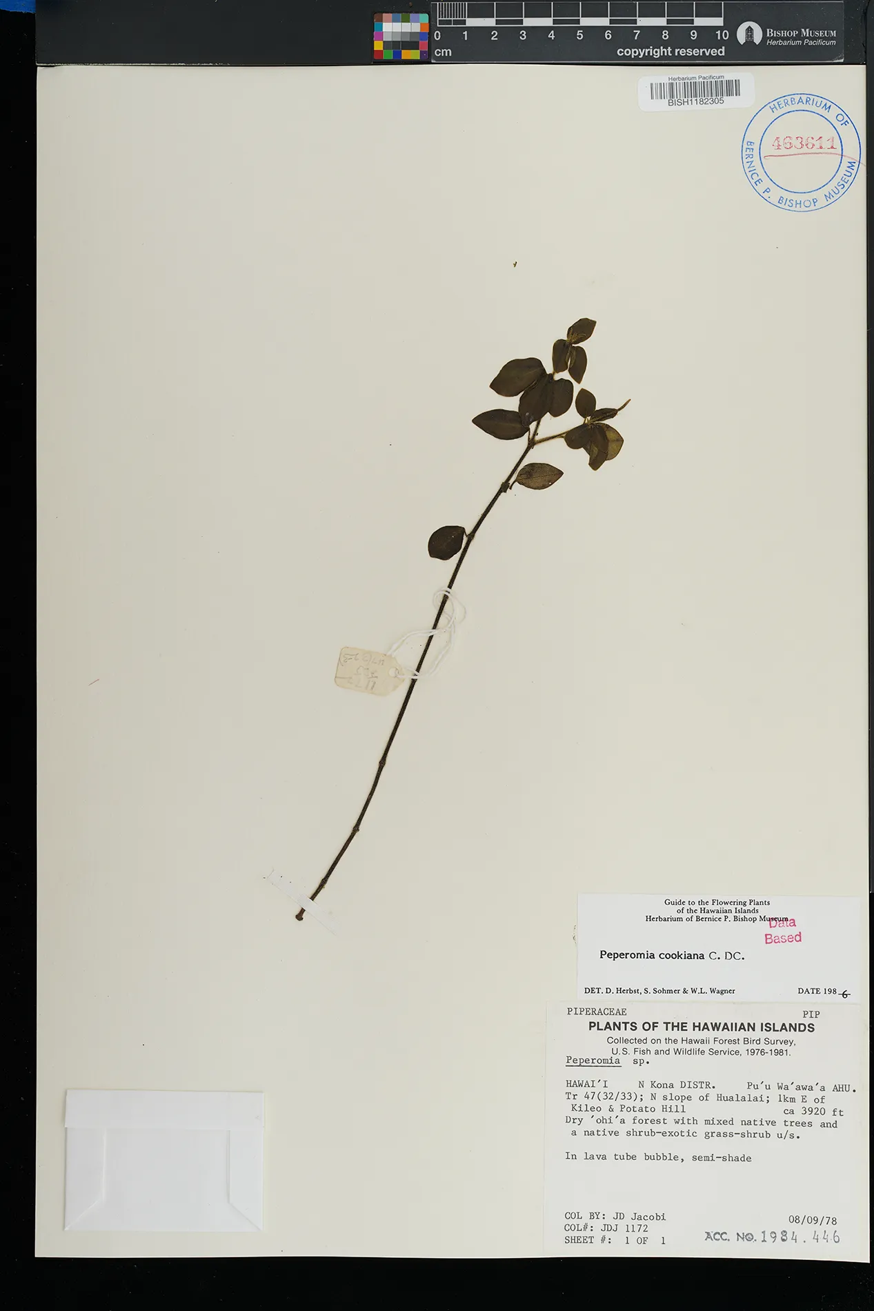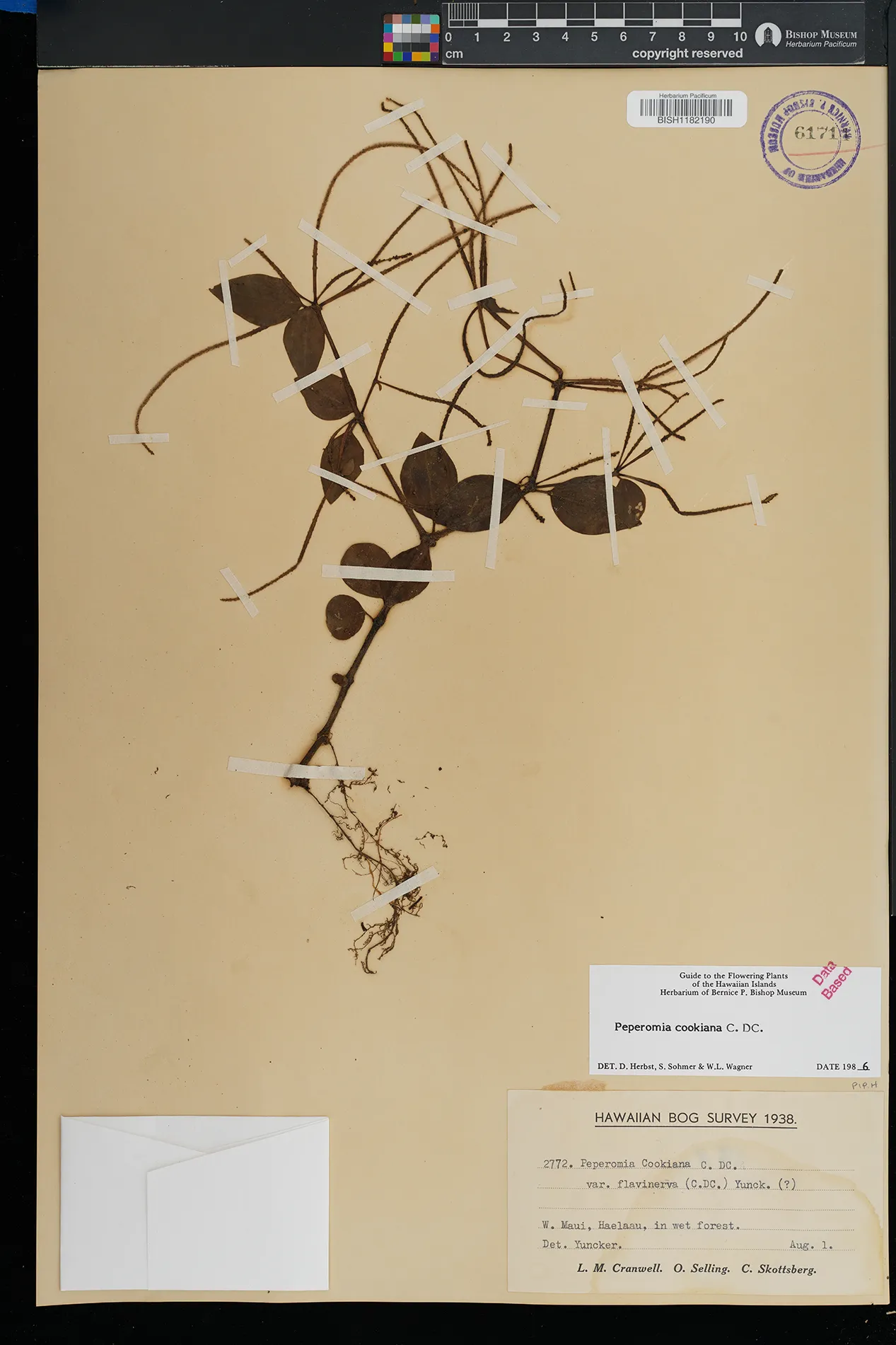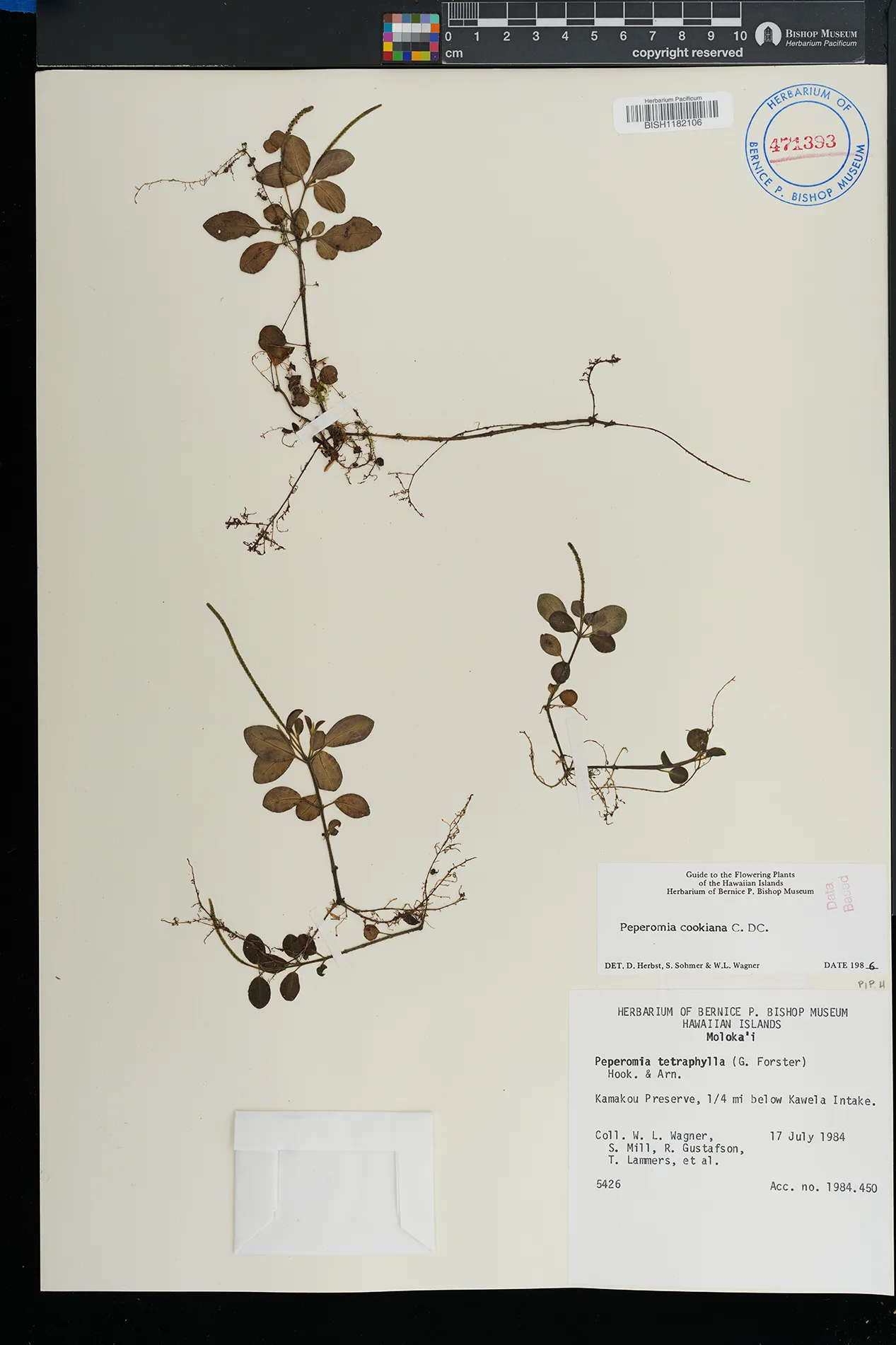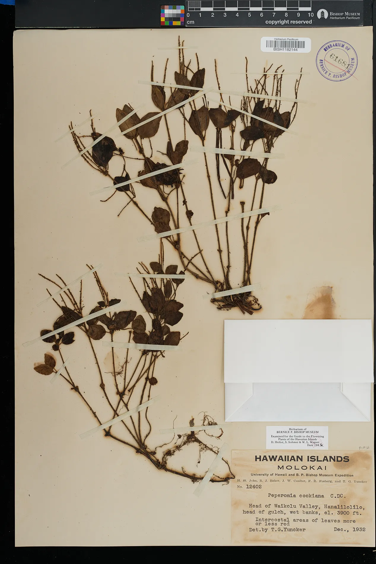 Ohia Mixed Mesic Forest a small herb covering the ground at 3800 ft on a ridge with Metrosideros, Cheirodendron, Myrsine, Dubautia, Hedyotis, Stenogyne and Liparis |