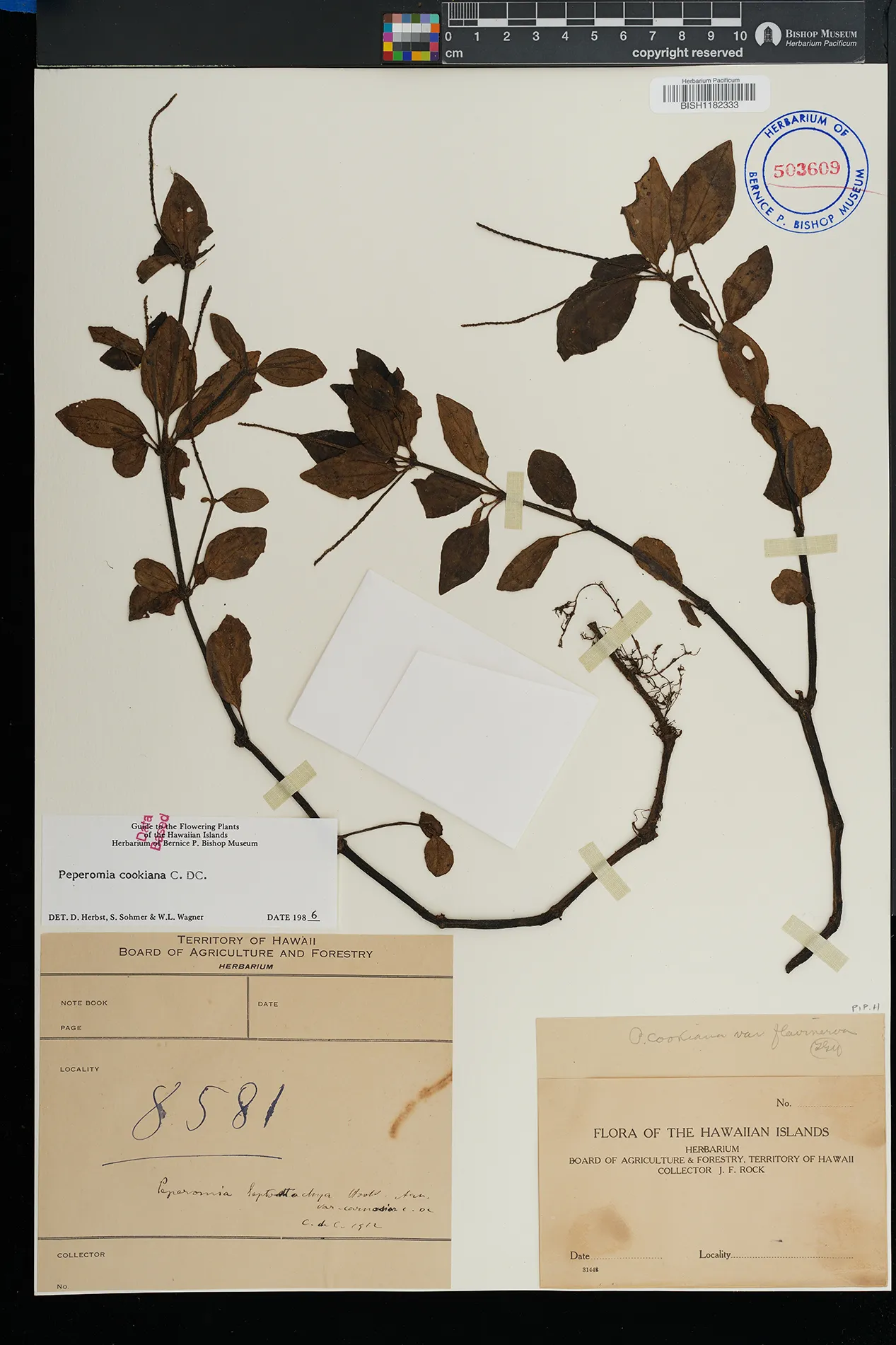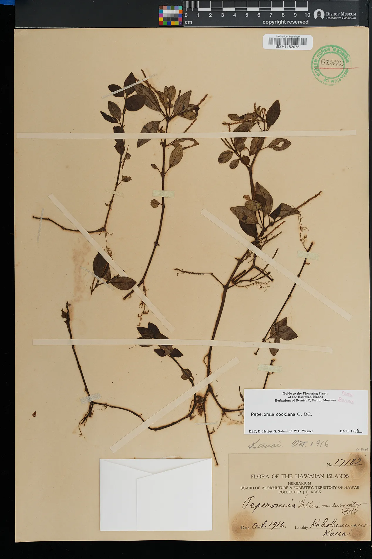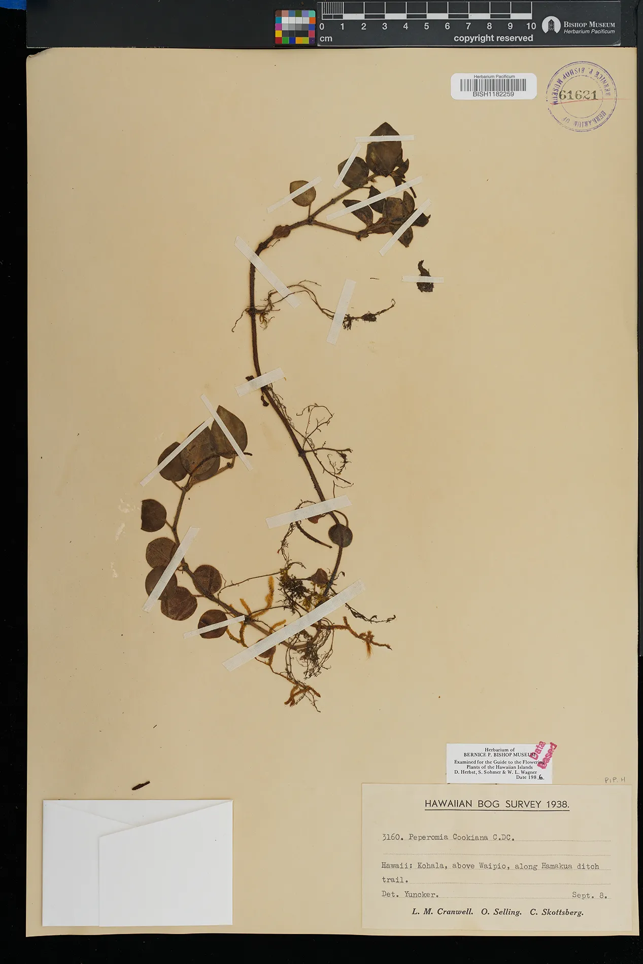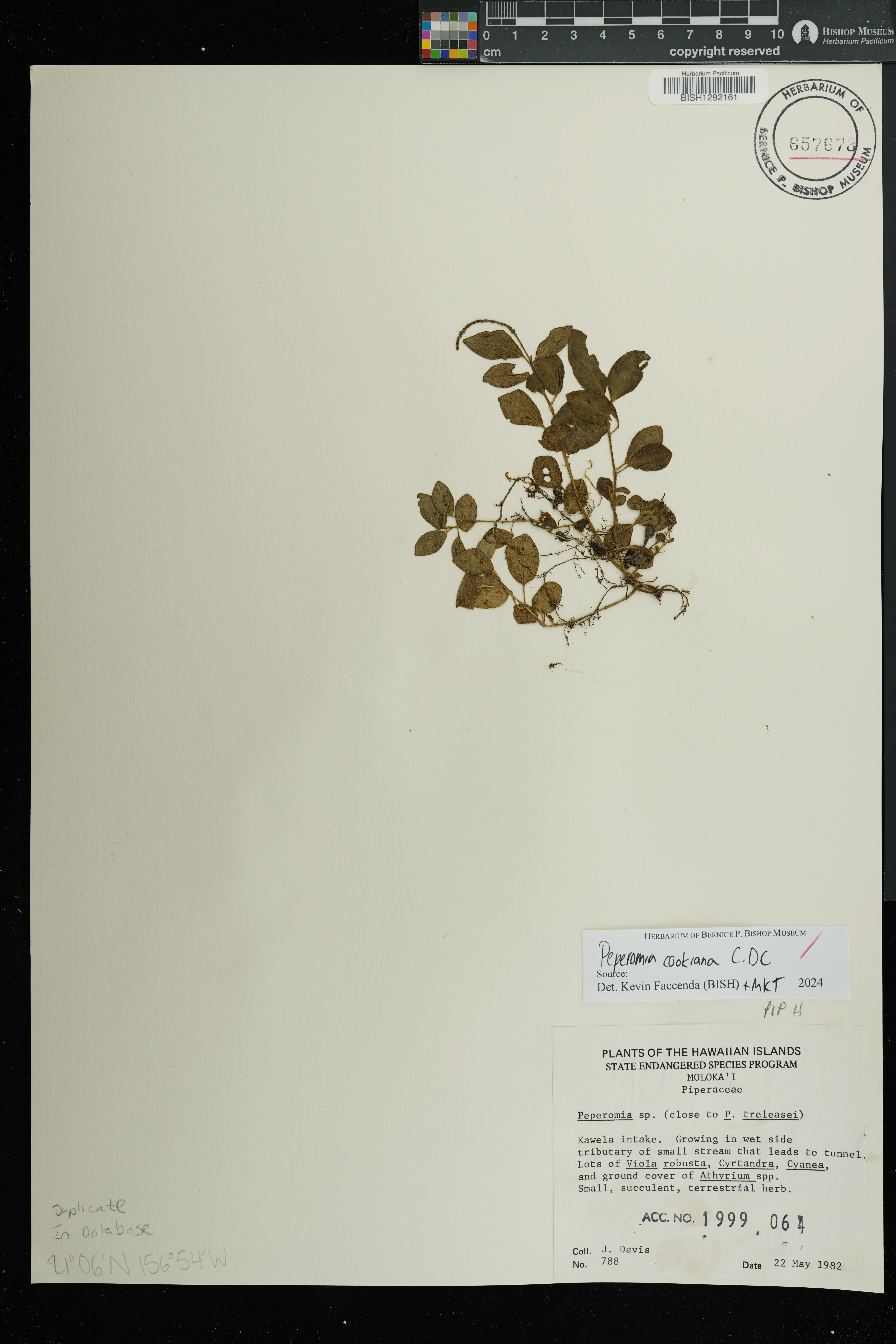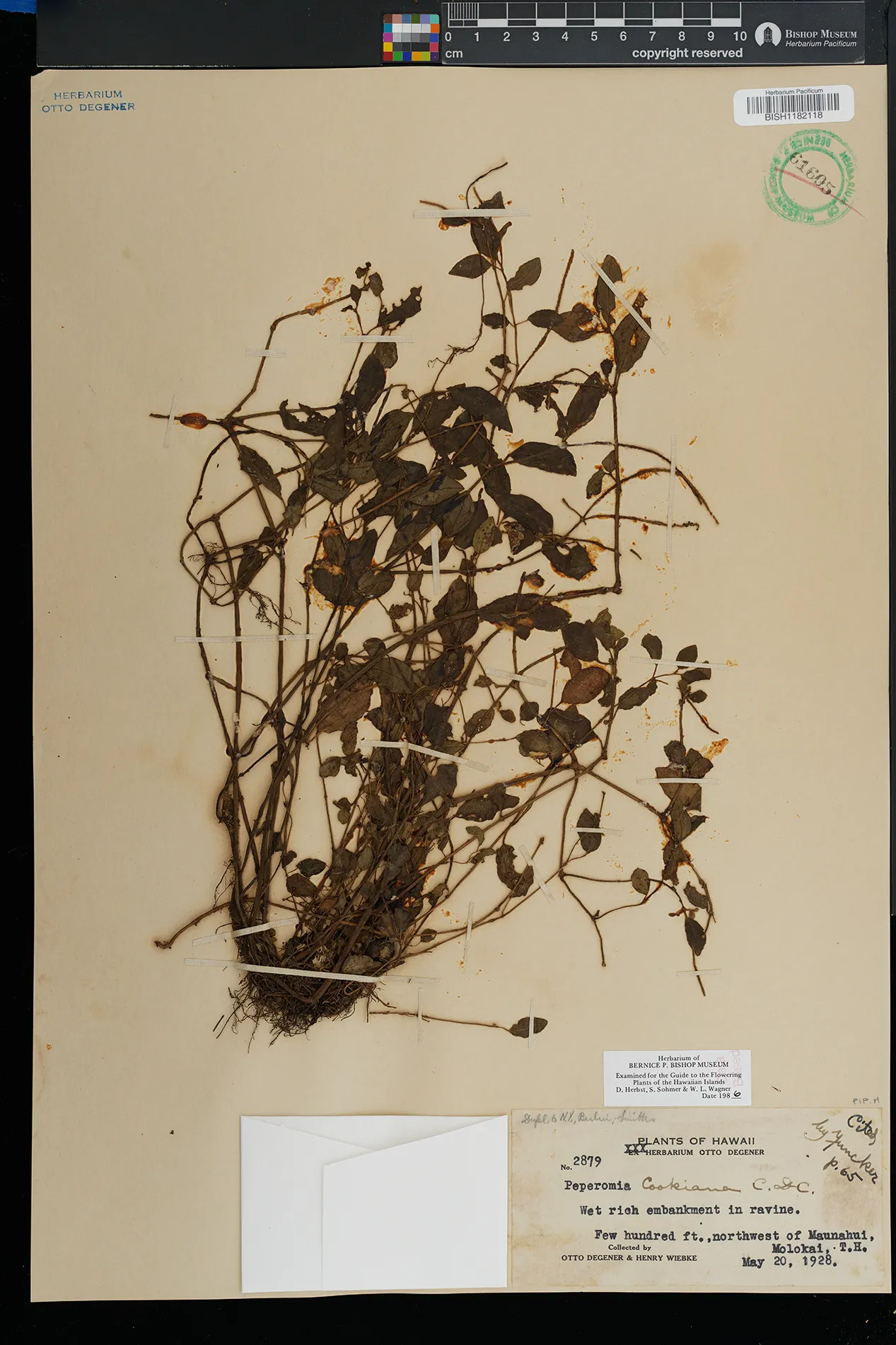 Ohia Mixed Mesic Forest a small herb covering the ground at 3800 ft on a ridge with Metrosideros, Cheirodendron, Myrsine, Dubautia, Hedyotis, Stenogyne and Liparis |