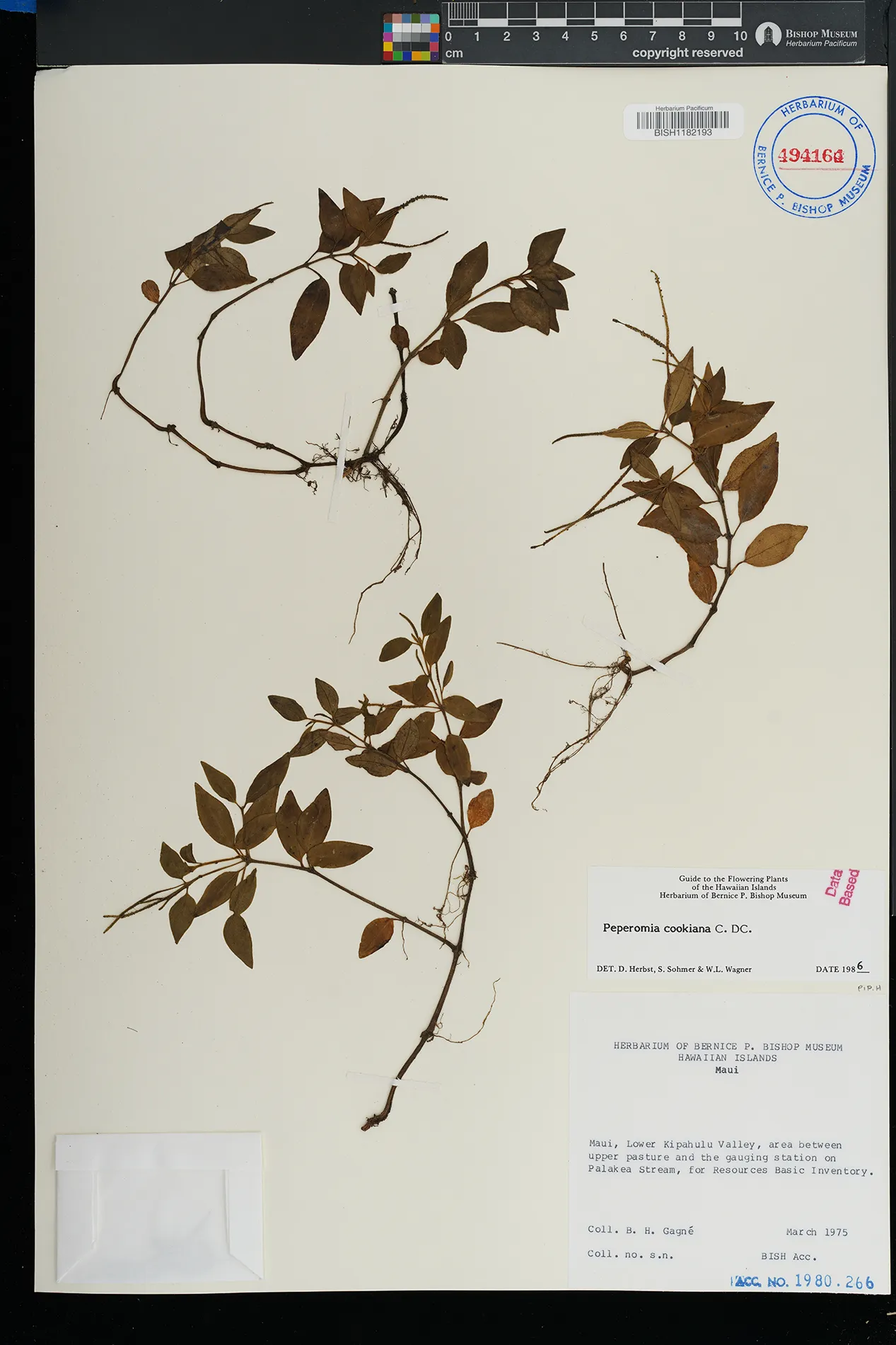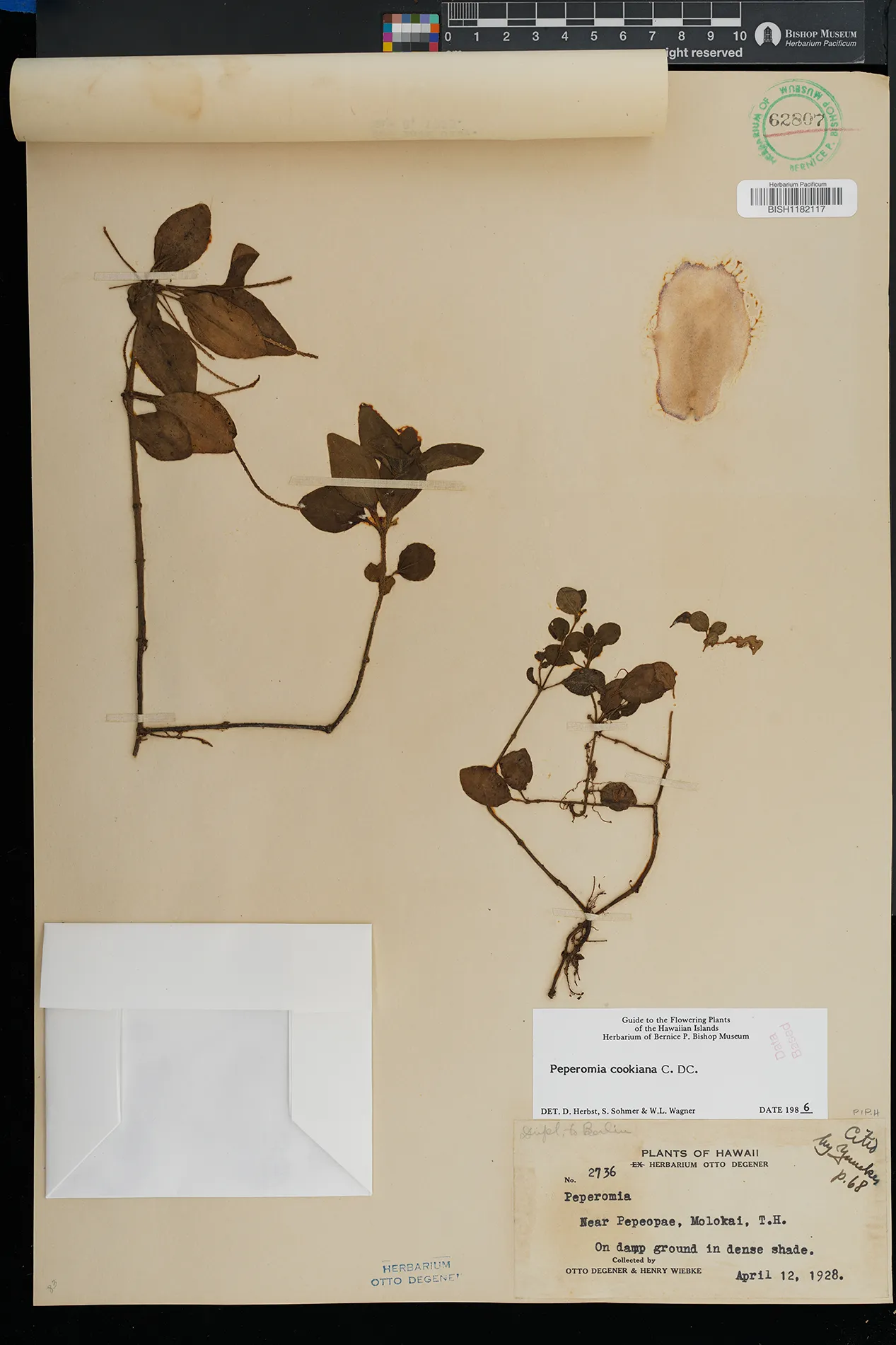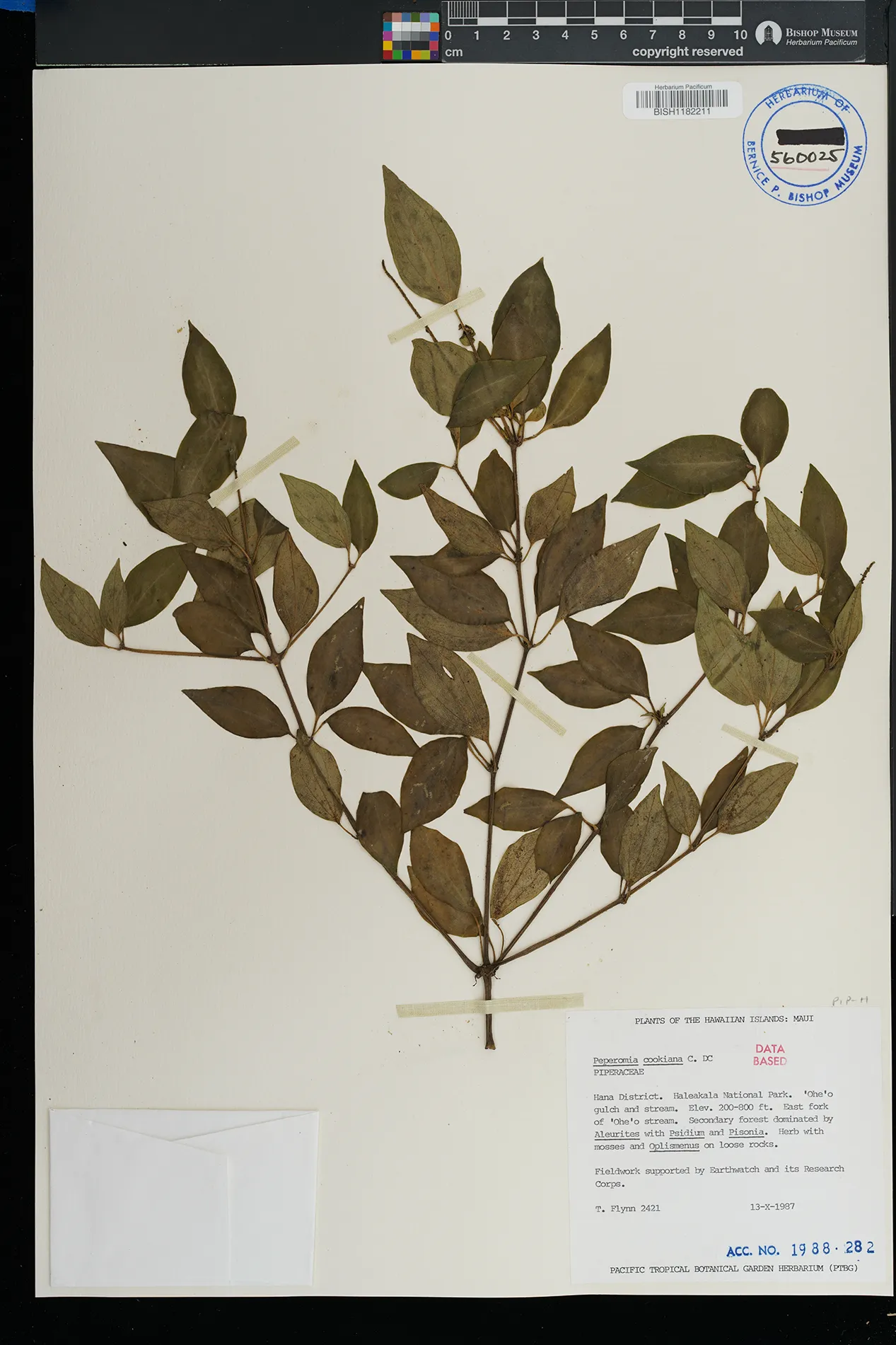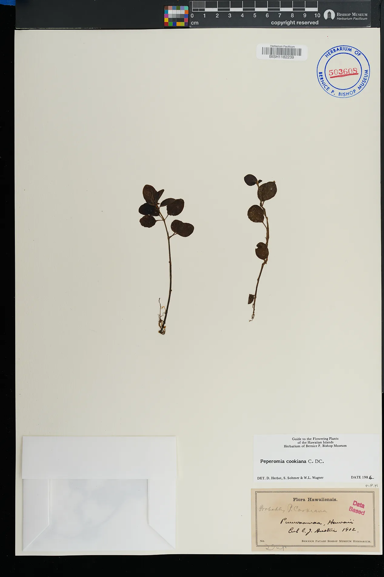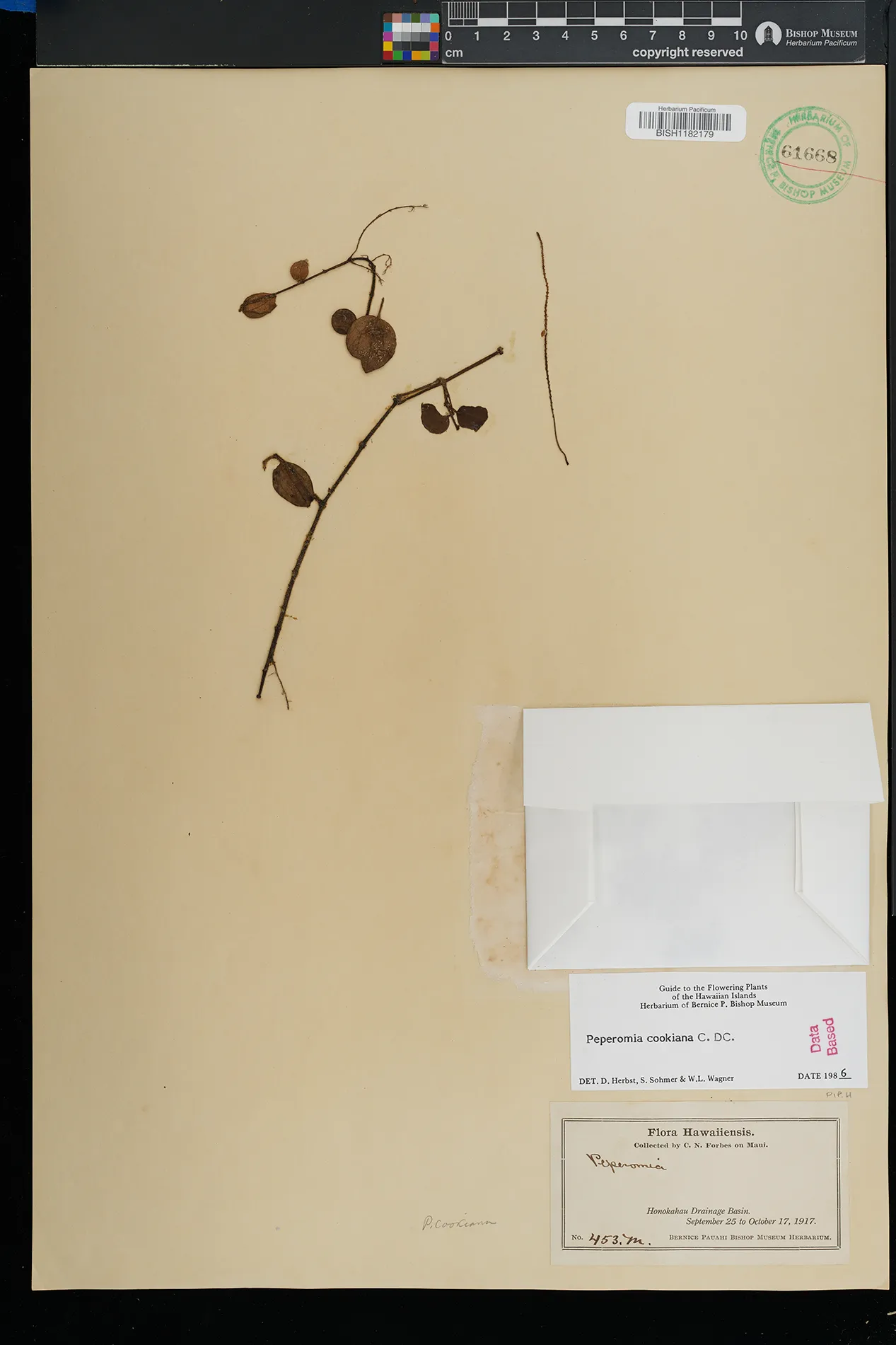 Ohia Mixed Mesic Forest a small herb covering the ground at 3800 ft on a ridge with Metrosideros, Cheirodendron, Myrsine, Dubautia, Hedyotis, Stenogyne and Liparis |