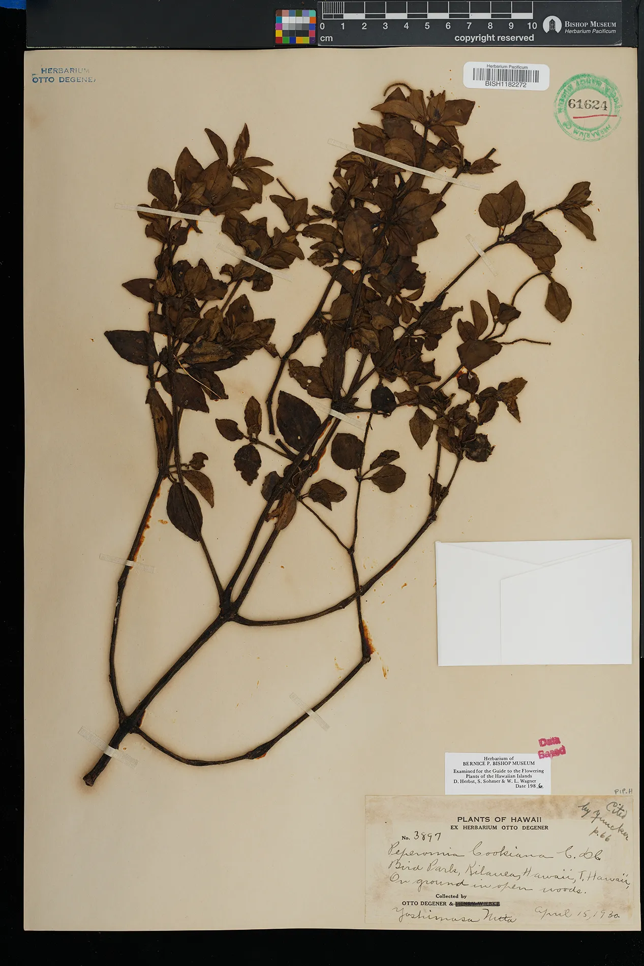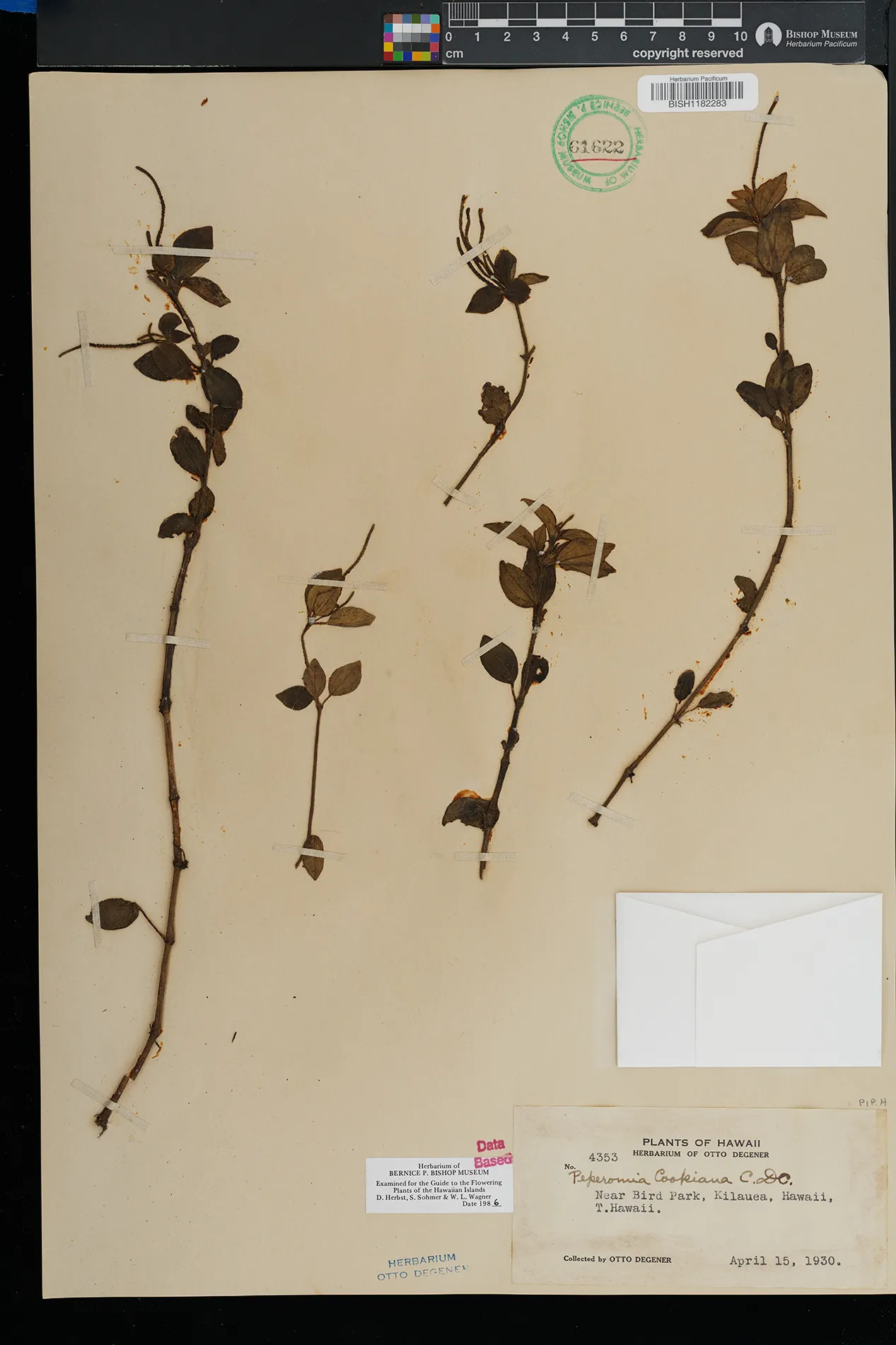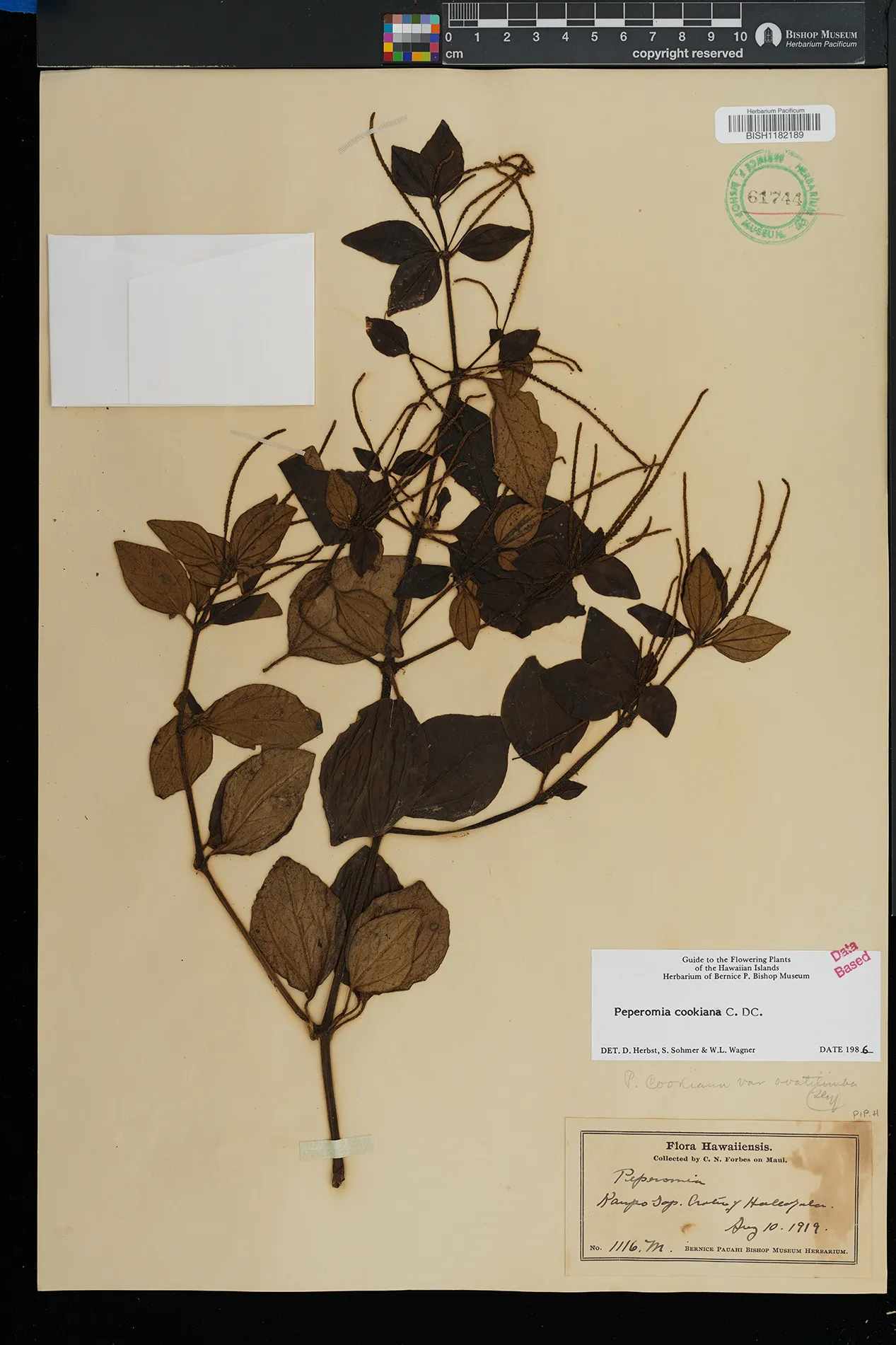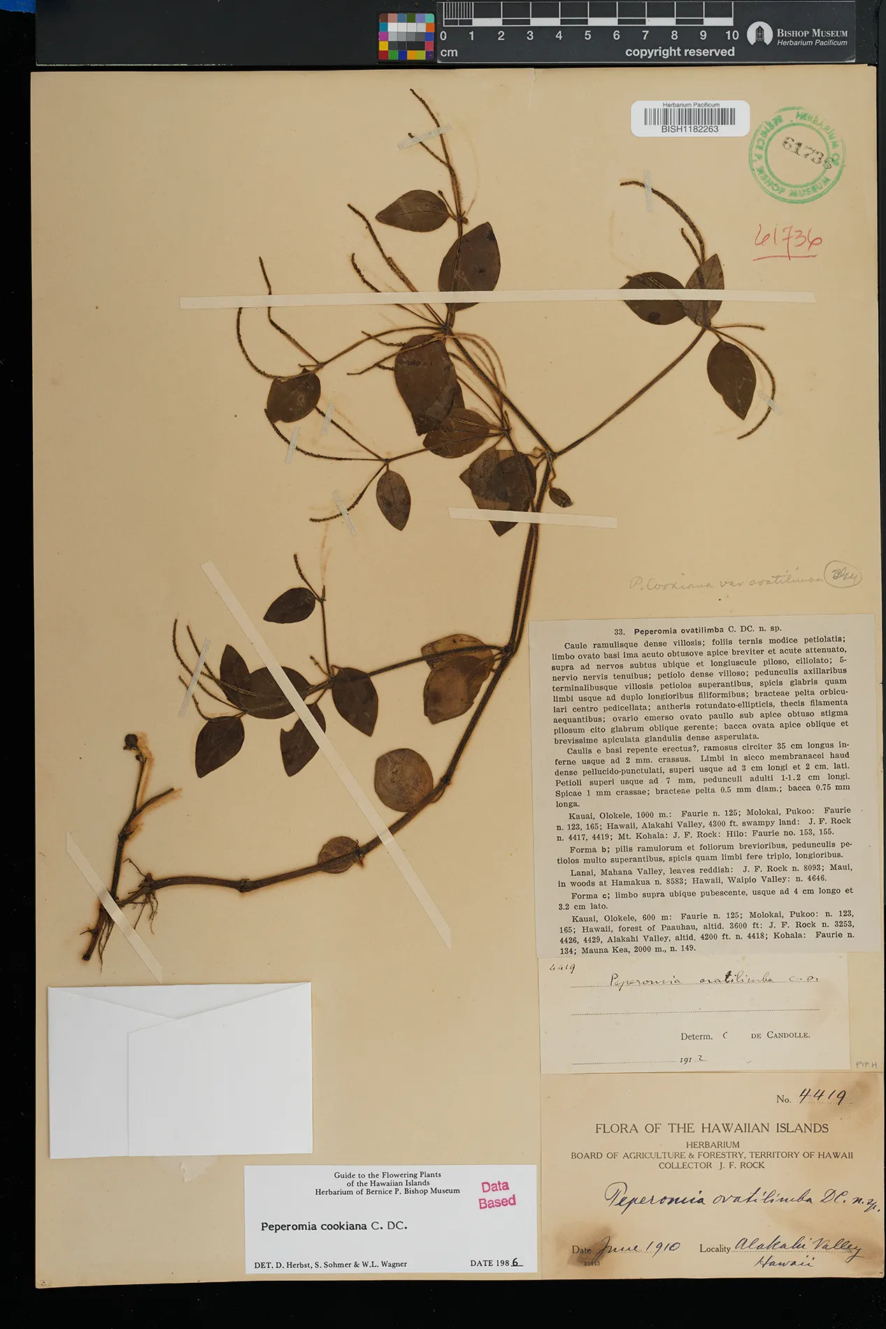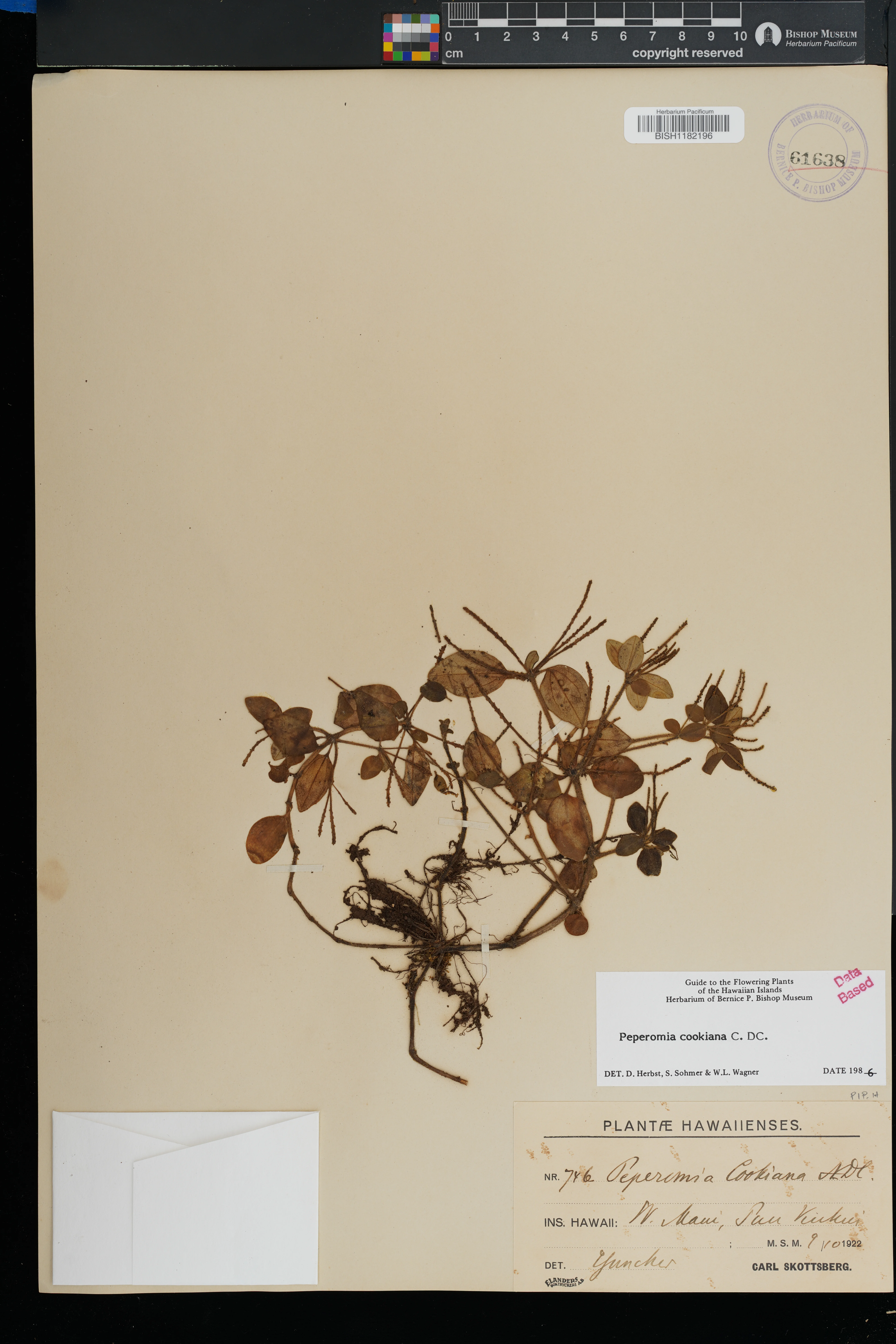 Ohia Mixed Mesic Forest a small herb covering the ground at 3800 ft on a ridge with Metrosideros, Cheirodendron, Myrsine, Dubautia, Hedyotis, Stenogyne and Liparis |