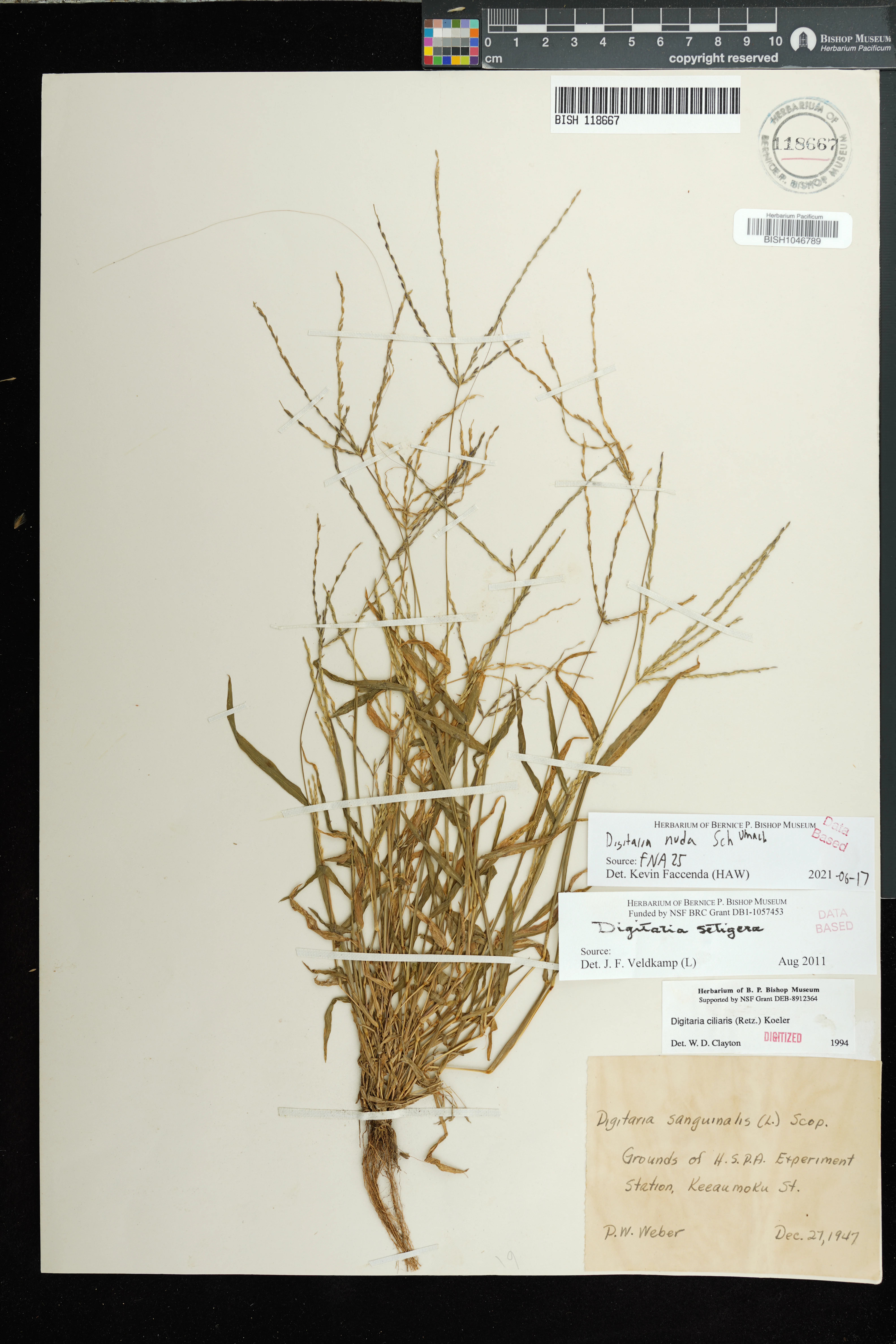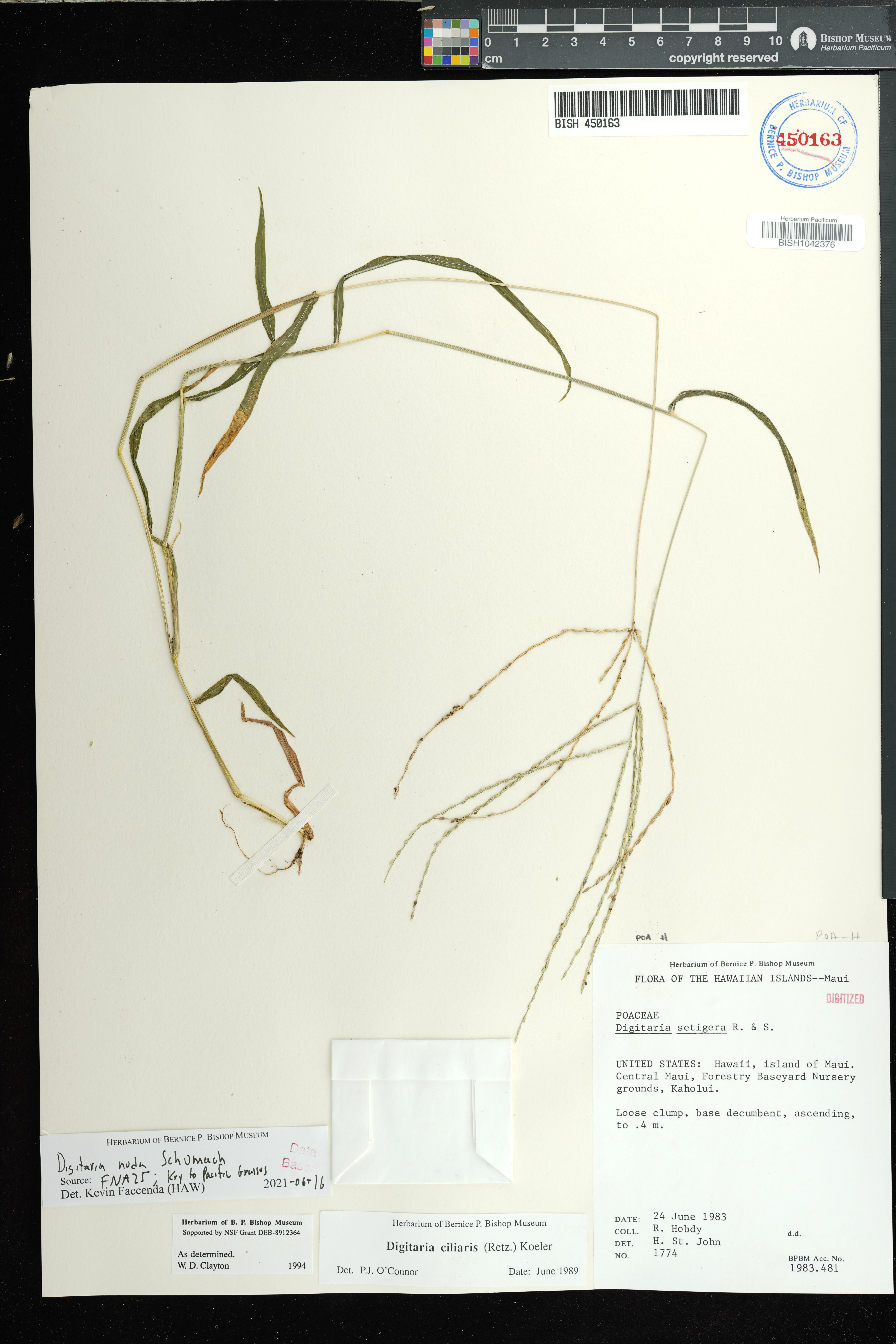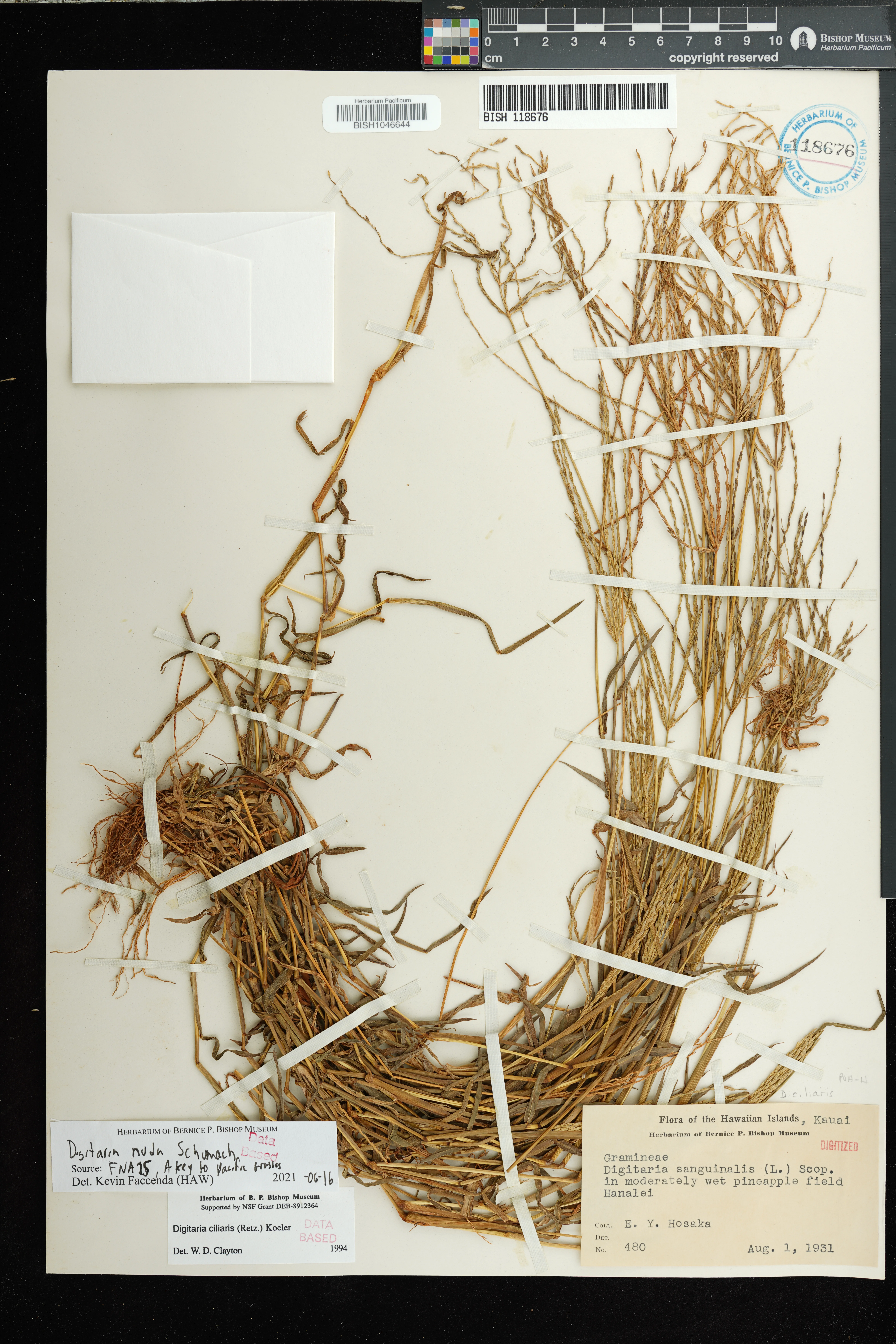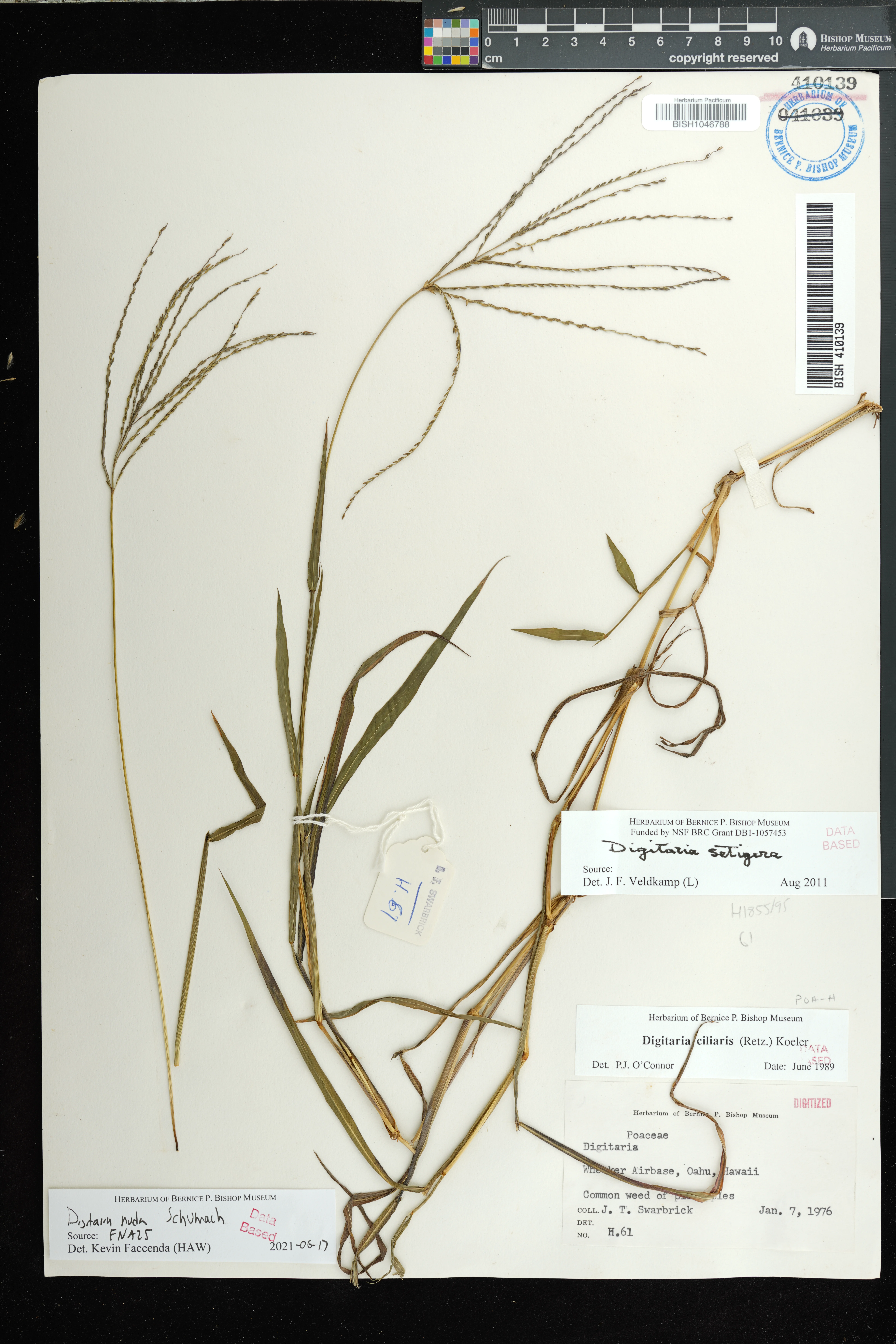 Kingdom: Viridiplantae Phylum: Magnoliophyta Class/Clade: Monocots Order: Poales Family: Poaceae Genus: Digitaria