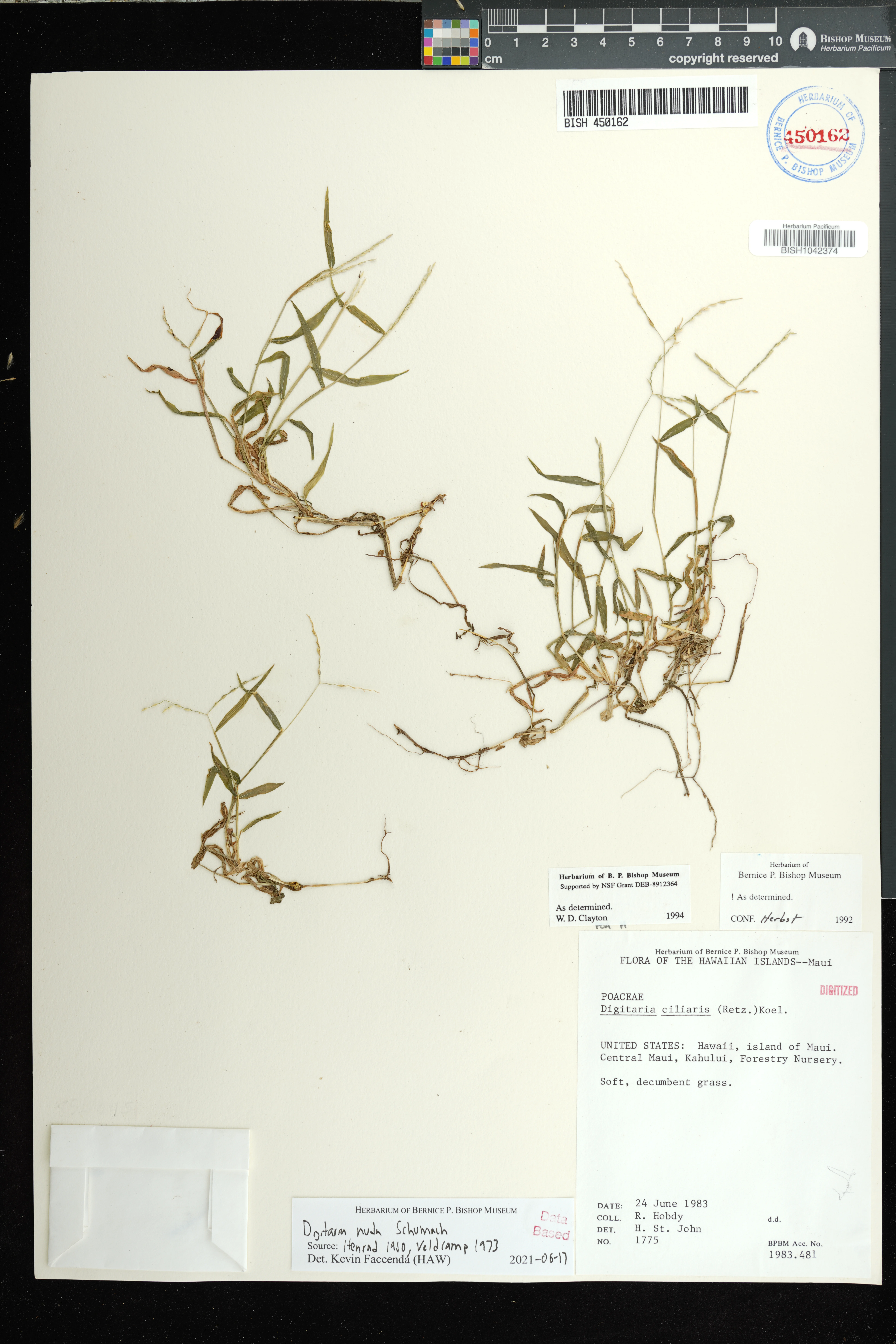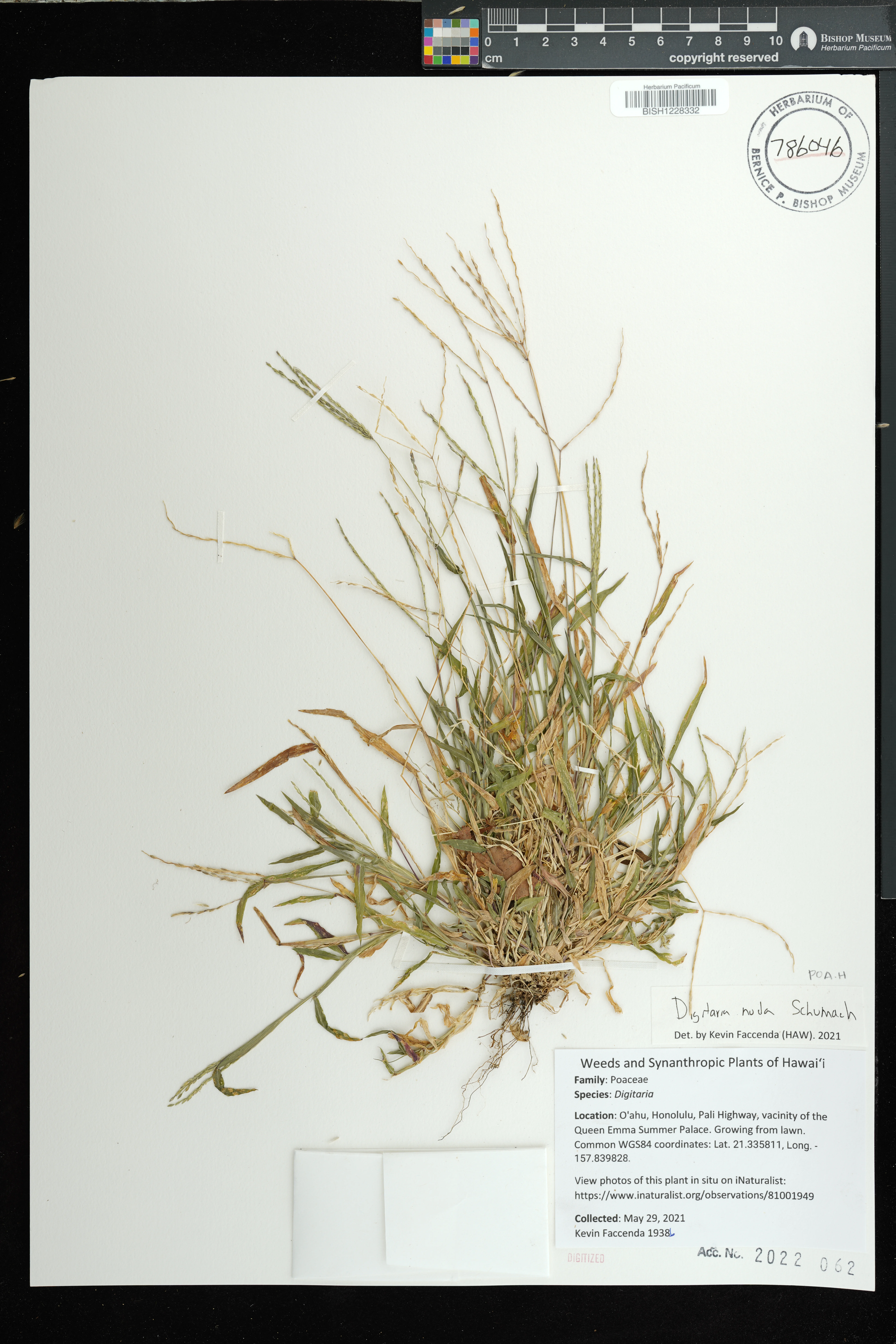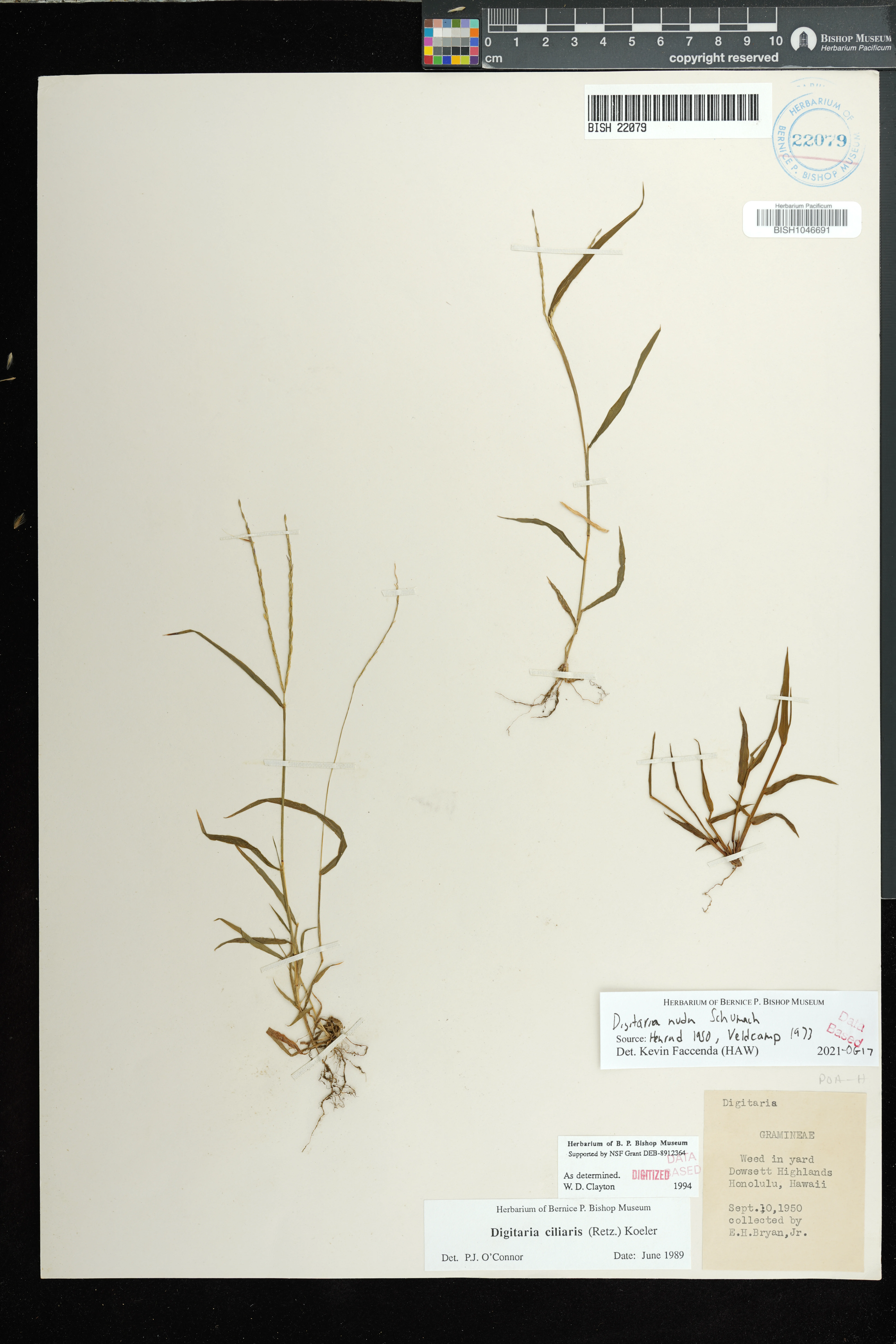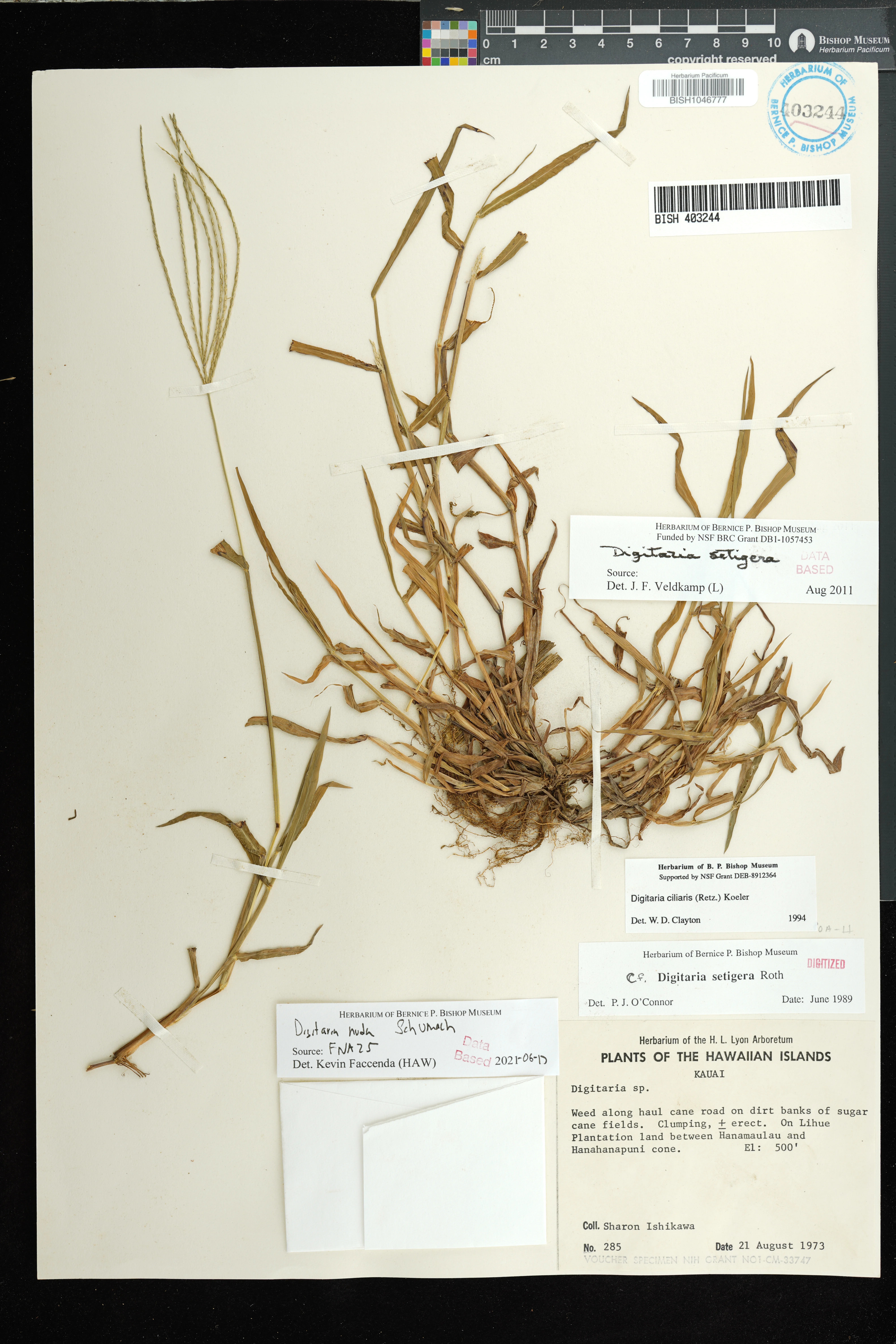 Kingdom: Viridiplantae Phylum: Magnoliophyta Class/Clade: Monocots Order: Poales Family: Poaceae Genus: Digitaria