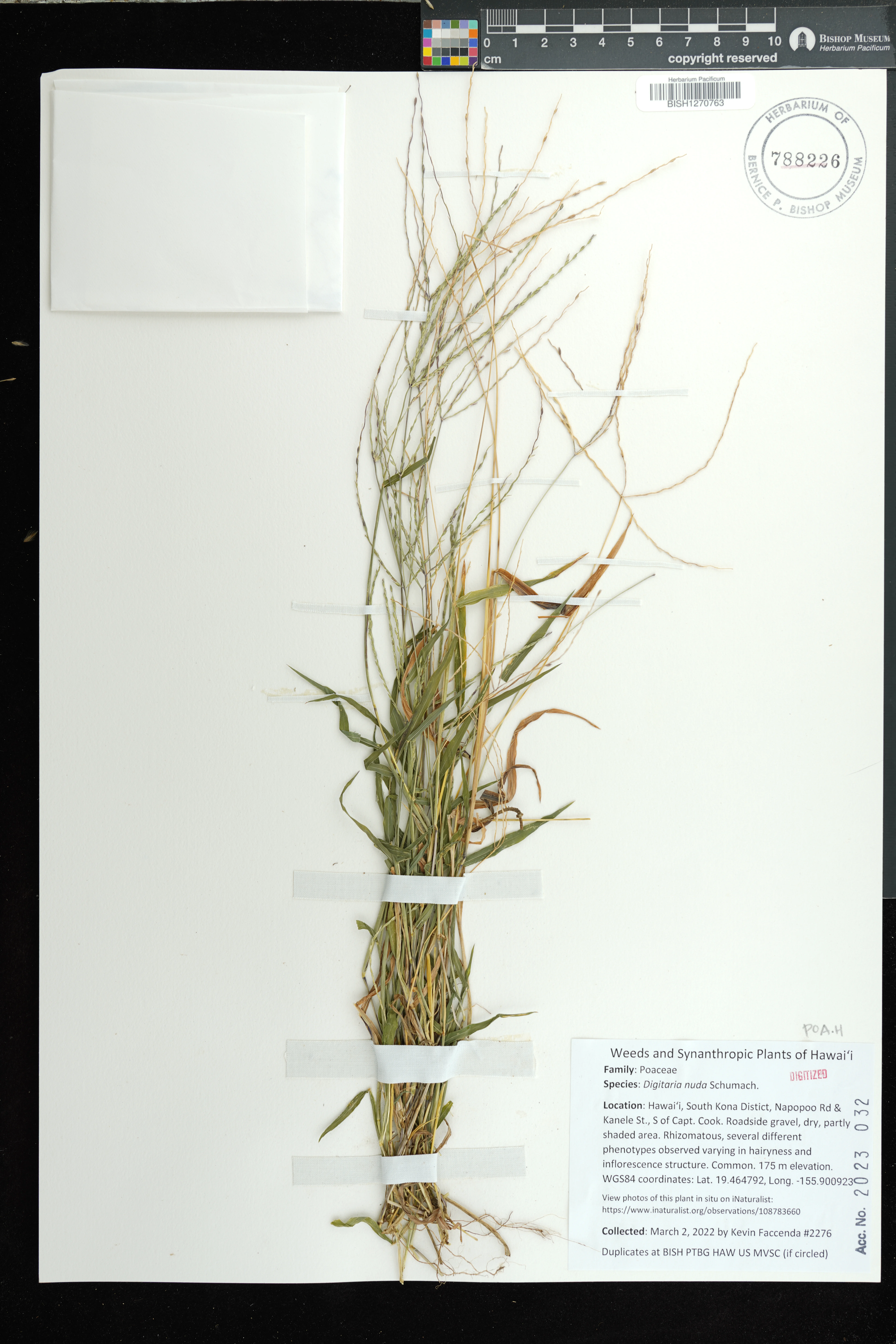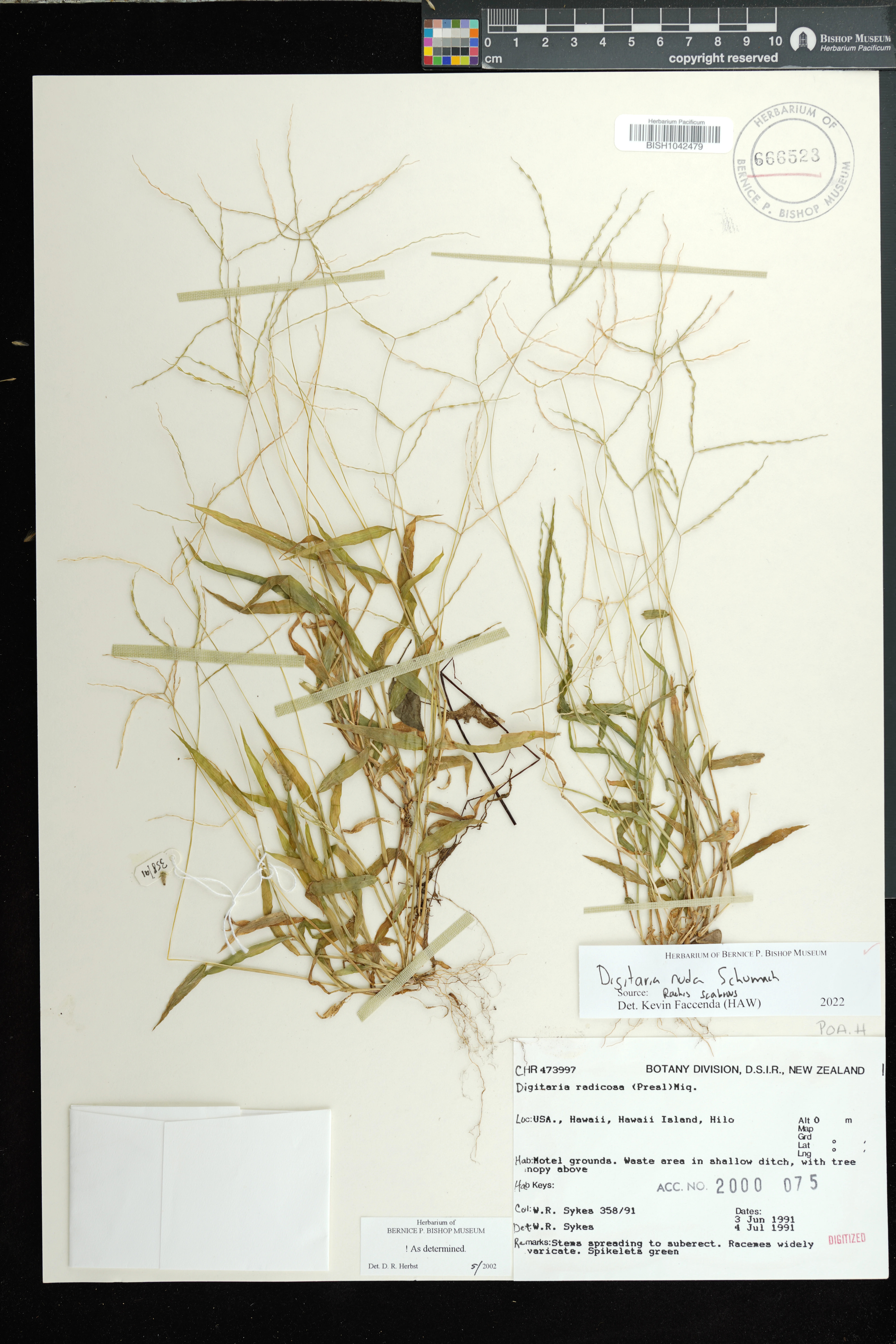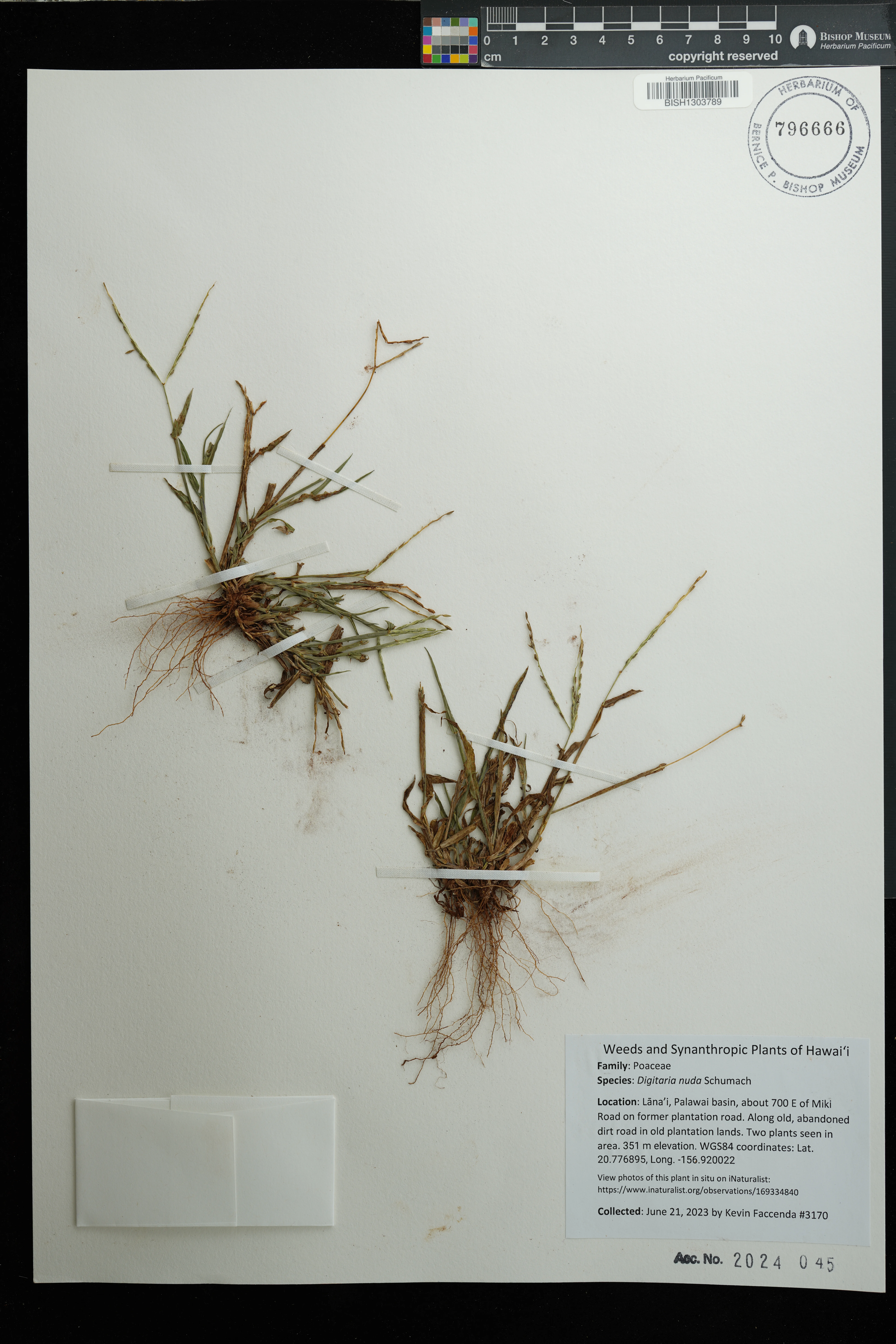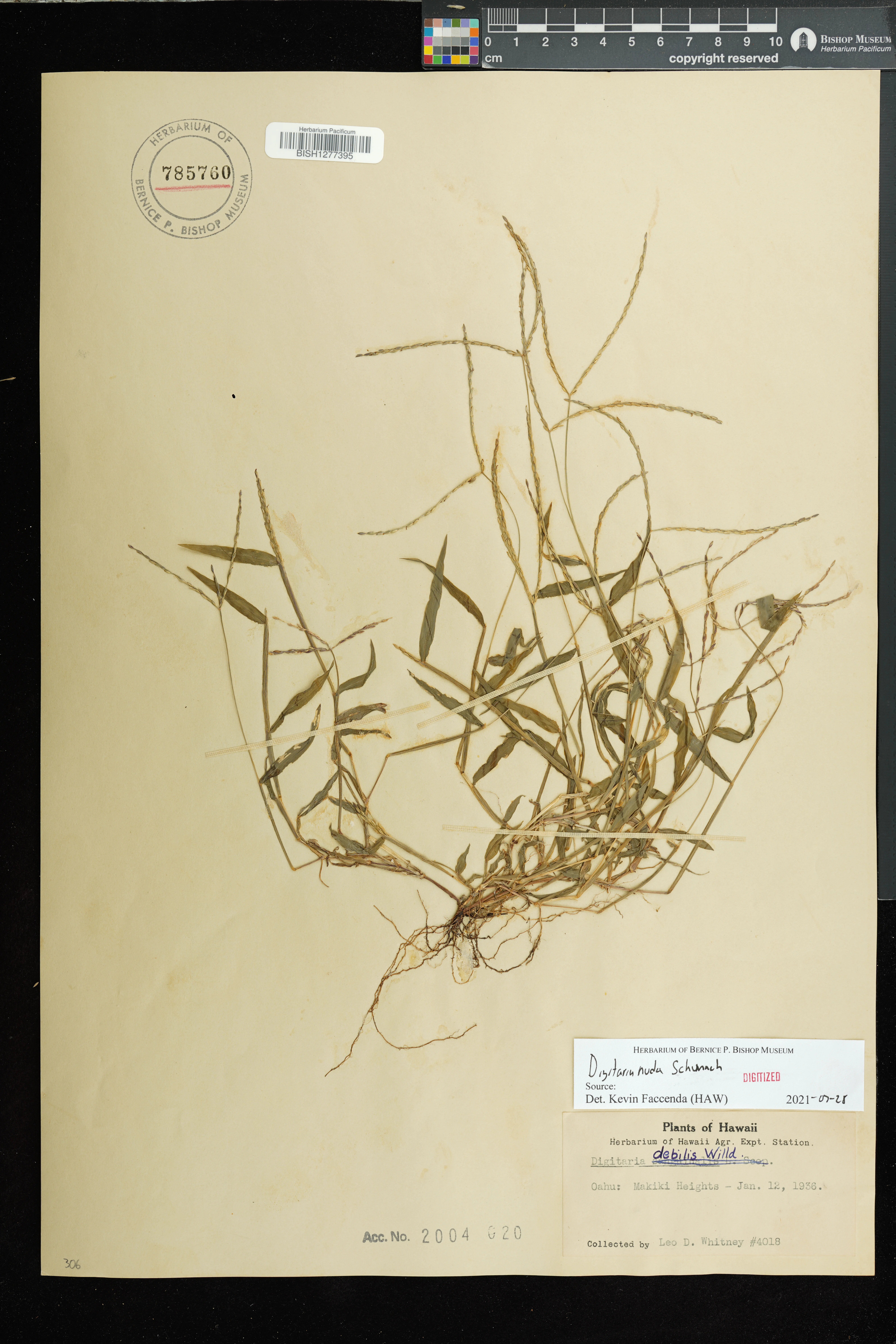 Kingdom: Viridiplantae Phylum: Magnoliophyta Class/Clade: Monocots Order: Poales Family: Poaceae Genus: Digitaria