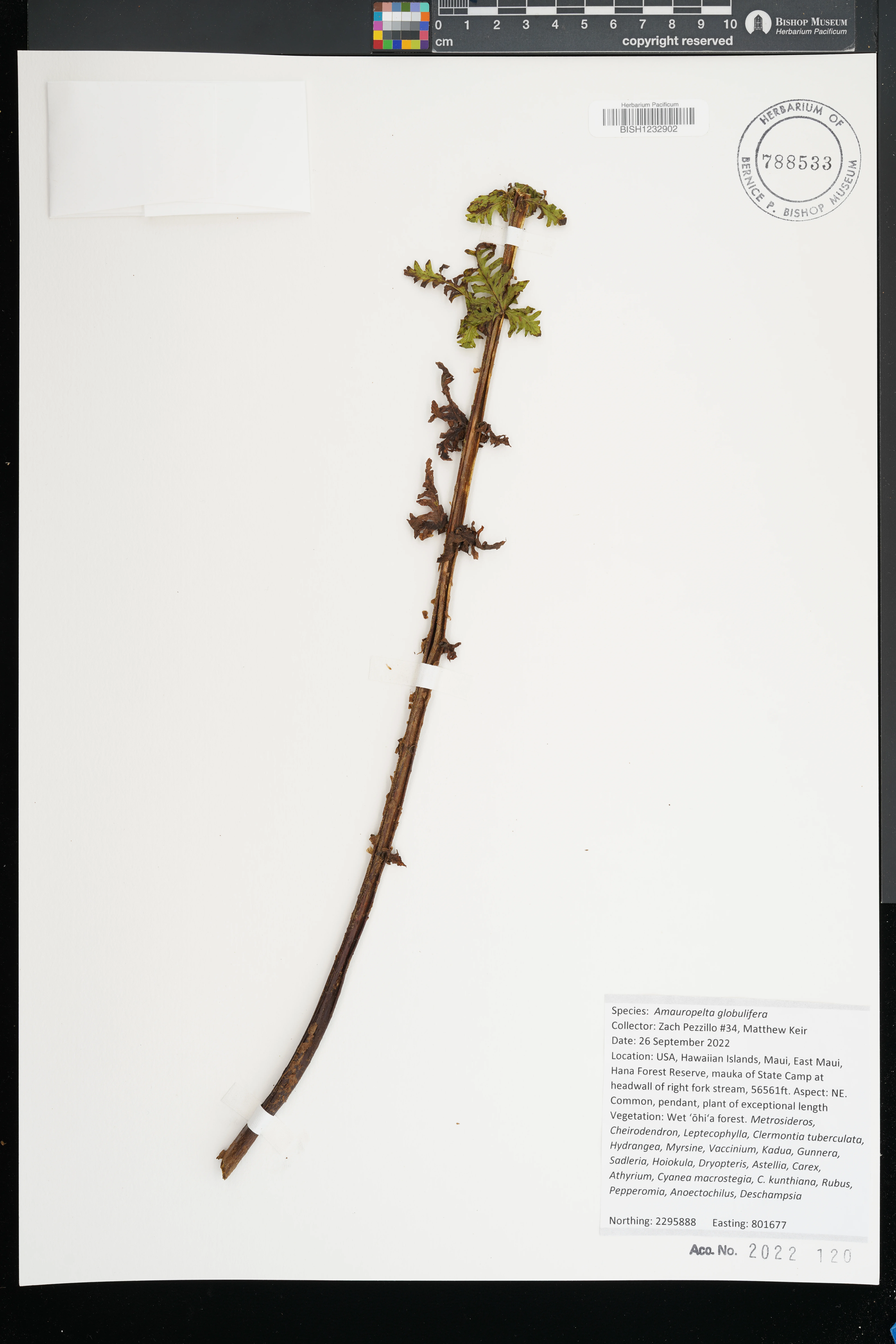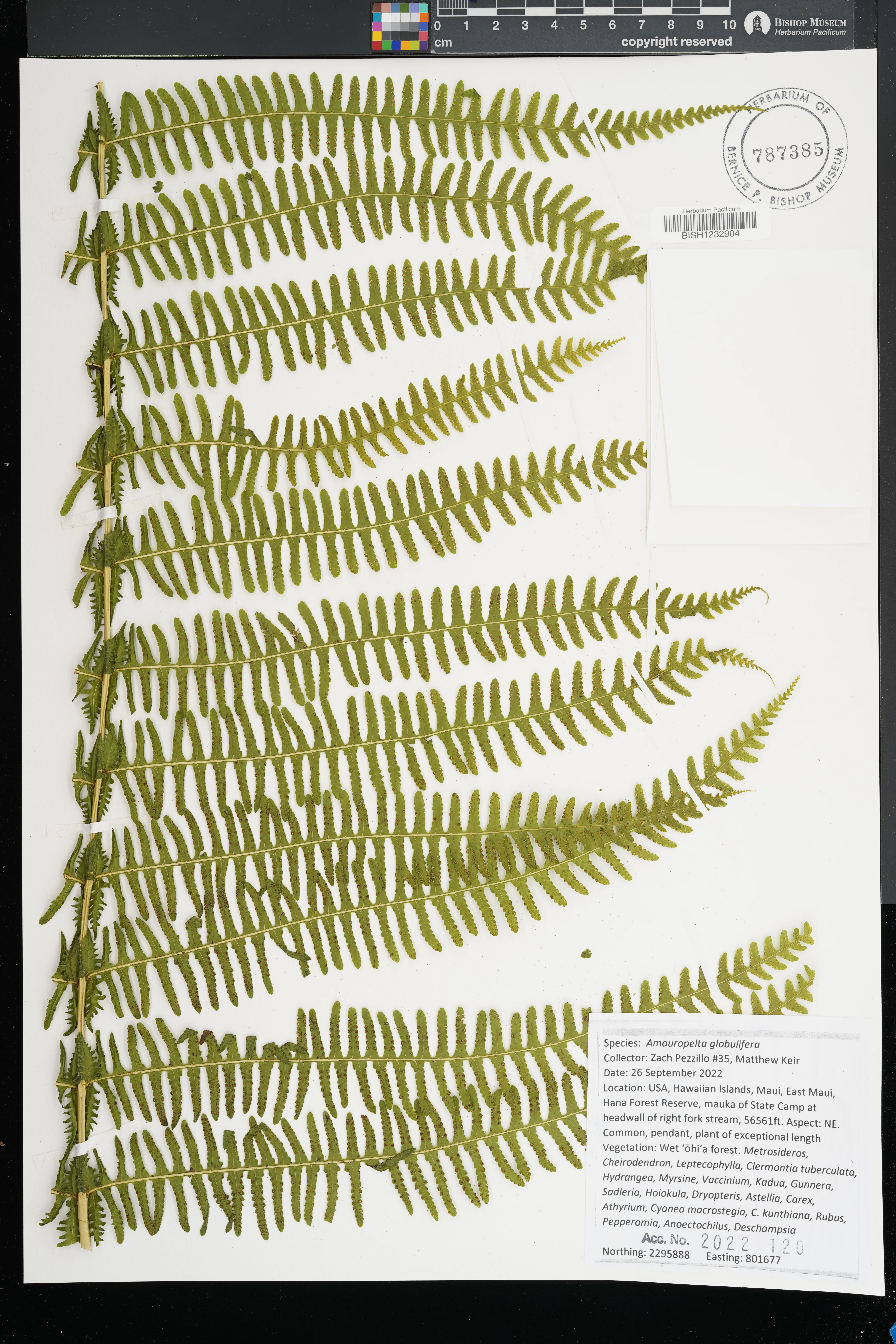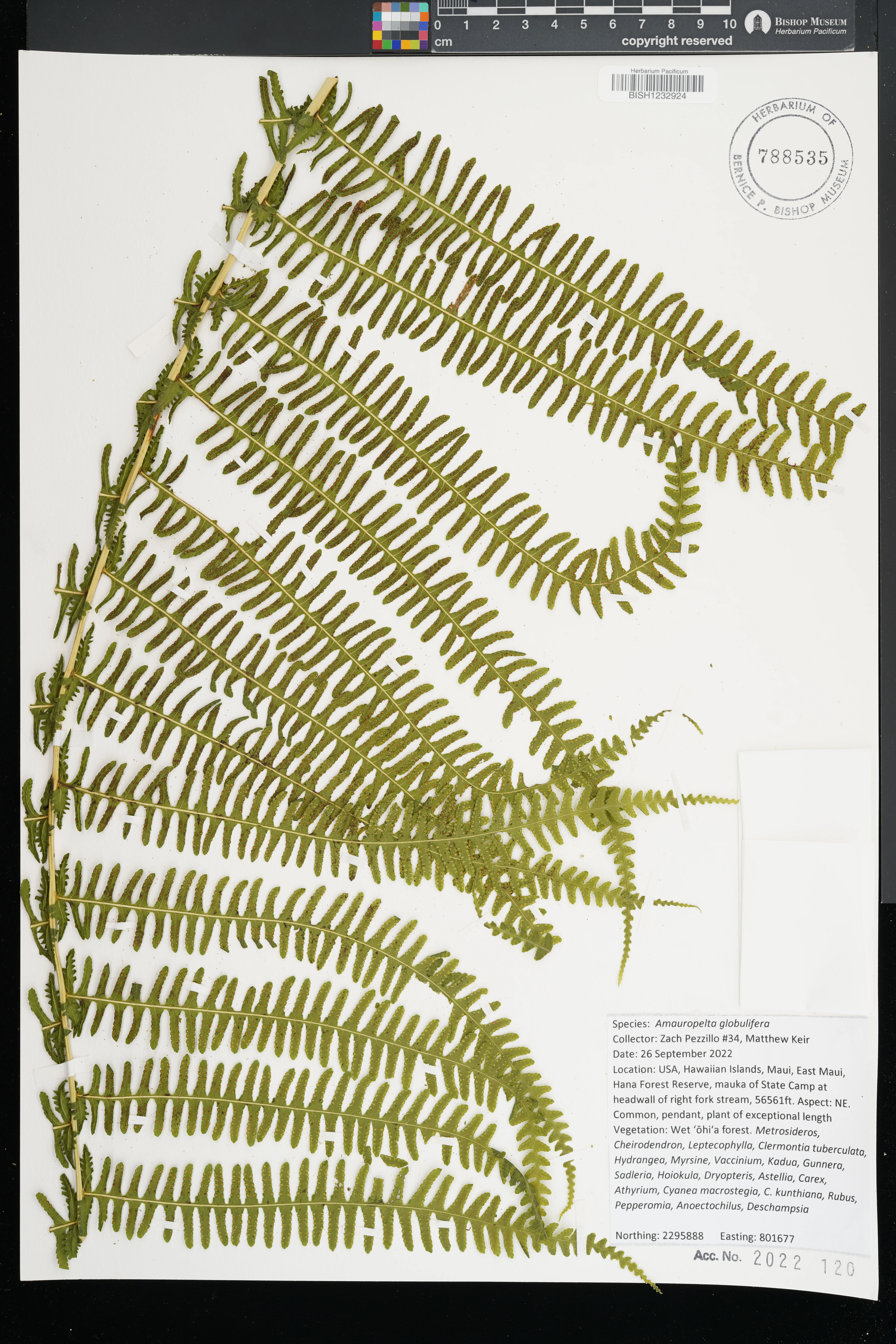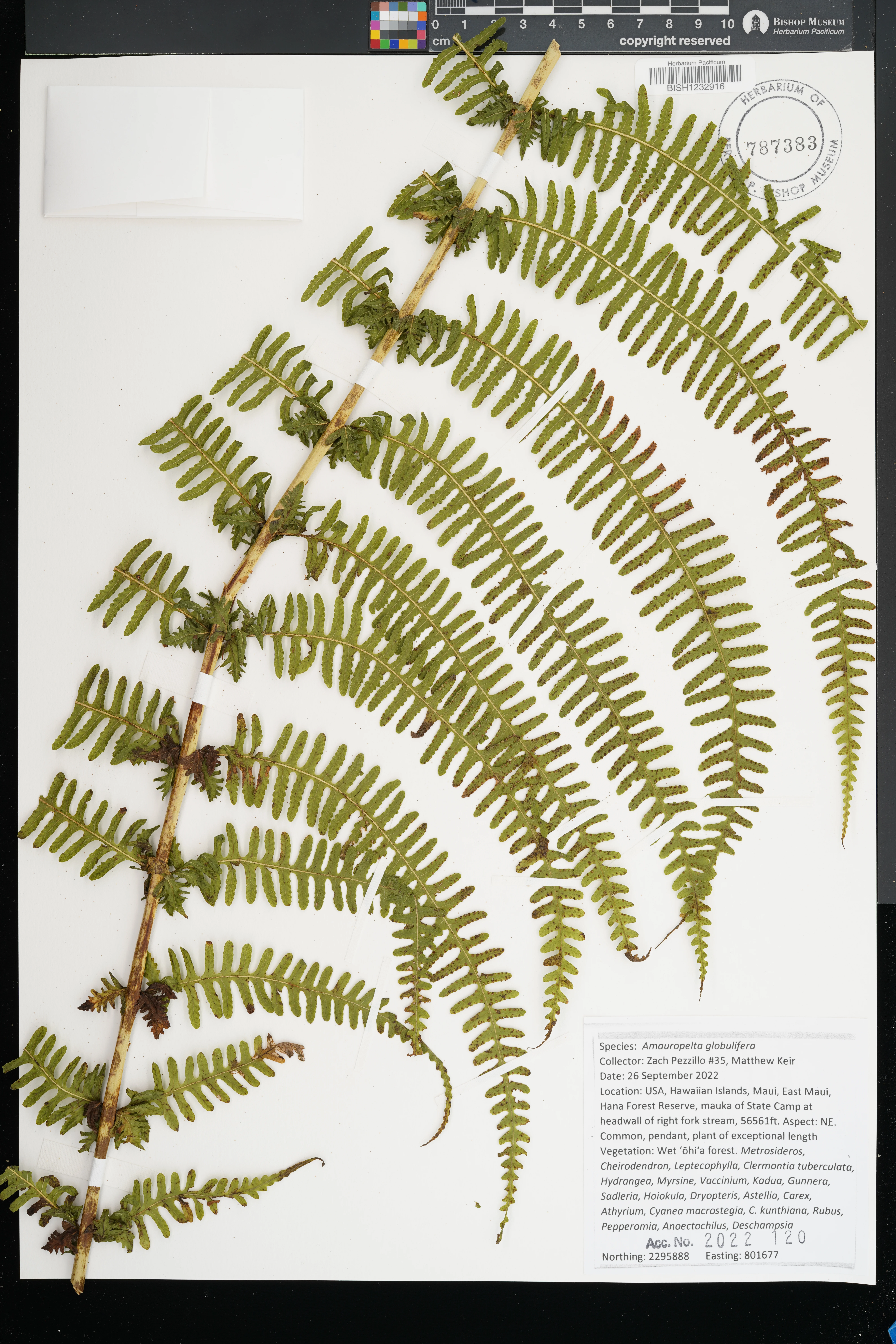 Palmer 2003:47 (K, O, Mo, L, M, H [as A. globulifera]); Snow et al. 2011:15 (Syn. A. globulifera = Thelypteris globulifera); Pteridophyte Phylogeny Group 2016:585/Fawcett & Smith 2021:26 (Syn. T. globulifera = A. globulifera)