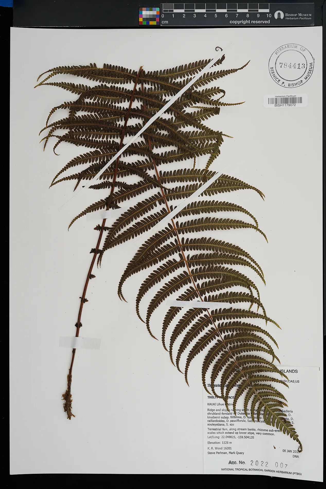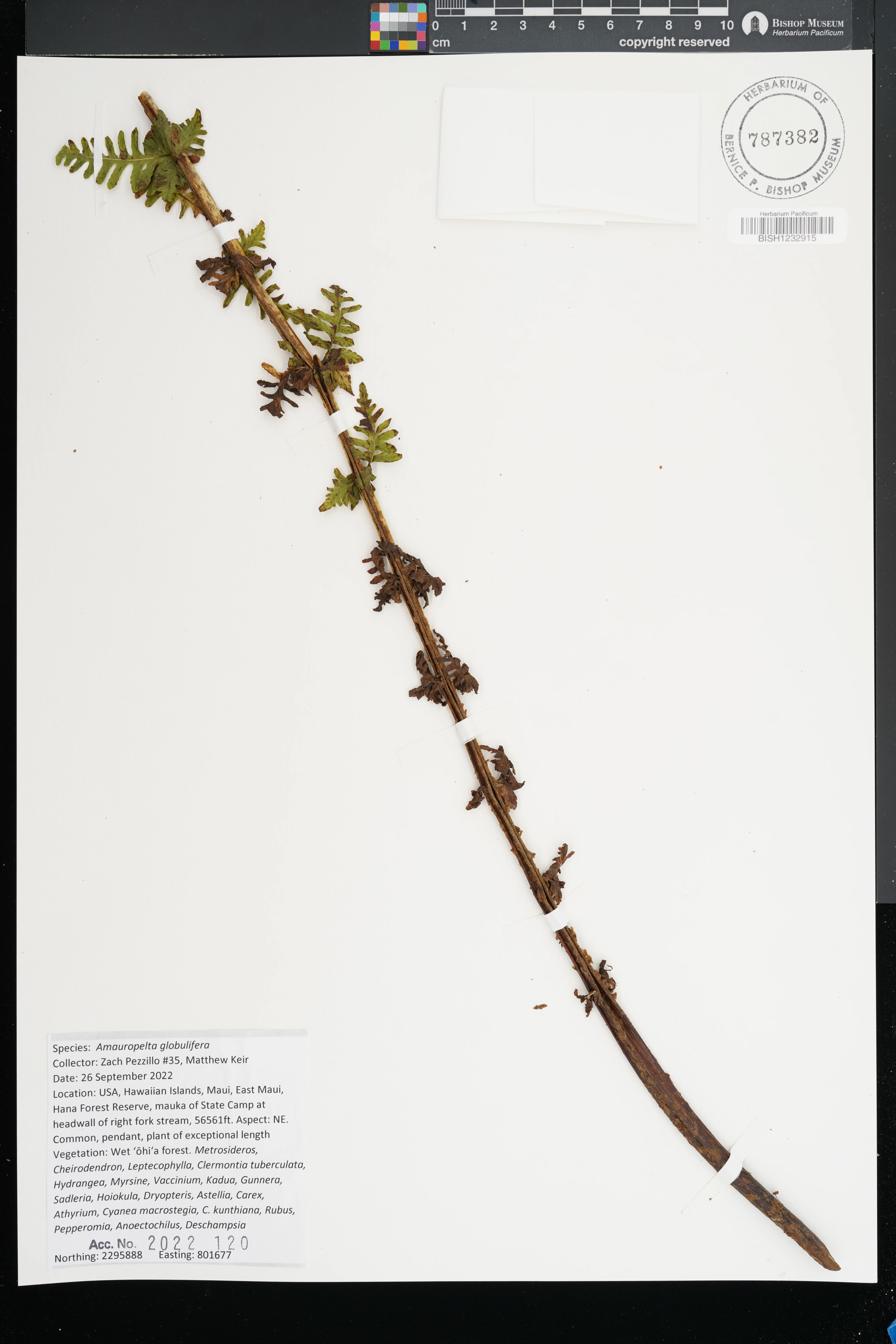 Kingdom: Viridiplantae Phylum: Pteridophyta Class/Clade: Polypodiopsida Order: Polypodiales Family: Thelypteridaceae Genus: Amauropelta