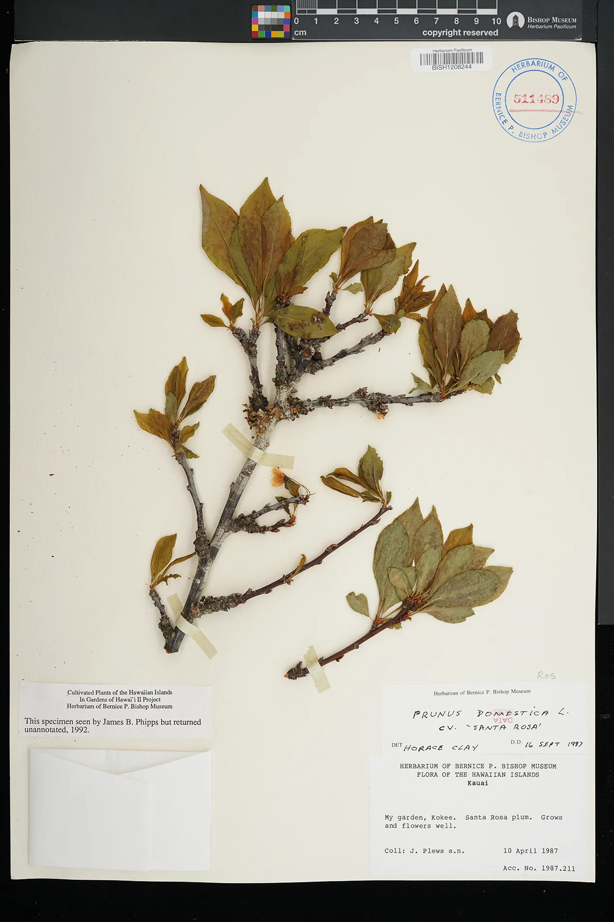 | 1 | Prunus domestica | Lihue. Star Market. | Cultivated. | PRESERVED_SPECIMEN | Tim Flynn | s.n. | Kauai | PTBG | 1/20/2008 |
