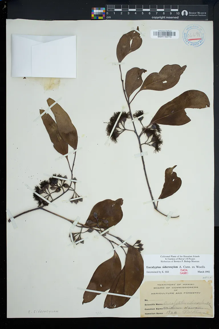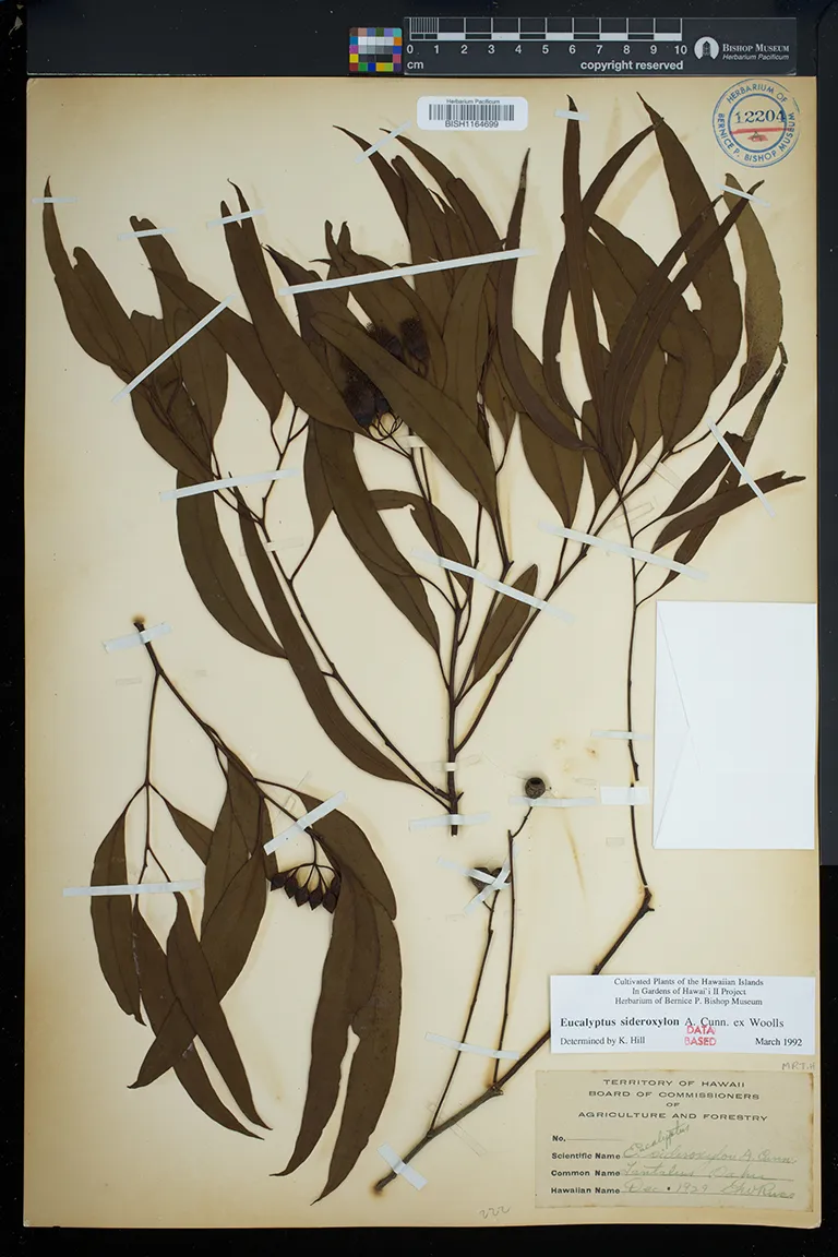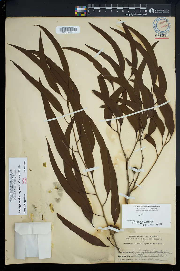 | 25 | Eucalyptus sideroxylon | A.Cunn. ex Woolls | honolulu, tantalus | PRESERVED_SPECIMEN | anon. | collector number: 6045 | Oahu | BISH | 11/1/1909 |