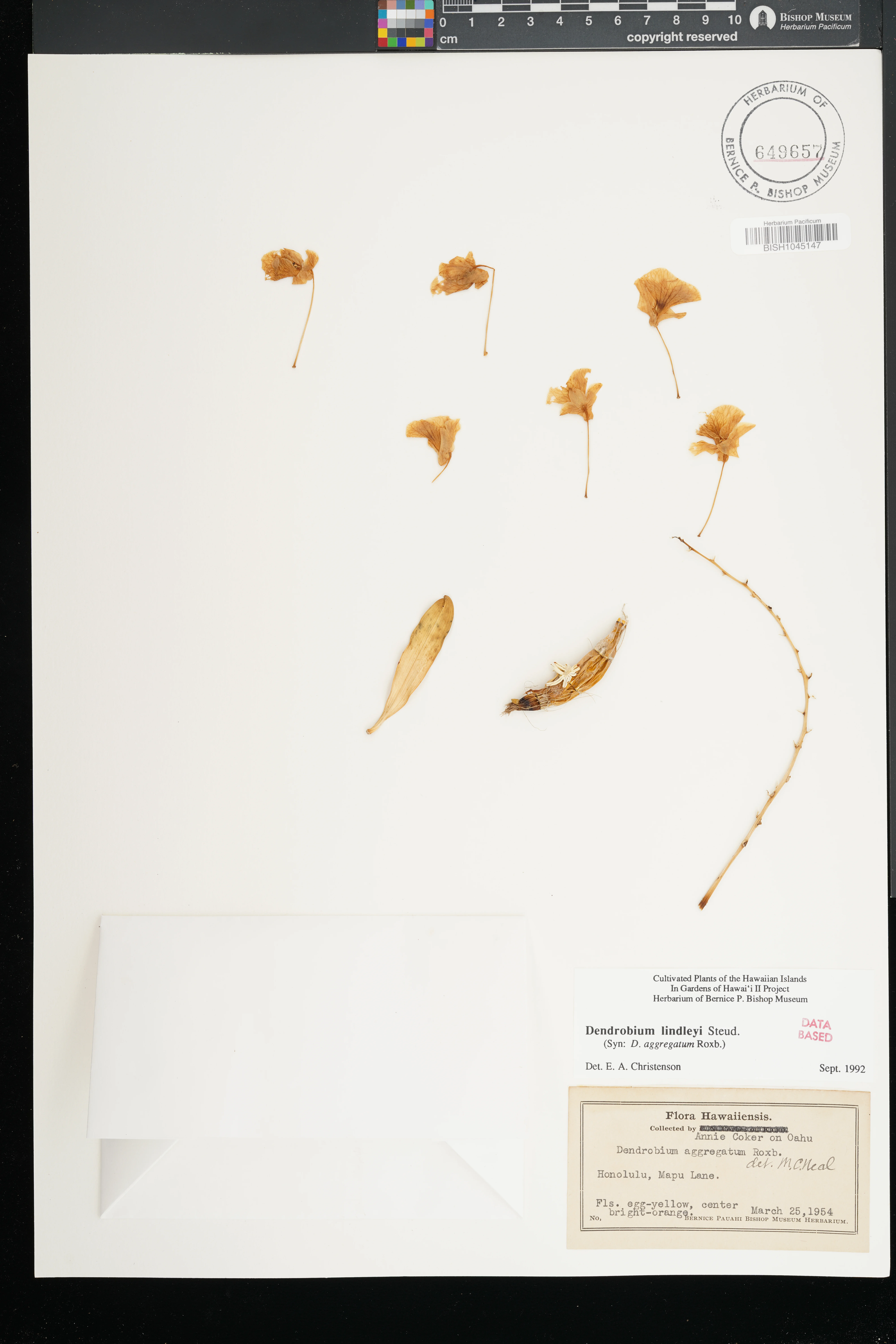 | 1 | Dendrobium lindleyi | Steud. | houghtailing st., honolulu, near bishop museum | PRESERVED_SPECIMEN | coker, a.h. | collector number: s.n. | Oahu | BISH | 5/1/1945 | |