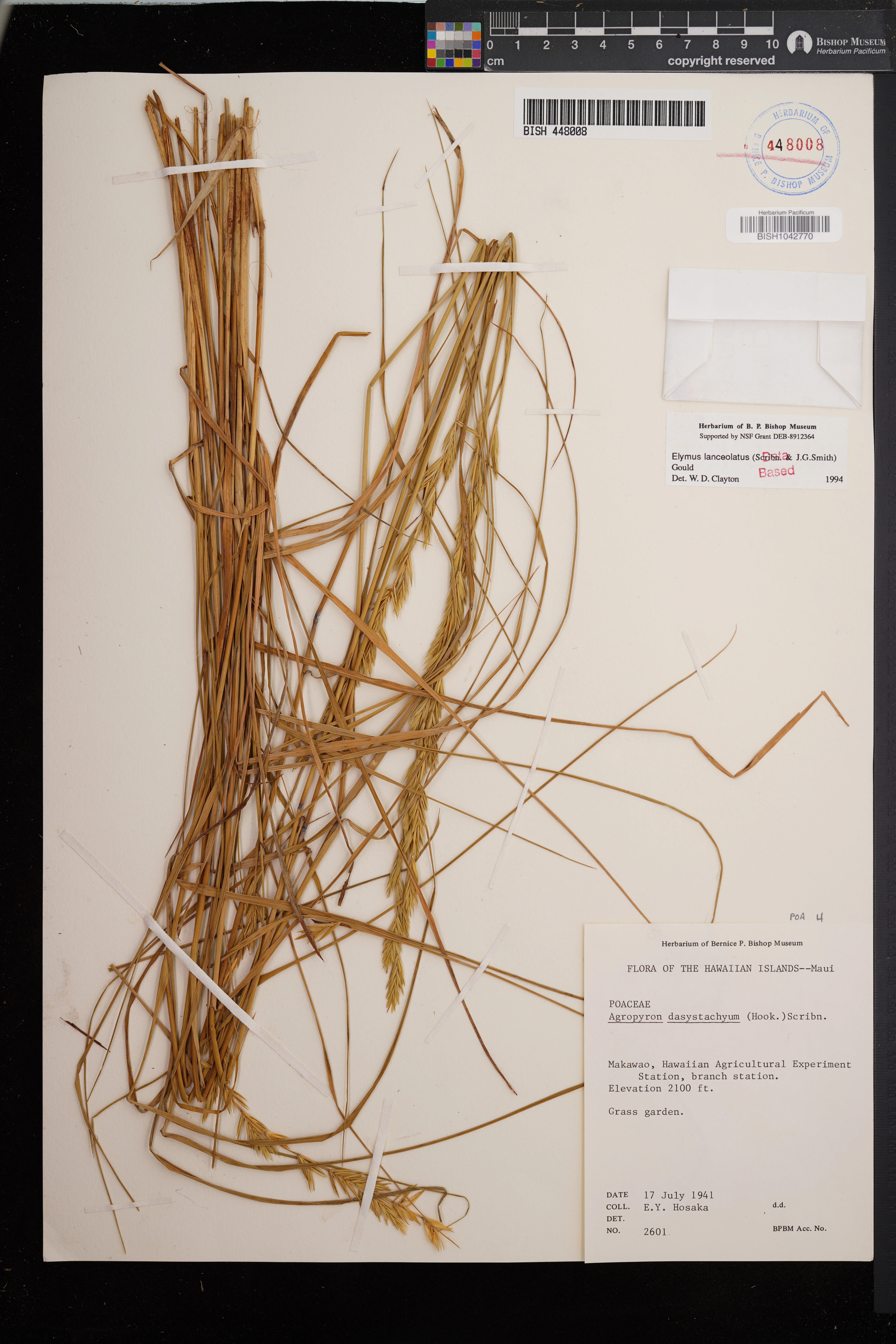 | 3 | Elymus lanceolatus | (Scribn. & J.G.Sm.) Gould | makawao, hi agr ex. sta., branch station | PRESERVED_SPECIMEN | hosaka, e.y. | collector number: 2601 | Kauai | US | 7/17/1941 | |