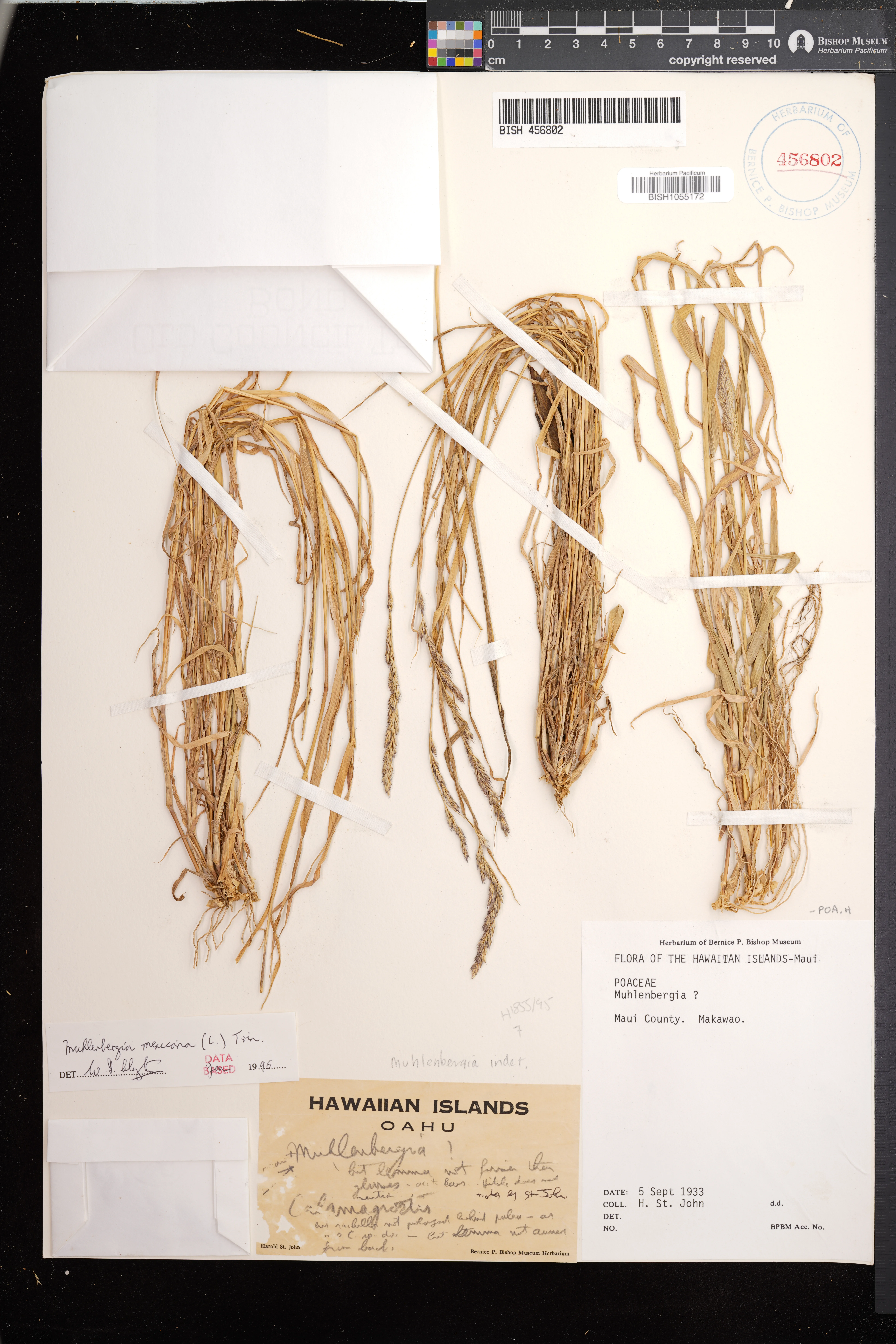 | 1 | Muhlenbergia mexicana | (L.) Trin. | East Maui, Makawao | PRESERVED_SPECIMEN | St. John, H. | s.n. | Maui | BISH | 9/5/1933 | |