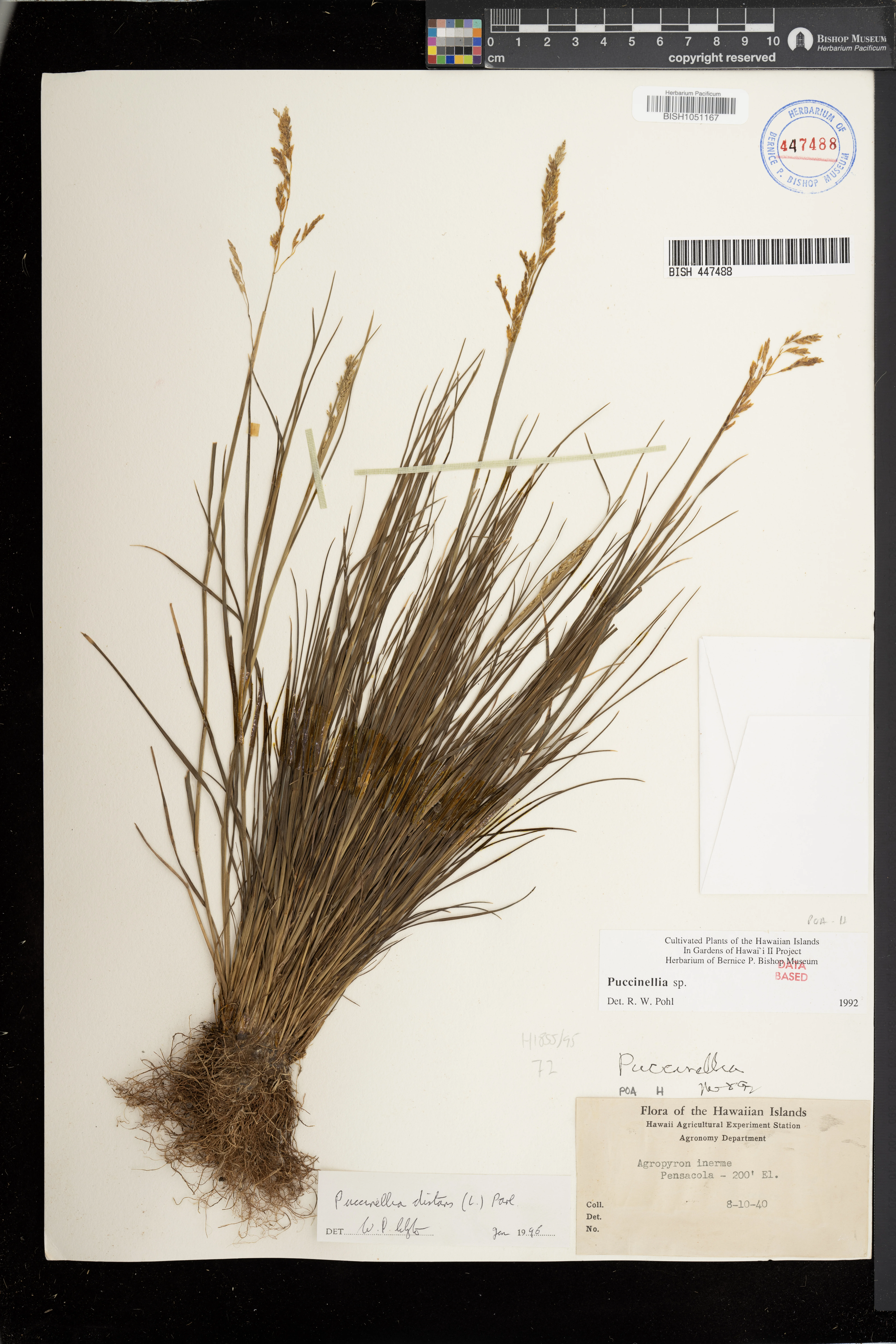 Kingdom: Viridiplantae Phylum: Magnoliophyta Class/Clade: Monocots Order: Poales Family: Poaceae Genus: Puccinellia