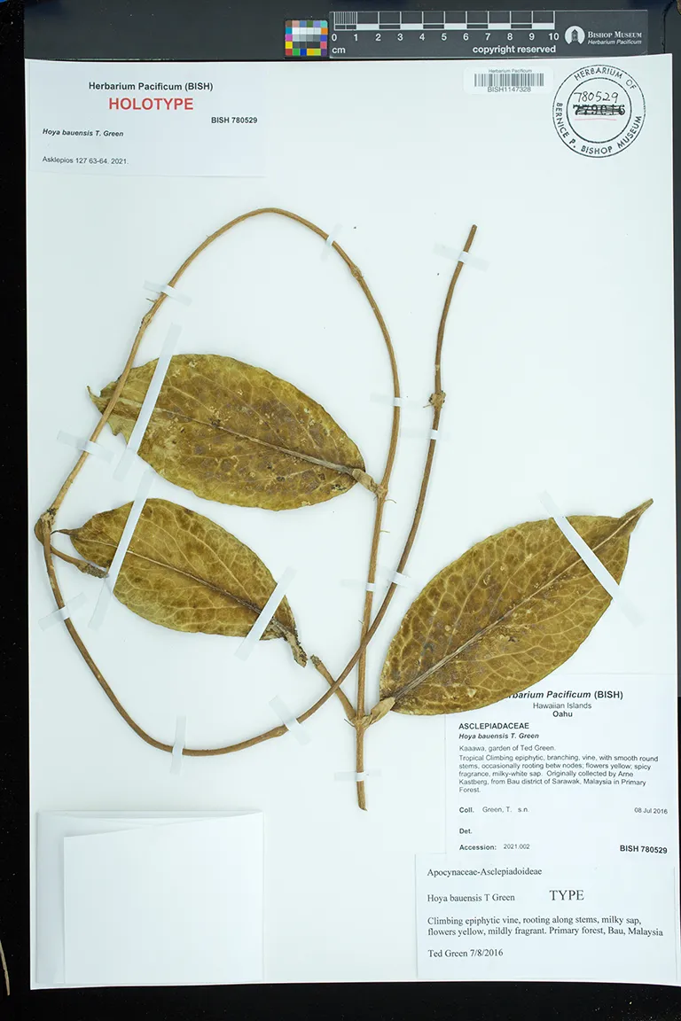 1 Hoya bauensis Kaaawa, garden of Ted Green. Tropical Preserved_Specimen Green, T. Oahu BISH 2016-07-08